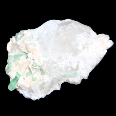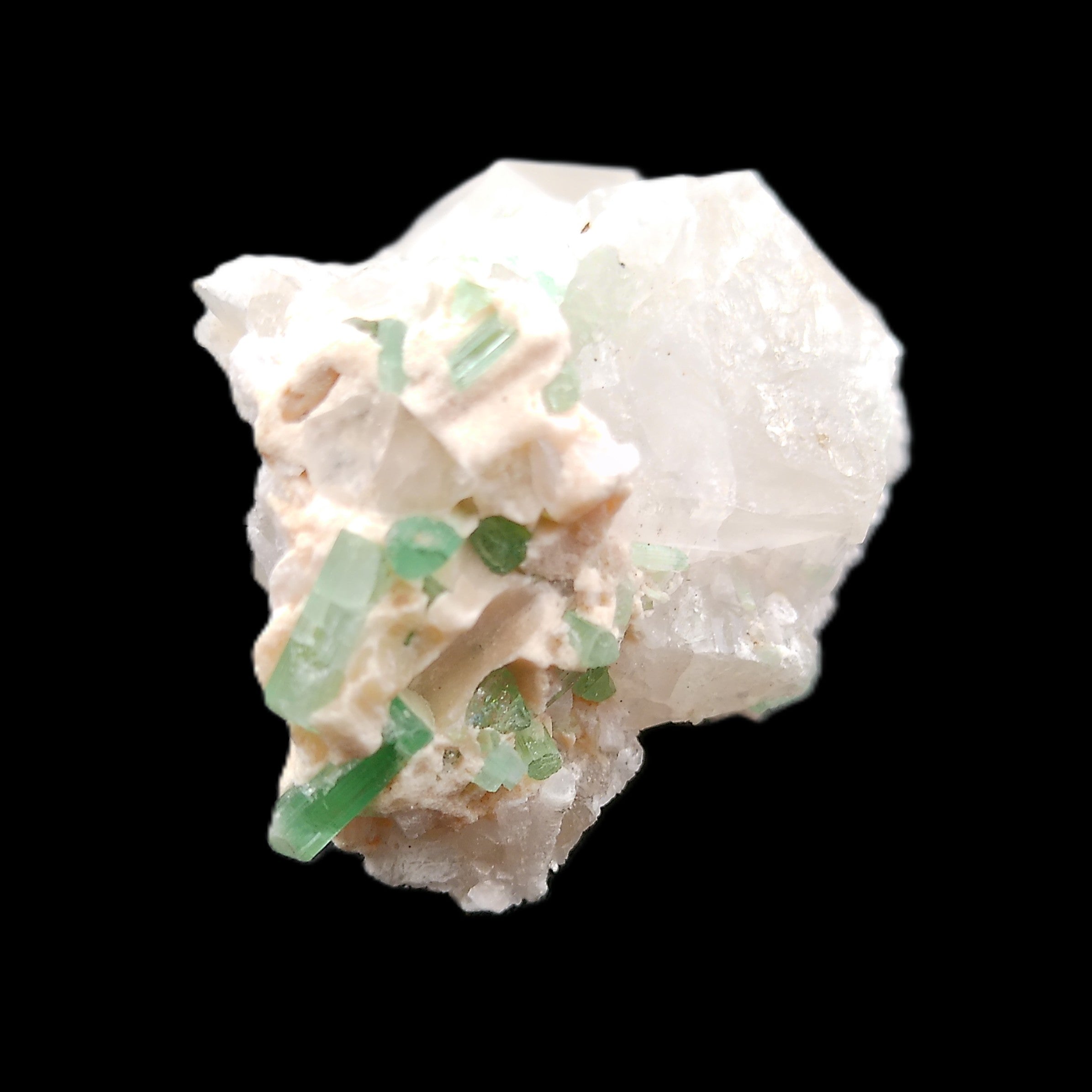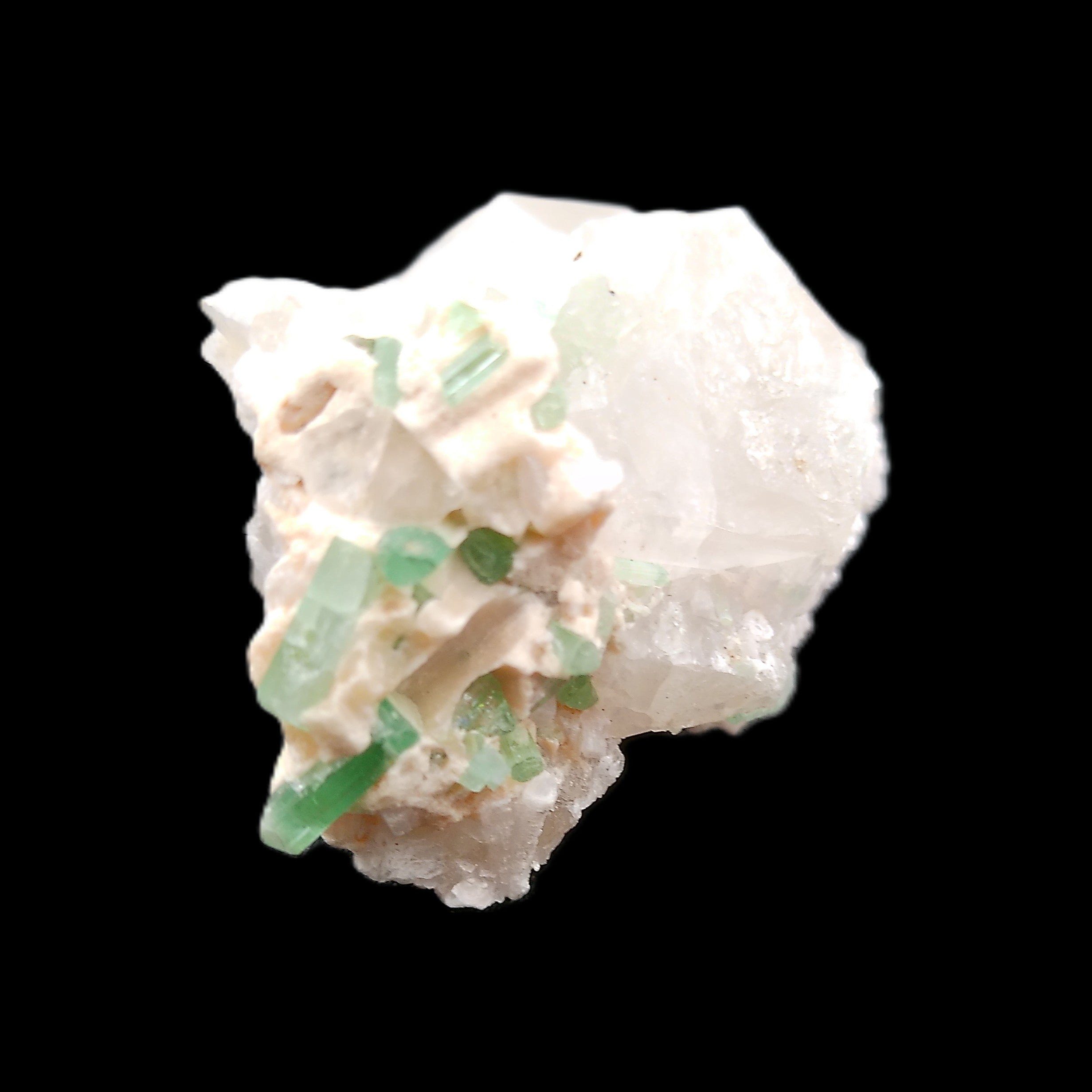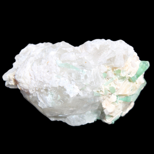 Green Tourmaline is a beautiful complex lithium-rich borosilicate mineral. Elbaite usually forms as elongated rods or prismatic crystals that are heavily striated. Green (and blue) Elbaite crystals are often pleochroic, which means that the crystal appears darker in colour when viewed along its vertical axis, compared to viewing along its horizontal axis. Elbaite is an igneous mineral that almost always forms in granite pegmatites.