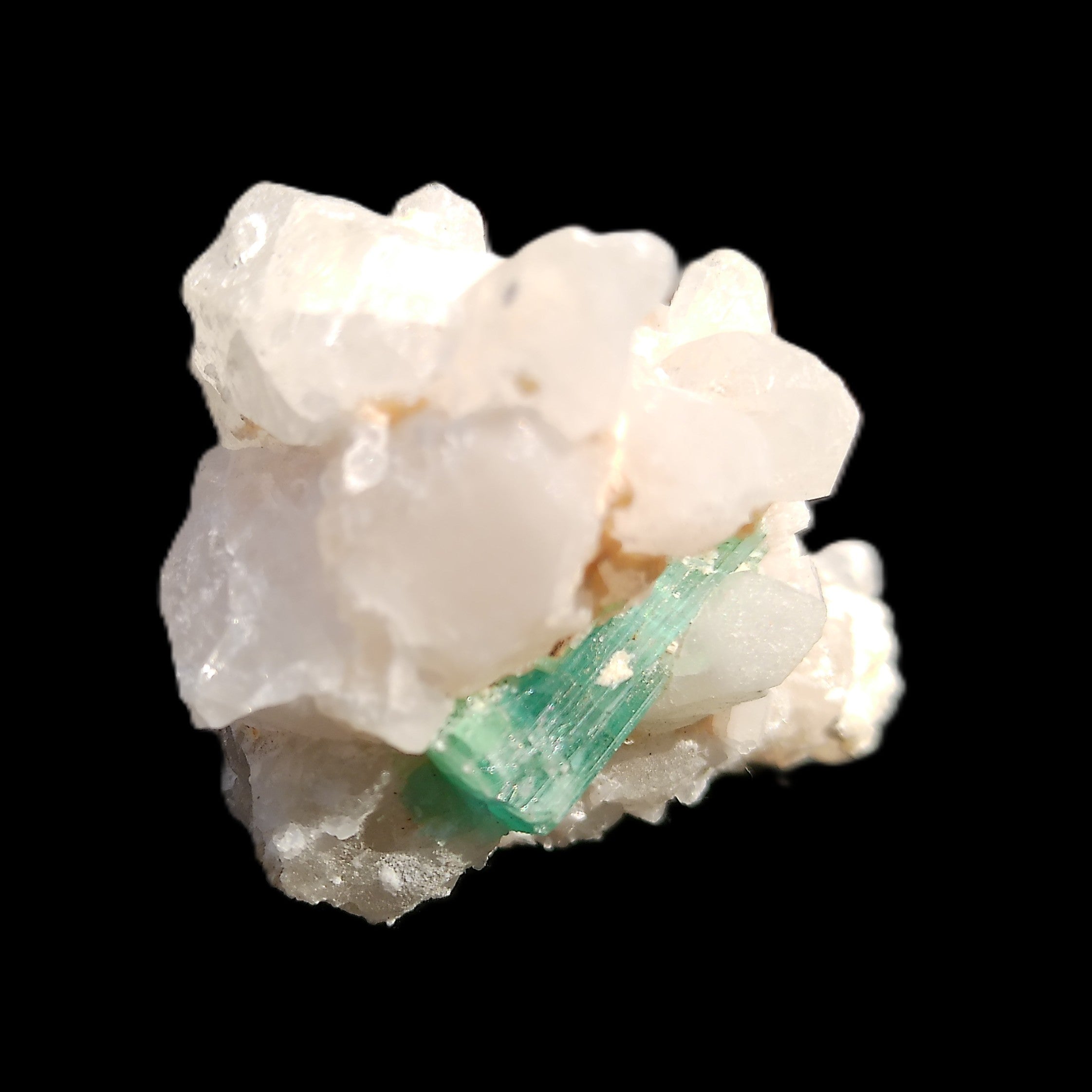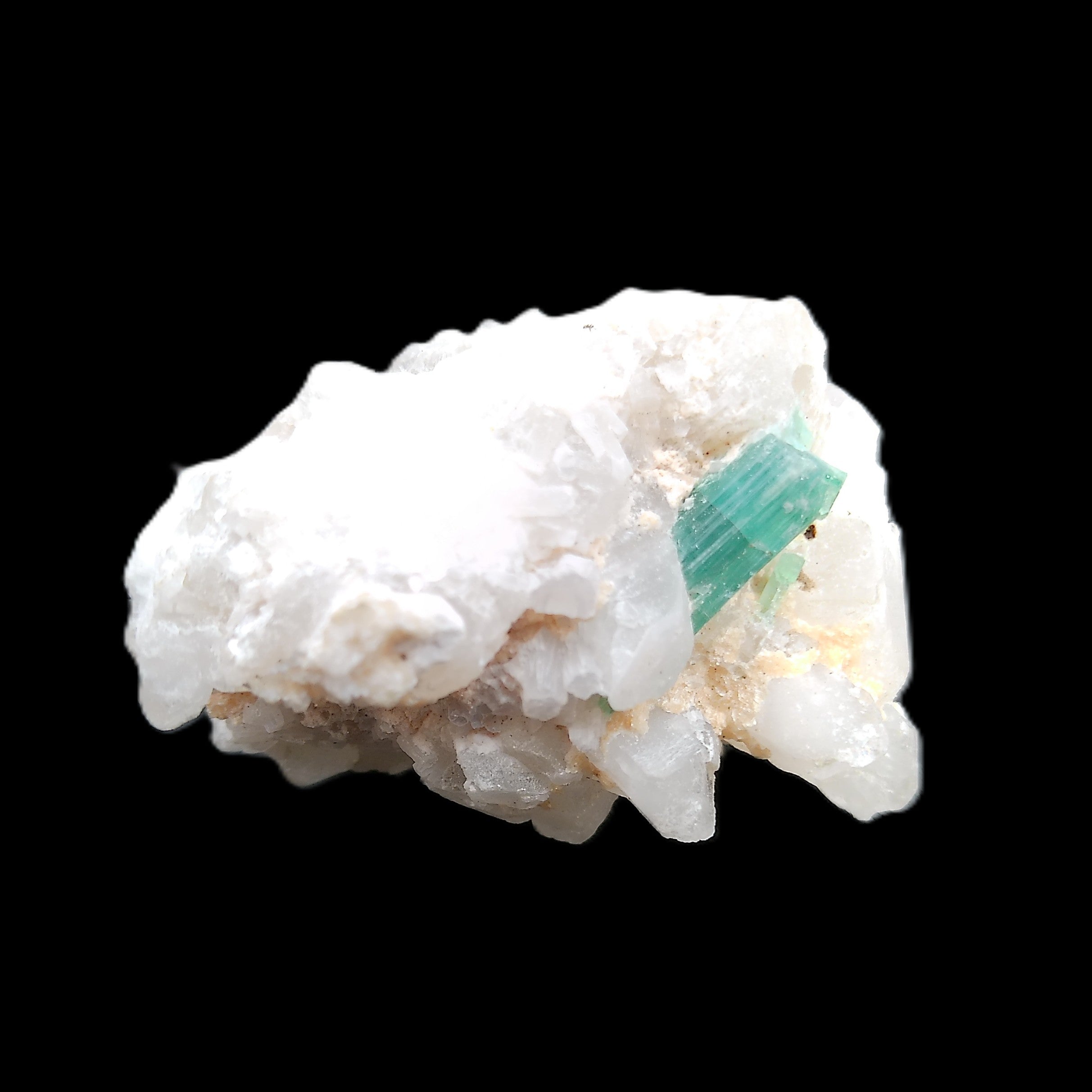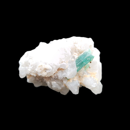 Green Tourmaline is a beautiful complex lithium-rich borosilicate mineral. Elbaite usually forms as elongated rods or prismatic crystals that are heavily striated. Green (and blue) Elbaite crystals are often pleochroic, which means that the crystal appears darker in colour when viewed along its vertical axis, compared to viewing along its horizontal axis. Elbaite is an igneous mineral that almost always forms in granite pegmatites.