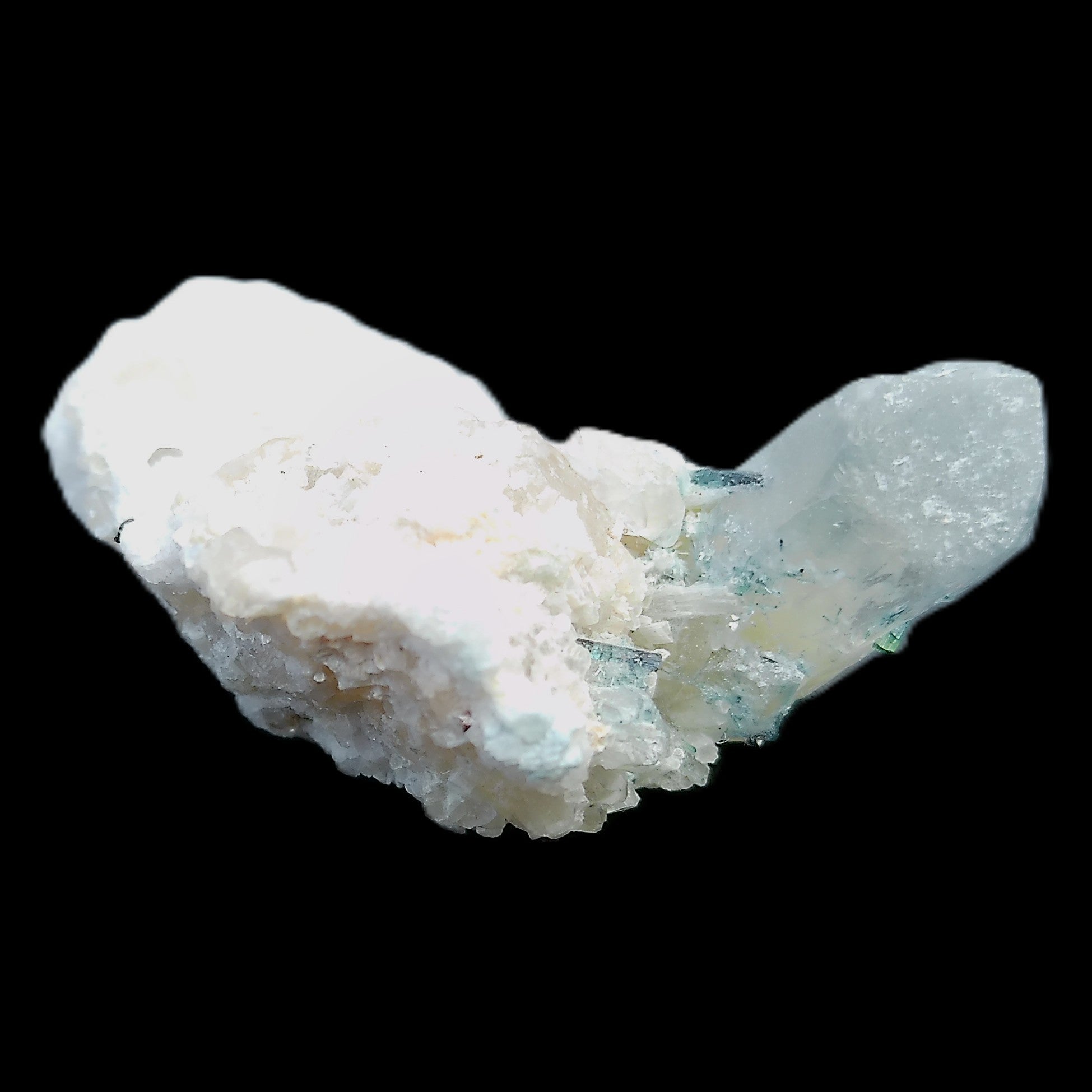 This specimen is a Green Tourmaline on Elestial Quartz with Feldspar matrix 18*57*40mm weighing 40g. It was sourced in Afghanistan for us by our partner, Lawrence Handicrafts.