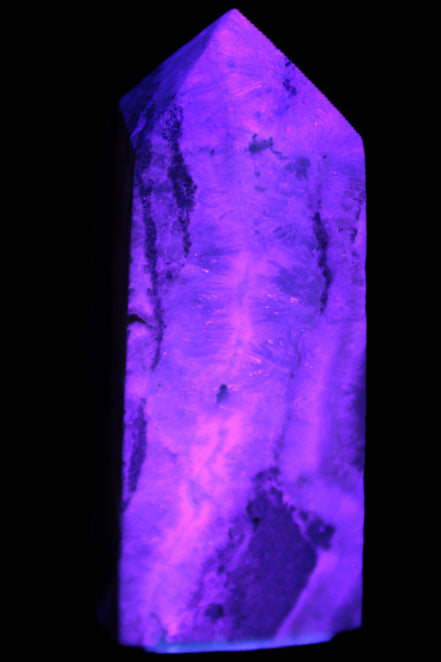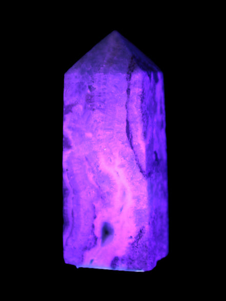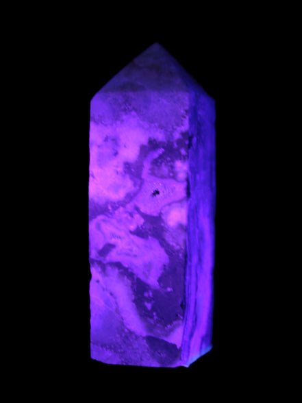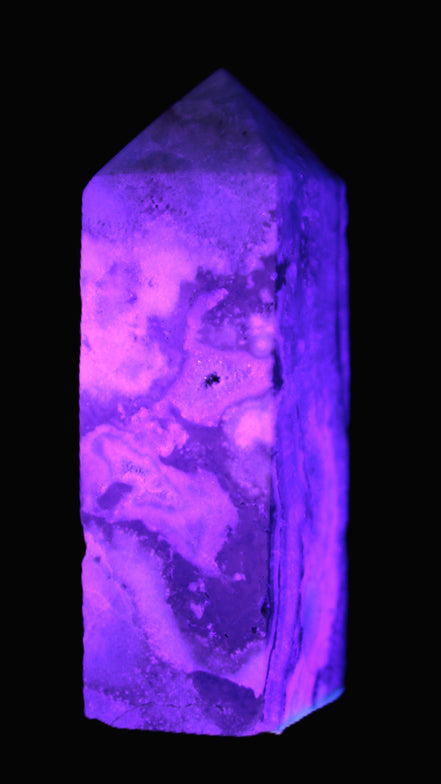 This Hemimorphite Sky Blue wand is 60mm tall and weighs 56.5g. Hemimorphite is a zinc silicate mineral. It is a common secondary mineral found in the weathered rocks above and around zinc deposits. It is a minor Zinc ore as it can contain up to 54% zinc by weight. Hemimorphite is UV reactive.