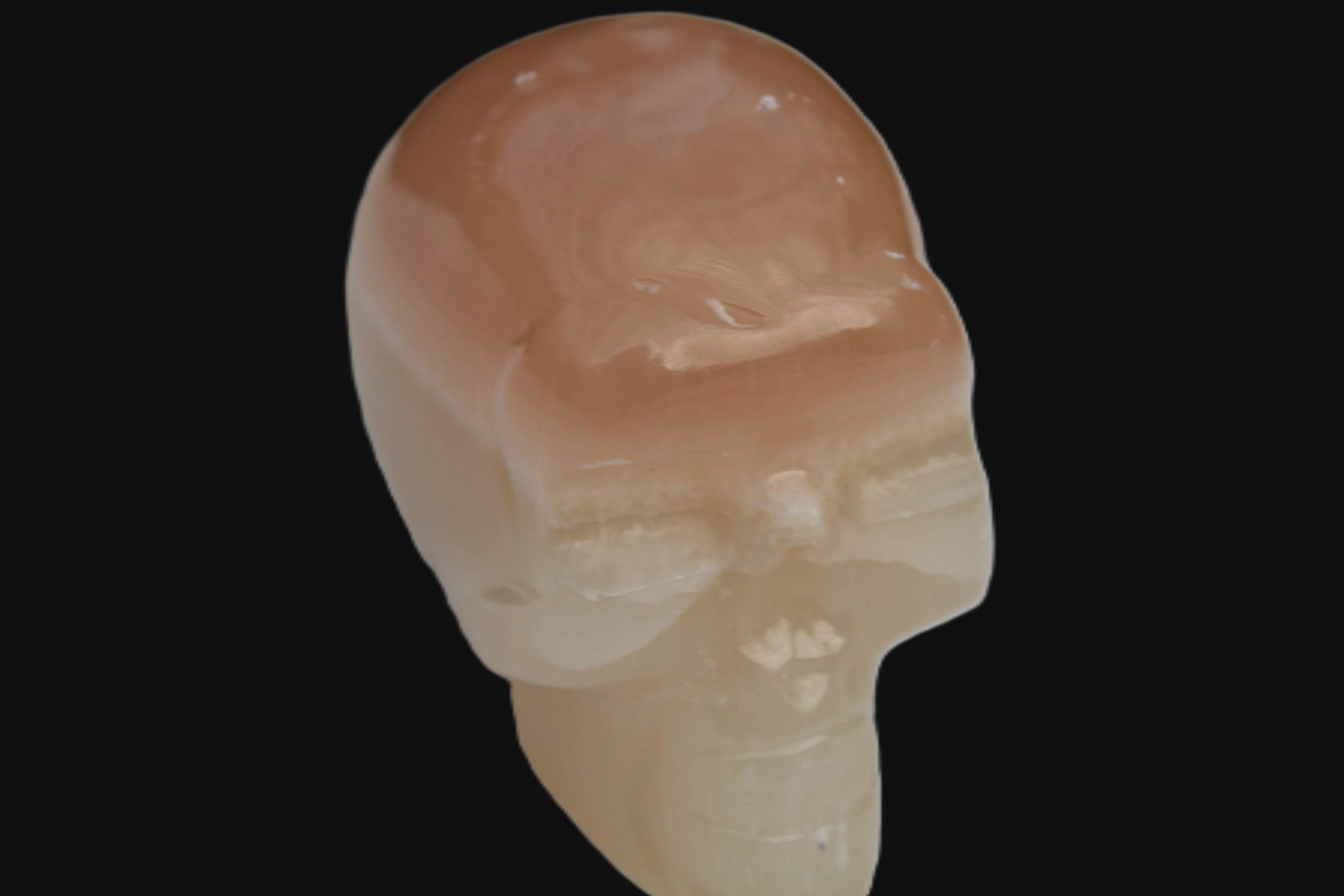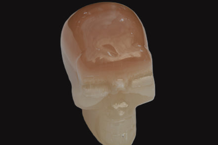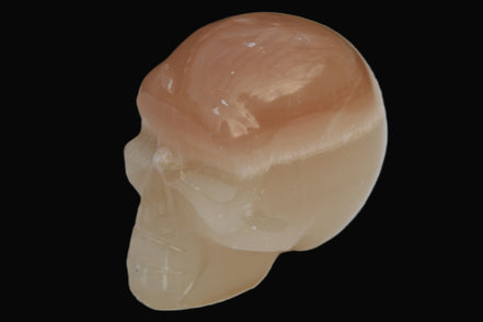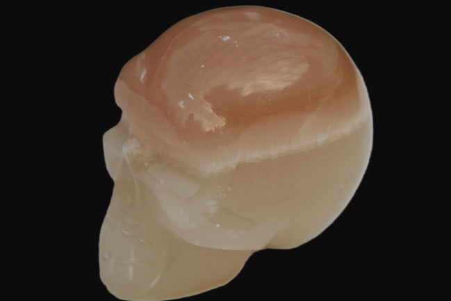 Honey Calcite is also termed Amber Calcite and Golden Calcite. The deeper dark hue of the new finds in Pakistan are known as Topaz Calcite. The skull has been sourced and shaped in Pakistan by Lawrence Handicrafts.