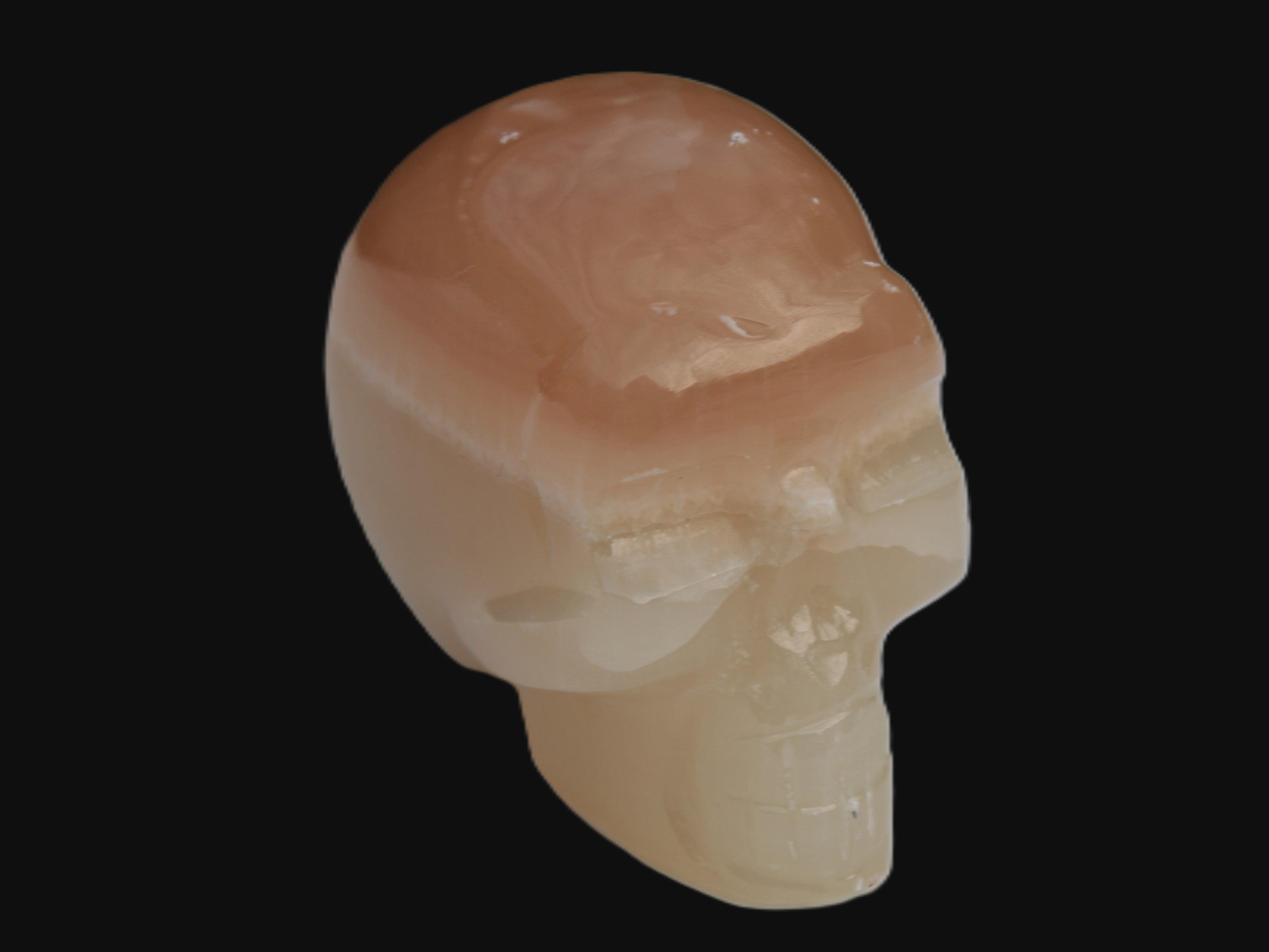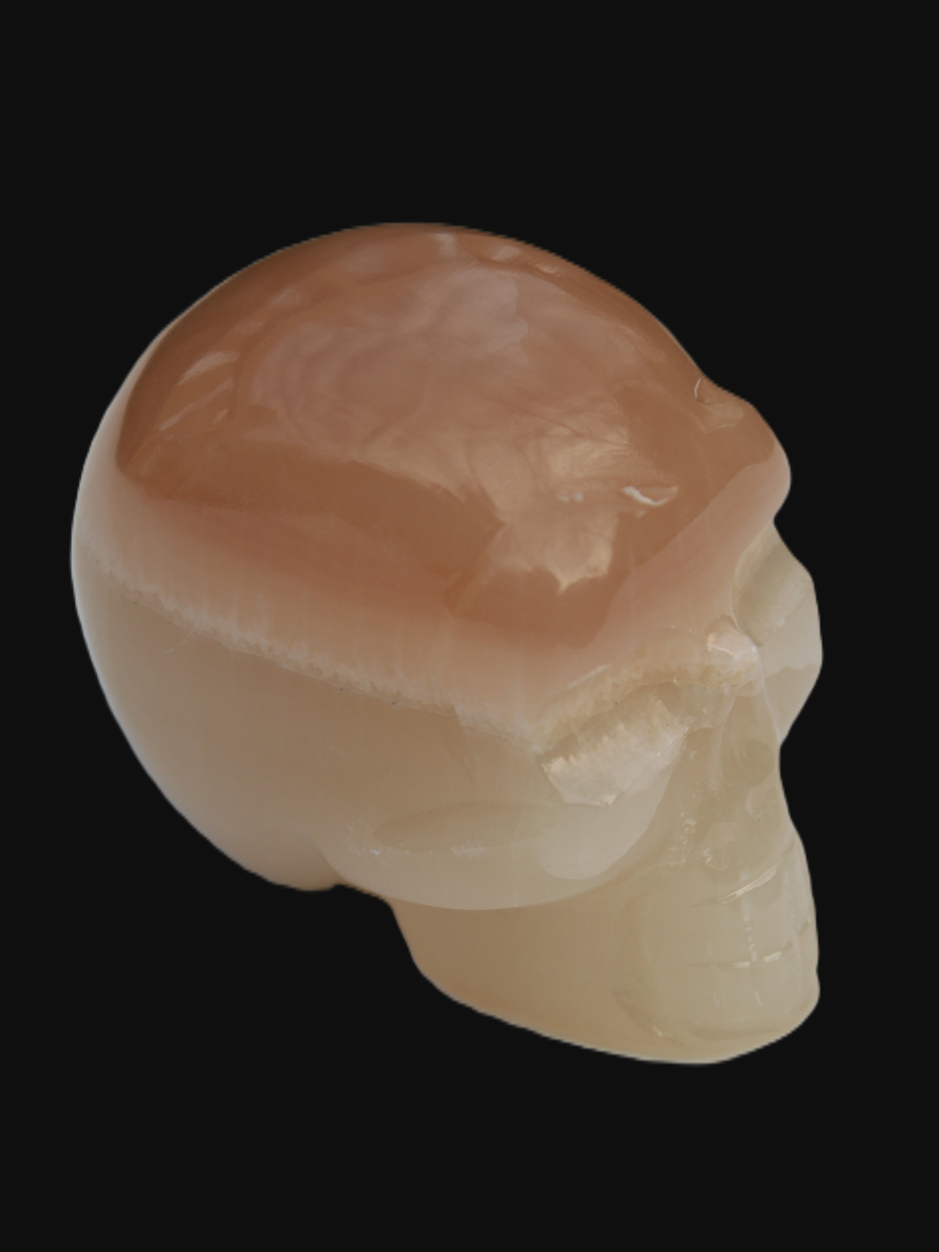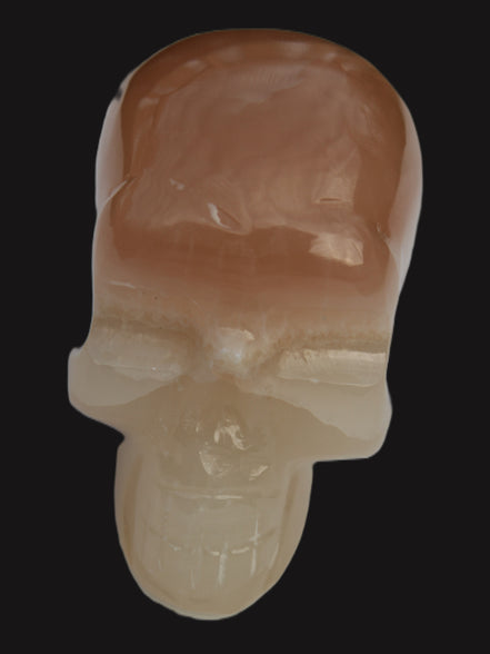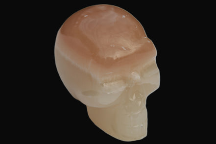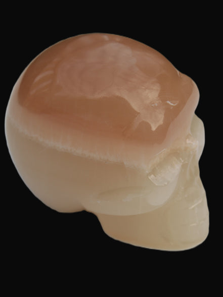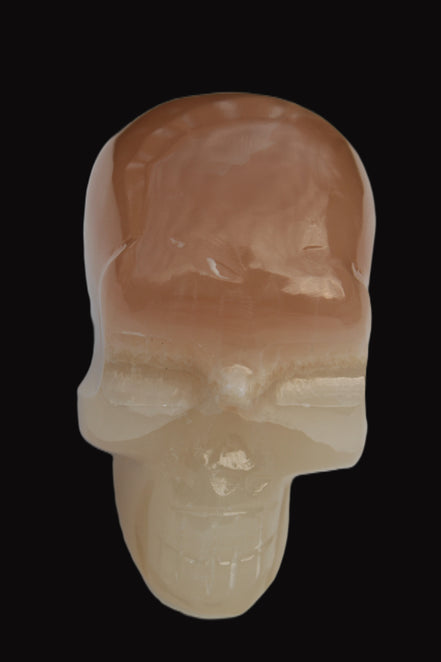 This banded Honey Calcite skull is a stone for accomplishment. The glowing warmth of this stone brings a strong energising connection with Mother Earth. This is a motivating energy from the grounding connection. Combined with the symbolism and power of the skull shape, this energy fills us up with the urge to get started and go.