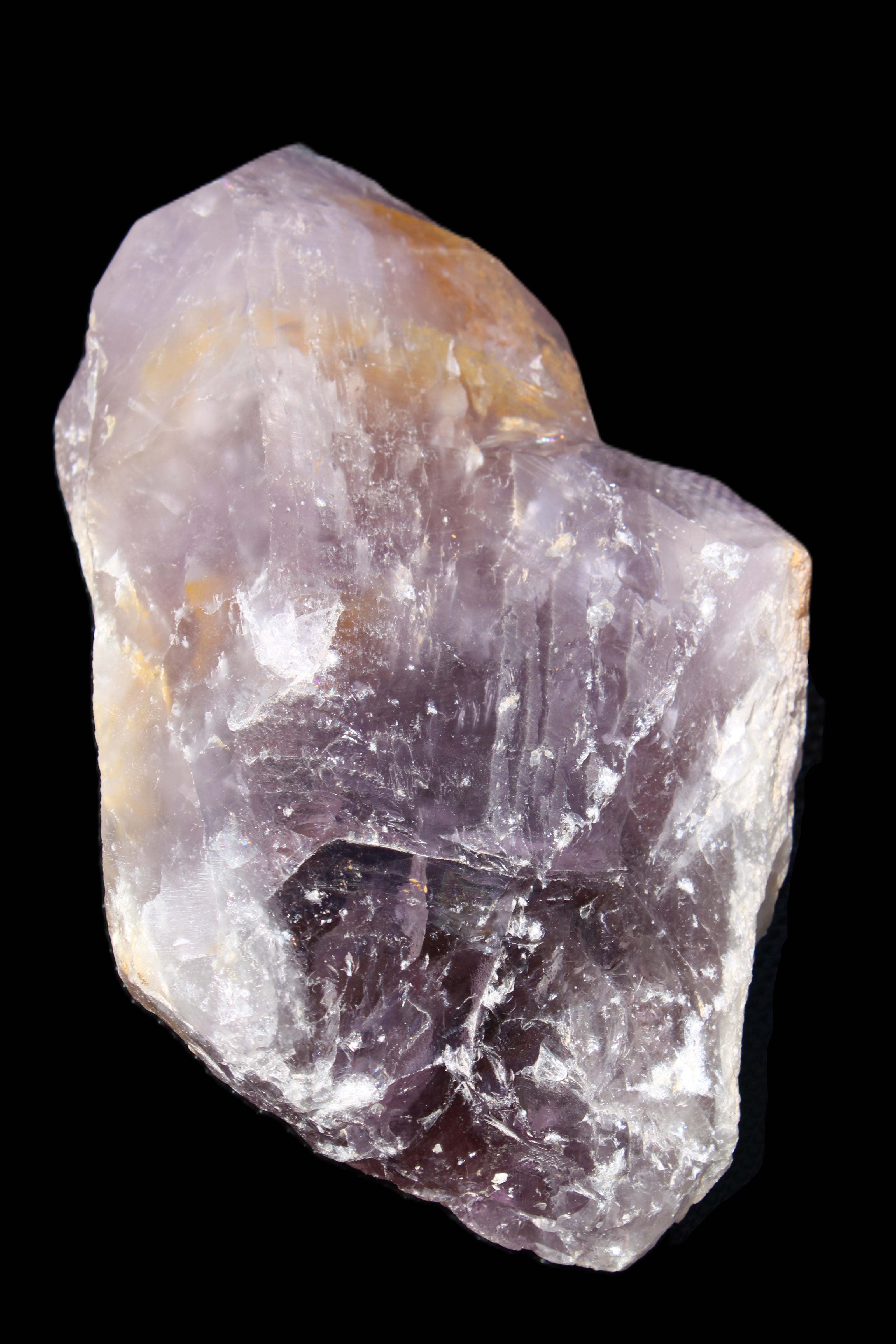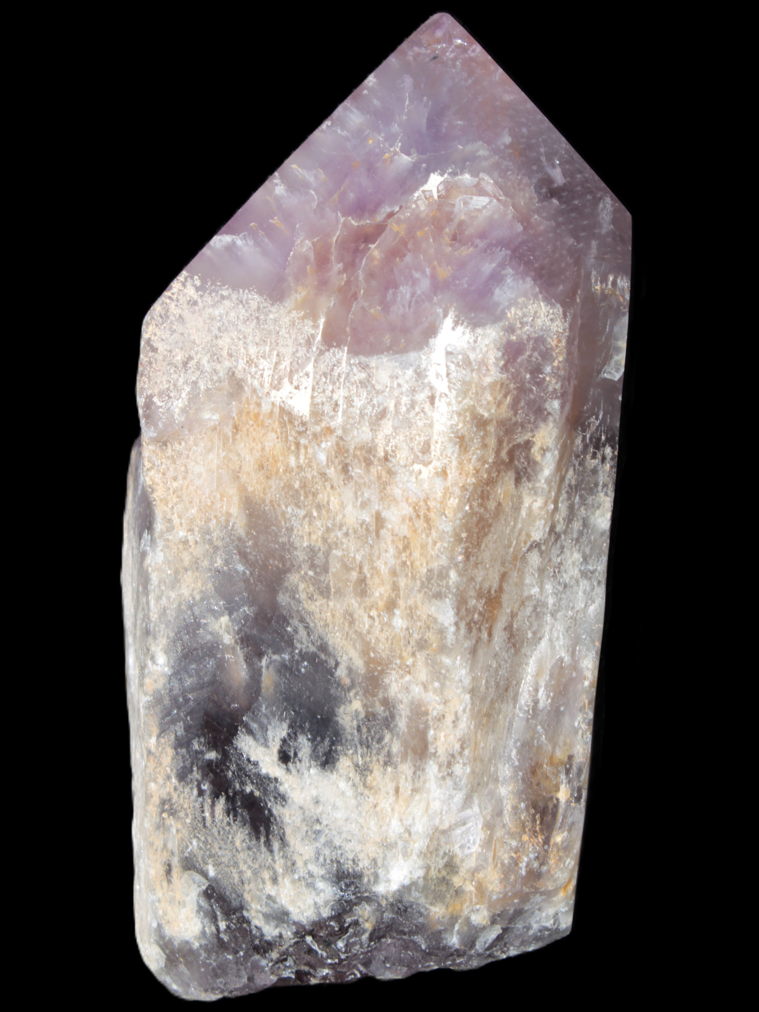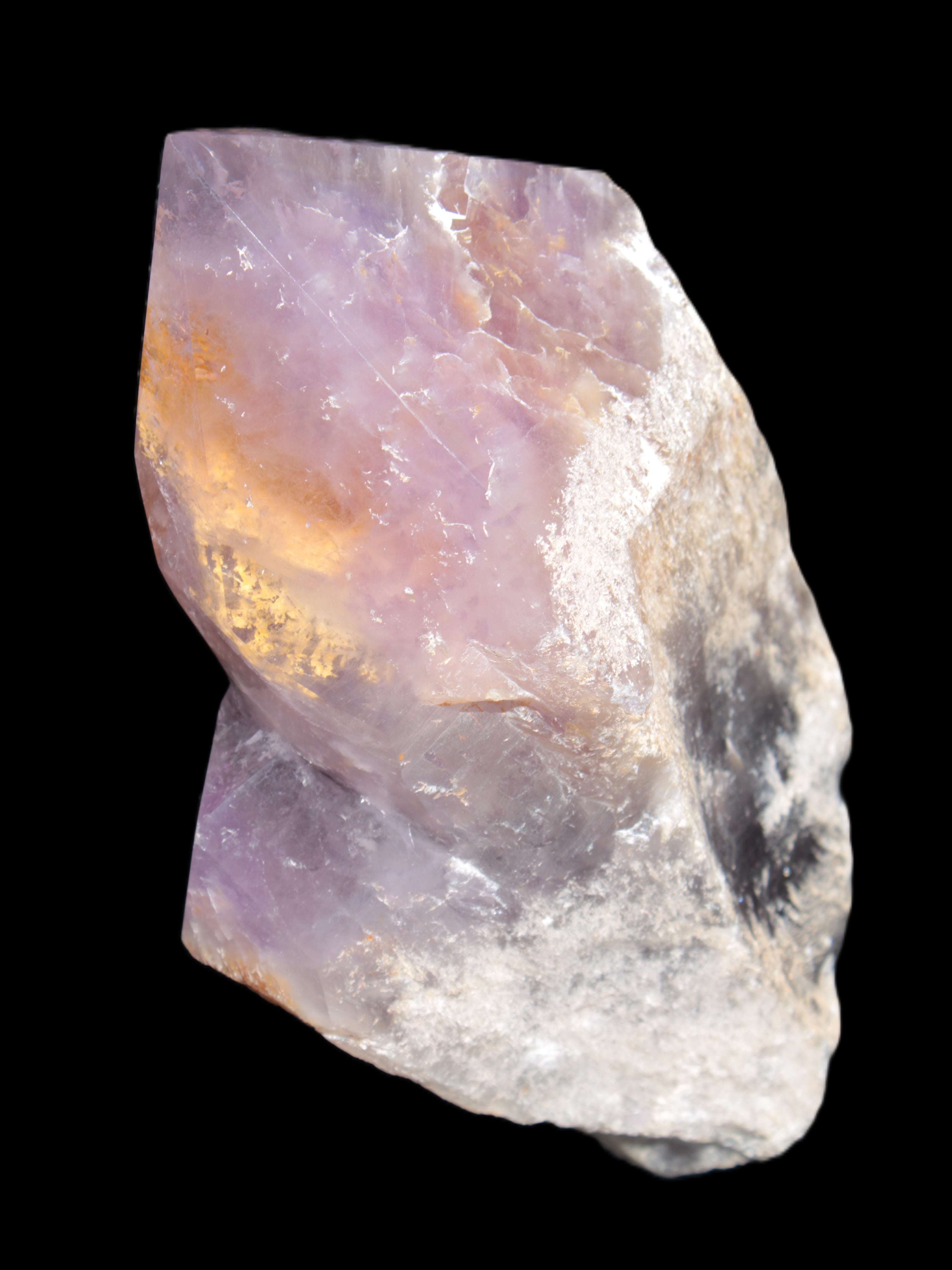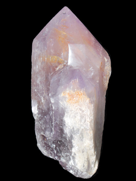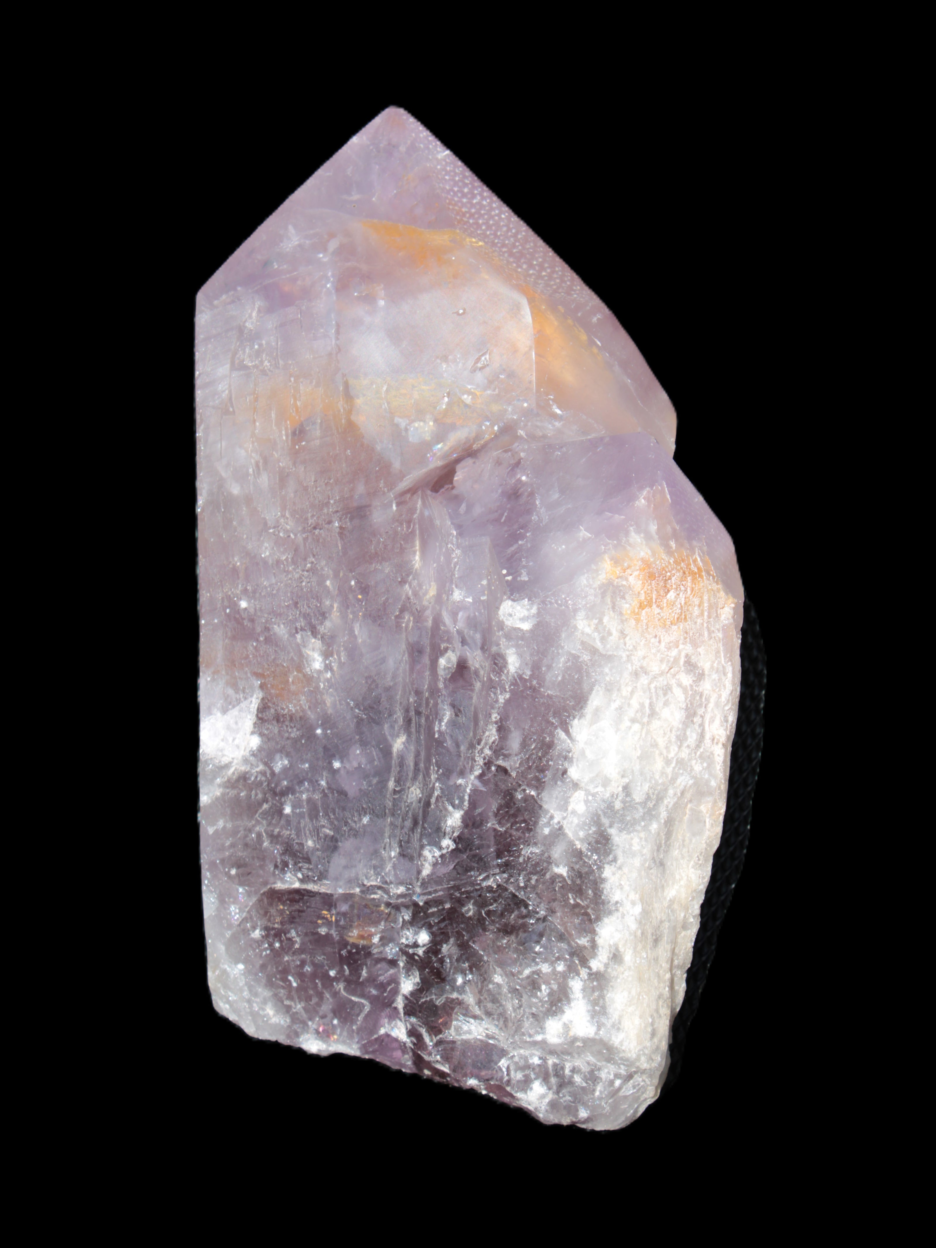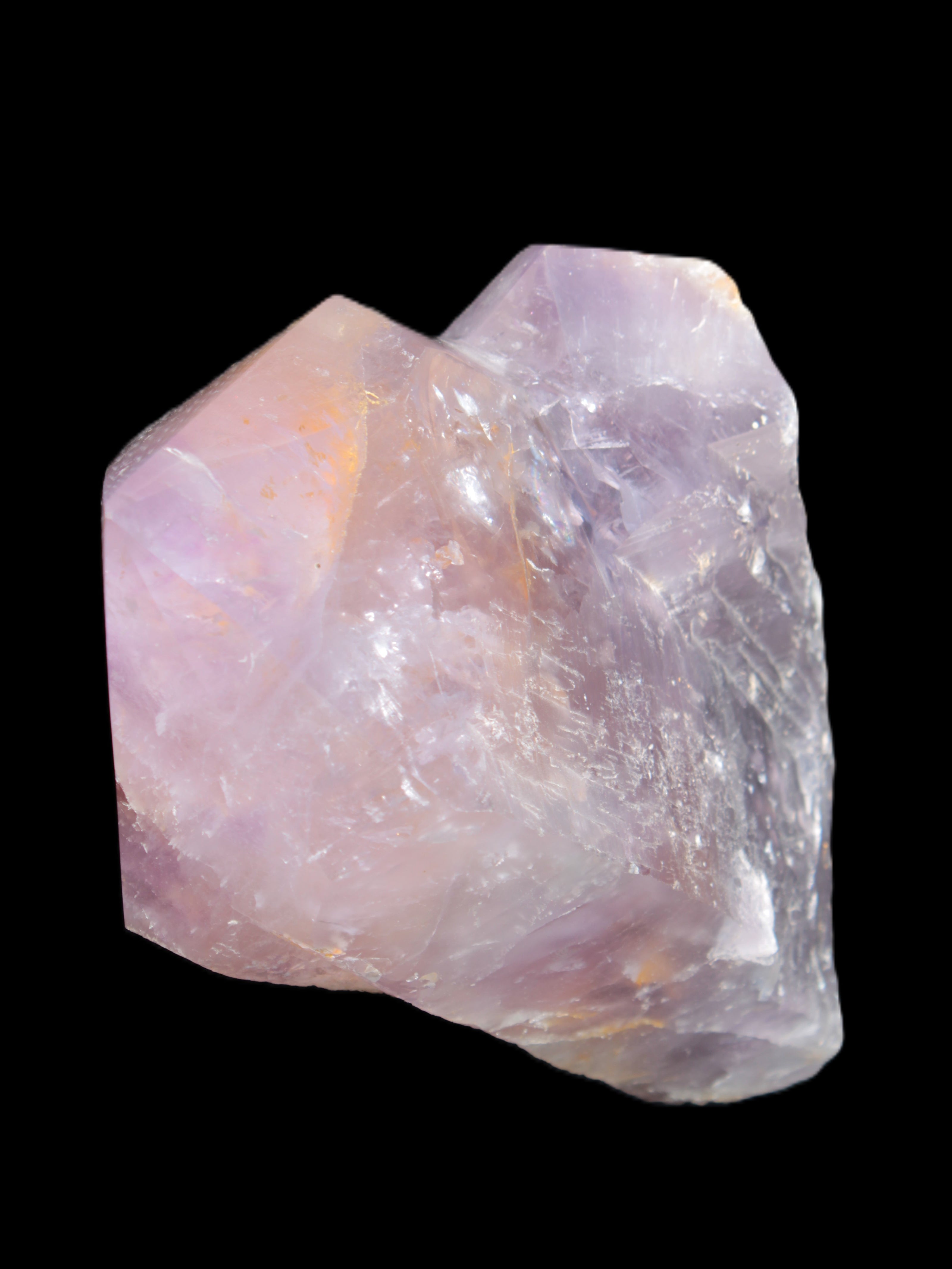 This is a huge Amethyst twinned crystal. The main crystal is 225mm tall. Its smaller twin is 16mm high. The width of the two crystals at the base is 110mm. It is a little wider towards the tip of the smaller twin. Together, they are about 100 mm deep or thick. There are some strong hints of Citrine in this amazing crystal too.