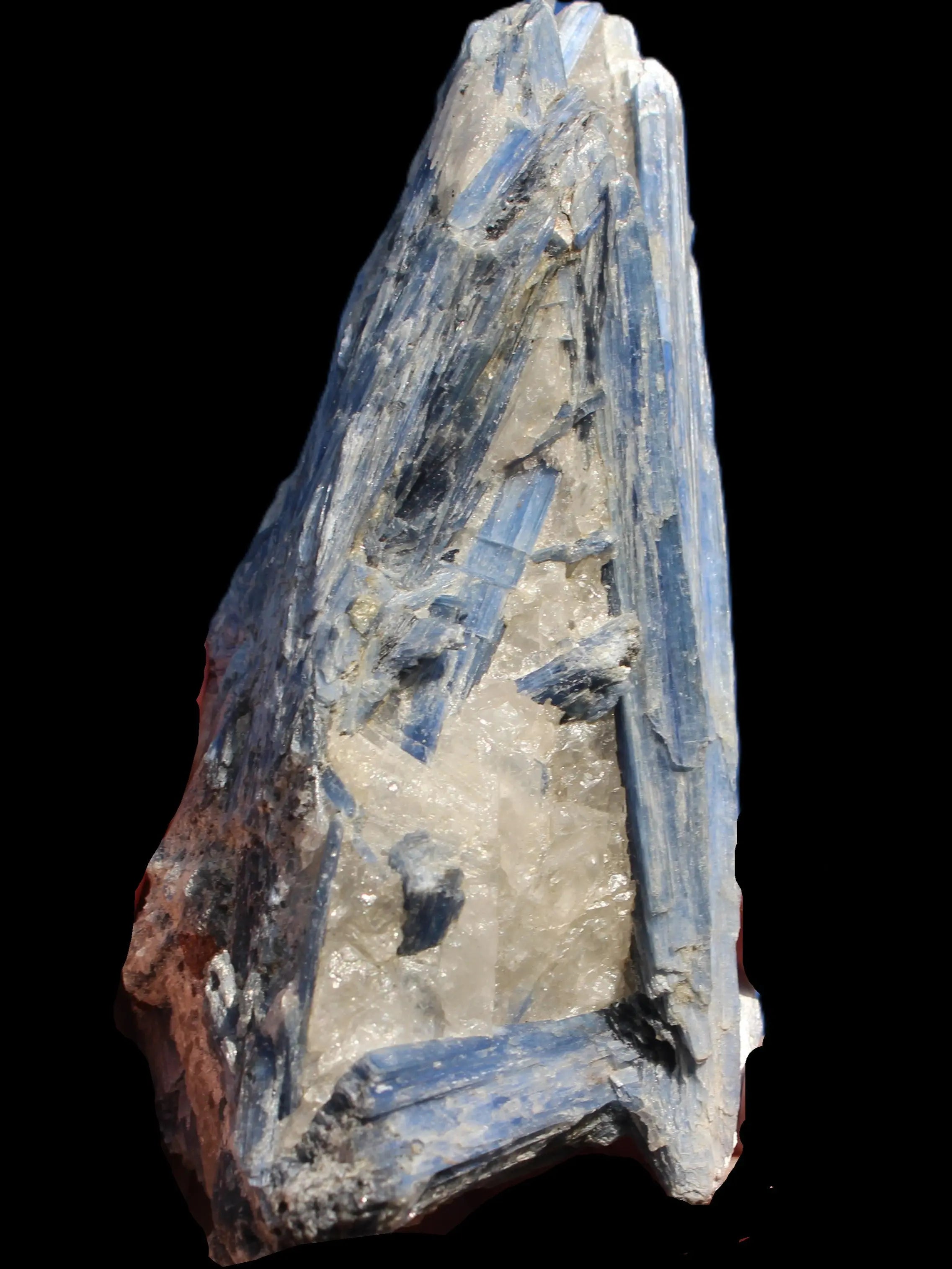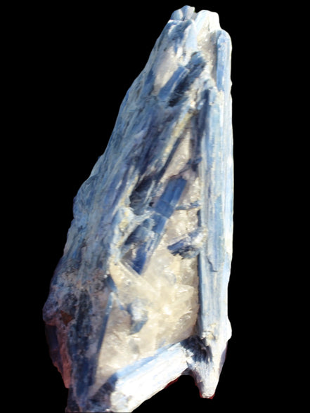 Blue Kyanite cluster with stand 830g in sunlight - Rocks and Things Store