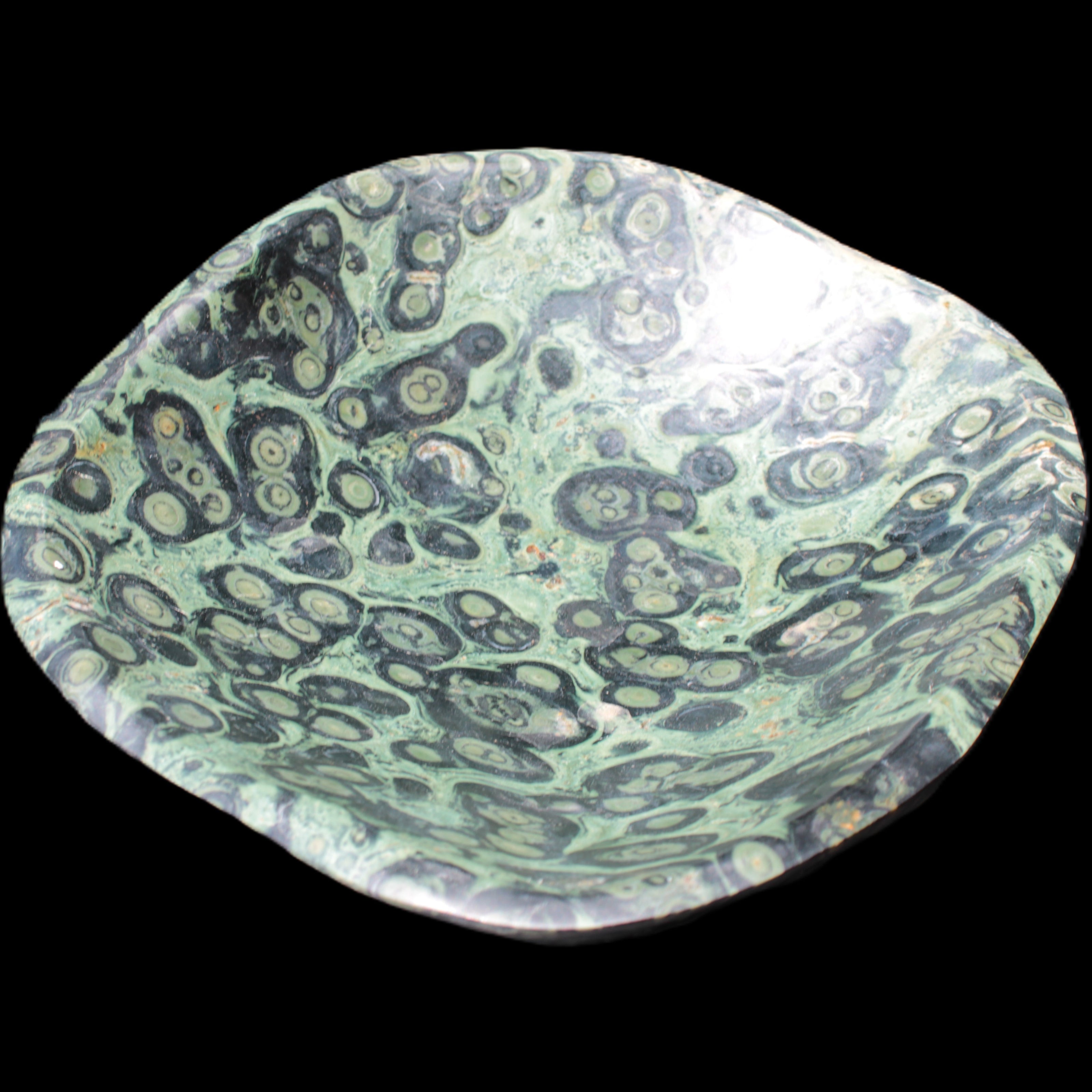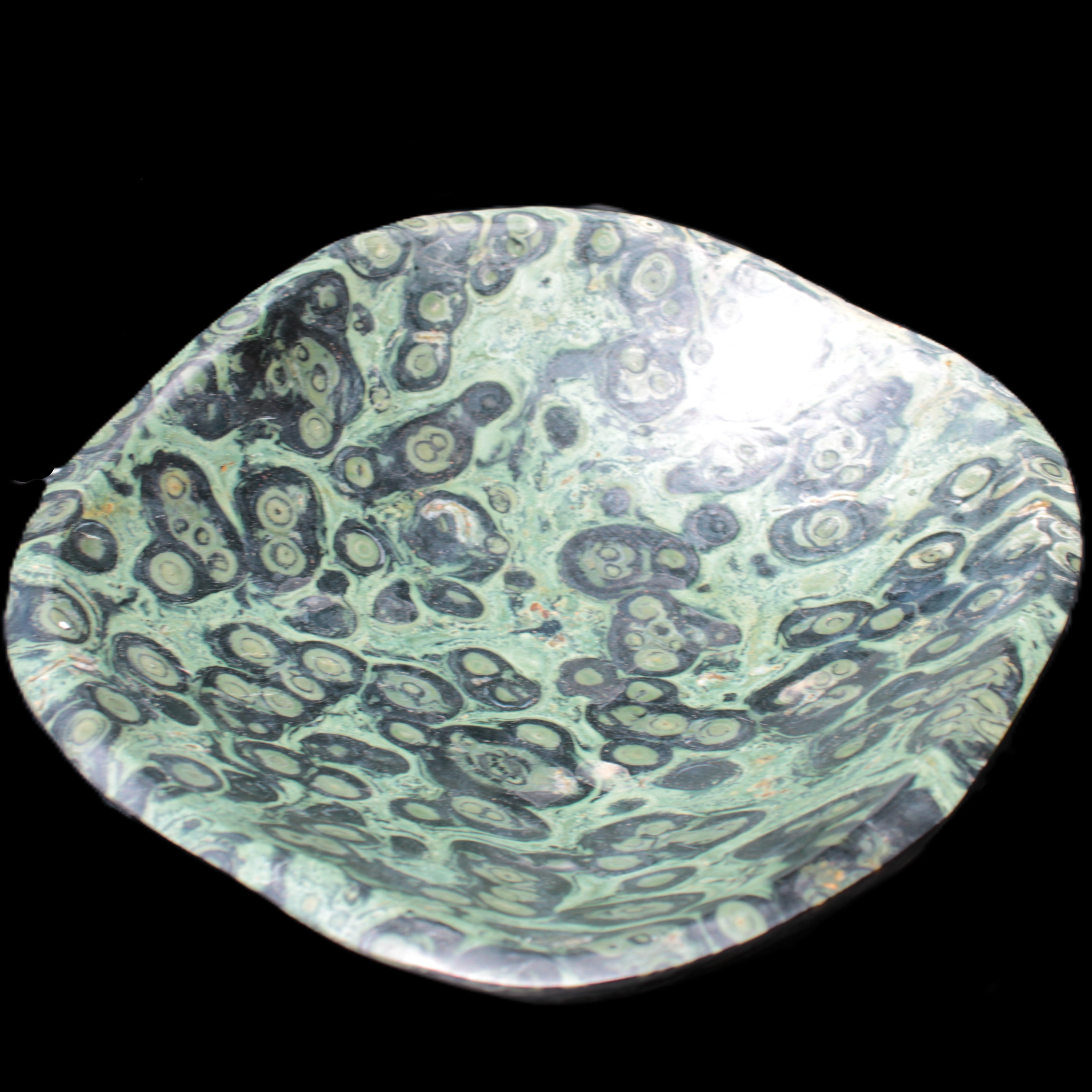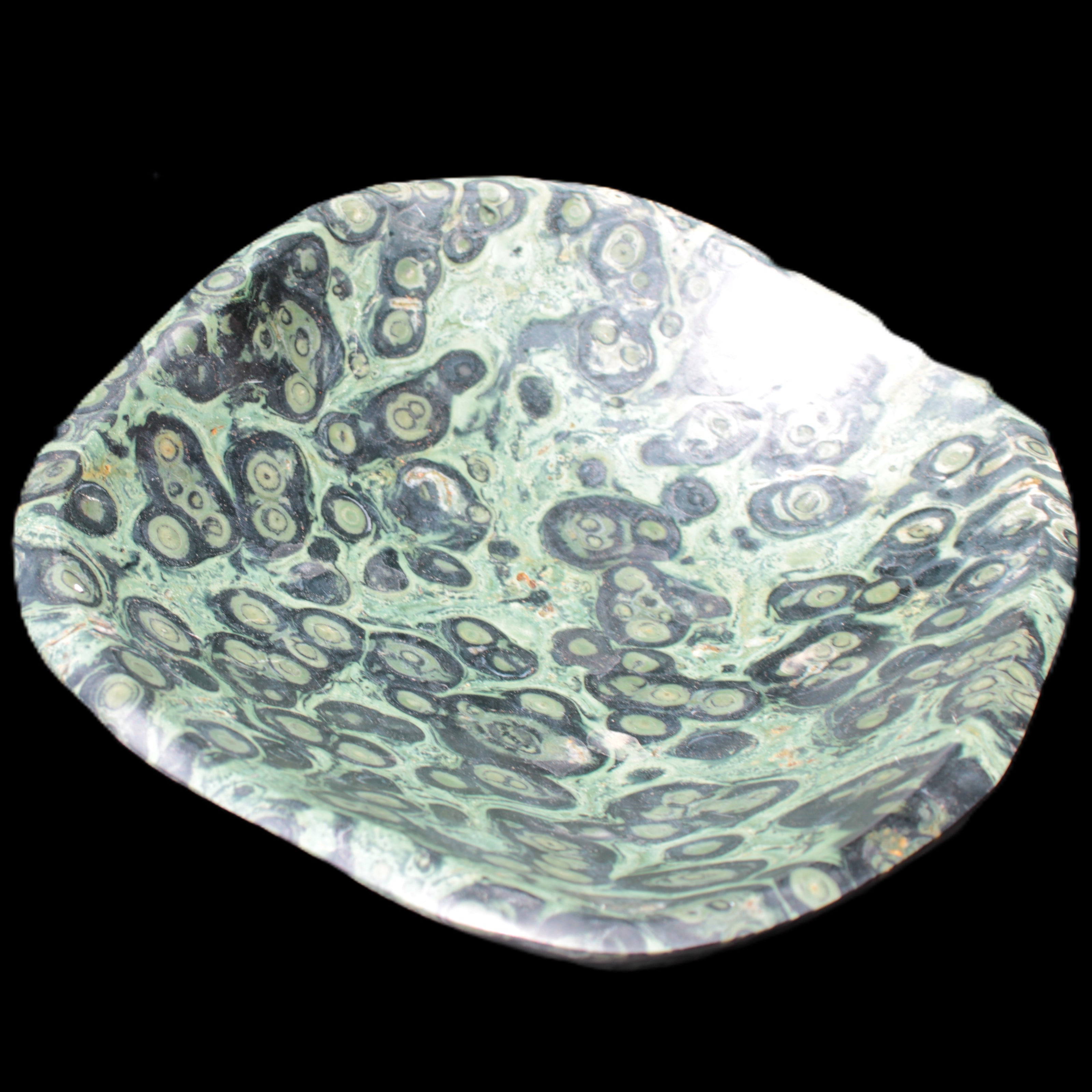 This Kambaba Jasper bowl 203*203*49mm weighs 1960g. It is slightly irregular due to its hand carving from natural stone. It has a solid base that will withstand careful use as a decorative or functional bowl.
