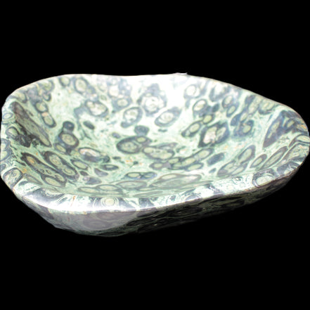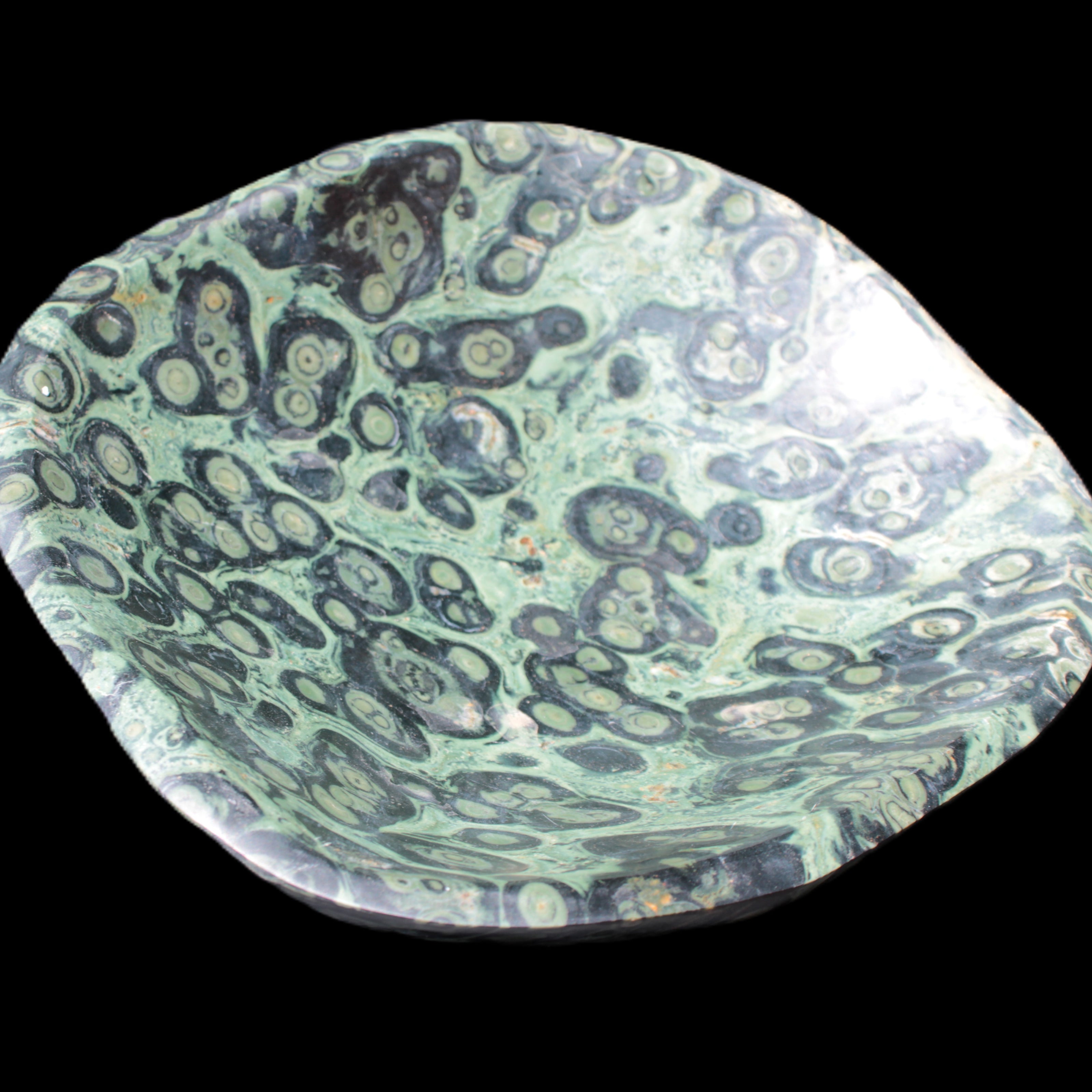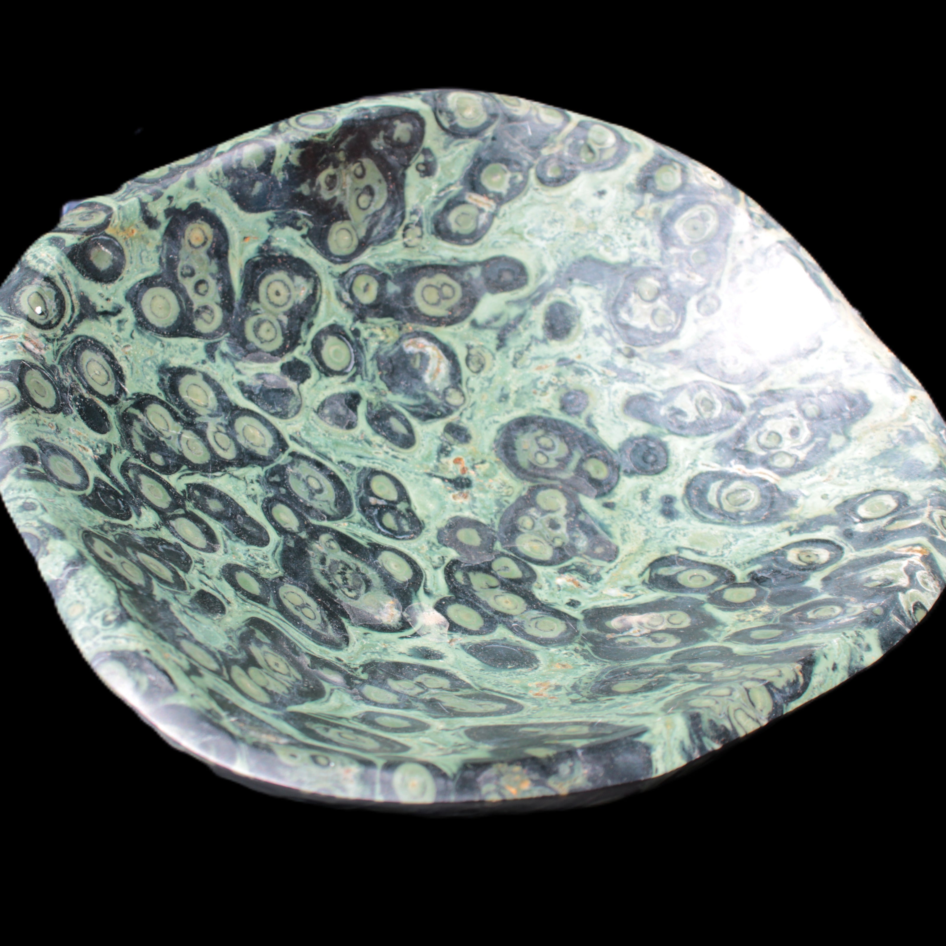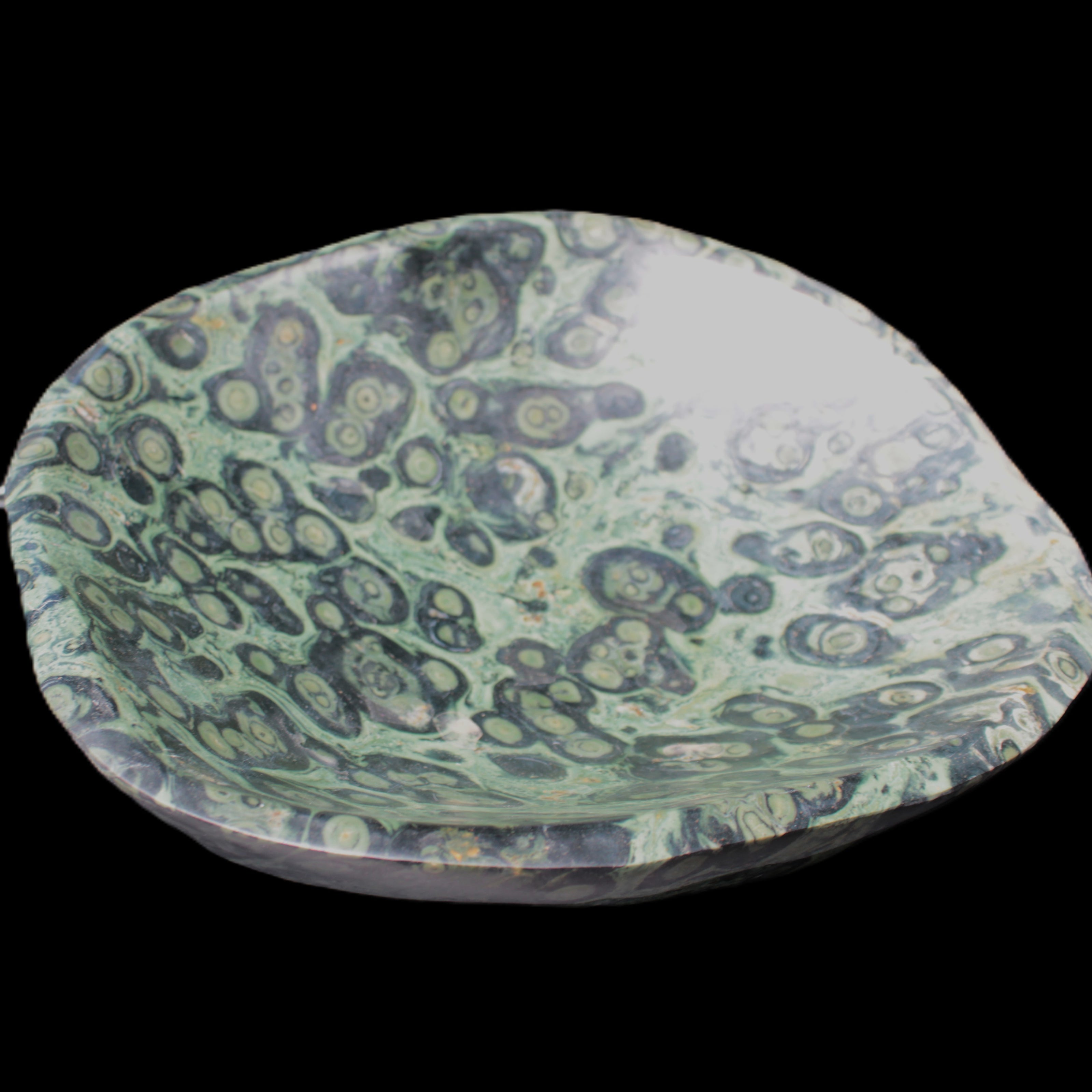 This Kambaba Jasper bowl 203*203*49mm weighs 1960g. It is slightly irregular due to its hand carving from natural stone. It has a solid base that will withstand careful use as a decorative or functional bowl.