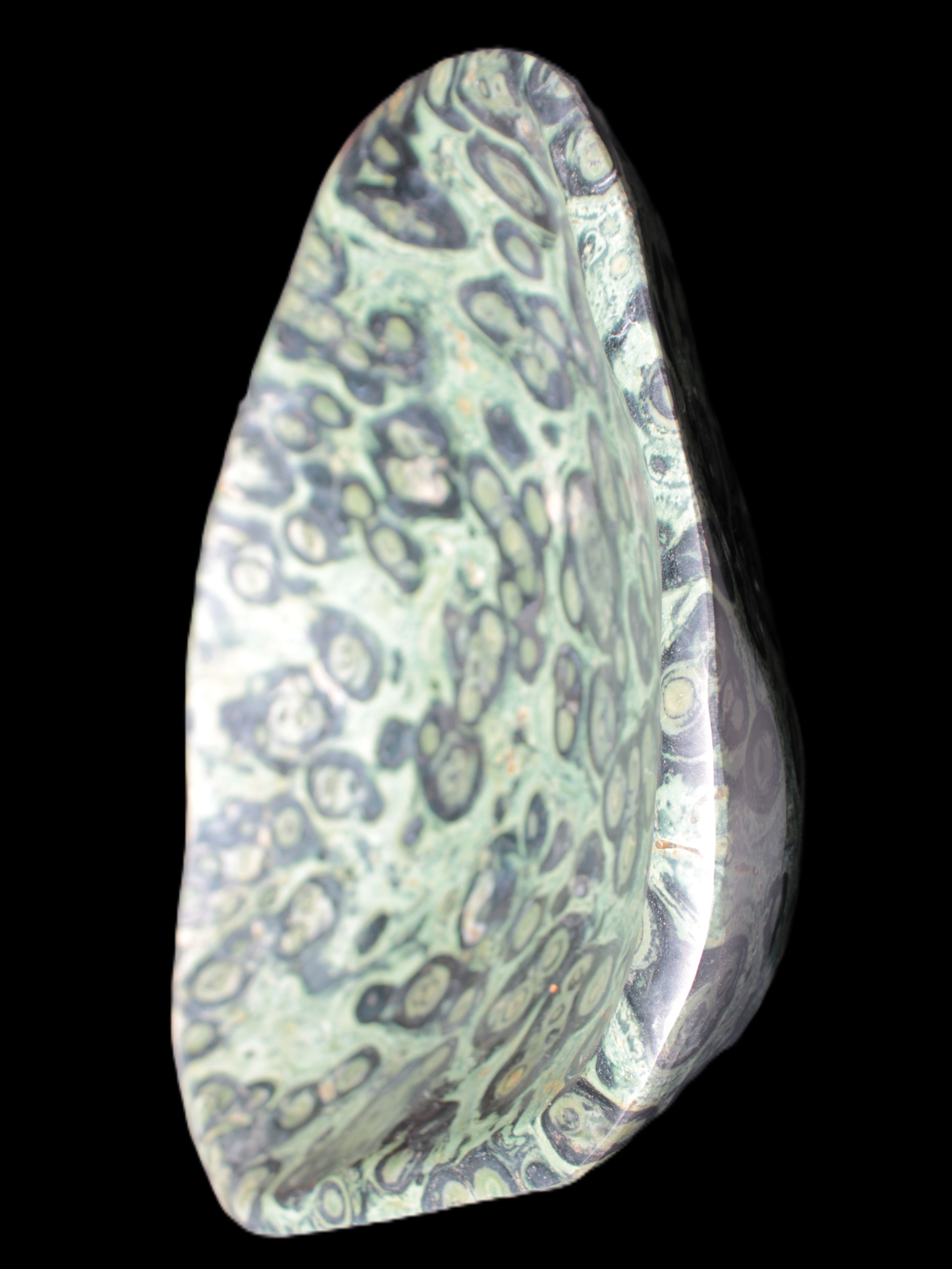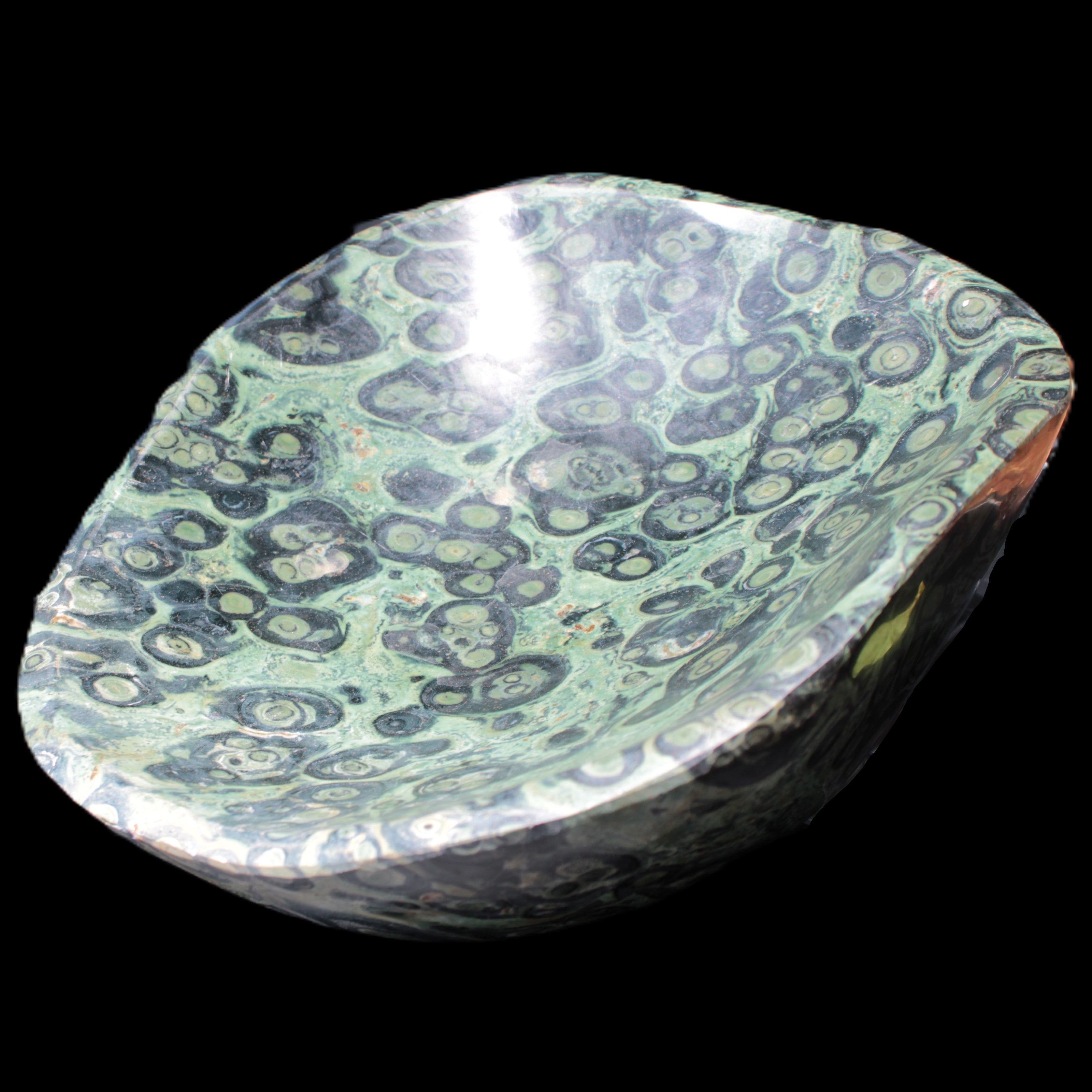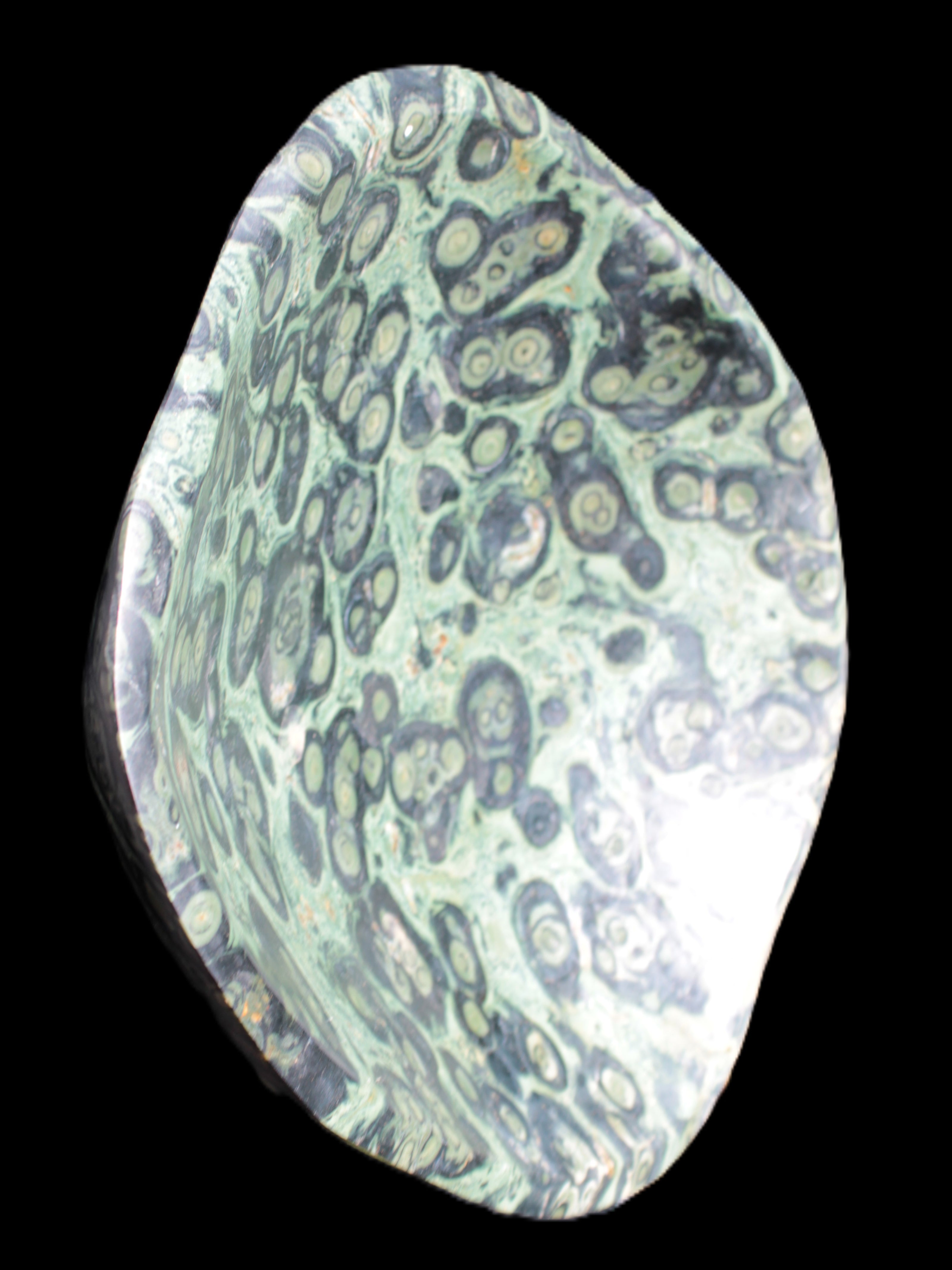 Kambaba Jasper is the fossilised remains of one of Earth’s oldest lifeforms, Stromatolite algal reefs that began living on Earth about three-billion years ago. Kambaba Jasper is sometimes confused with Malachite or the rare Nebula Stone.