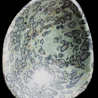This big Kambaba Jasper hand-carved basin 240*197*95mm weighs 4680g. Kambaba Jasper is the fossilised remains of one of Earth’s oldest lifeforms, Stromatolite algal reefs that began living on Earth about three-billion years ago. Kambaba Jasper is sometimes confused with Malachite or the rare Nebula Stone.