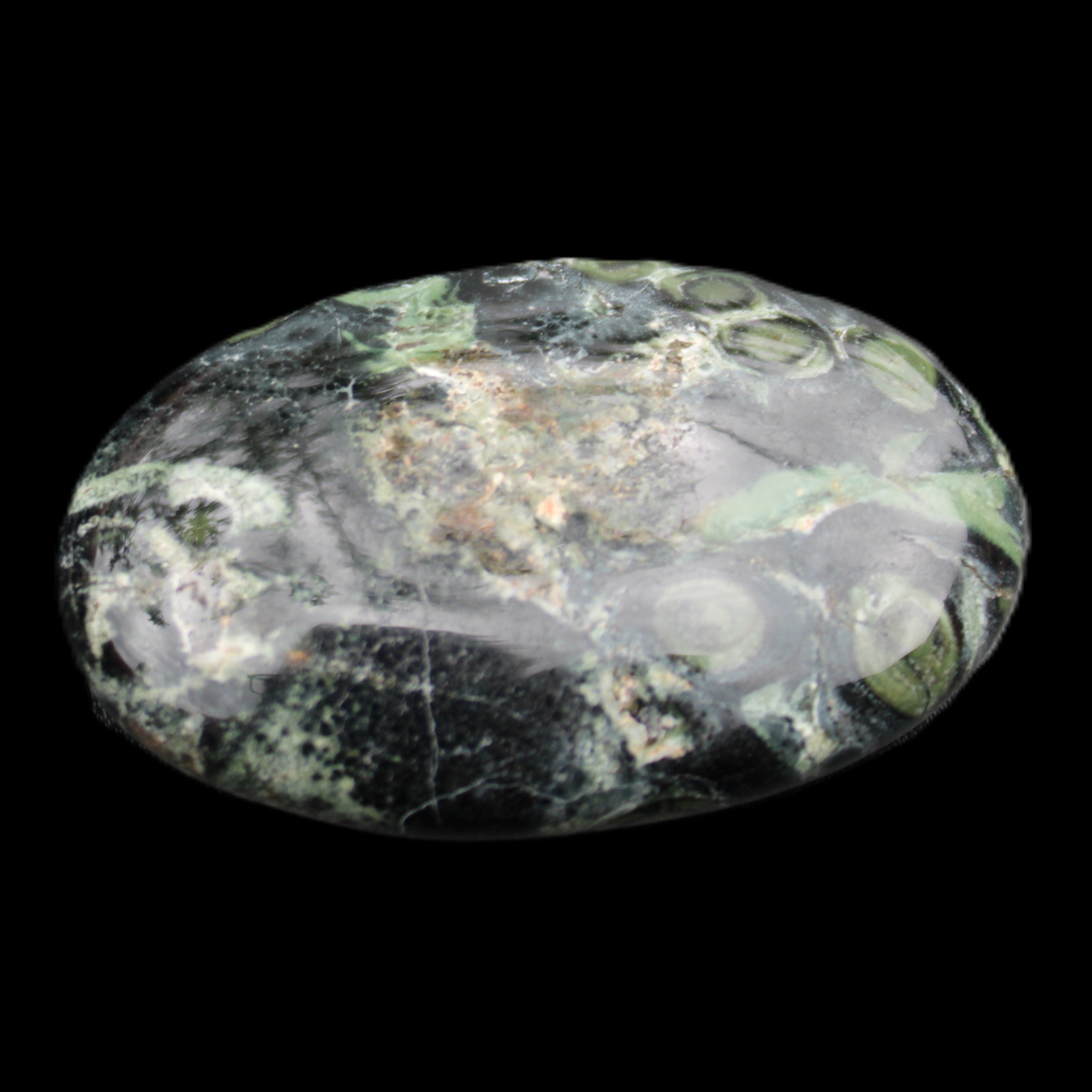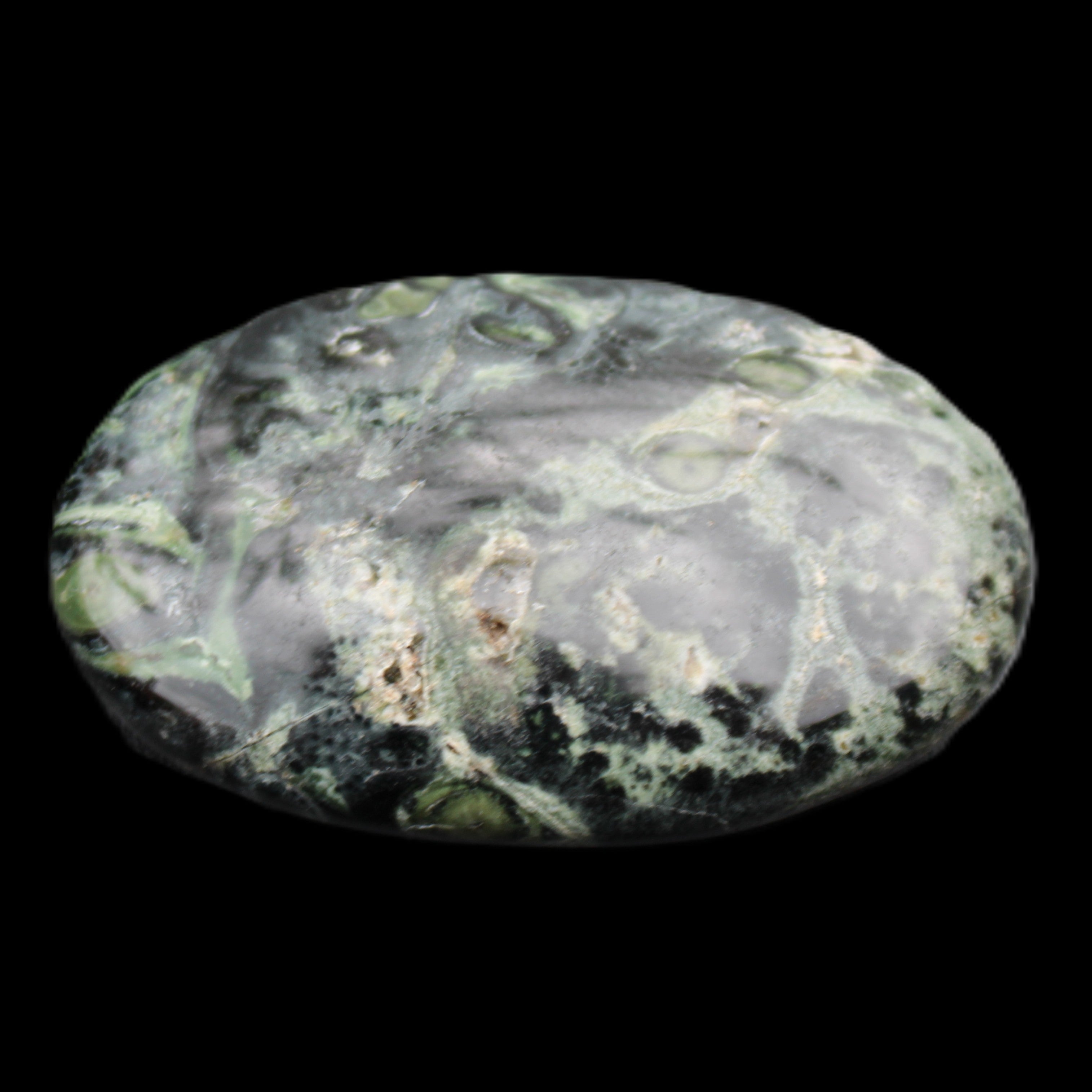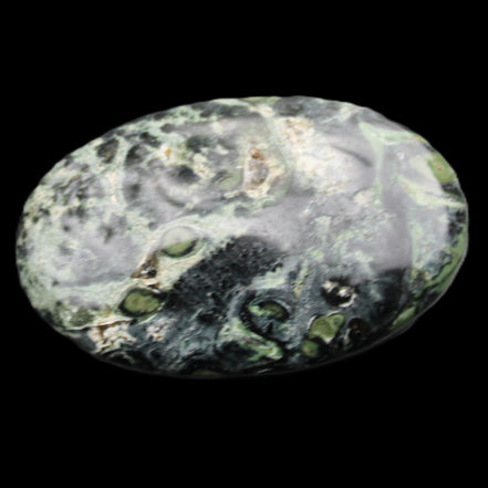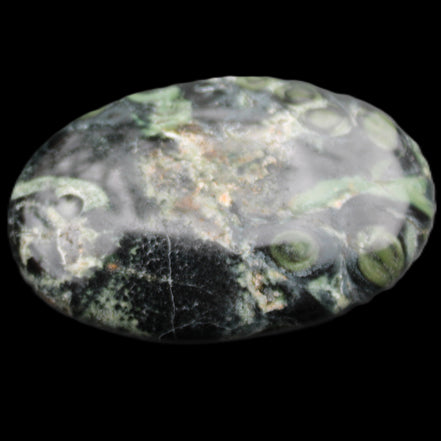 The black circles and the dark green swirls on the stone represent comfort and protection. It has aligning, grounding and cleansing energies. These provide calm, relaxation, balance and restoration.