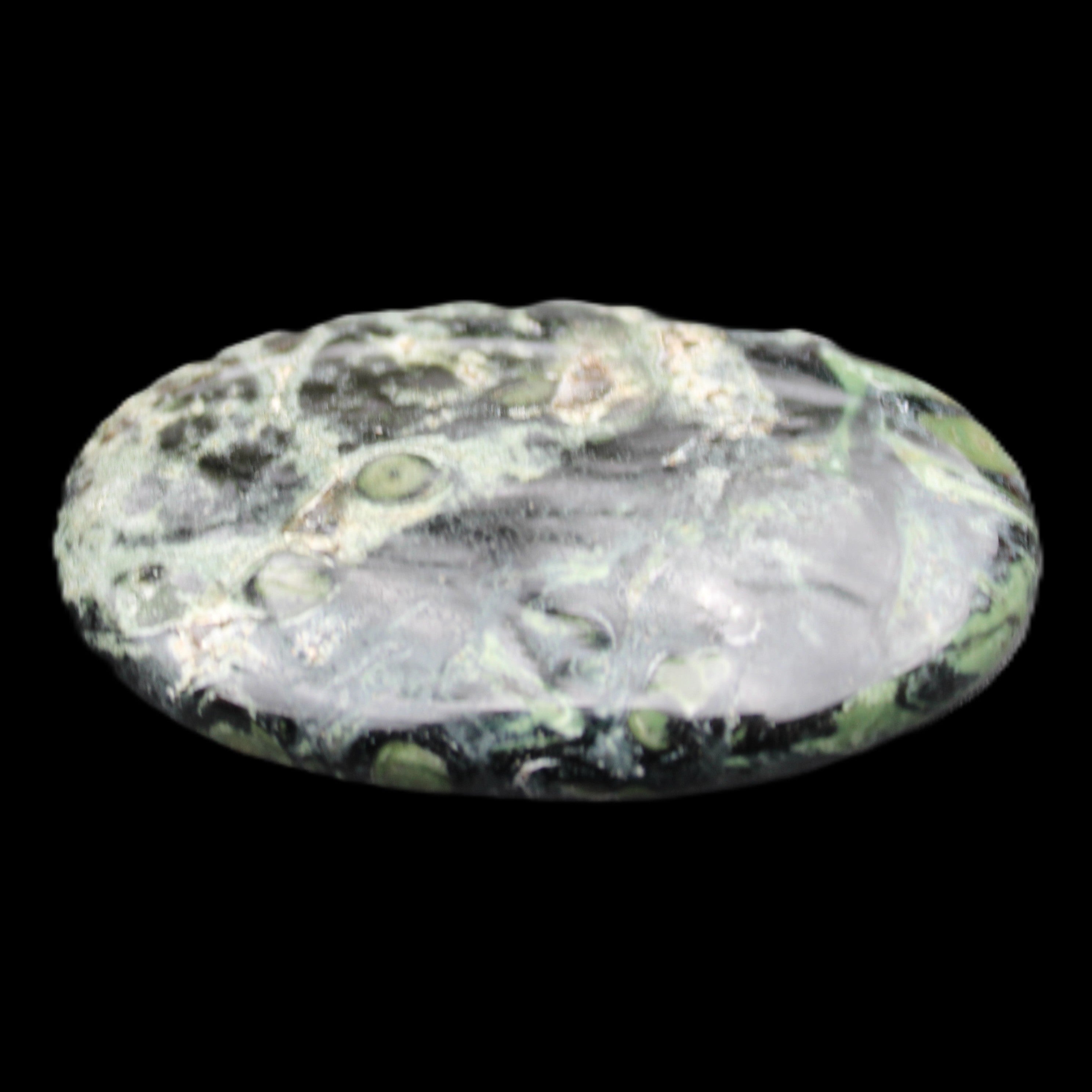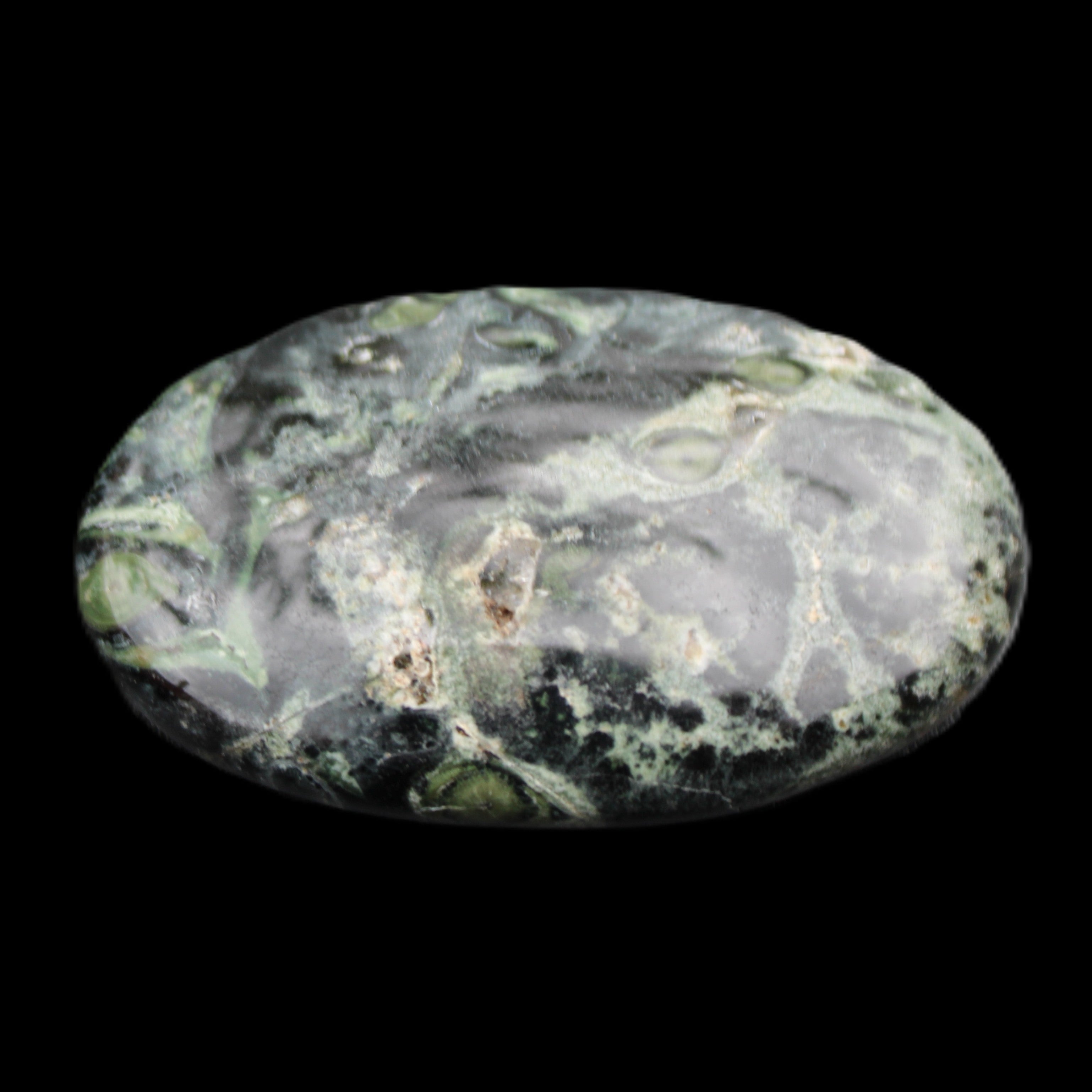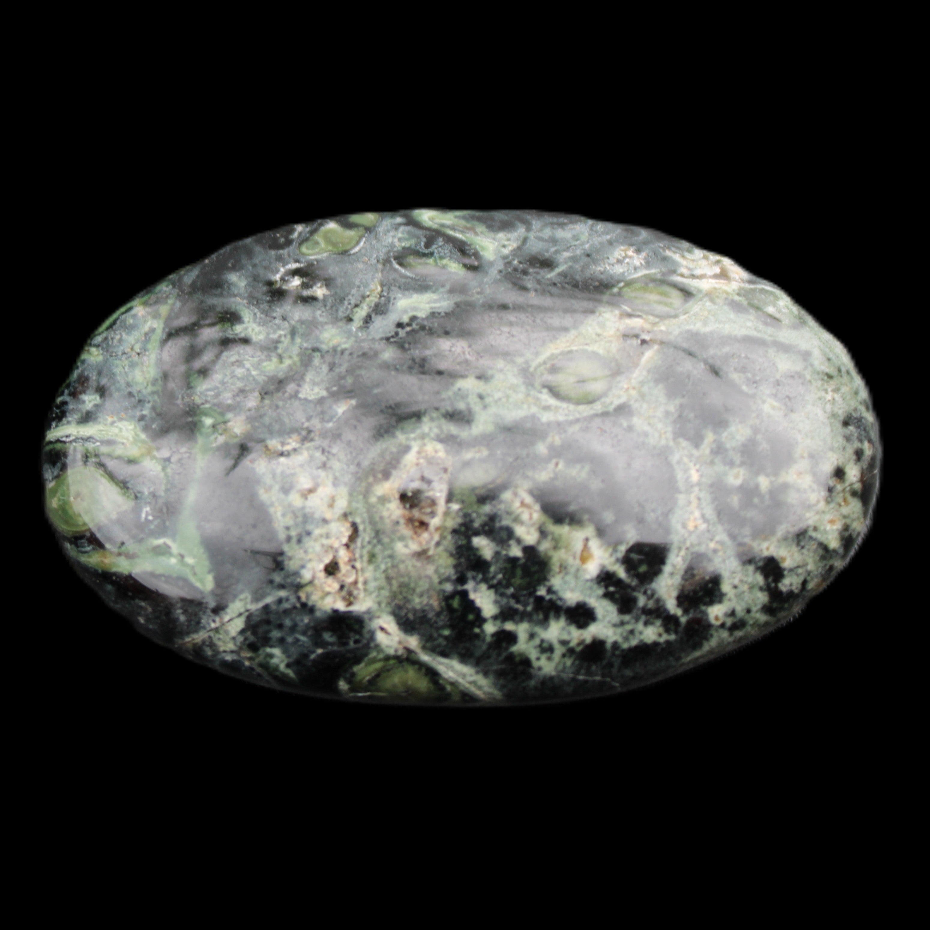 The black circles and the dark green swirls on the stone represent comfort and protection. It has aligning, grounding and cleansing energies. These provide calm, relaxation, balance and restoration.