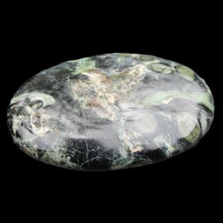 This Kambaba Jasper palmstone 55mm weighs 41g. Kambaba Jasper is the fossilised remains of one of Earth’s oldest lifeforms, Stromatolite algal reefs that began living on Earth about three-billion years ago. Kambaba Jasper is sometimes confused with Malachite or the rare Nebula Stone.