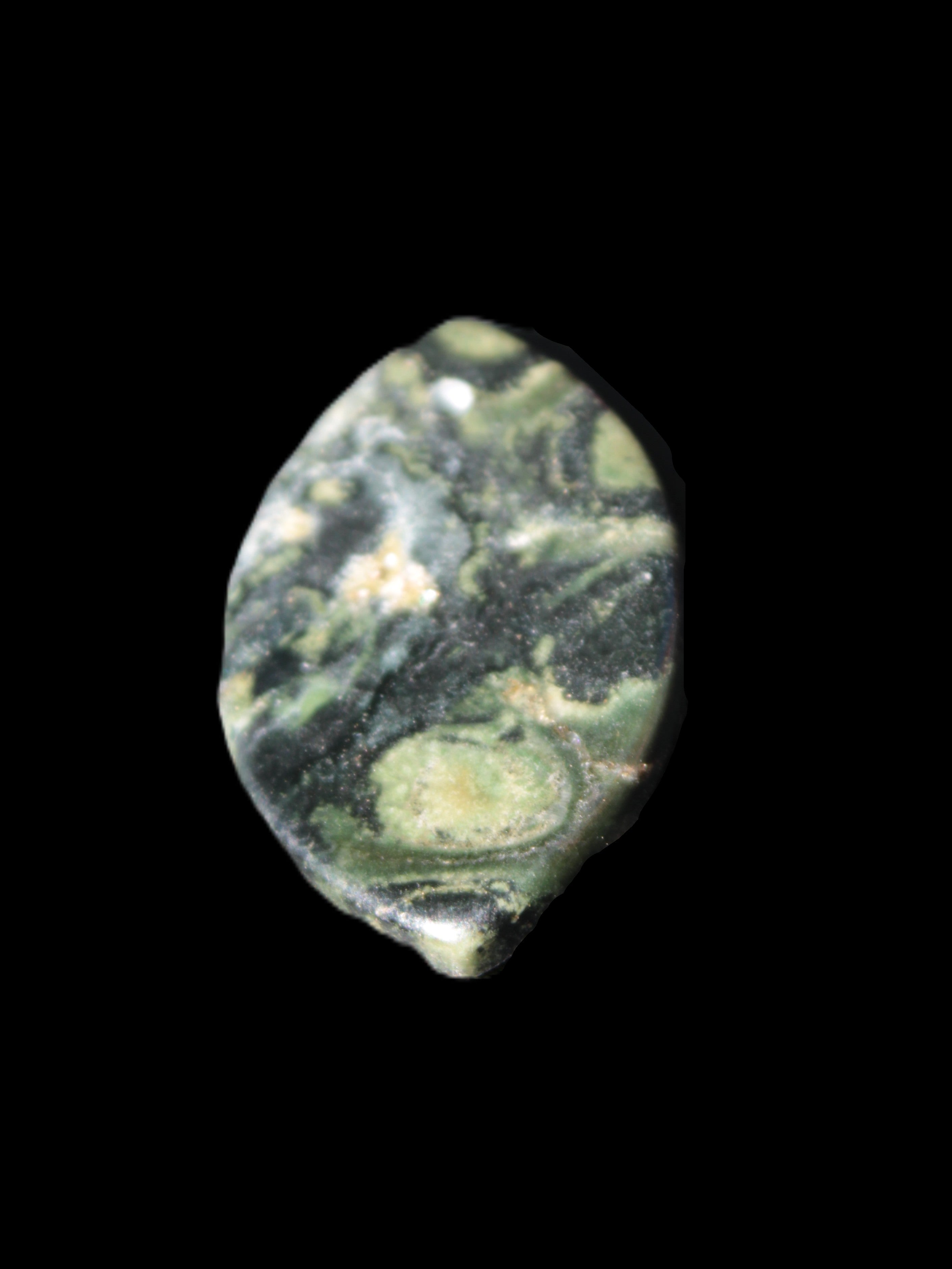 Kambaba Jasper is the fossilised remains of one of Earth’s oldest lifeforms, Stromatolite algal reefs that began living on Earth about three-billion years ago. Kambaba Jasper is sometimes confused with Malachite or the rare Nebula Stone. The black circles and the dark green swirls on the stone represent comfort and protection. It has aligning, grounding and cleansing energies. These provide calm, relaxation, balance and restoration.