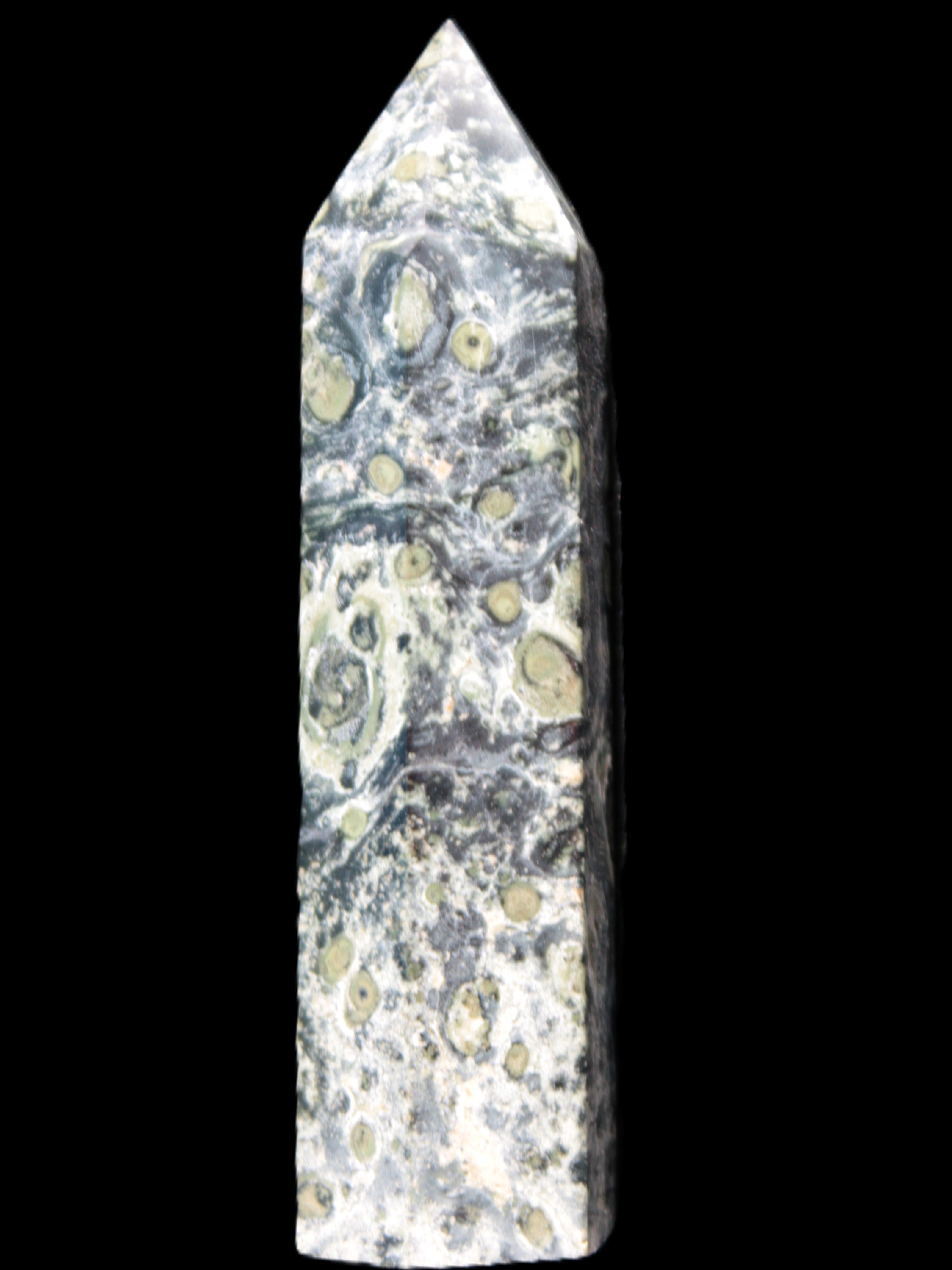 Kambaba Jasper is the fossilised remains of one of Earth’s oldest lifeforms, Stromatolite algal reefs that began living on Earth about three-billion years ago. Kambaba Jasper is sometimes confused with Malachite or the rare Nebula Stone. The black circles and the dark green swirls on the stone represent comfort and protection. It has aligning, grounding and cleansing energies. These provide calm, relaxation, balance and restoration.