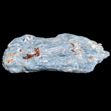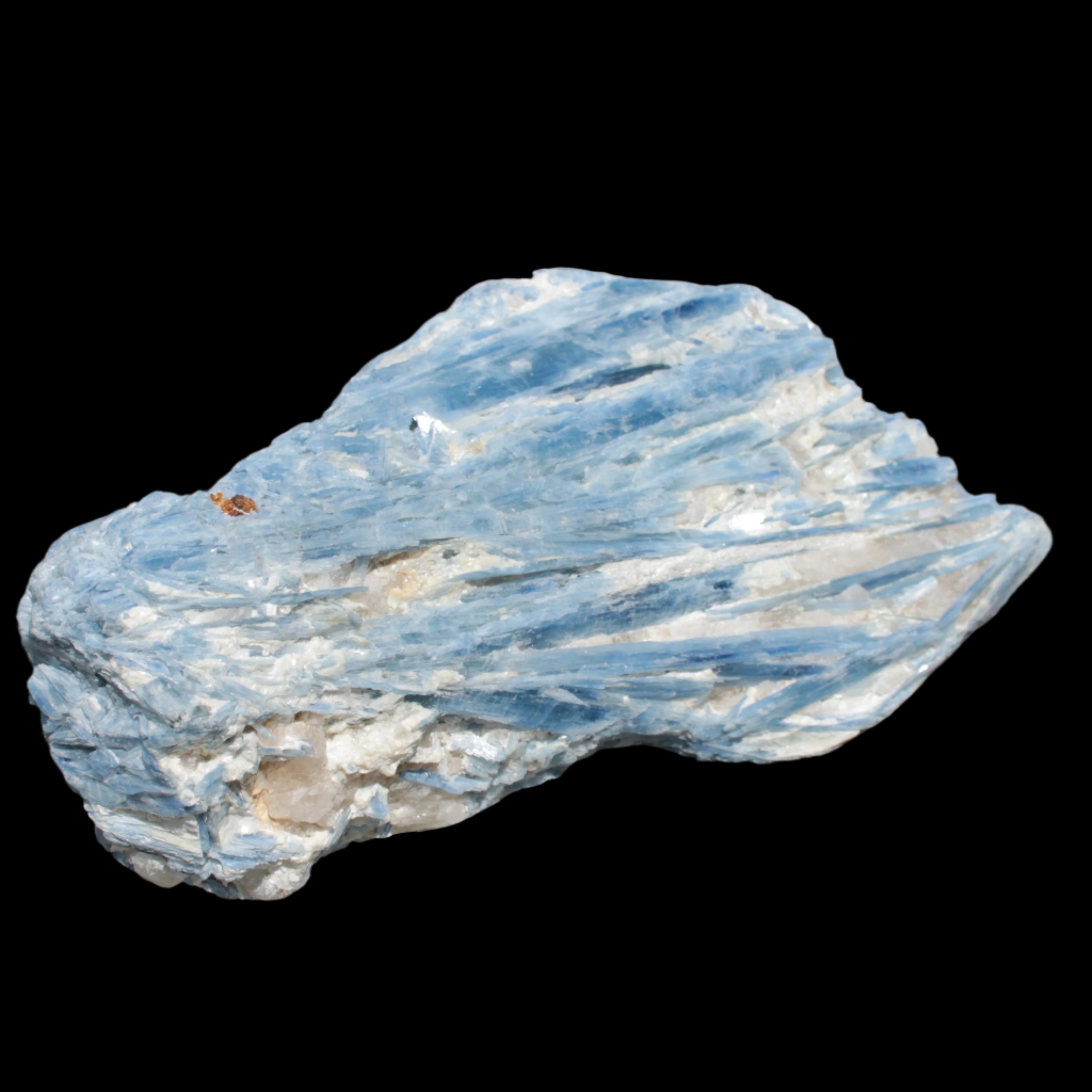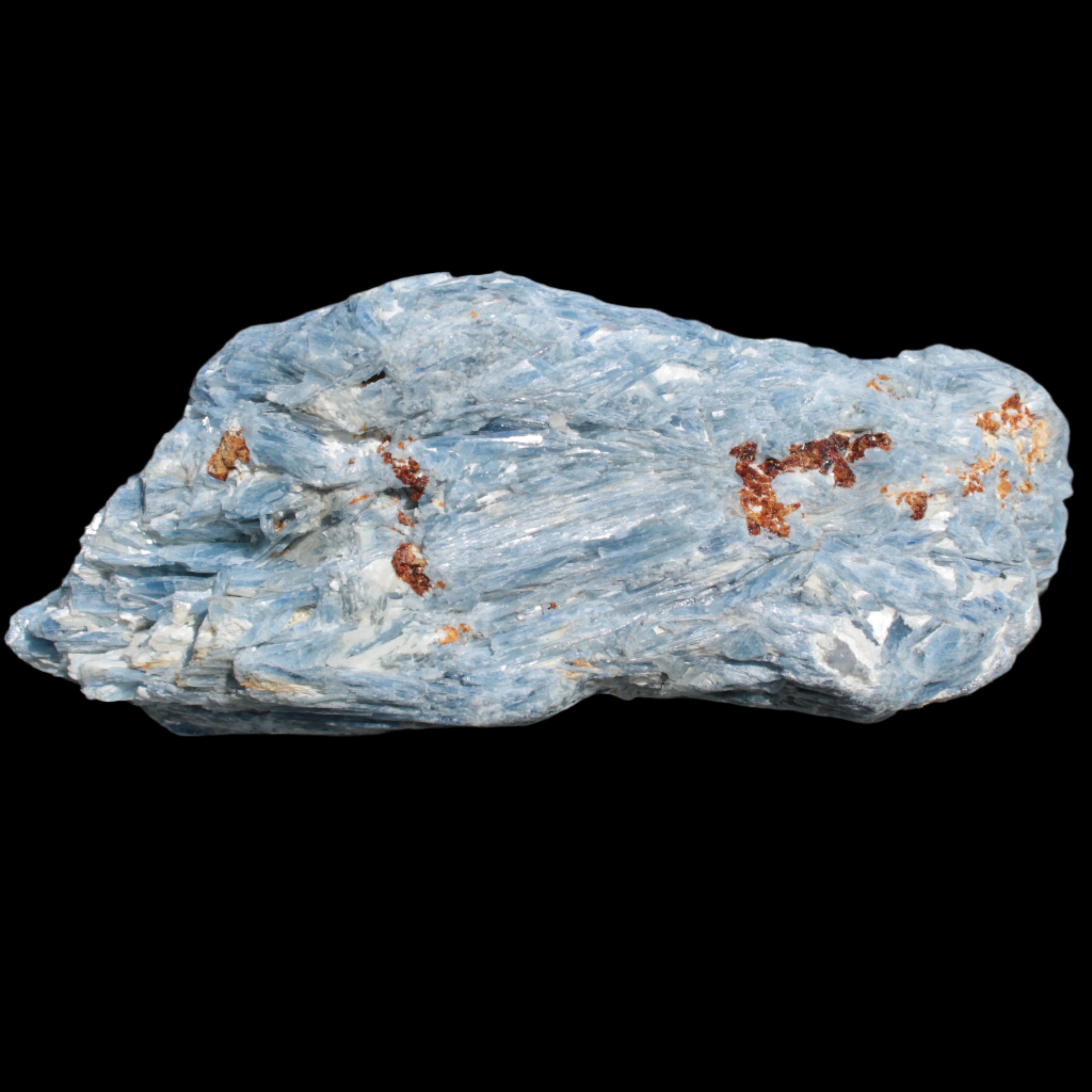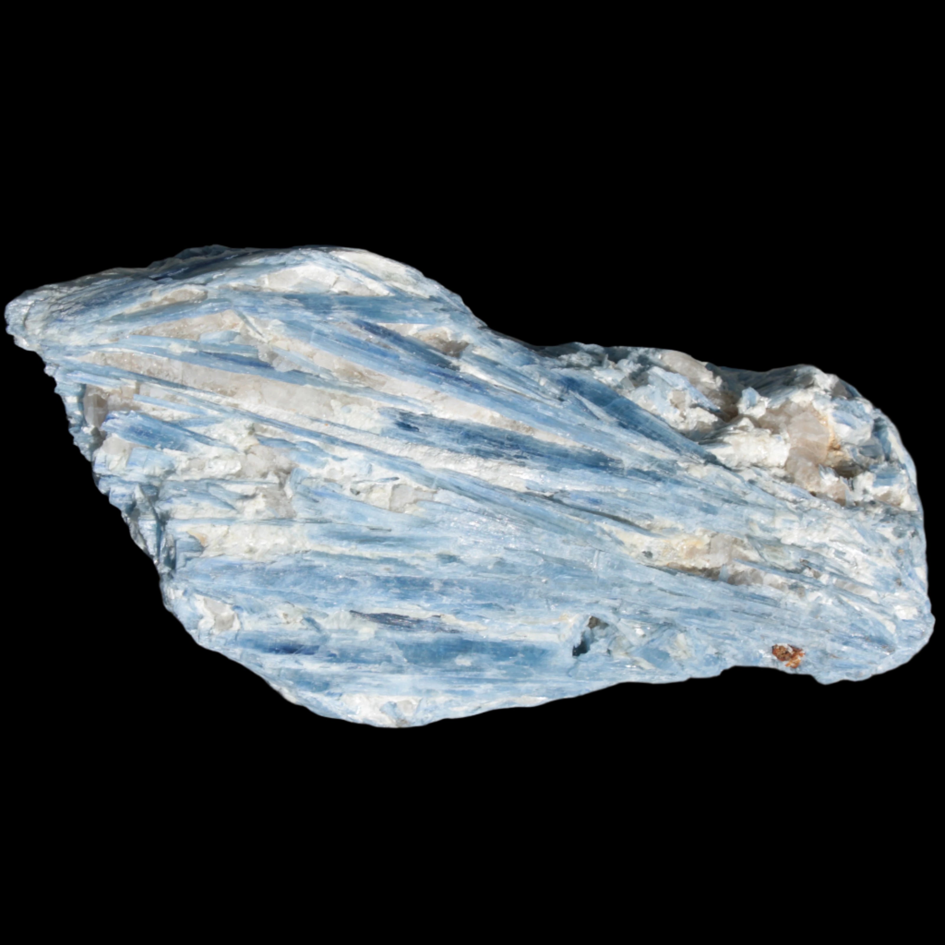 This large Kyanite cluster weighs 555g. Kyanite consists of multiple layers of thin flat blades. It has two distinct hardness ratings for its parallel and perpendicular axis. Kyanite is most commonly blue, but it may also be black, grey, green or orange.