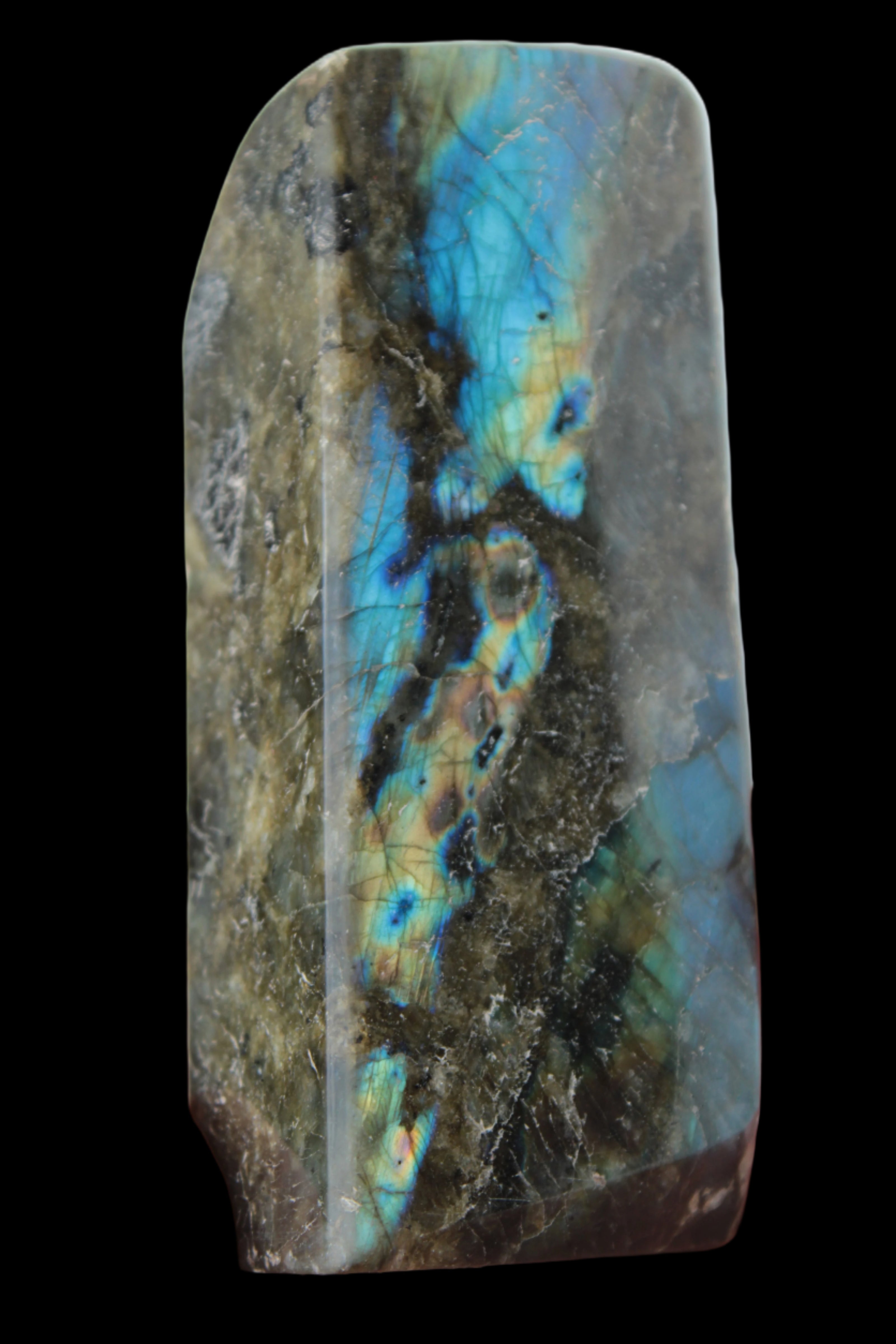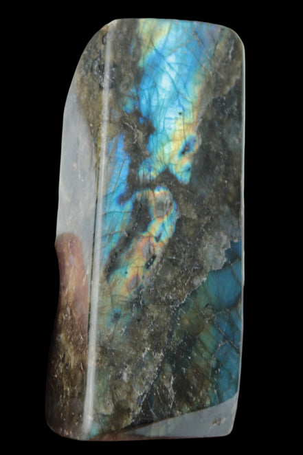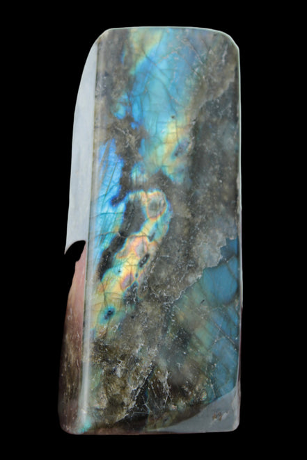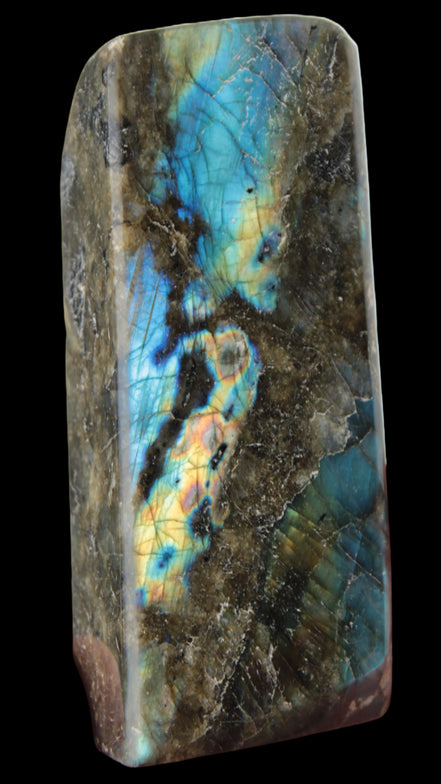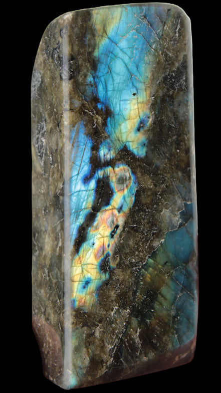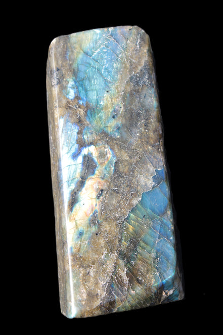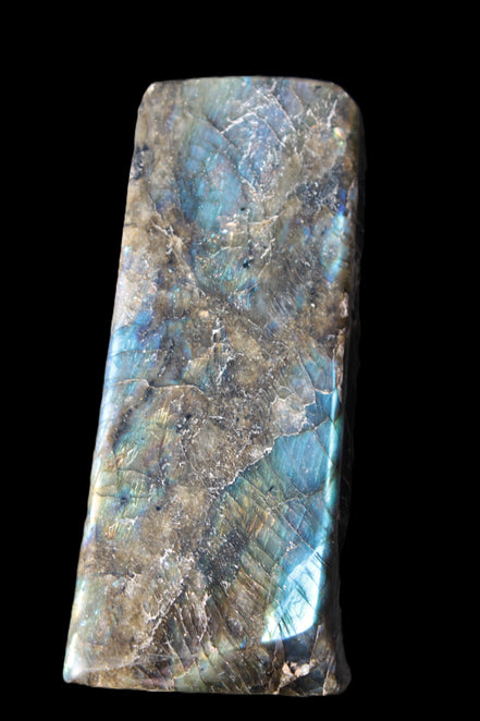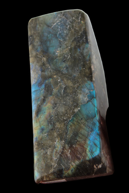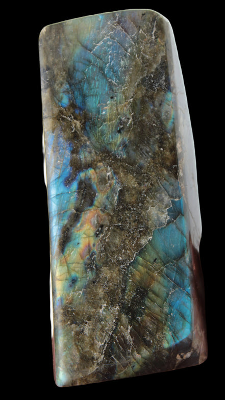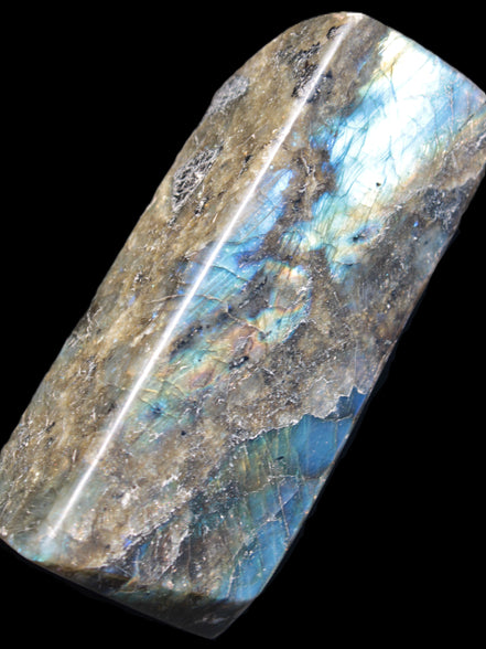 This beautiful Labradorite long freeform weighs 783g. This Labradorite with all the amazing Labradorite colours from deep within. These flashes include blue, green, gold and violet. Labradorite is a highly mystical stone that aids transformation and magic. Labradorite heightens intuition and enhances psychic abilities, making it great for working with the Third Eye Chakra. Labradorite is also very protective against negative energies, balancing, strengthening and protecting the aura and sealing the aura from energy leaks. Labradorite balances and clears. Labradorite is a stone of transformation and change. It provides clarity and insight into your destiny. Labradorite reduces anxiety and stress.