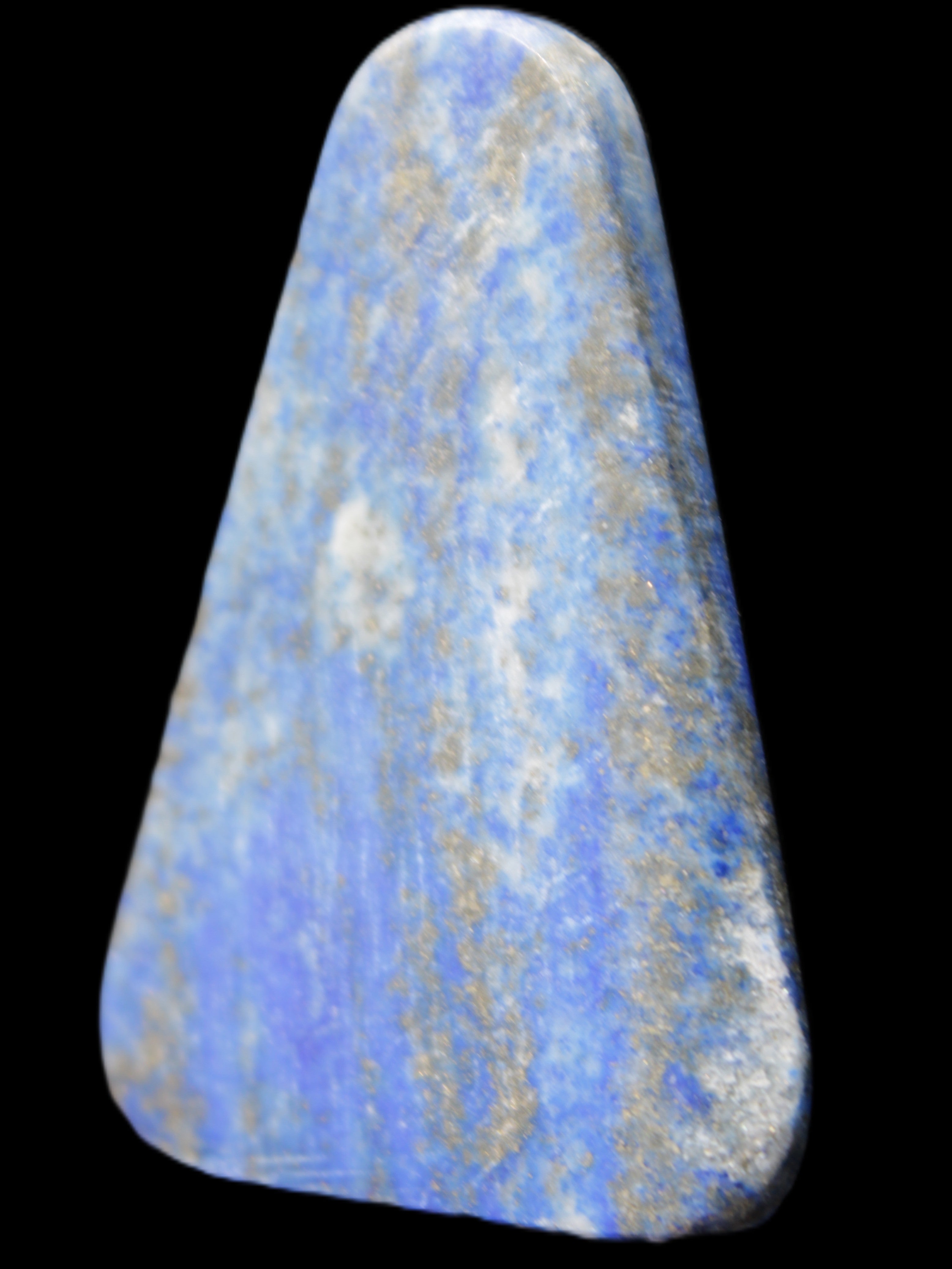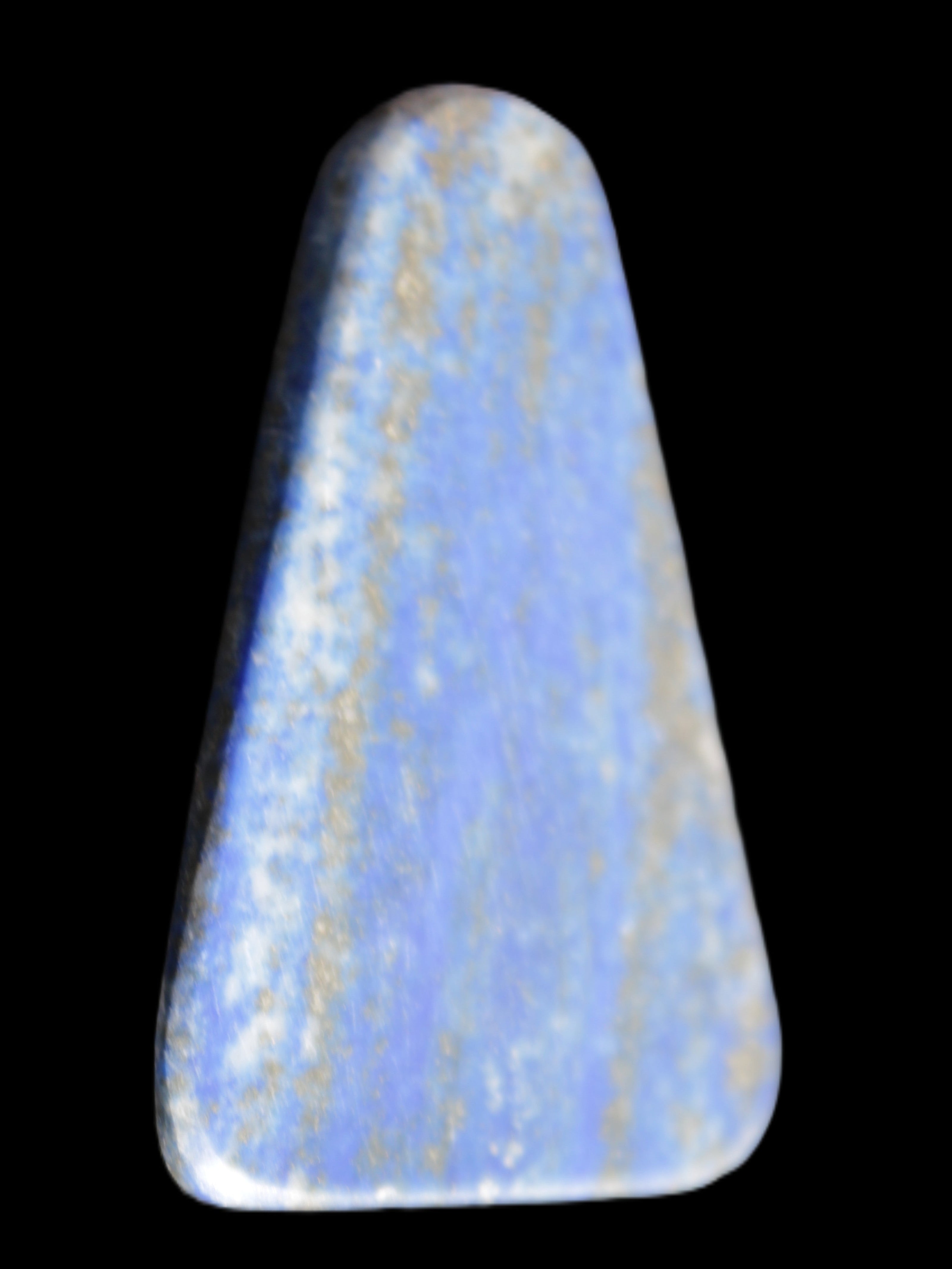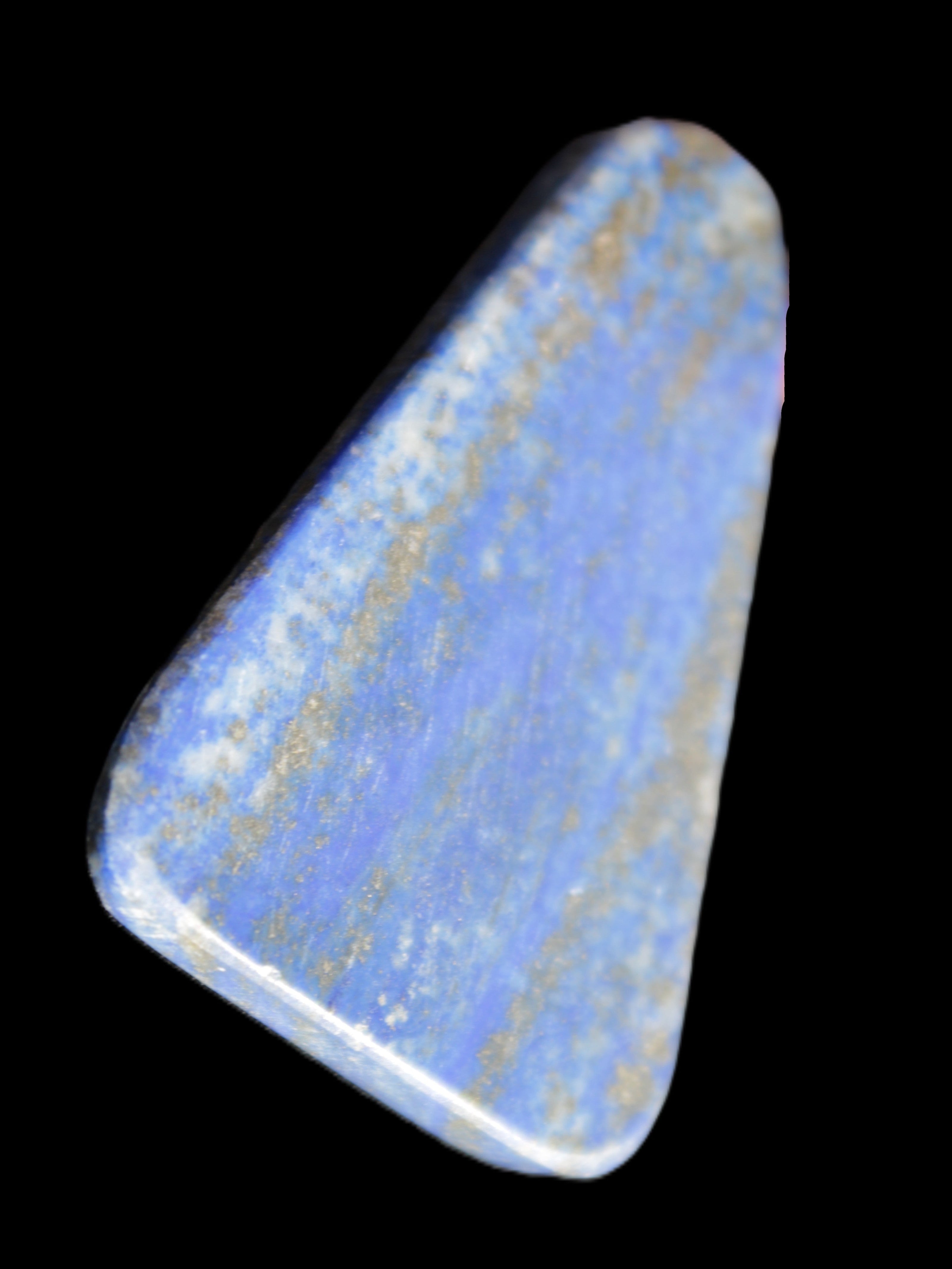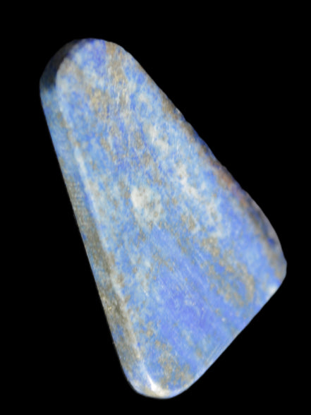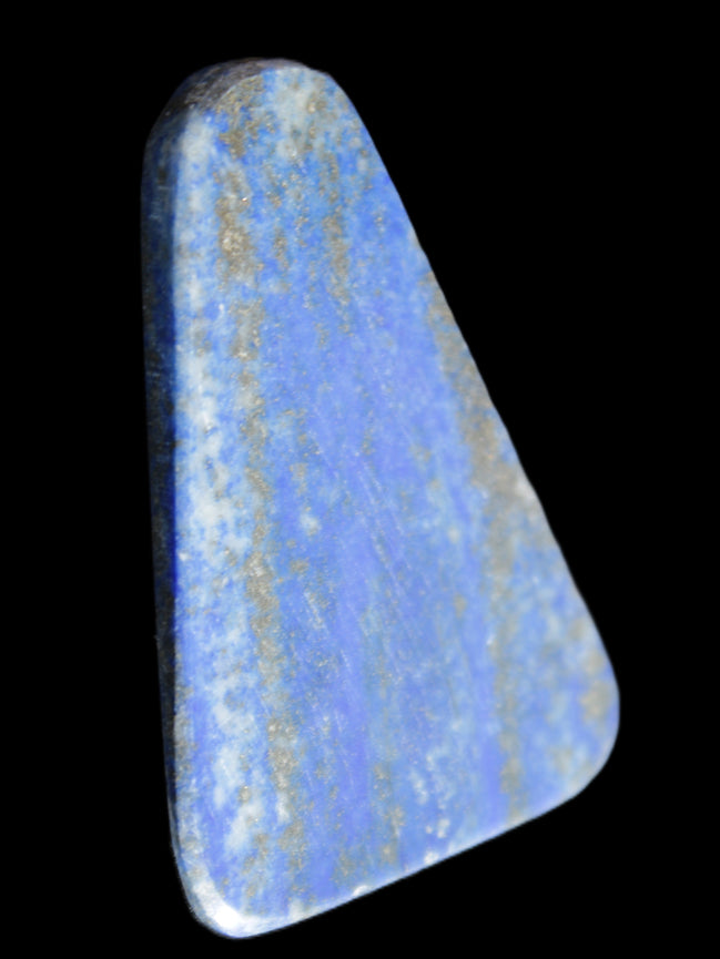 This Lapis Lazuli rounded triangular pendant shape 37*6*54mm weighs 25.2g. The pendant can be drilled or used in wire wrap or similar for stringing on a necklace. Lapis lazuli is a combination of minerals, including Lazurite, Calcite, and Pyrite. Lapis Lazuli is a deep blue stone often flecked with pyrite. It has been prized since antiquity for enhancing wisdom, inner vision, and truth-seeking.