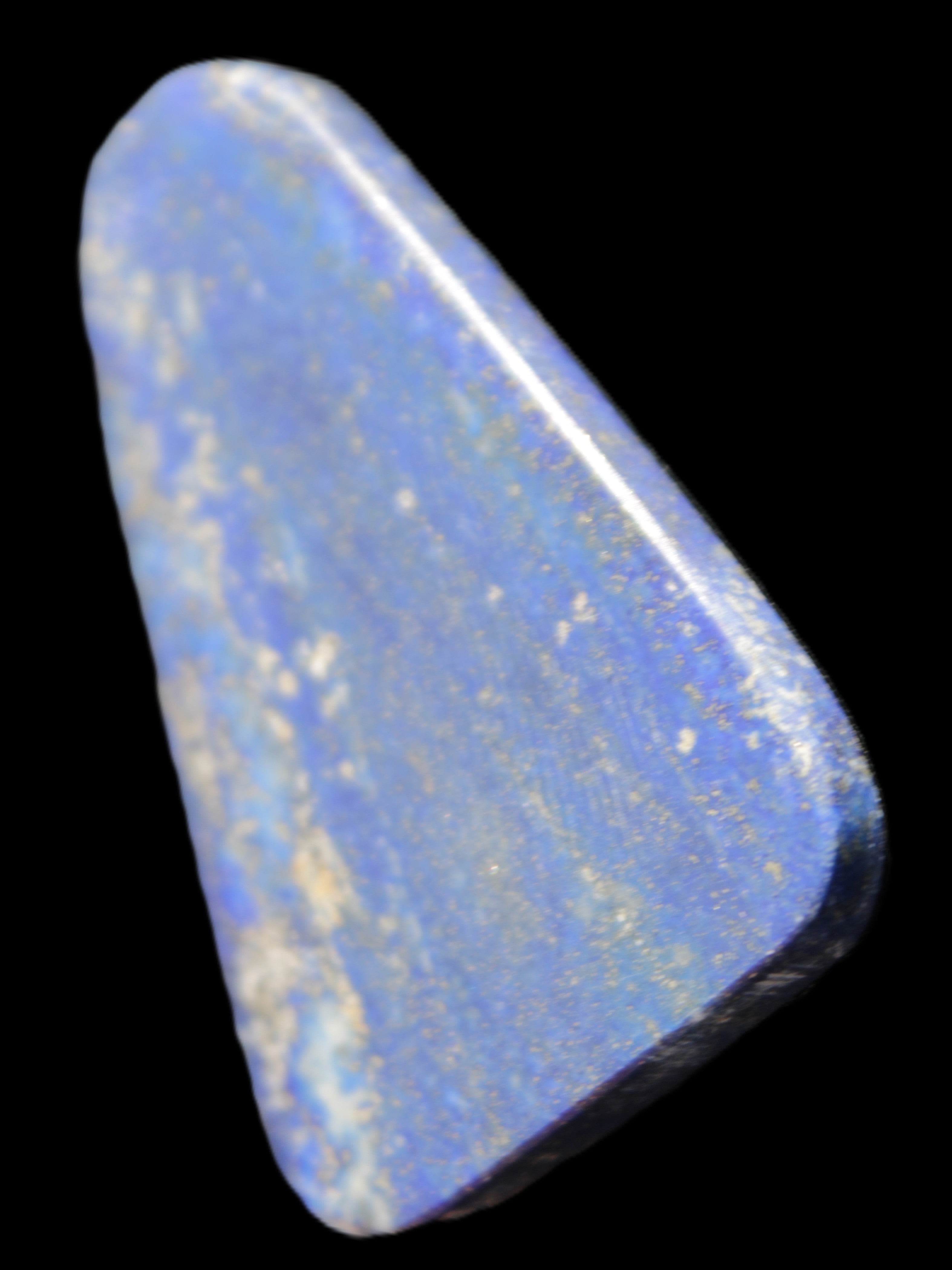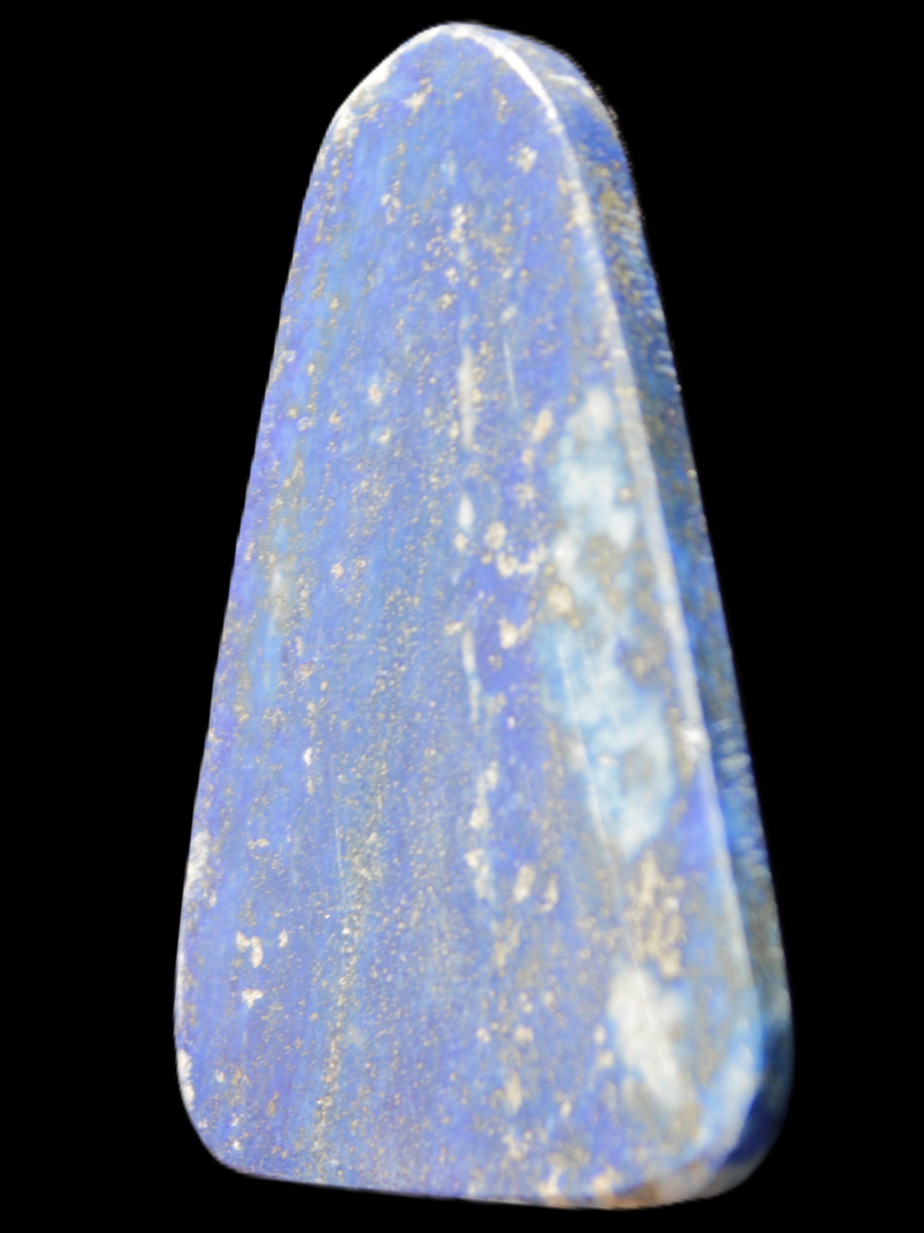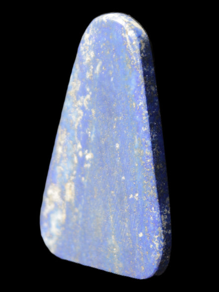 This Lapis Lazuli rounded triangular pendant shape 37*6*54mm weighs 29.5g. The pendant can be drilled or used in wire wrap or similar for stringing on a necklace. Lapis lazuli is a combination of minerals, including Lazurite, Calcite, and Pyrite. Lapis Lazuli is a deep blue stone often flecked with pyrite. It has been prized since antiquity for enhancing wisdom, inner vision, and truth-seeking.