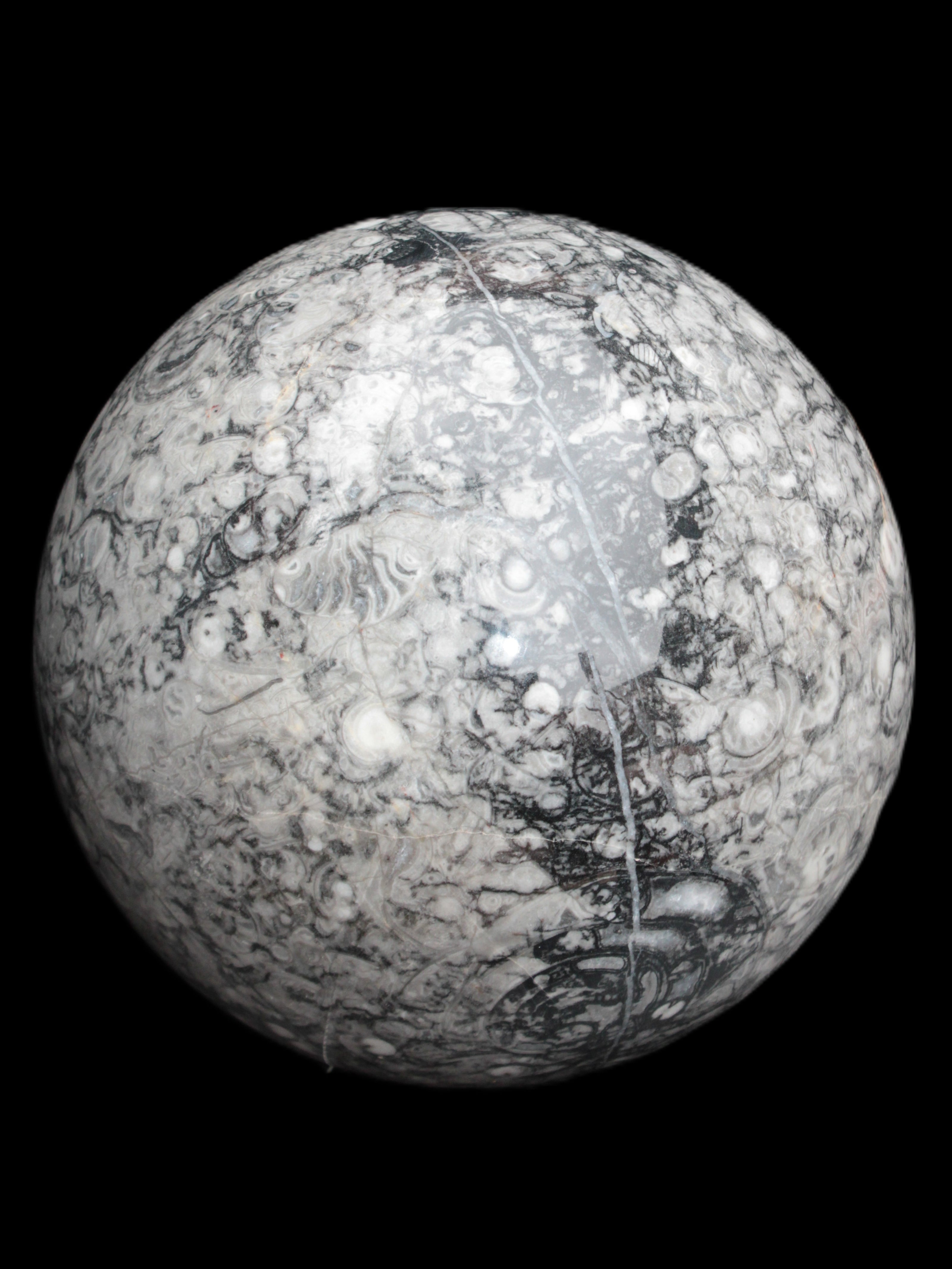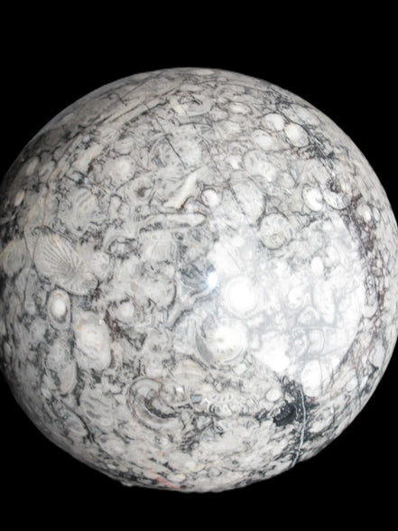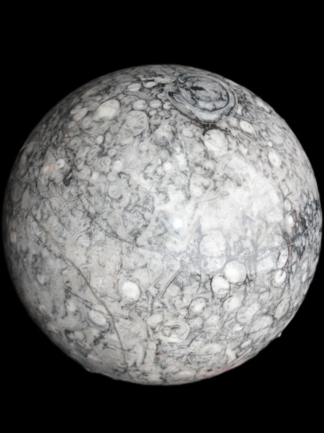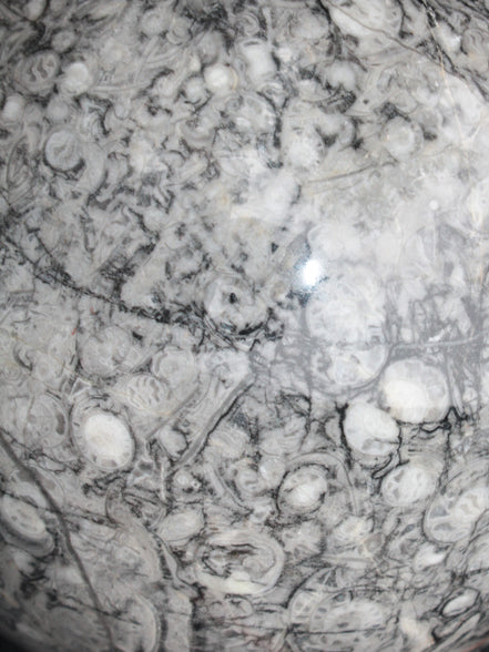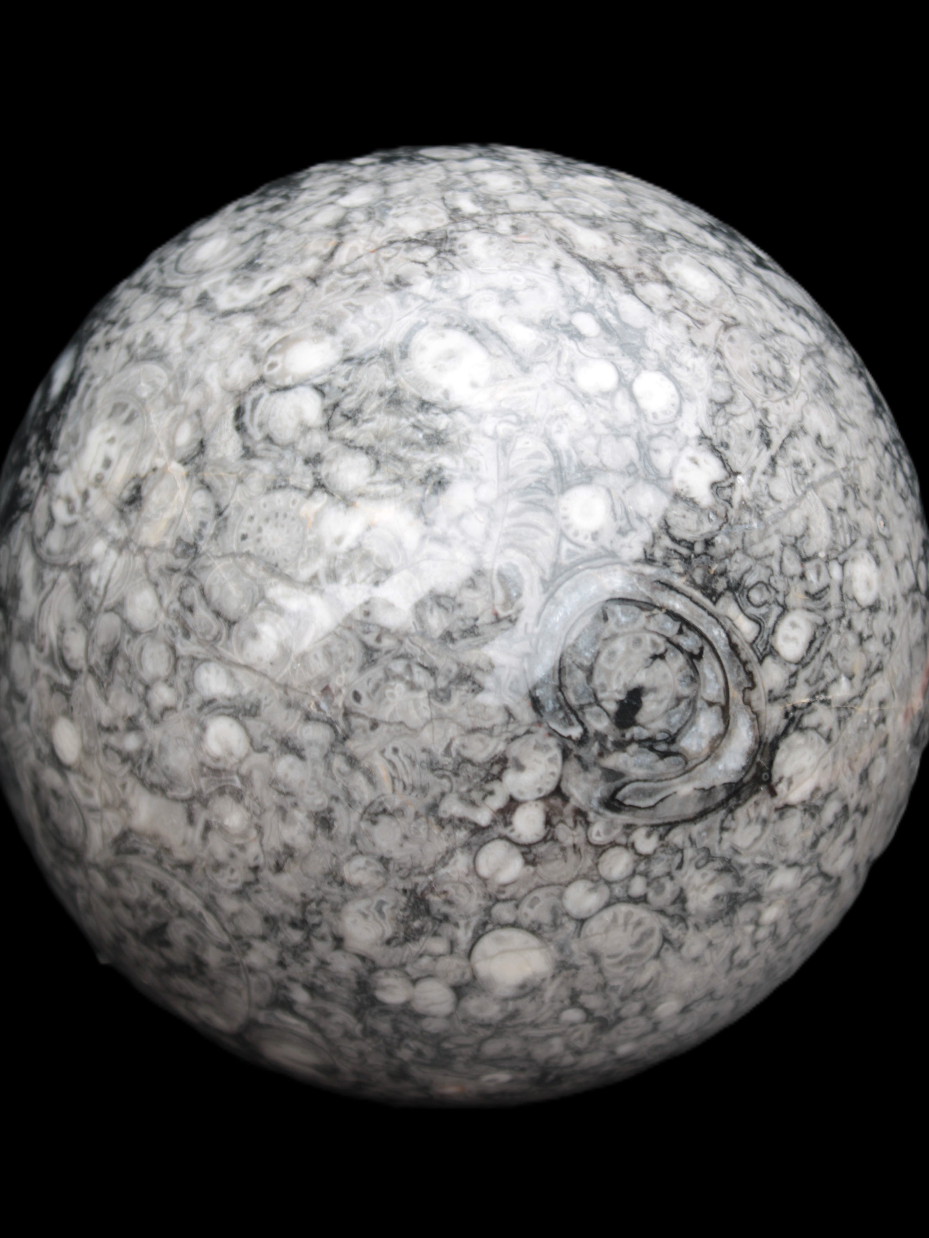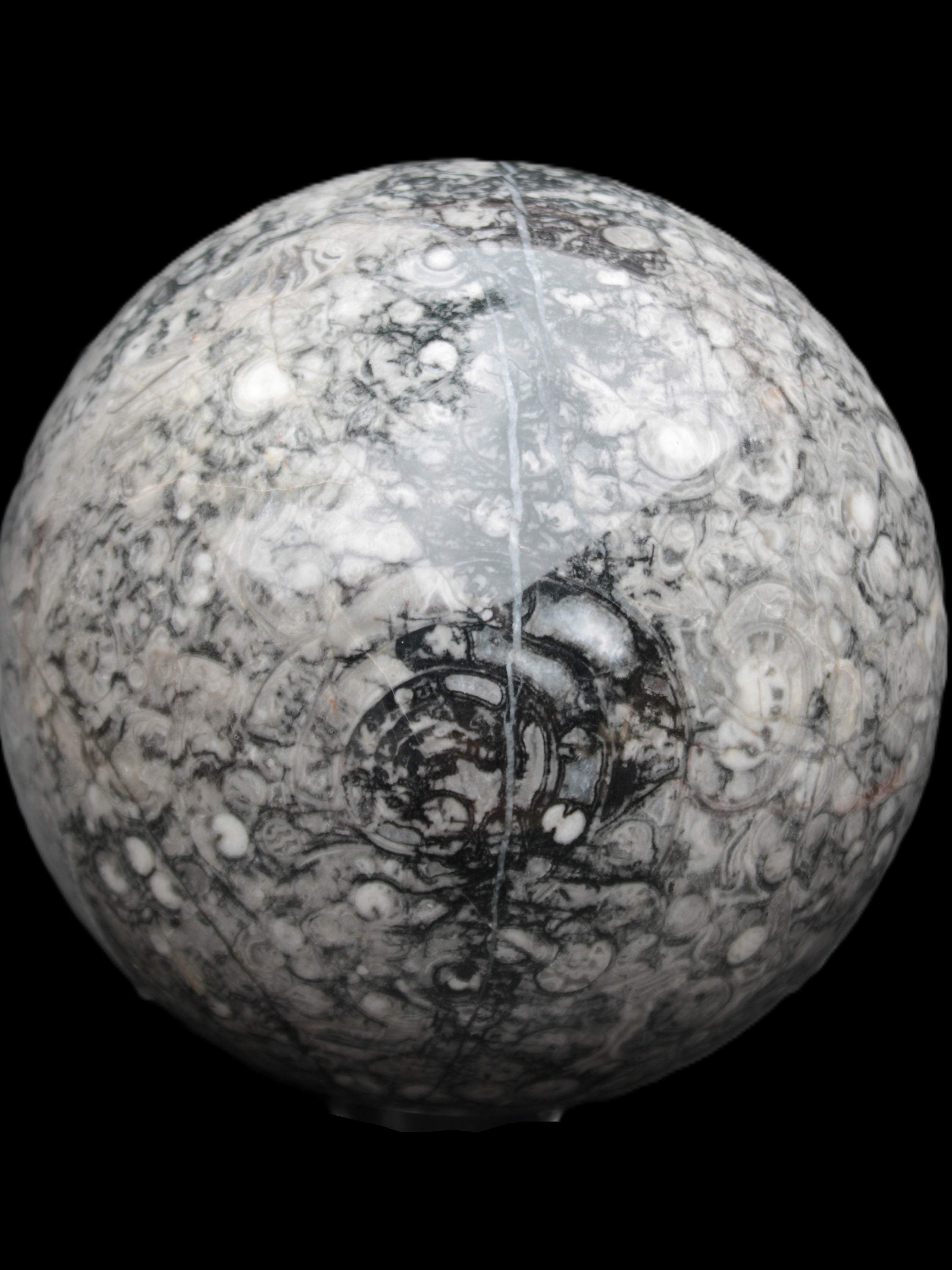 Large Fossiliferous Ammonite and Orthoceras Marble sphere 173mm 7440g