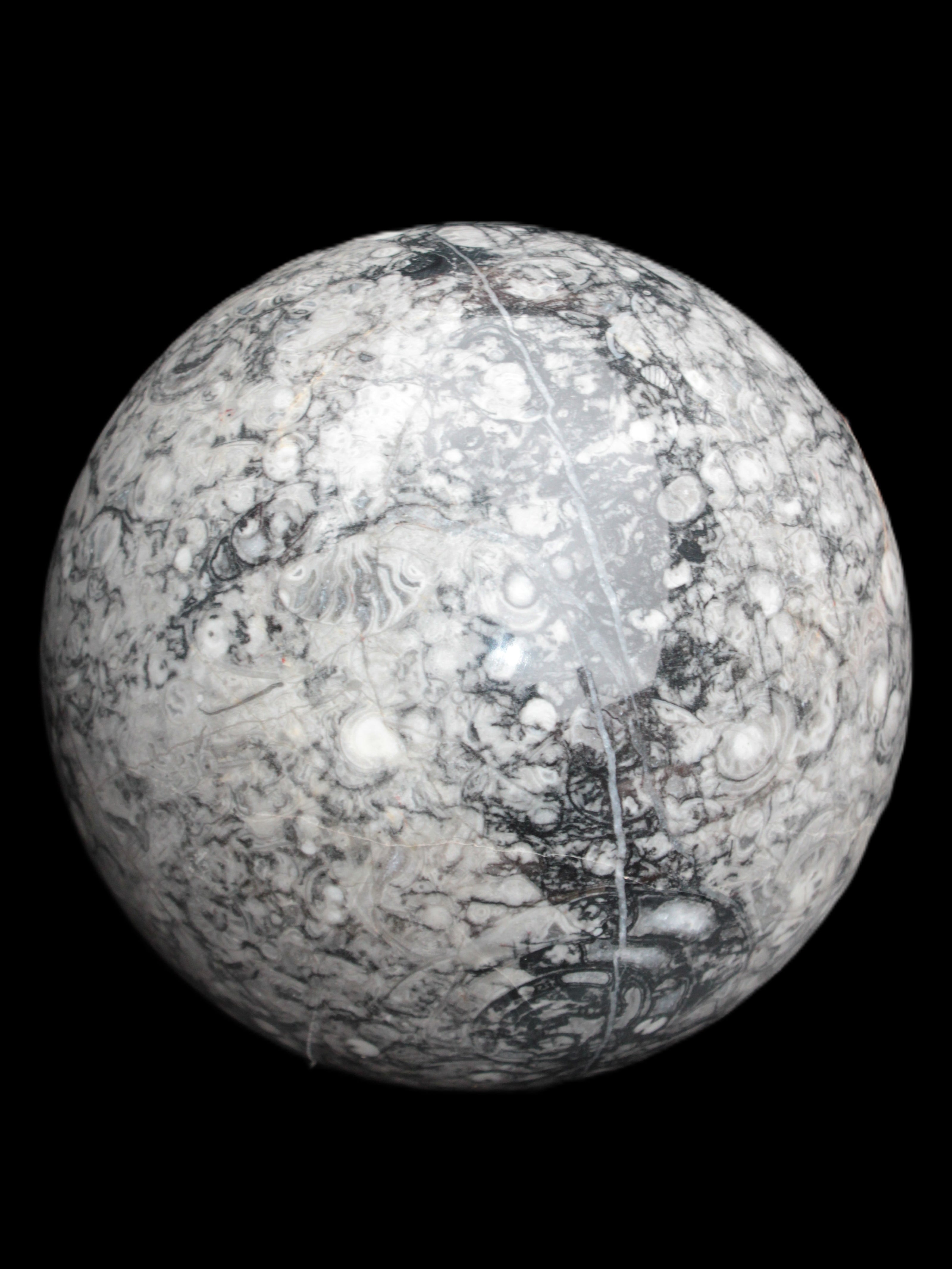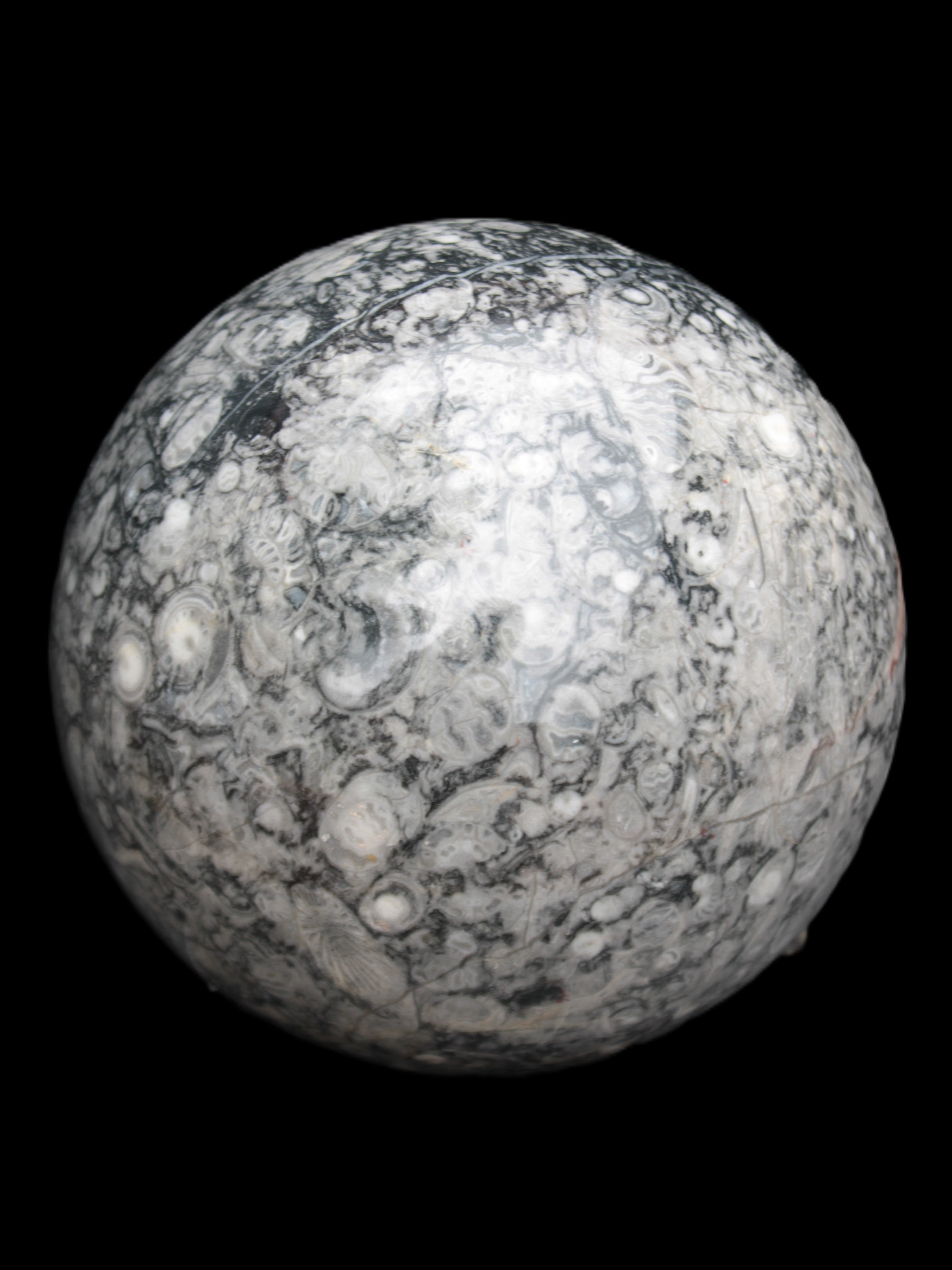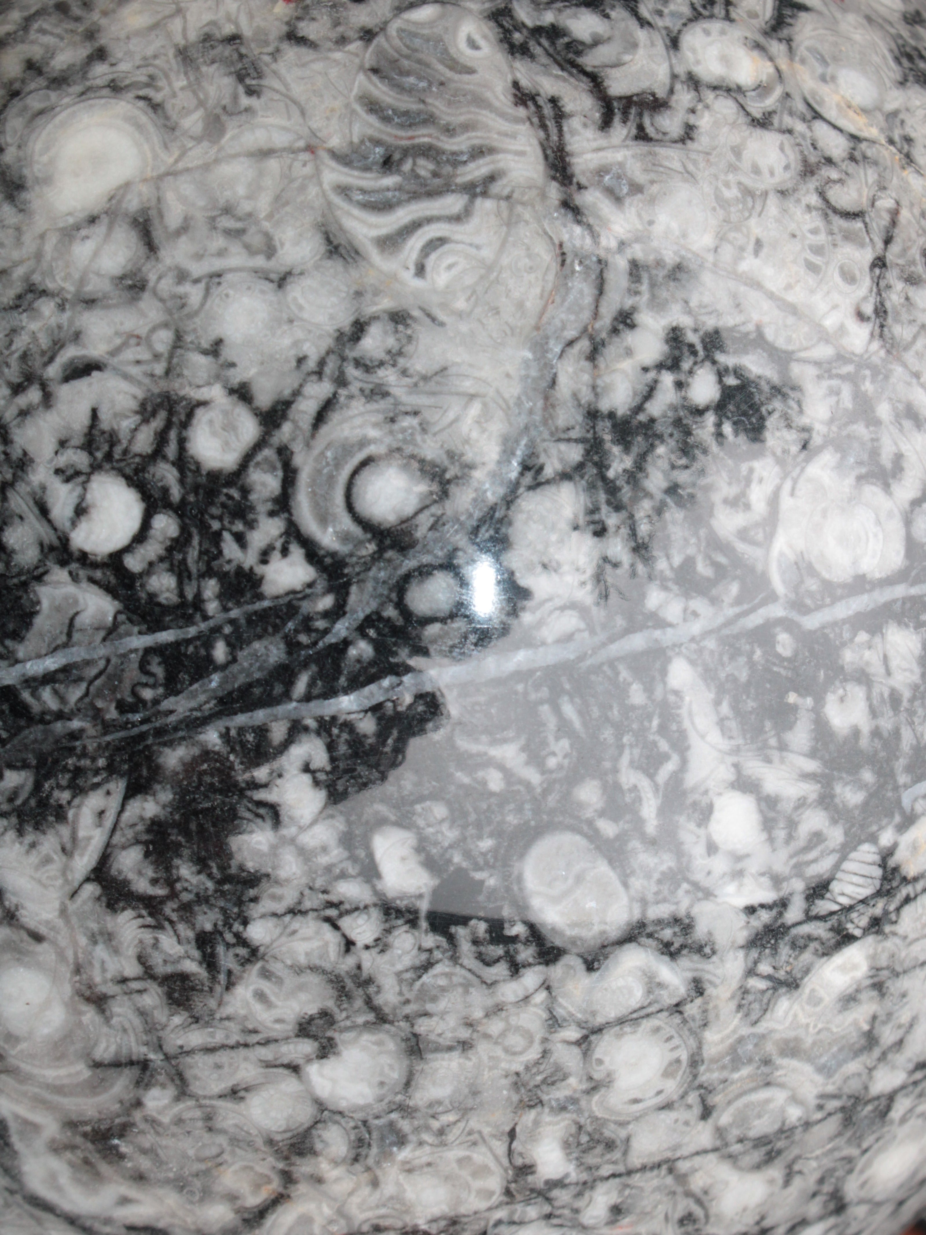 Large Fossiliferous Ammonite and Orthoceras Marble sphere 173mm 7440g