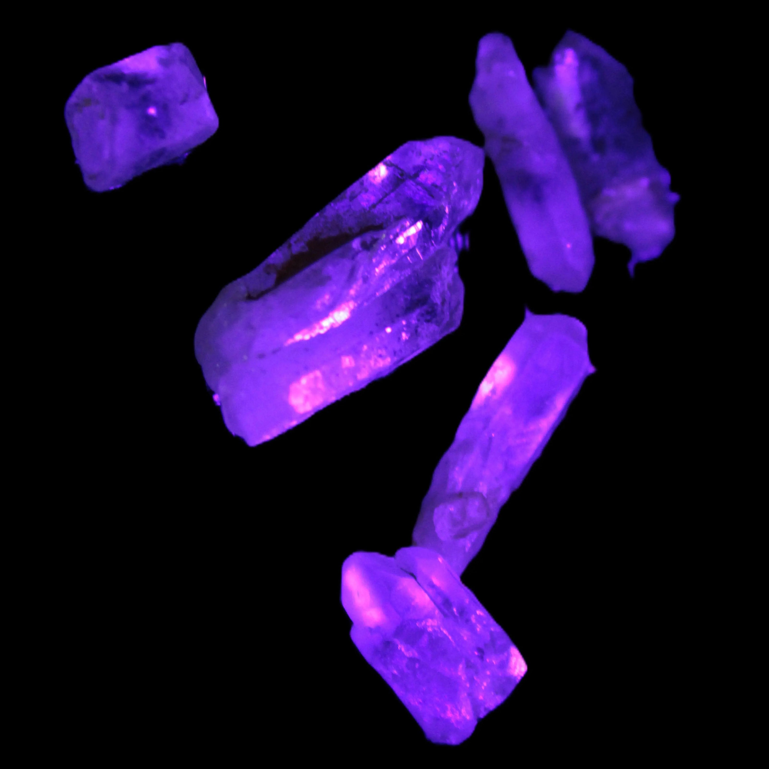 Lepidocrocite is one of the minerals found in Super Seven Amethyst crystals. It is UV reactive.
