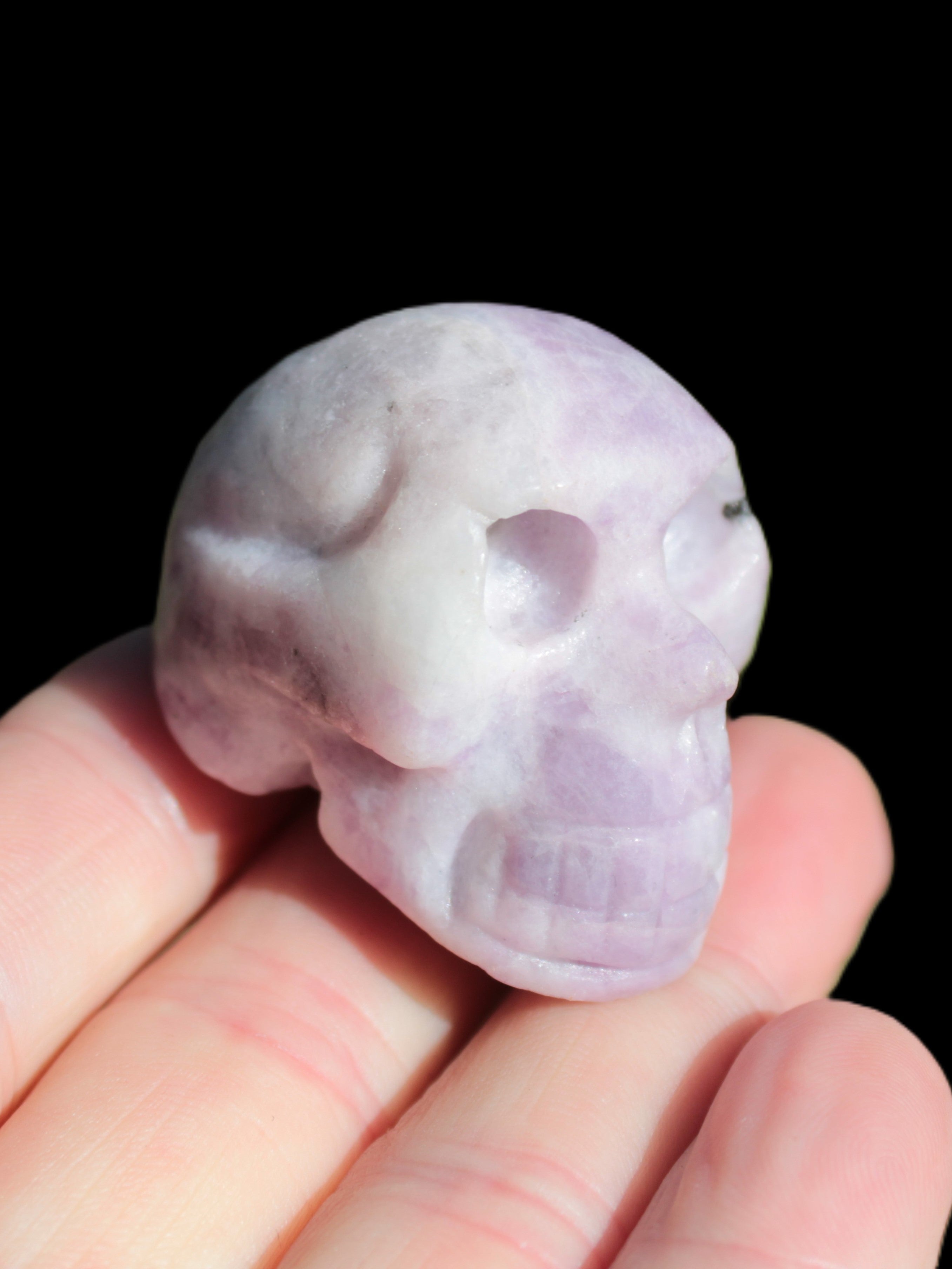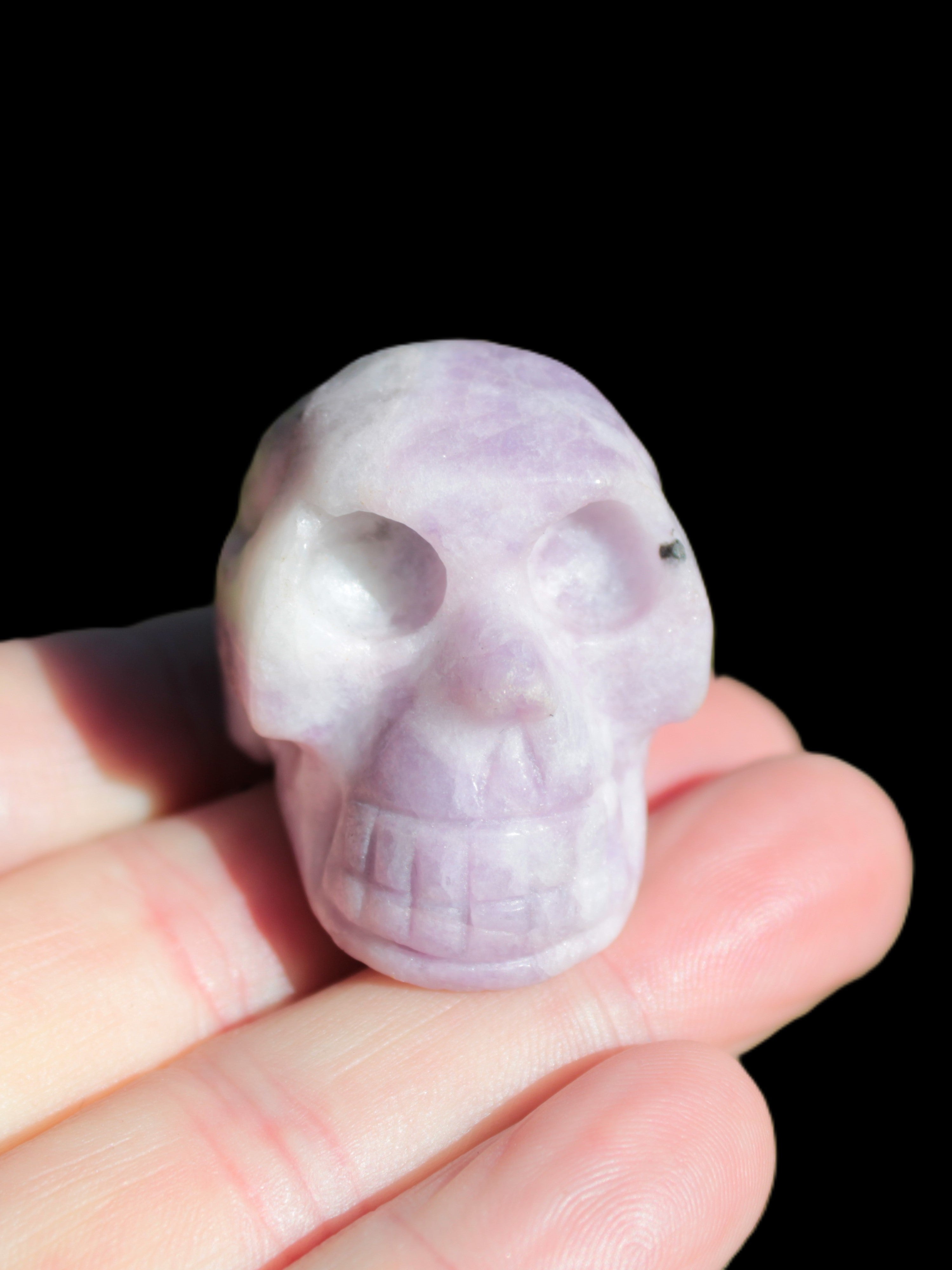 Lepidolite hand-carved skull 60g Rocks and Things