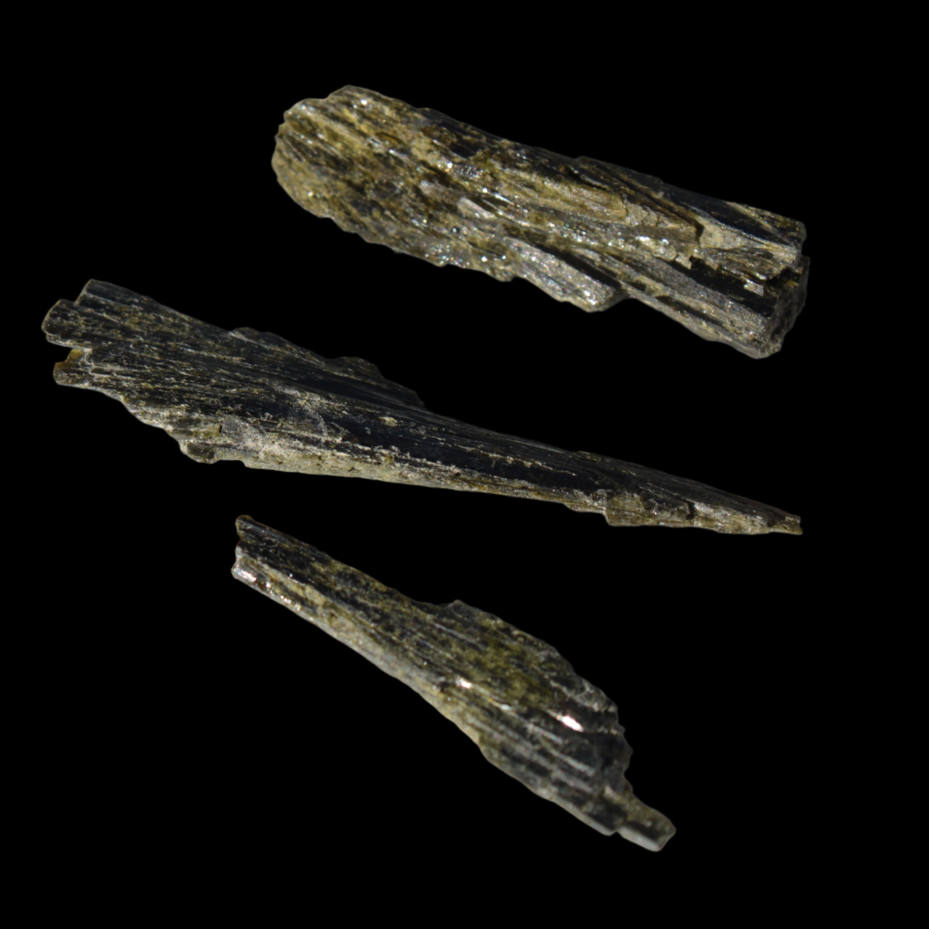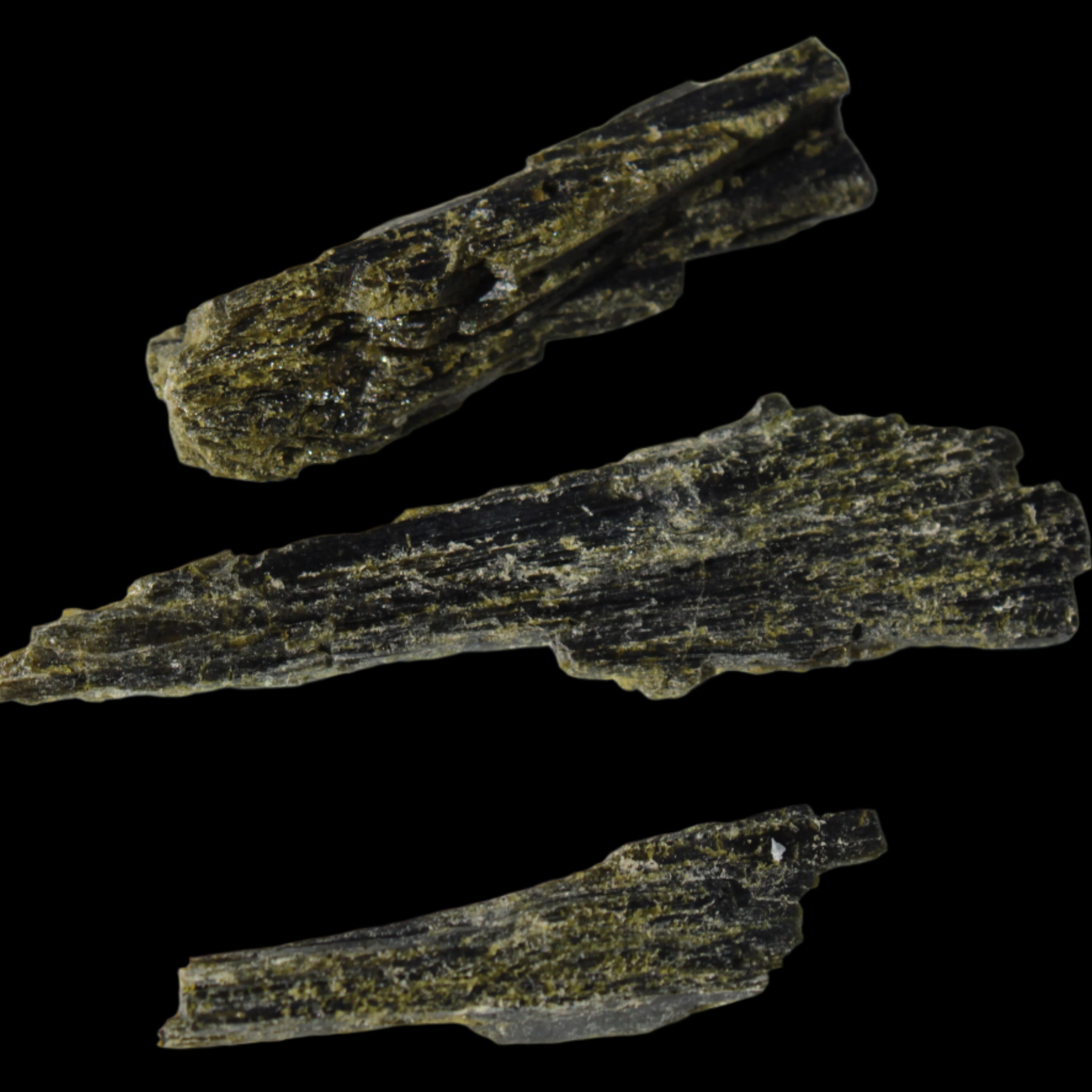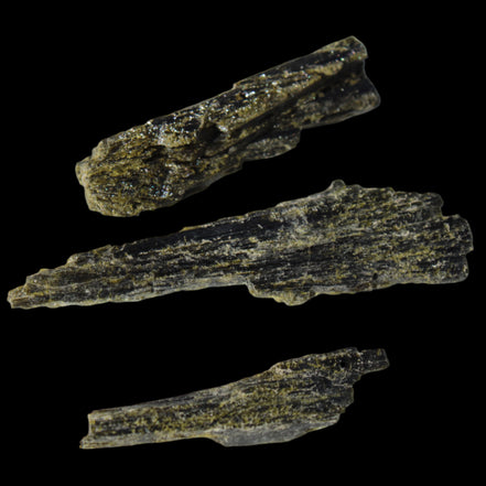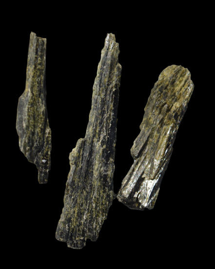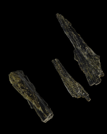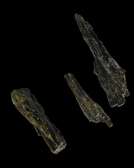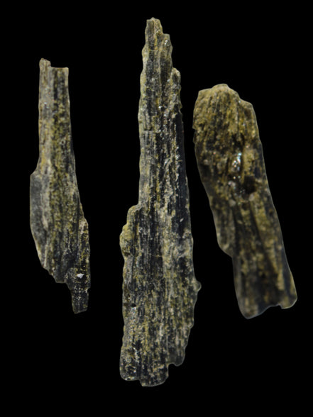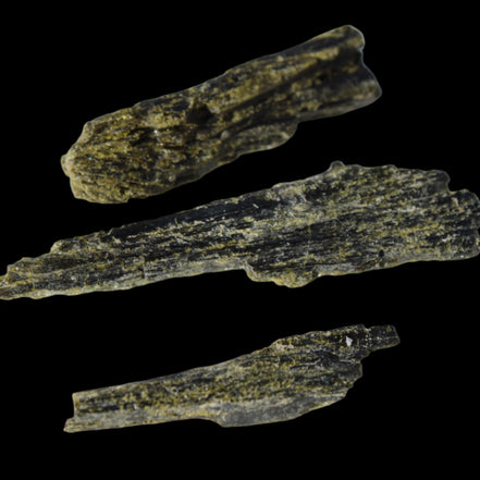 This selection of Long blade Epidote 3 crystals weigh 69.7ct or 13.9g. Epidote is a rarer mineral formed from aluminium and iron. These three long intricate Epidote crystals provide an attracting force. Epidote attracts, as if it were an energy magnet. Epidote attracts and enhances the energies in its immediate environment and within anything it touches. Care is needed in using and storing Epidote as this property of enhancement occurs regardless of whether the energies are good or bad.  You can program Epidote to attract what you desire in life. By itself, it will tend to attract abundance, prosperity, and creativity. You can also program it for assistance in love, relationships and other desires. Epidote is responsive to karma, and will attract what you have inside, not what you may only idealise about yourself.