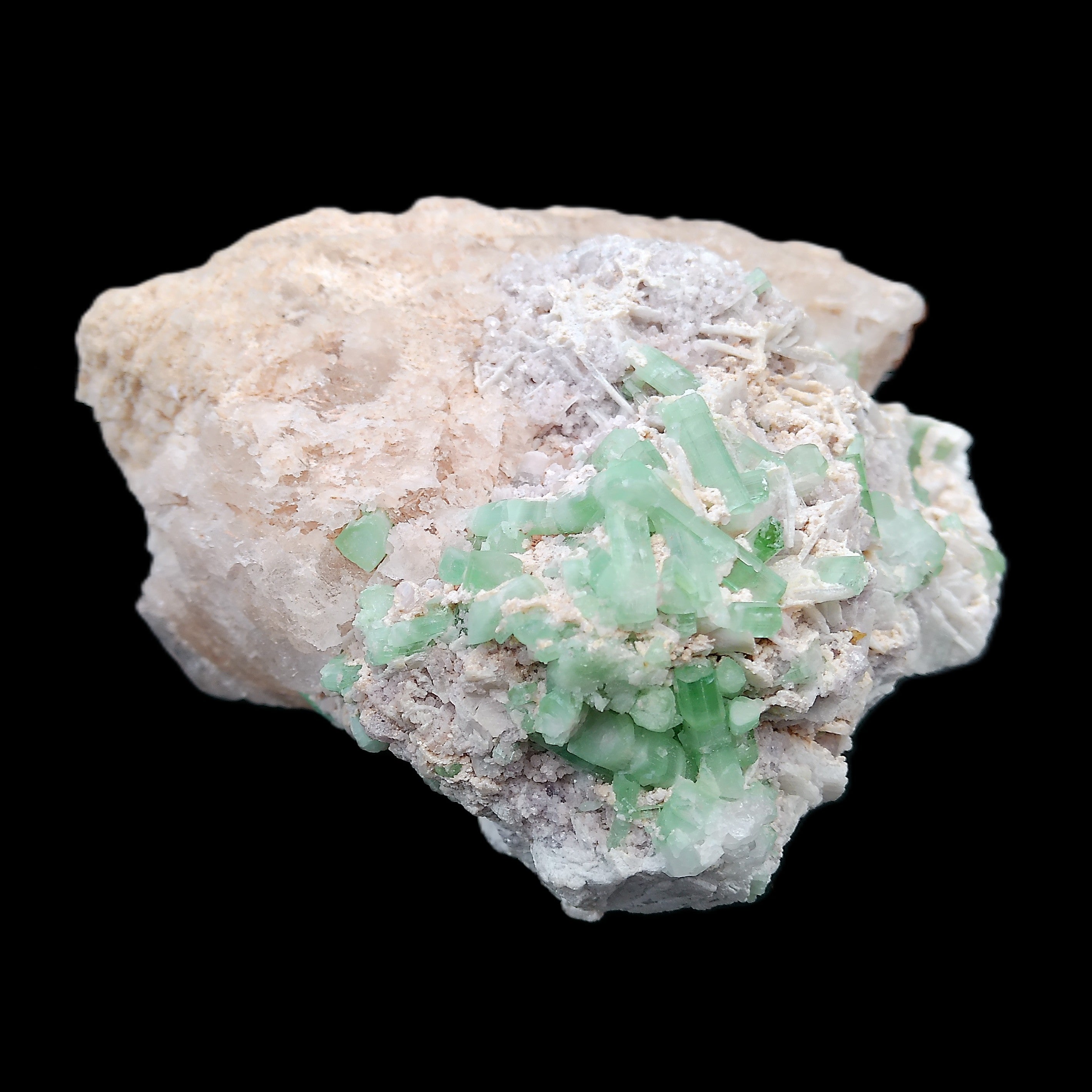 This magnificent Green Tourmaline, Kunzite, Lepidolite plus more specimen 140m weighs 2035g. It measures 140*140*80mm. Green Tourmaline is a beautiful complex lithium-rich borosilicate mineral. Elbaite usually forms as elongated rods or prismatic crystals that are heavily striated. Green (and blue) Elbaite crystals are often pleochroic, which means that the crystal appears darker in colour when viewed along its vertical axis, compared to viewing along its horizontal axis. Elbaite is an igneous mineral that almost always forms in granite pegmatites.