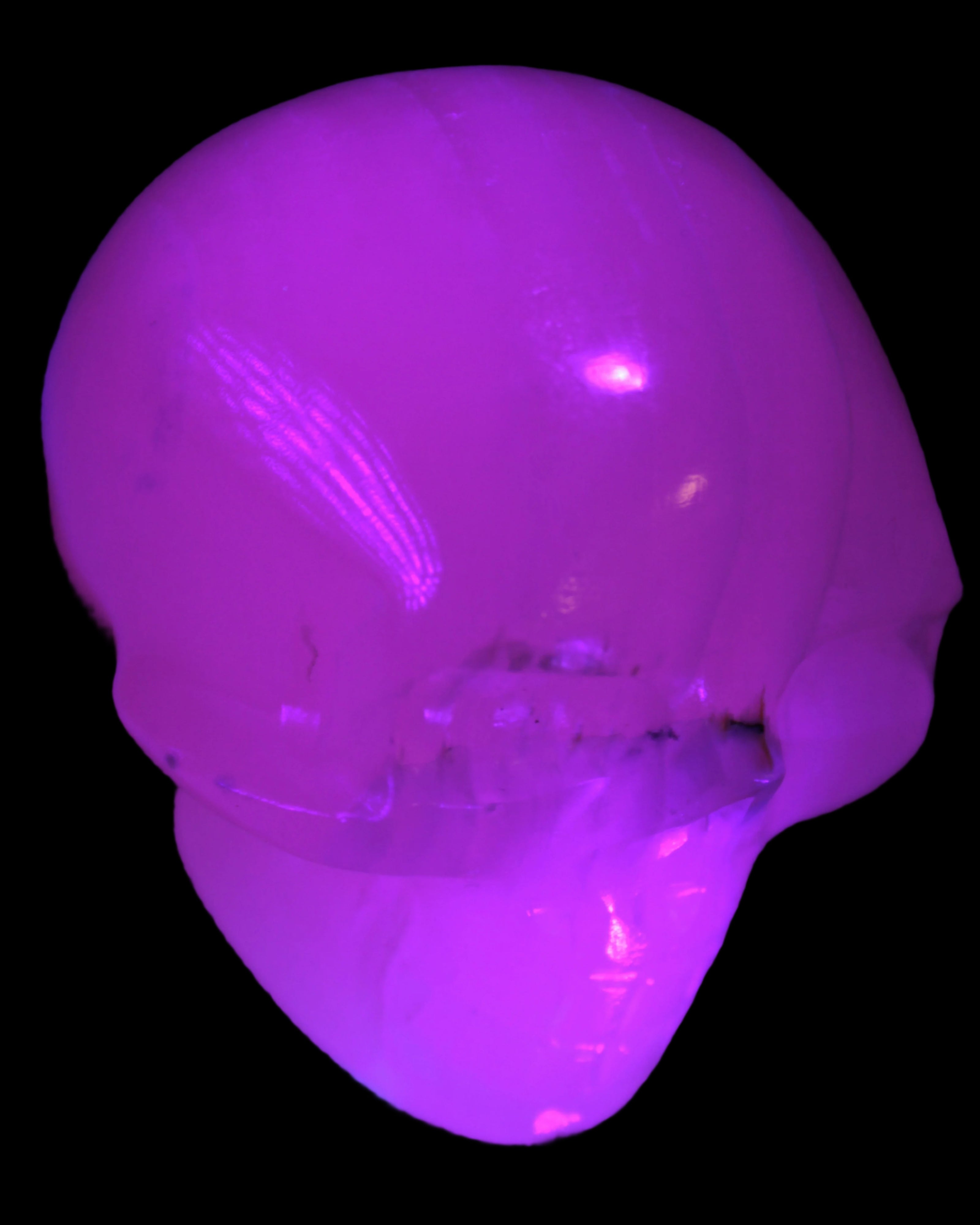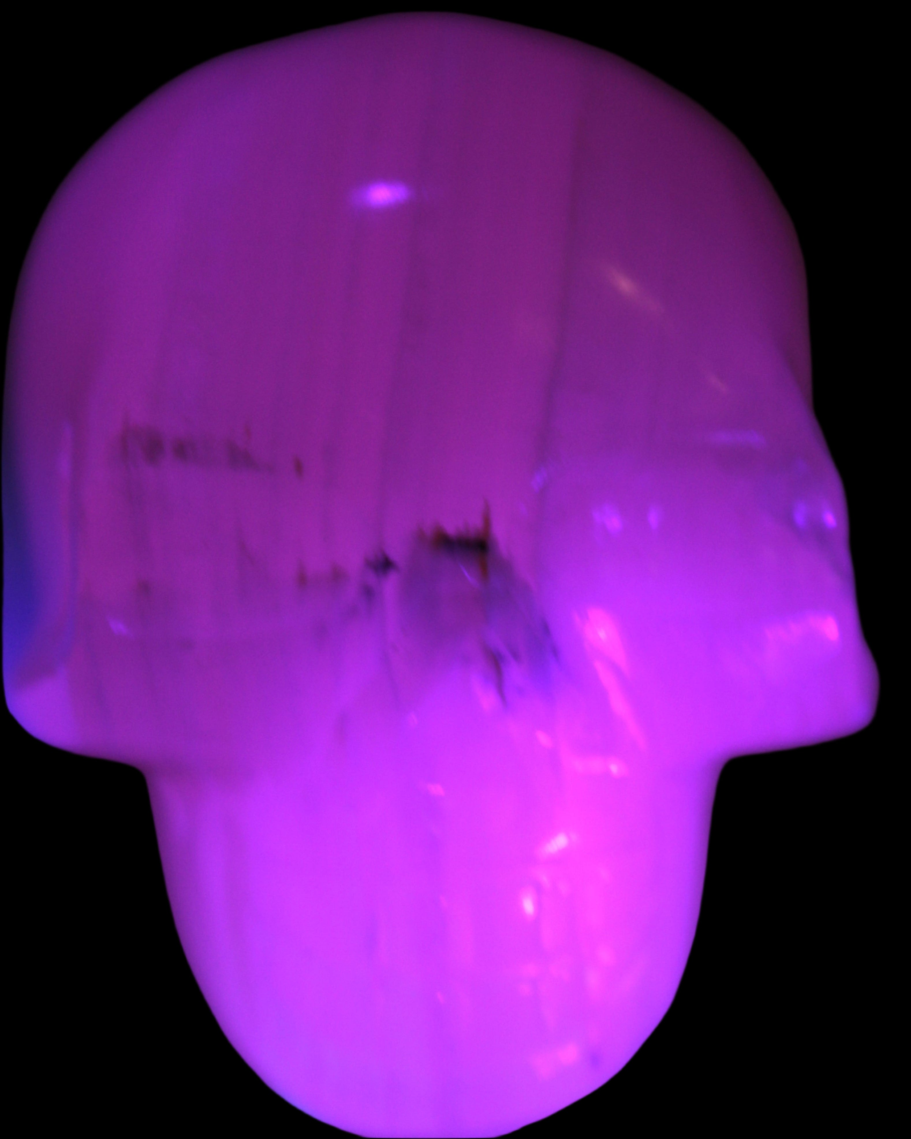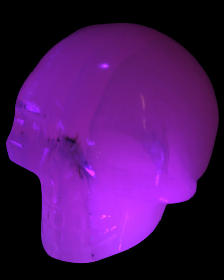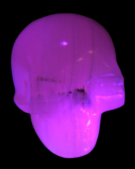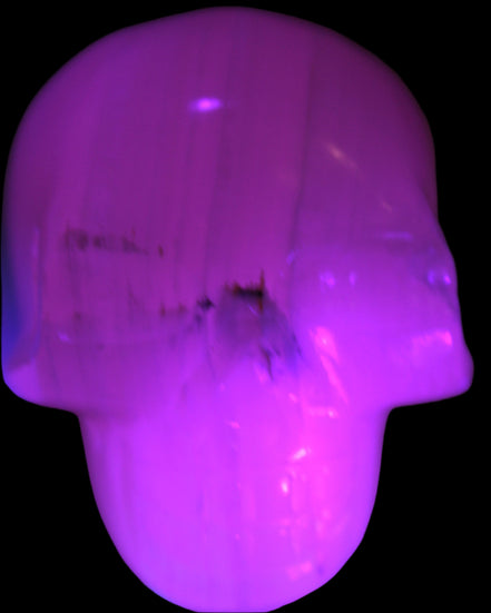 Mangano Calcite is a calcium carbonate mineral with a minimum of 30 per cent manganese carbonate present. The calcium and manganese carbonates can be banded. The presence of manganese makes Mangano Calcite react to ultraviolet light, giving it a bright hot-pink glow.