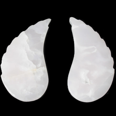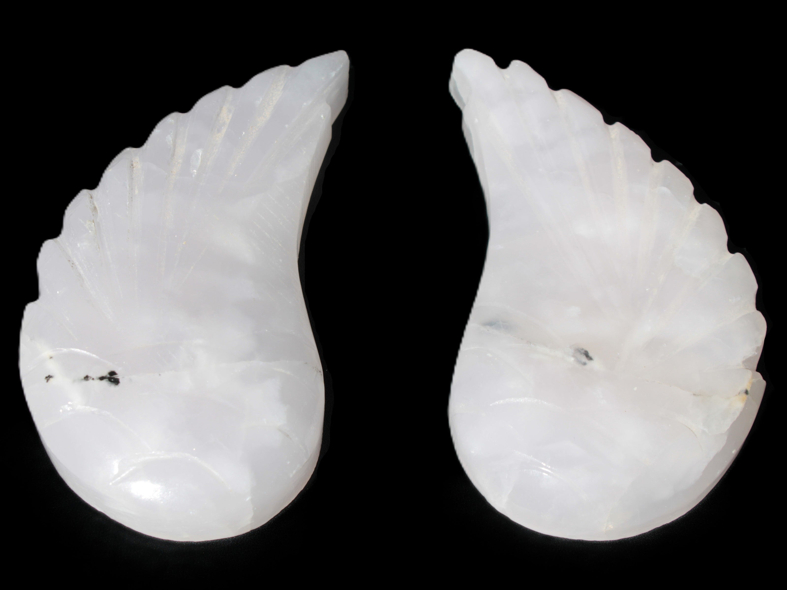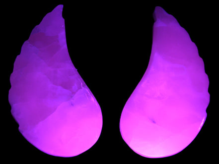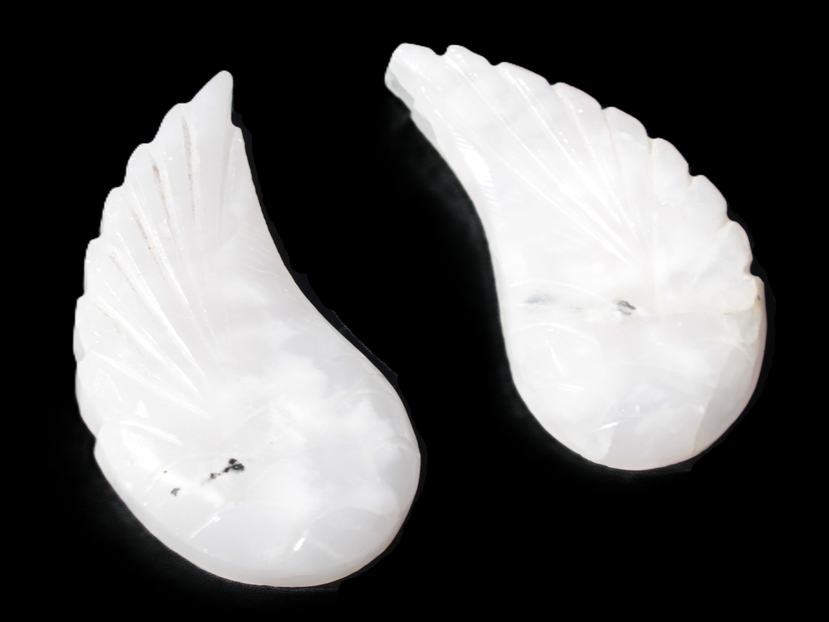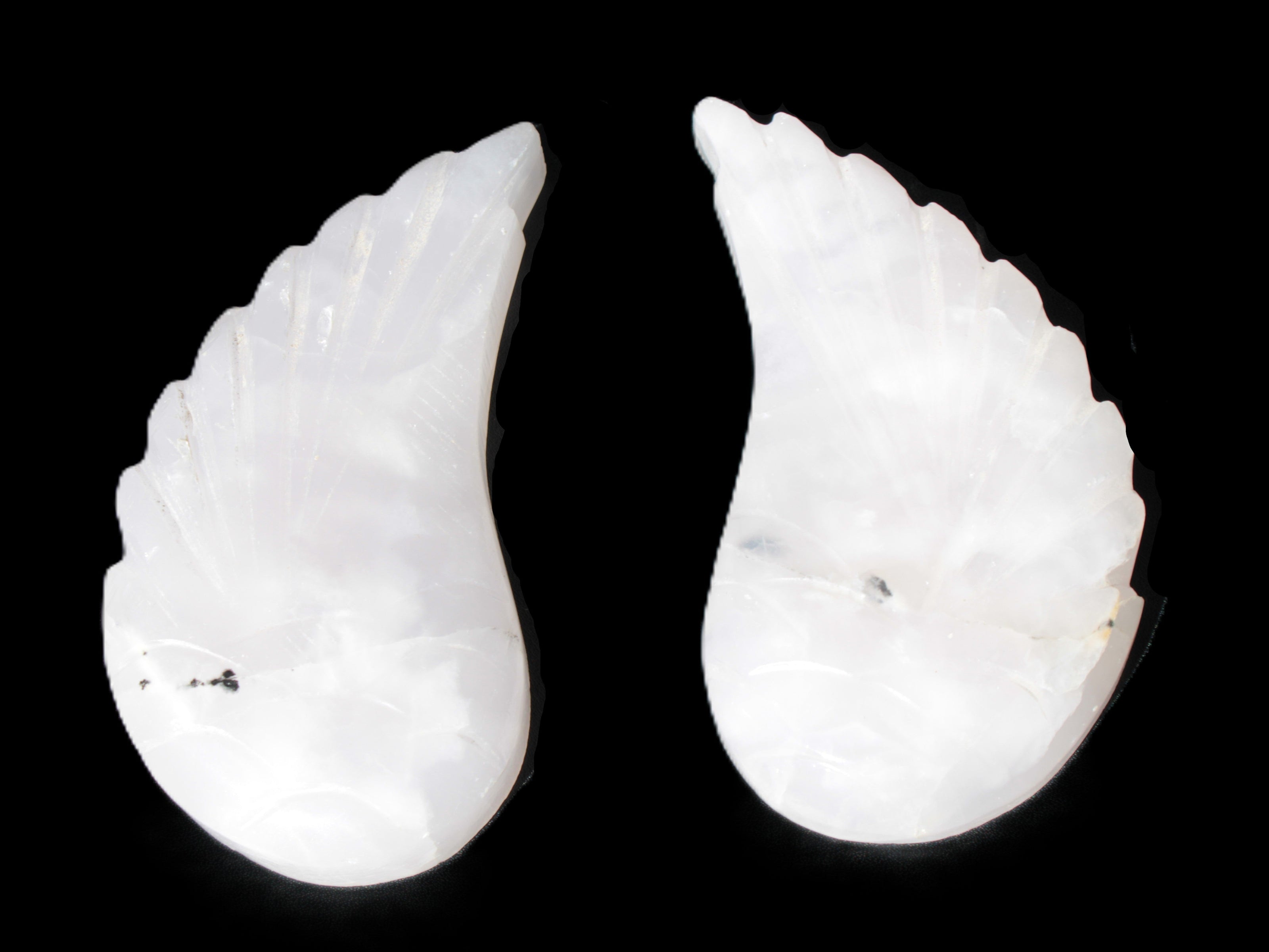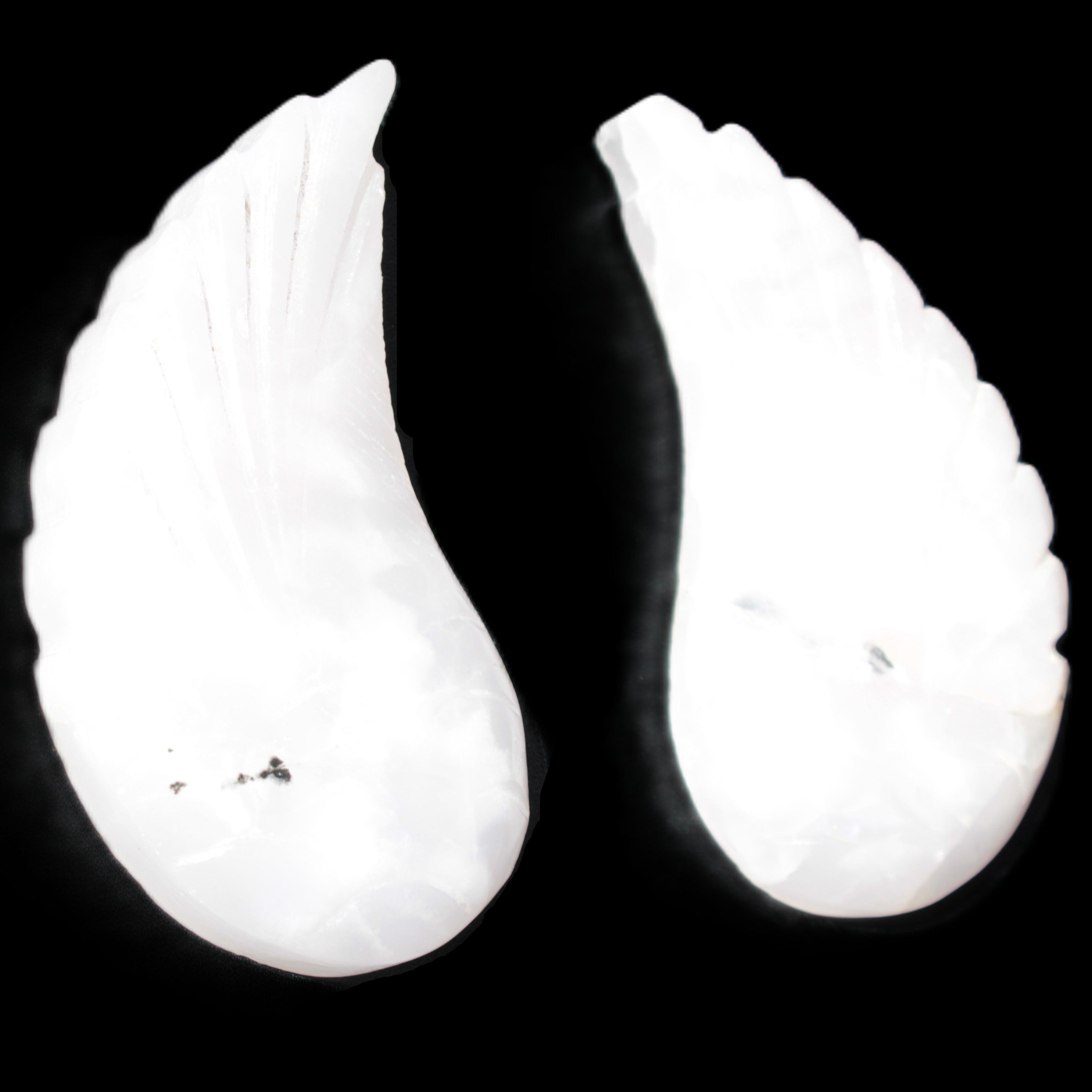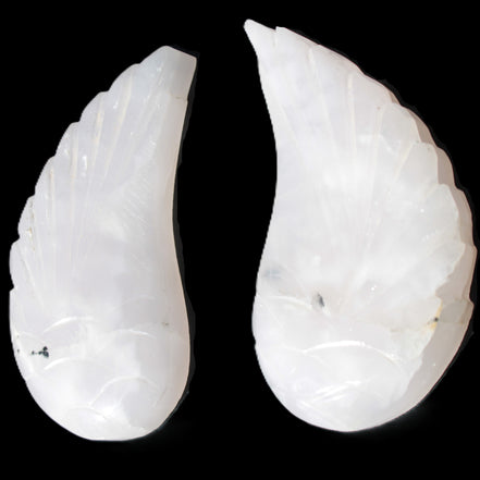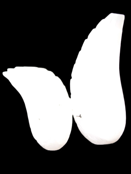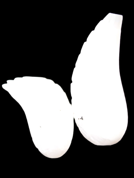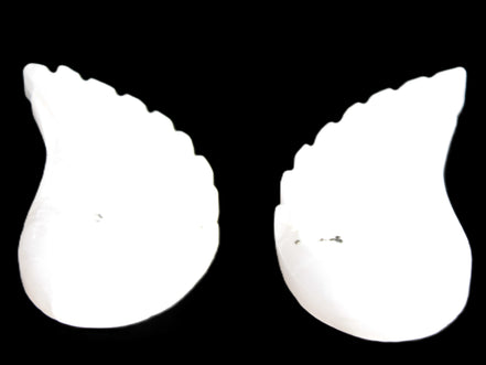 This set of Mangano Calcite angel wings 60/62*115mm (178g & 192g) weighs 380g. These were hand-carved in local Mangano Calcite by Lawrence Handicrafts in Pakistan.