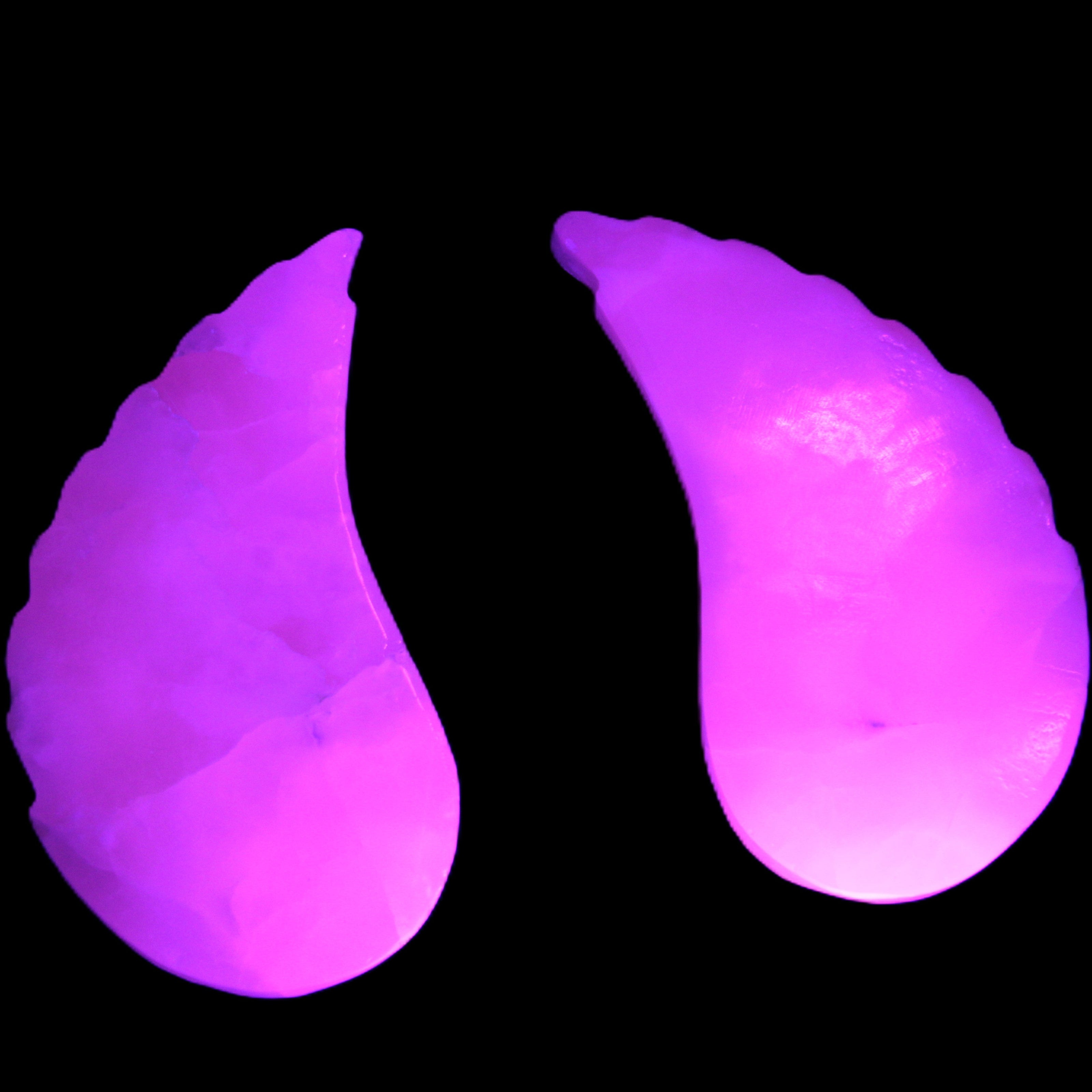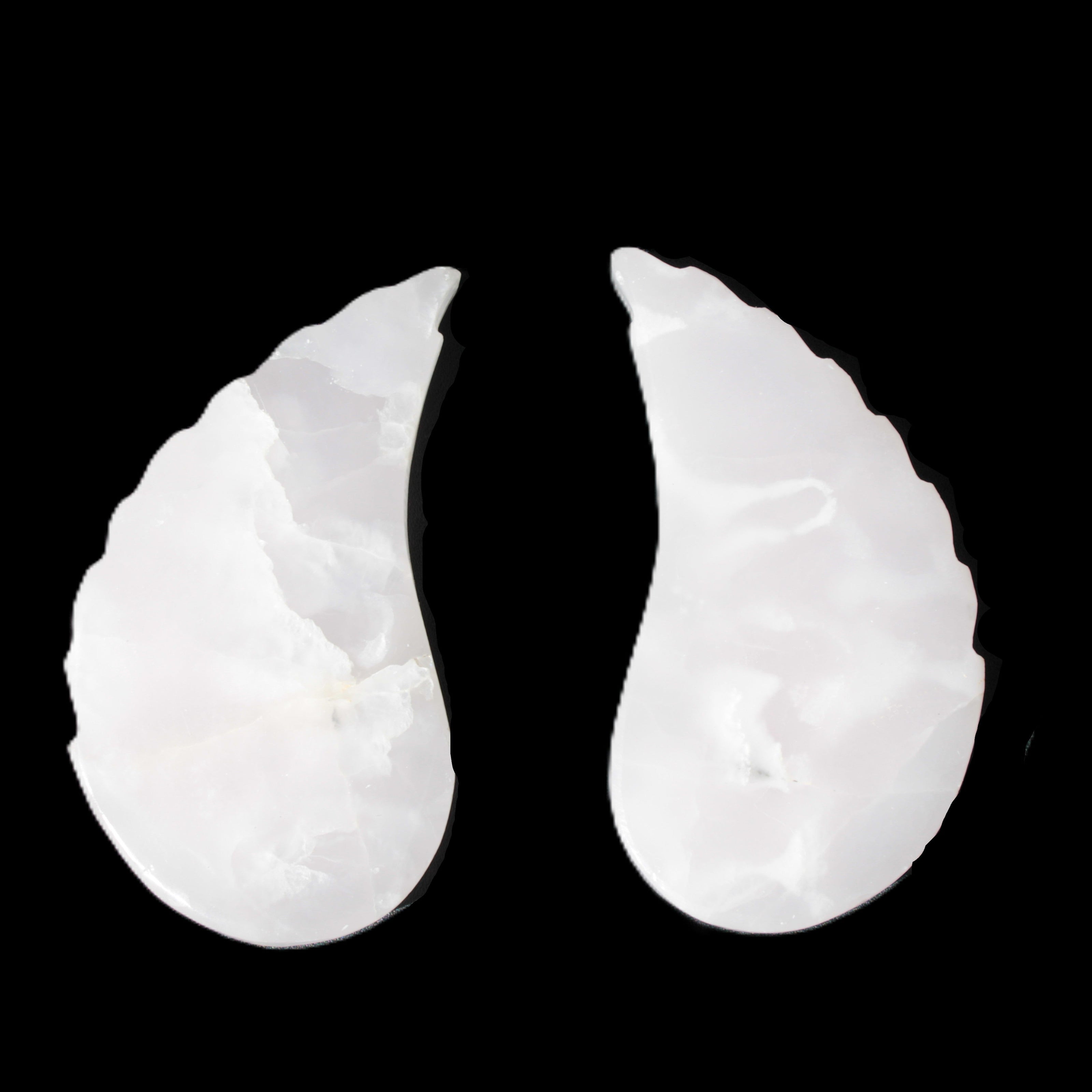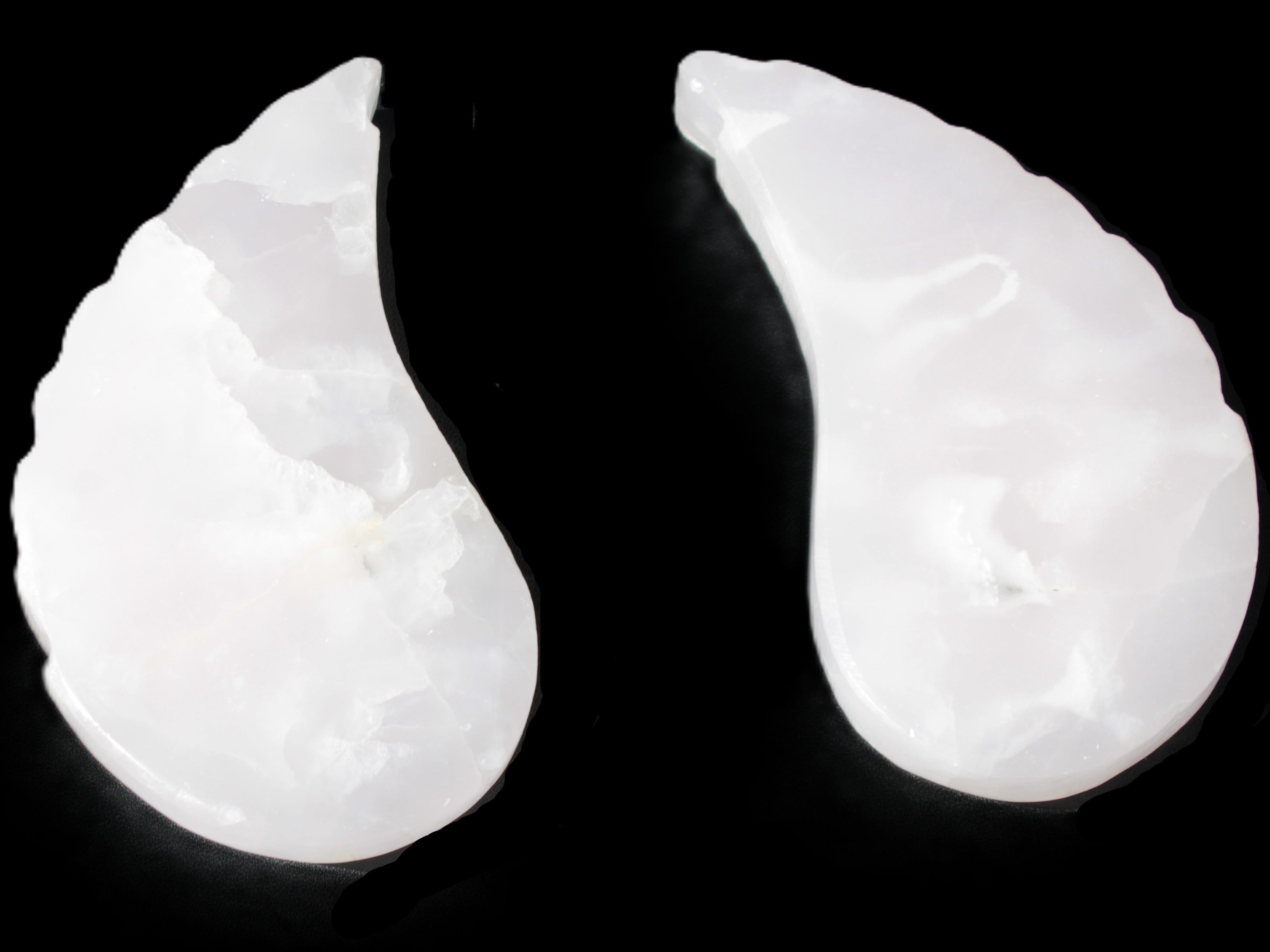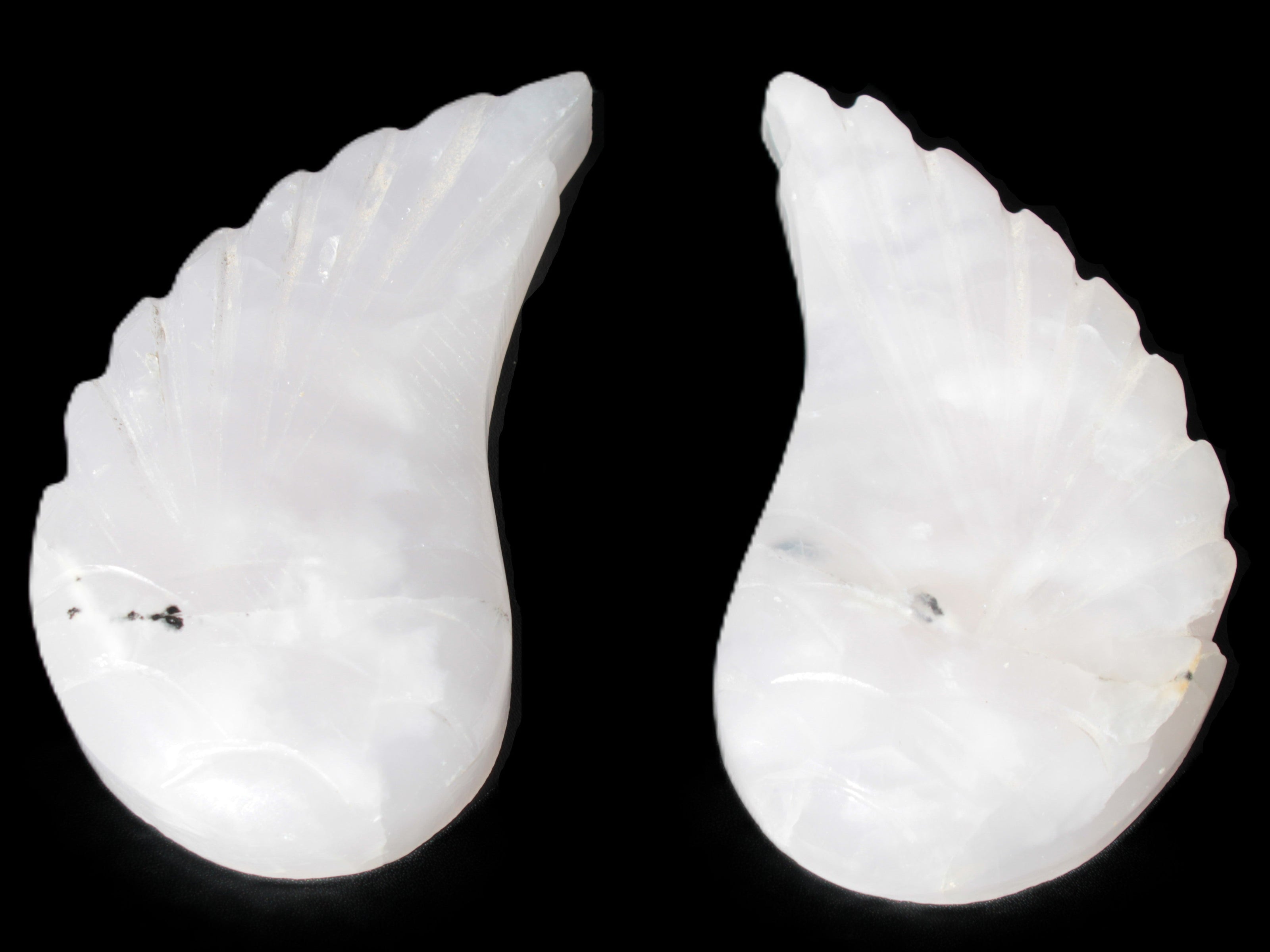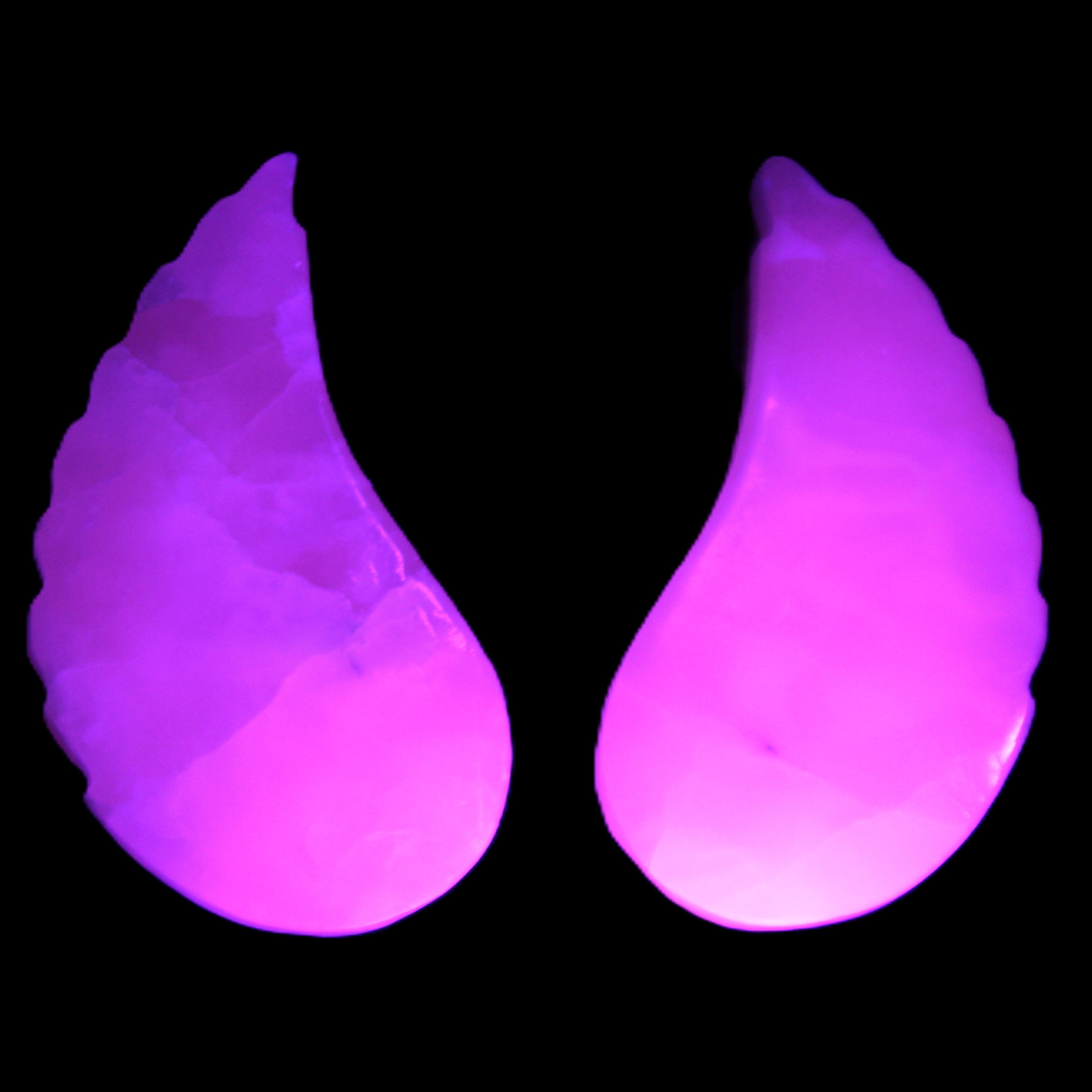 This set of Mangano Calcite angel wings 60/62*115mm (178g & 192g) weighs 380g. These were hand-carved in local Mangano Calcite by Lawrence Handicrafts in Pakistan.