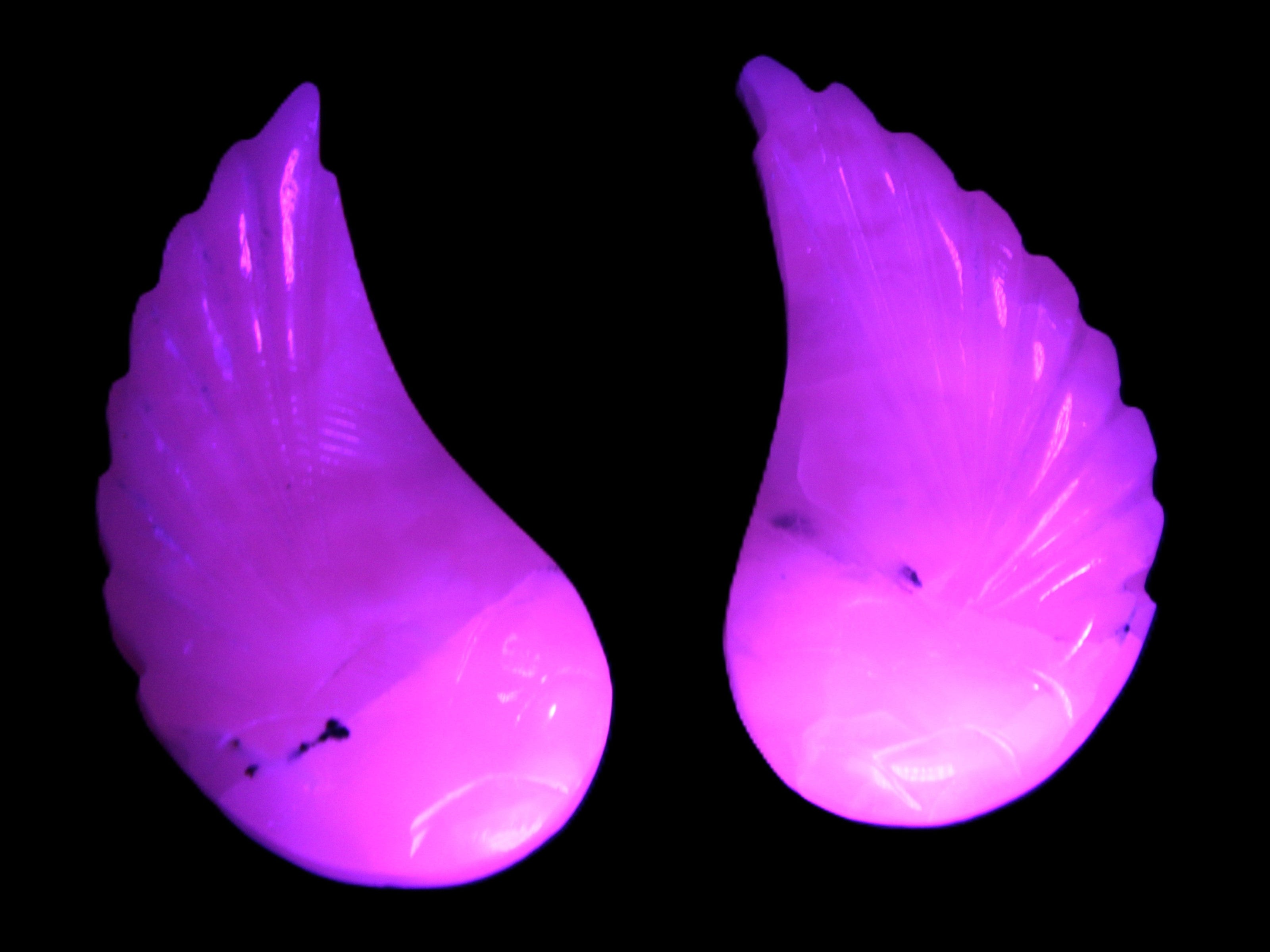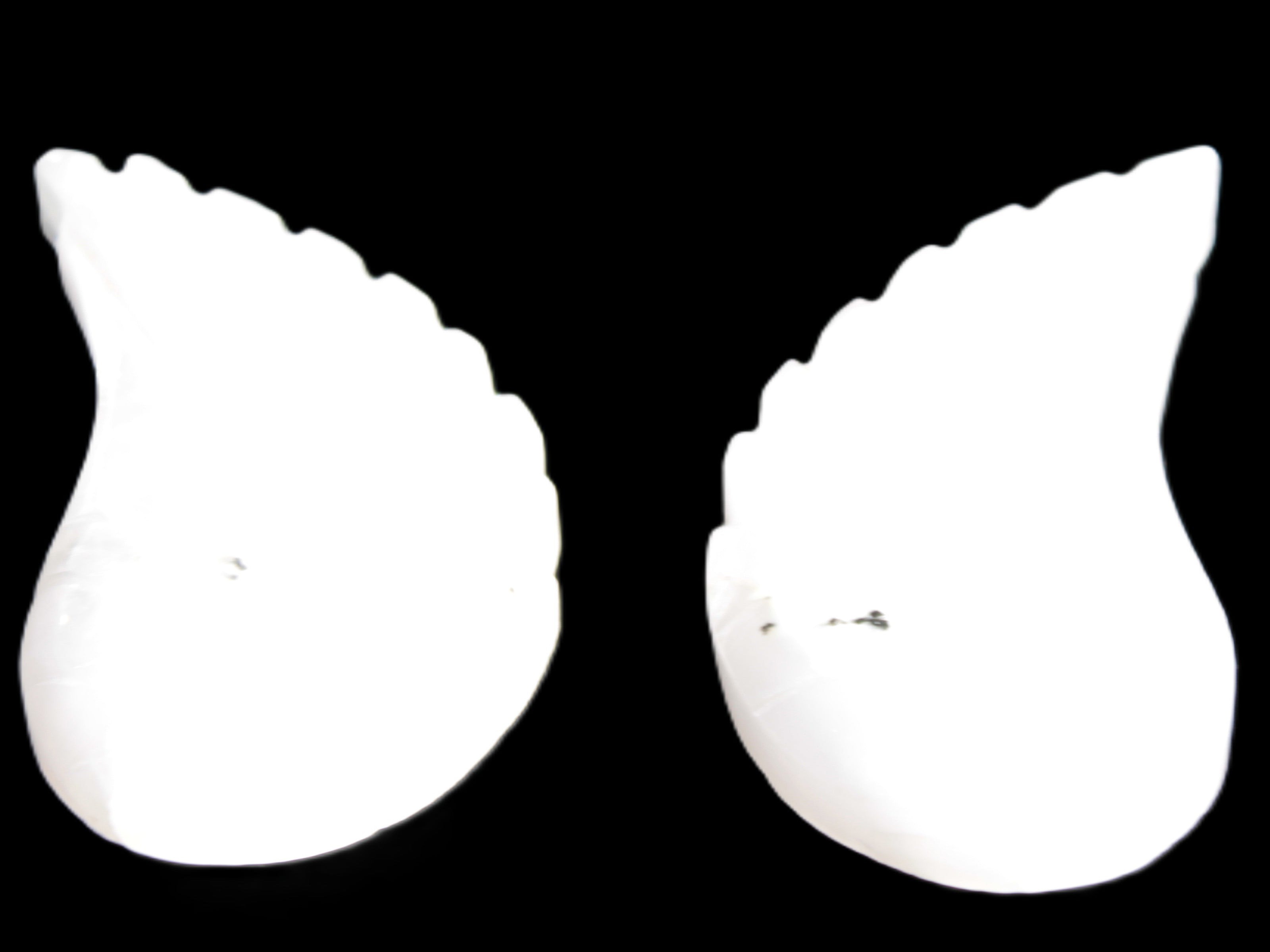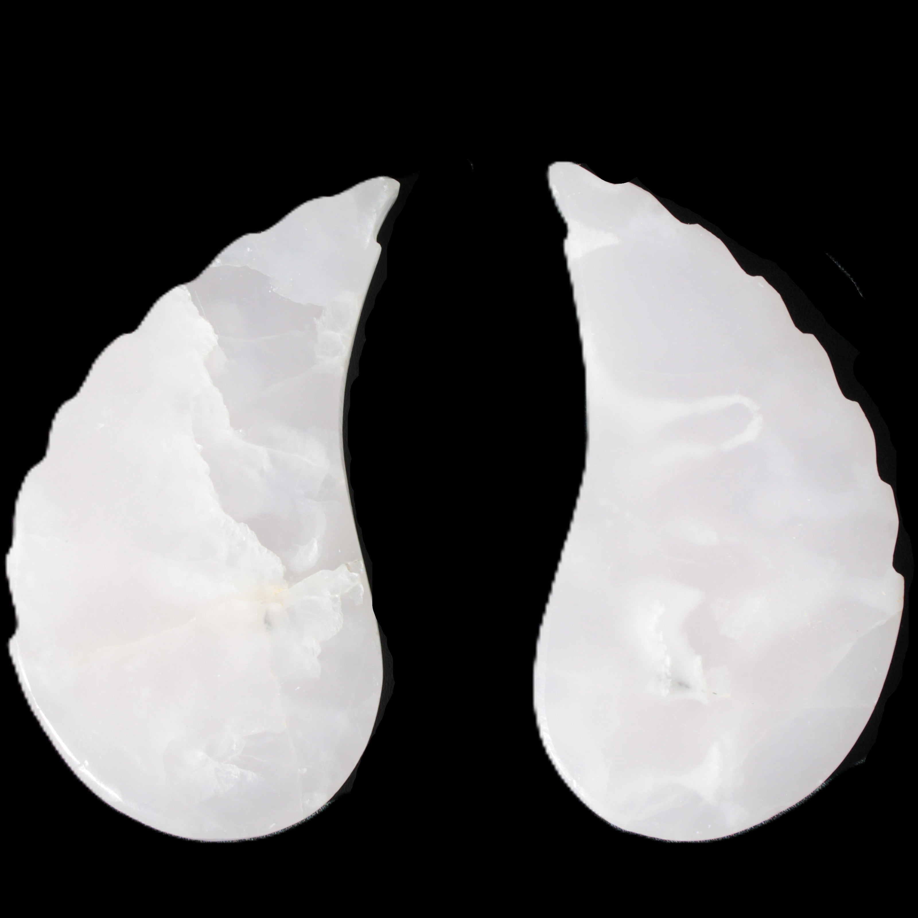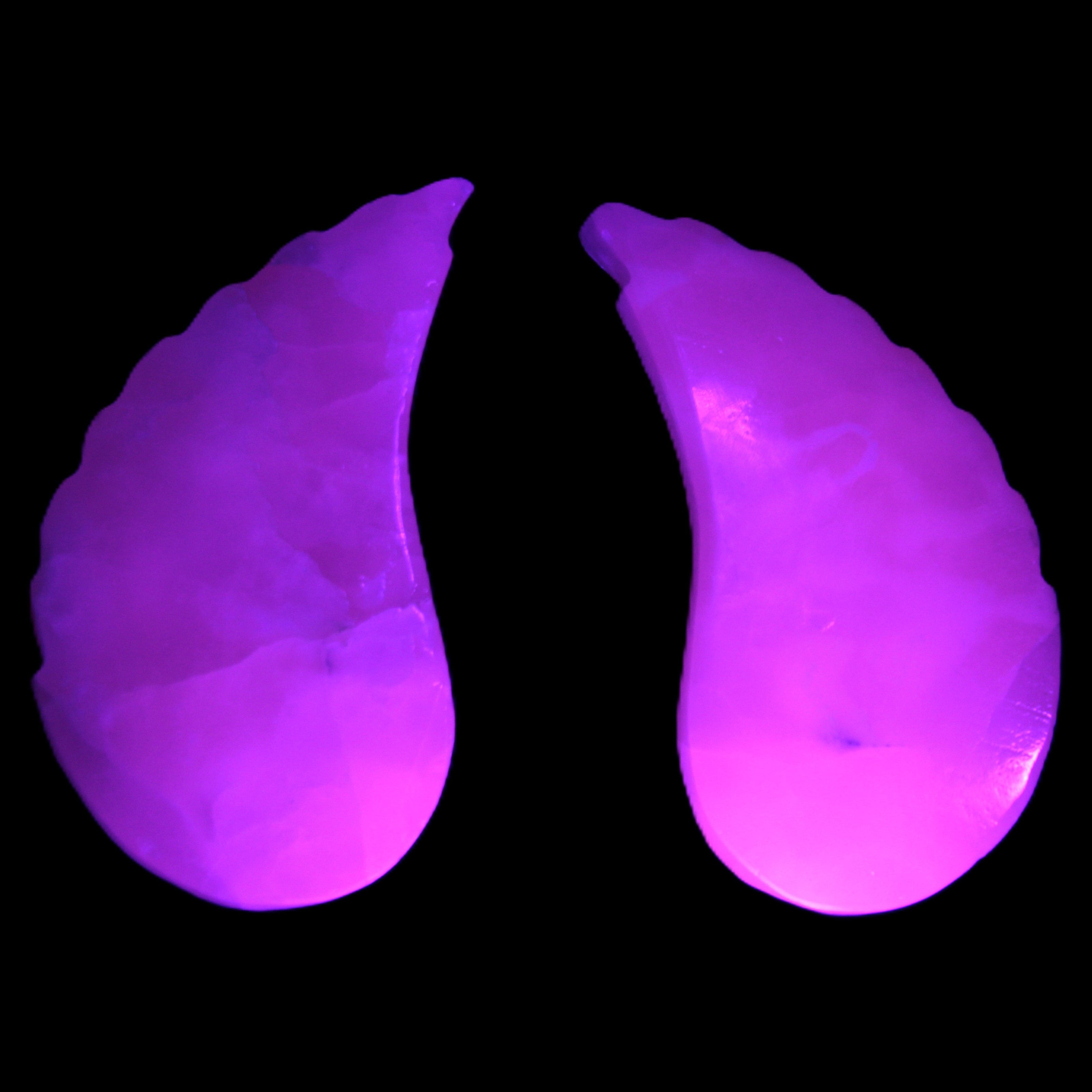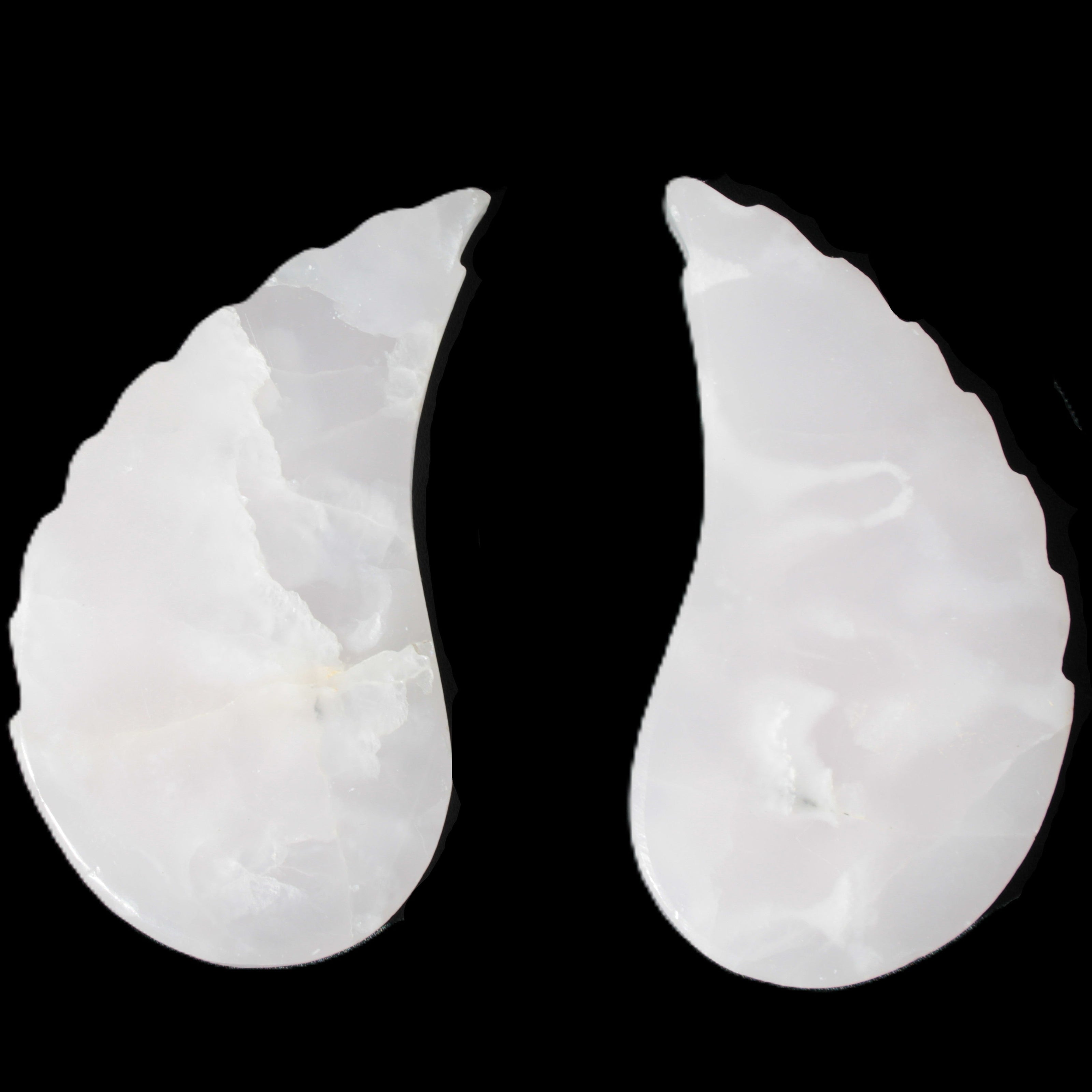This set of Mangano Calcite angel wings 60/62*115mm (178g & 192g) weighs 380g. These were hand-carved in local Mangano Calcite by Lawrence Handicrafts in Pakistan.