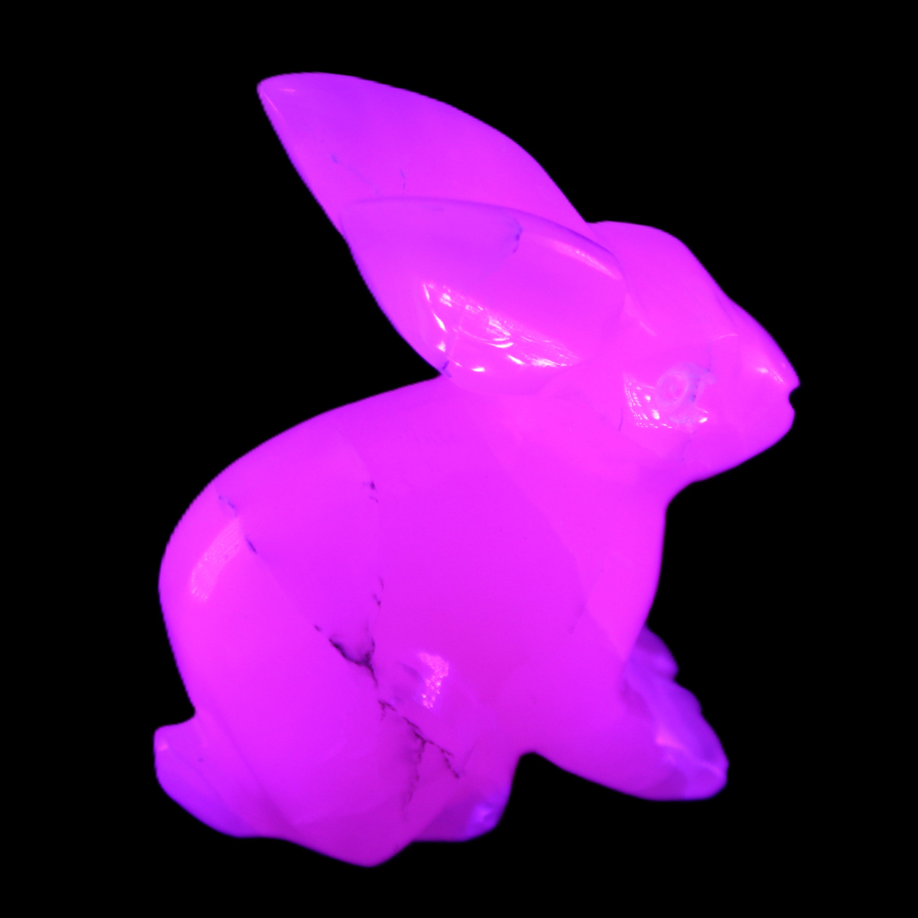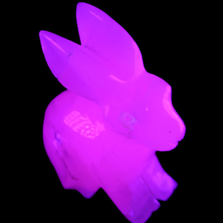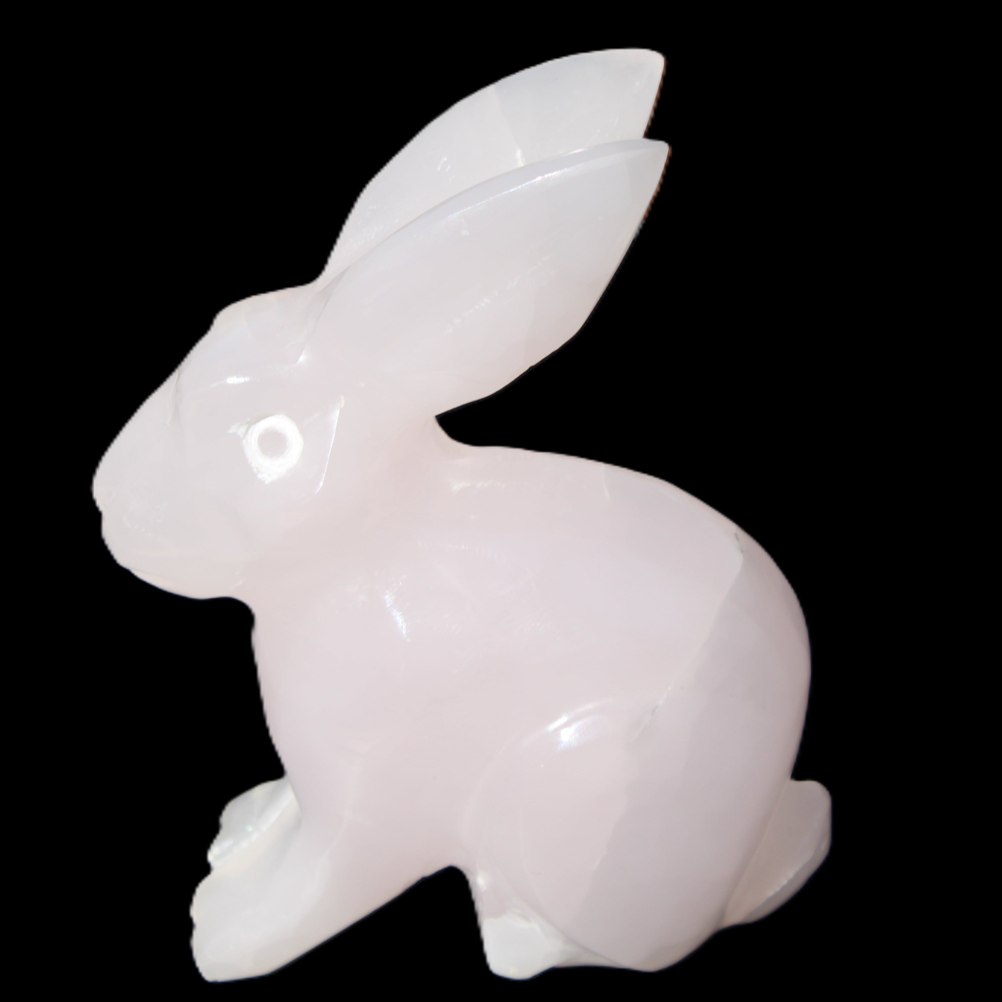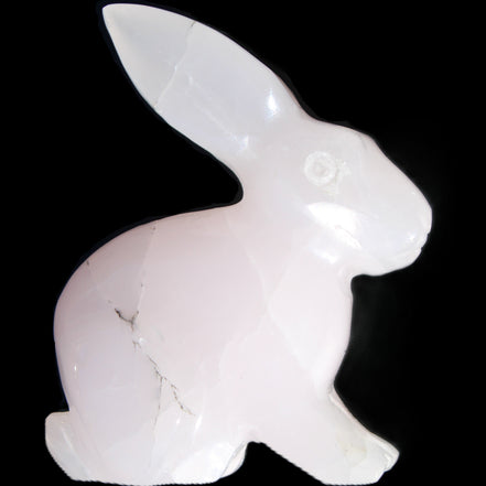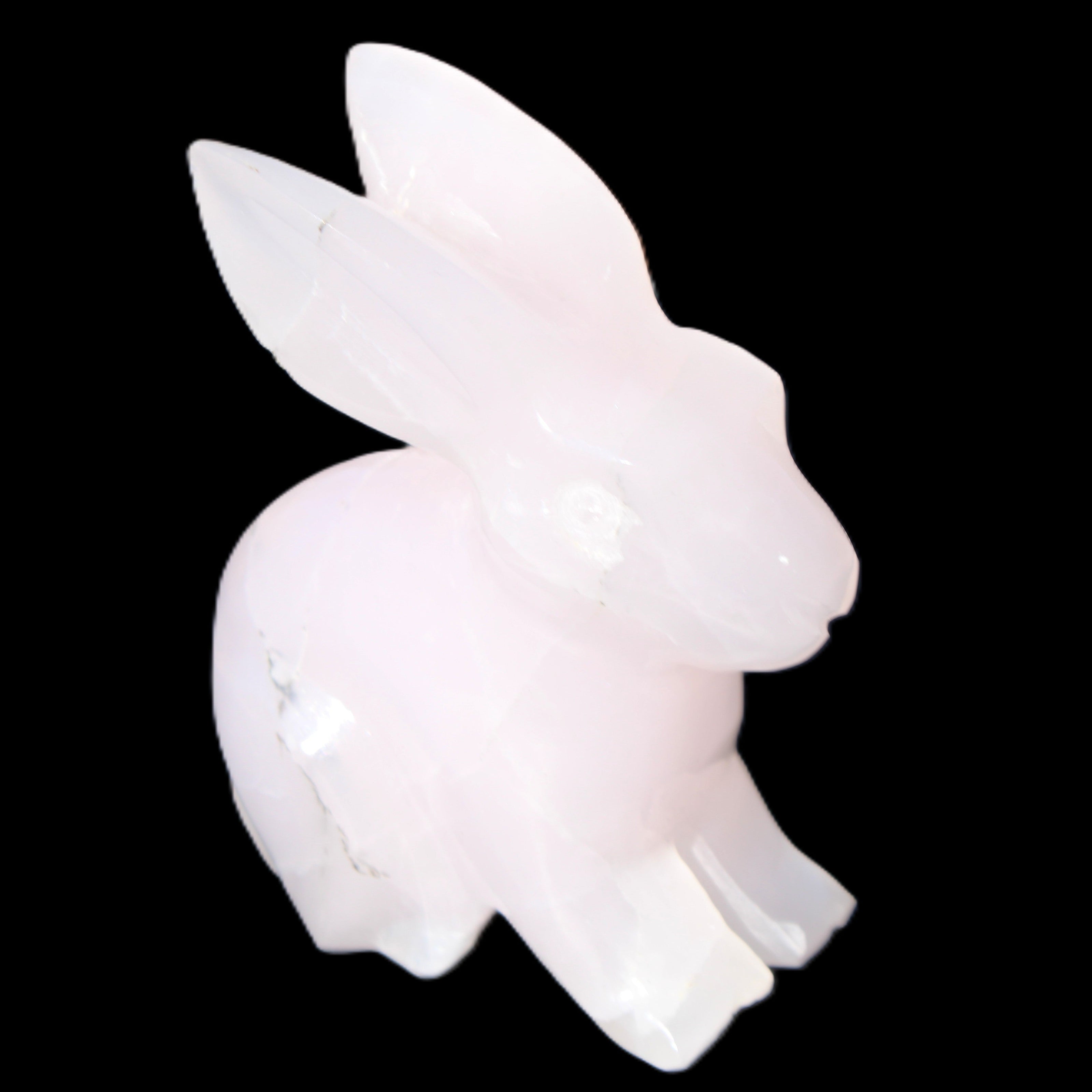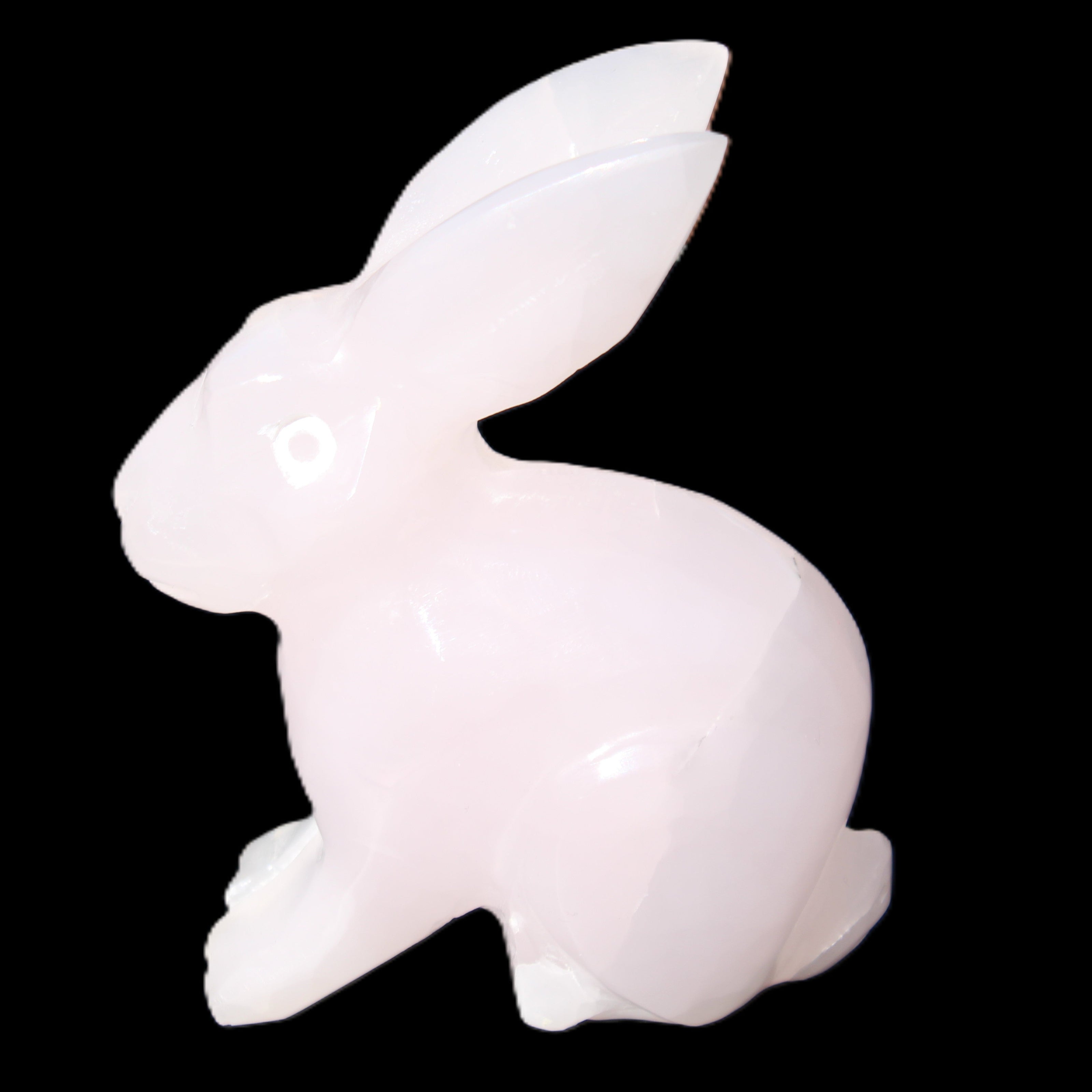 This Mangano Calcite bunny 76*36*100mm weighs 396g. This is no Wascally Wabbit. With time and personal growth, it can bring enlightenment and happiness, Mangano Calcite is a calcium carbonate mineral with a minimum of 30 per cent manganese carbonate present. The calcium and manganese carbonates can be banded. The presence of manganese makes Mangano Calcite react to ultraviolet light, giving it a bright hot-pink glow.