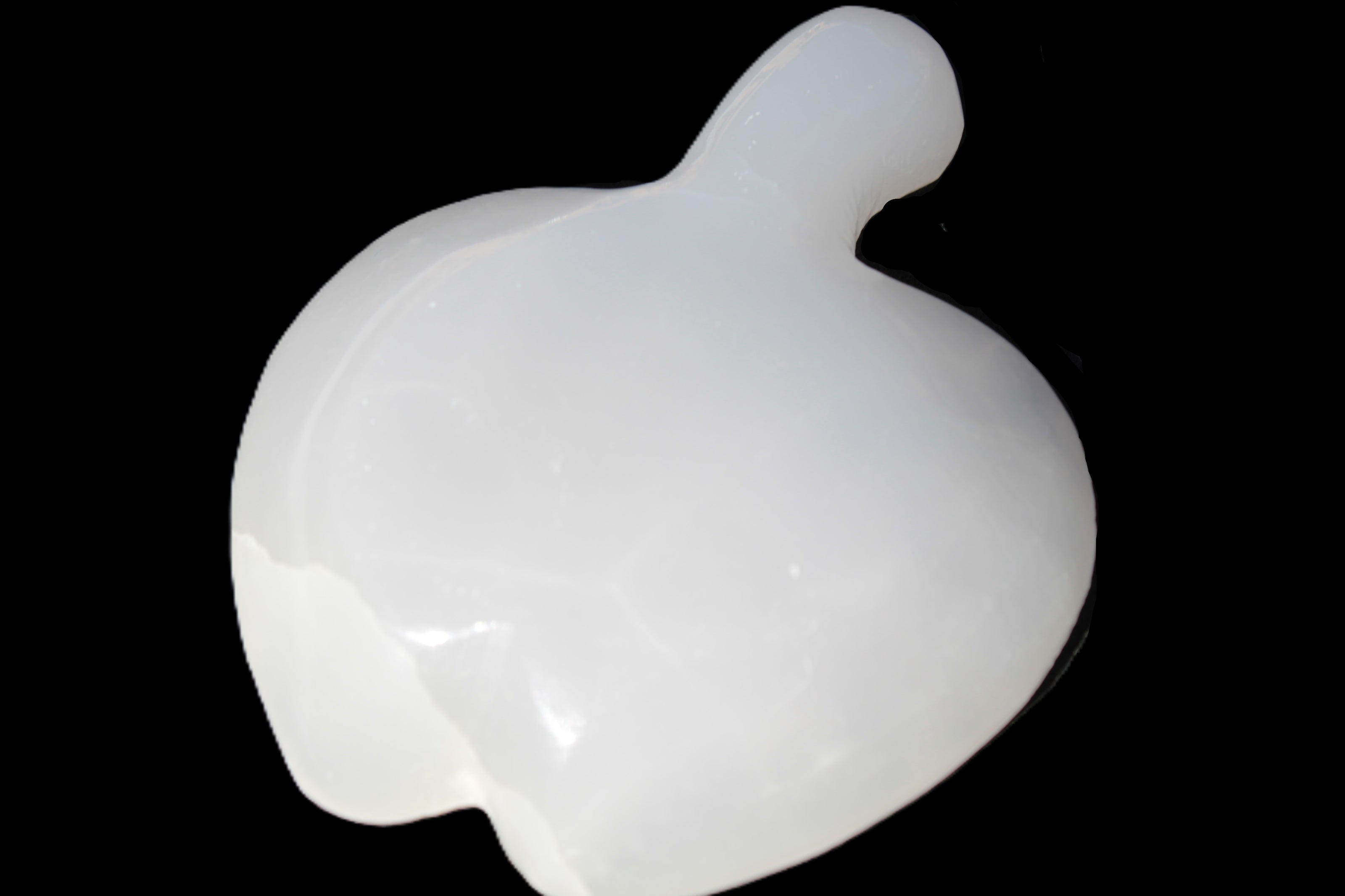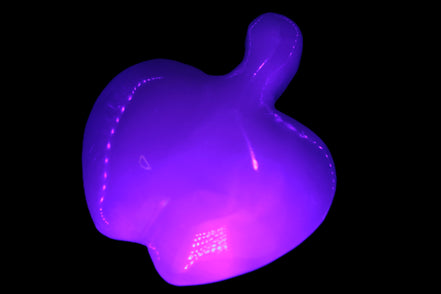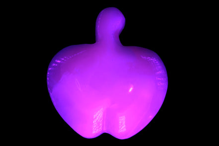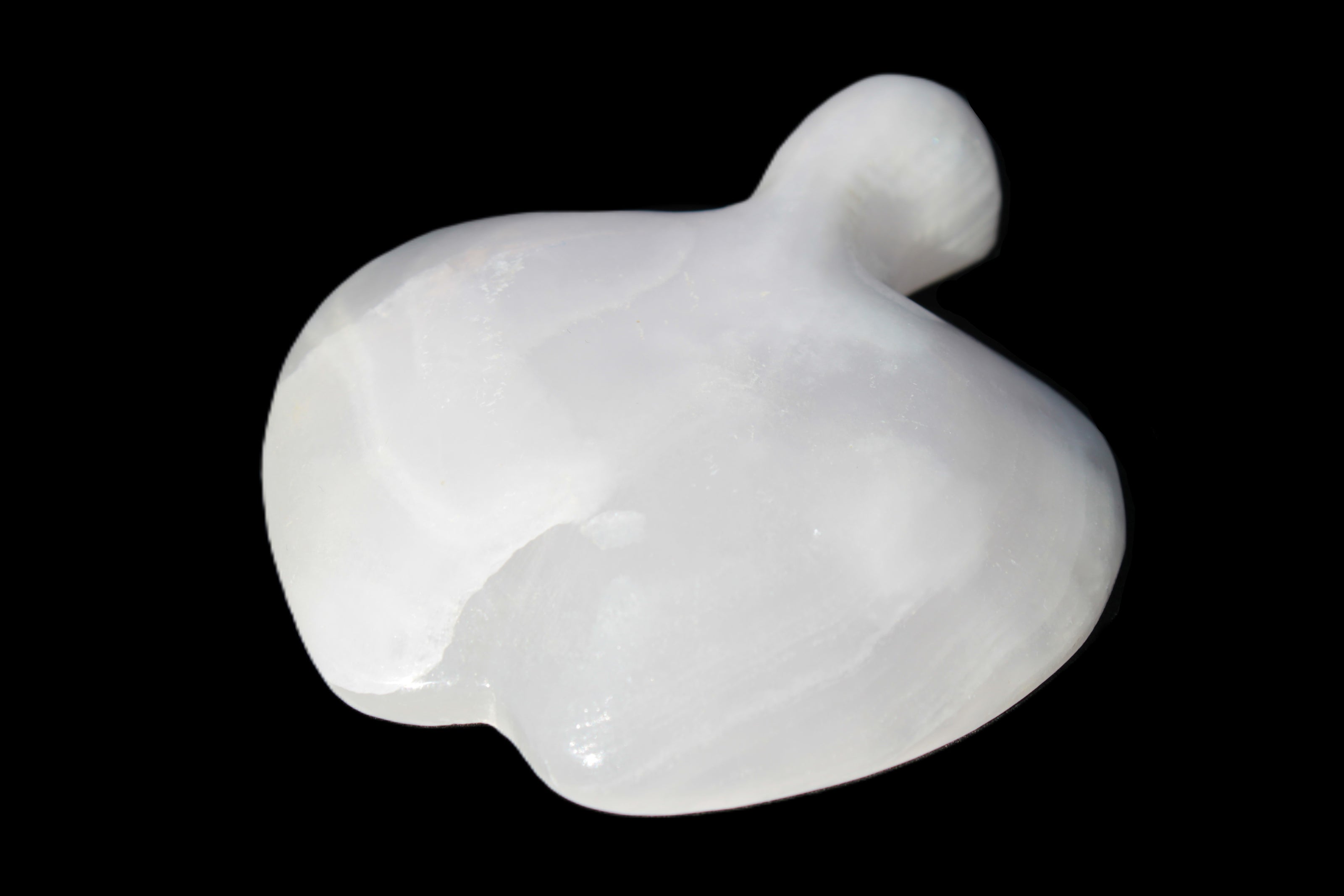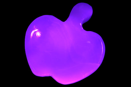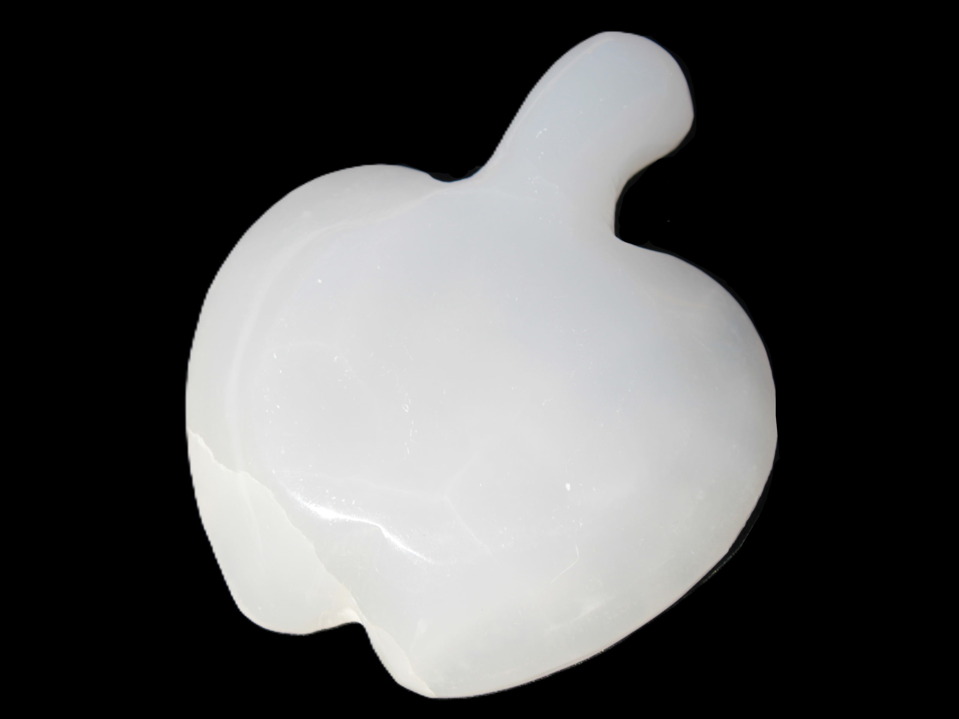 You can choose your Mangano Calcite hand-carved apple to bite into in this selection. The range 62-68g.  Mangano Calcite is a calcium carbonate mineral with a minimum of 30 per cent manganese carbonate present. The calcium and manganese carbonates can be banded. The presence of manganese makes Mangano Calcite react to ultraviolet light, giving it a bright hot-pink glow. Mangano can help reveal to you your true self. Mangano Calcite can help bring inner peace, through a process of self-discovery.