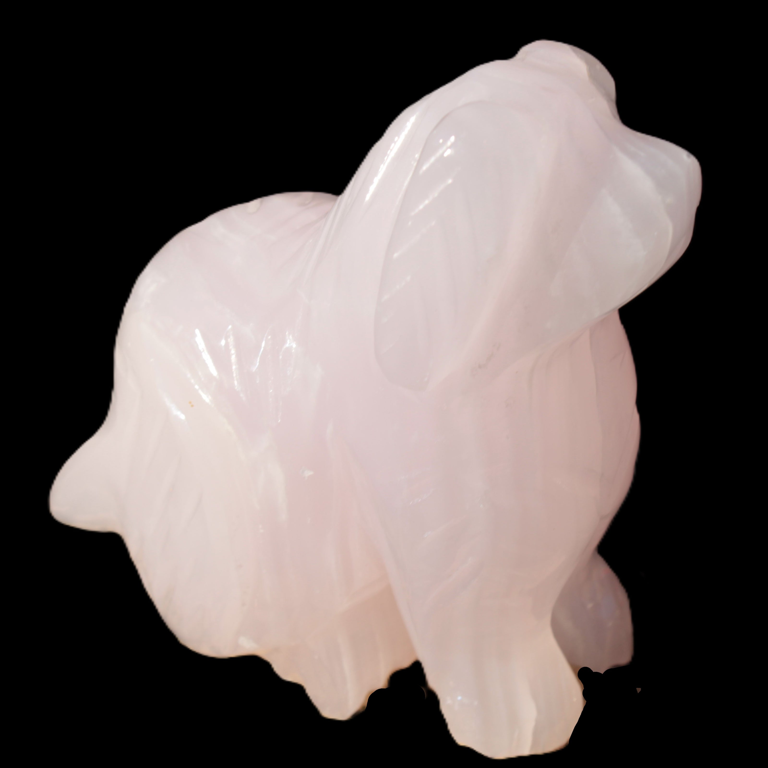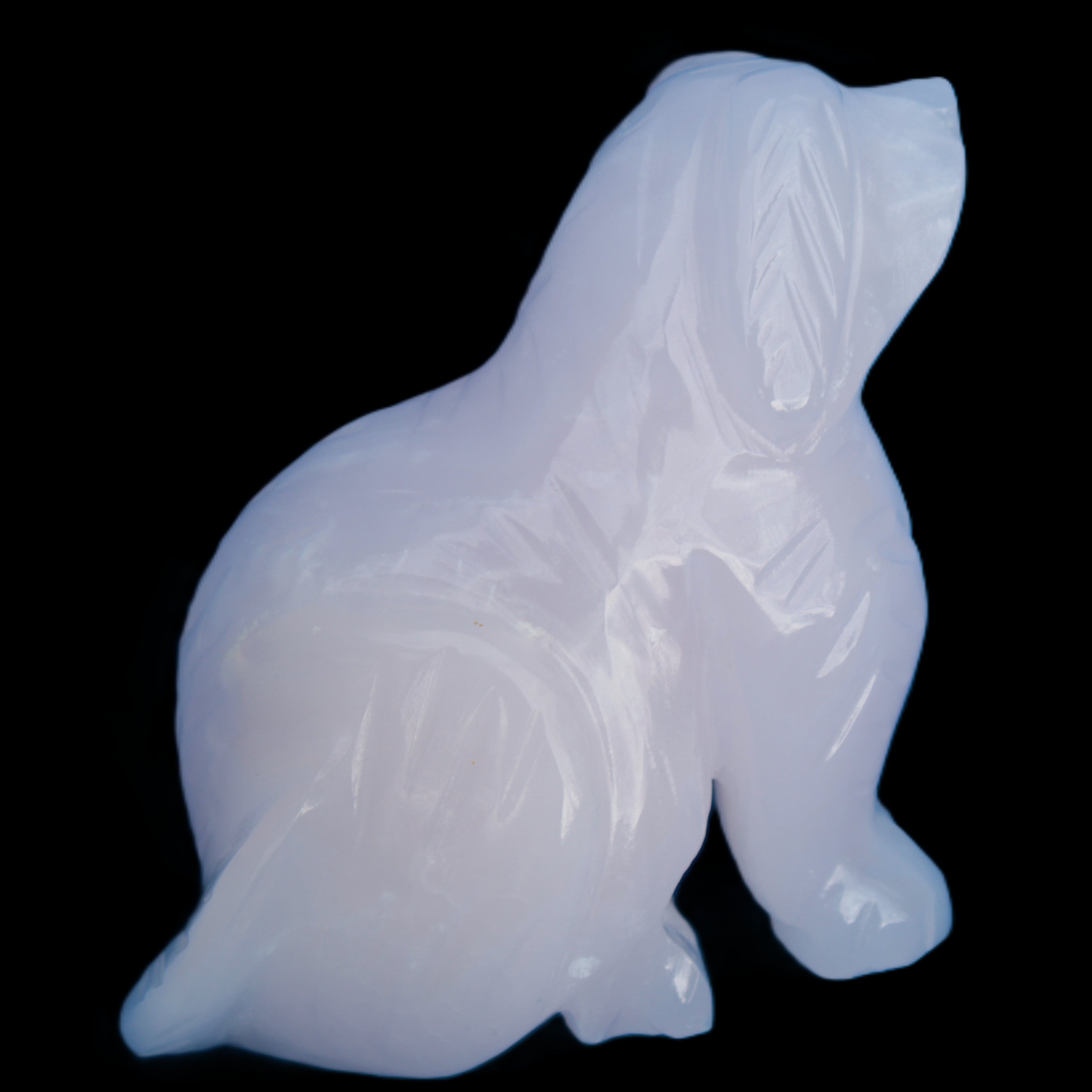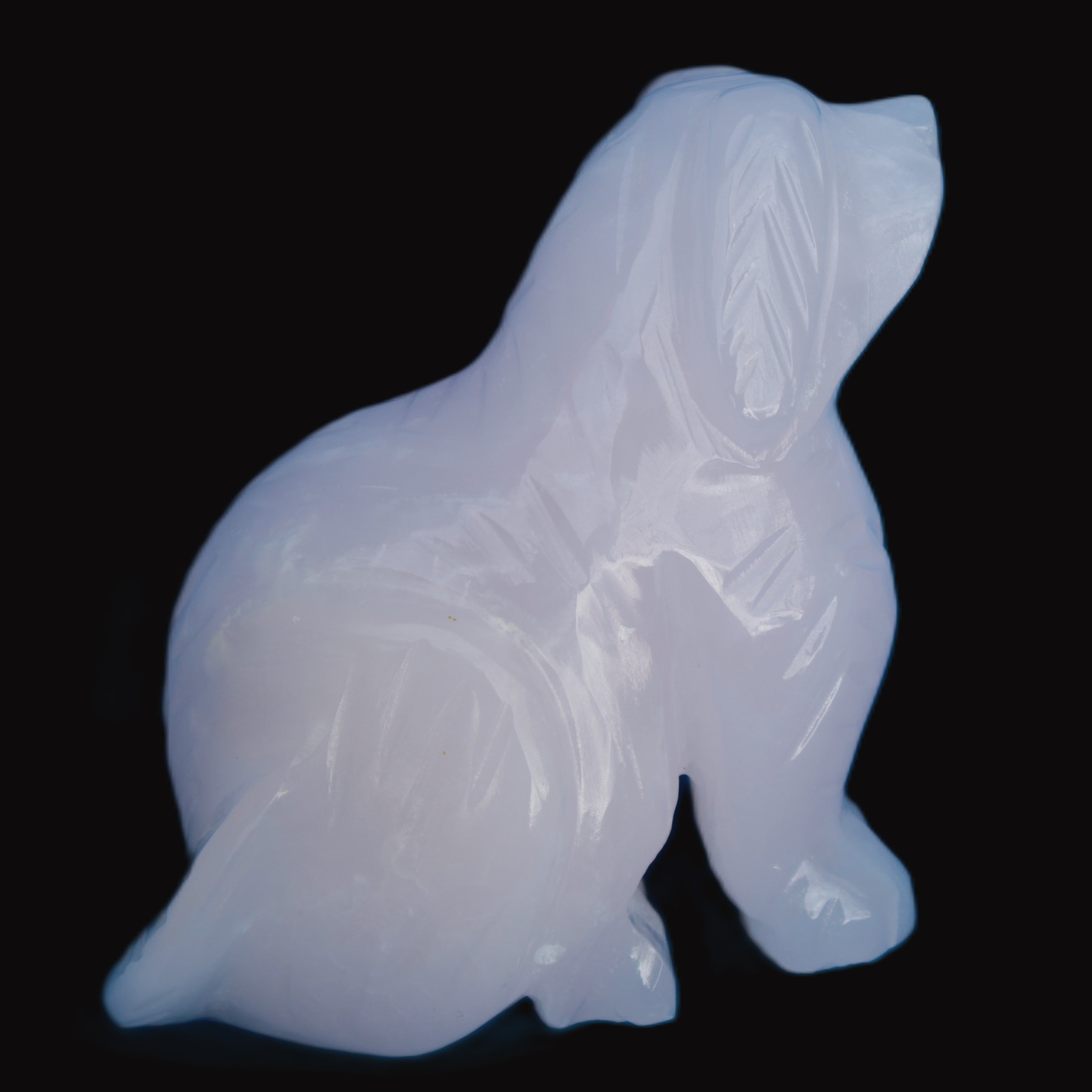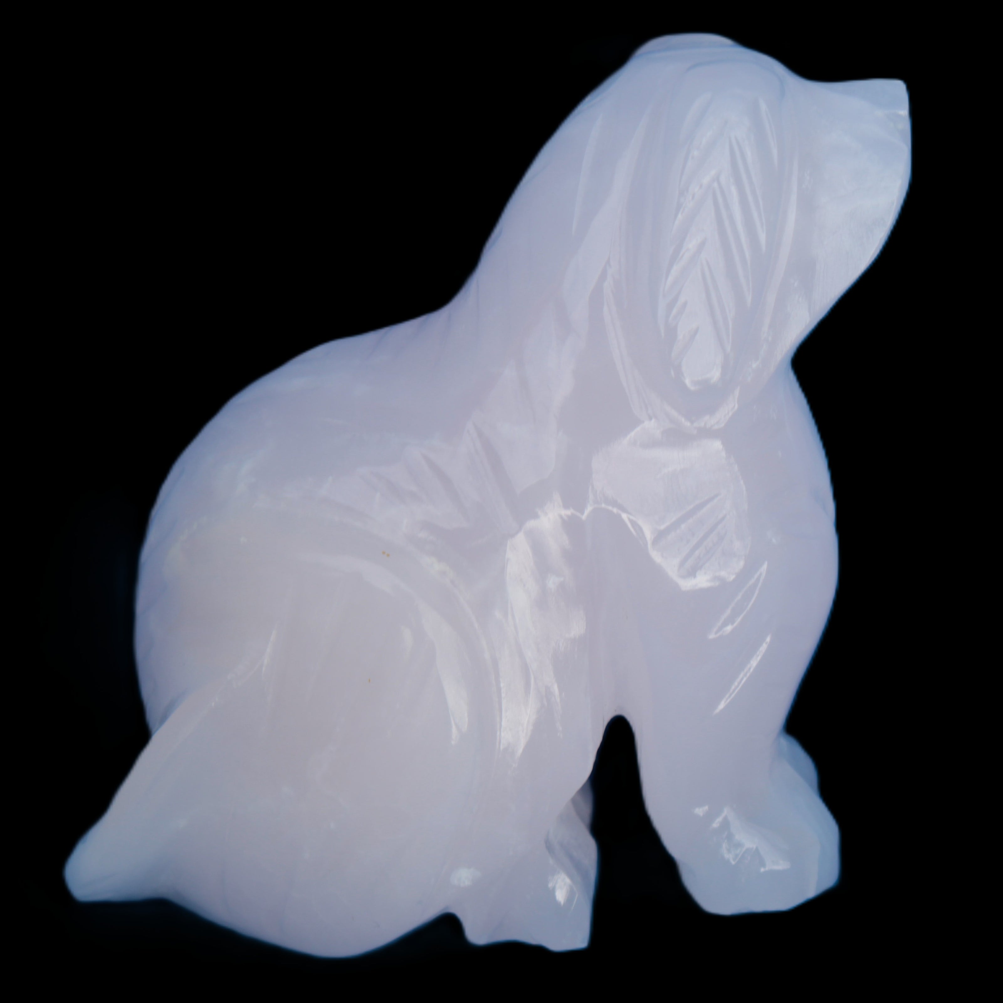 Mangano Calcite hand-carved sitting dog 604g Rocks and Things Store