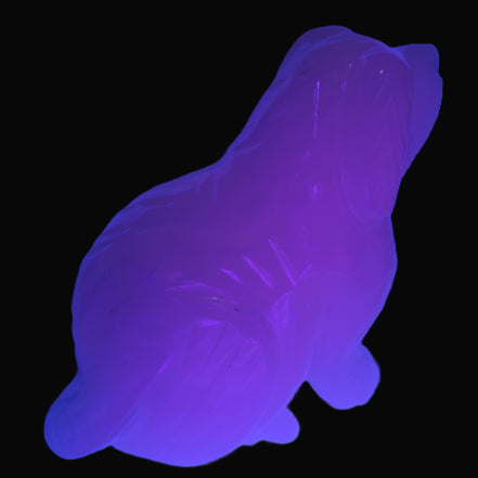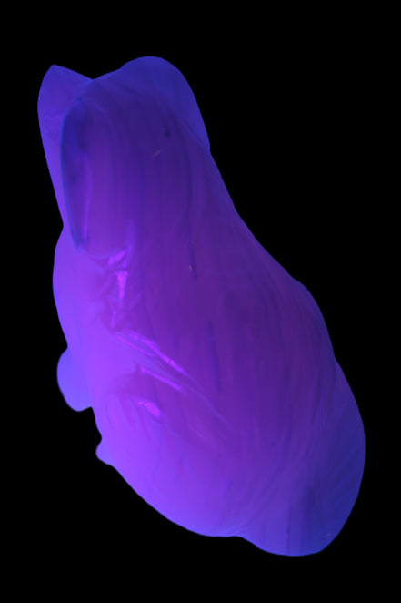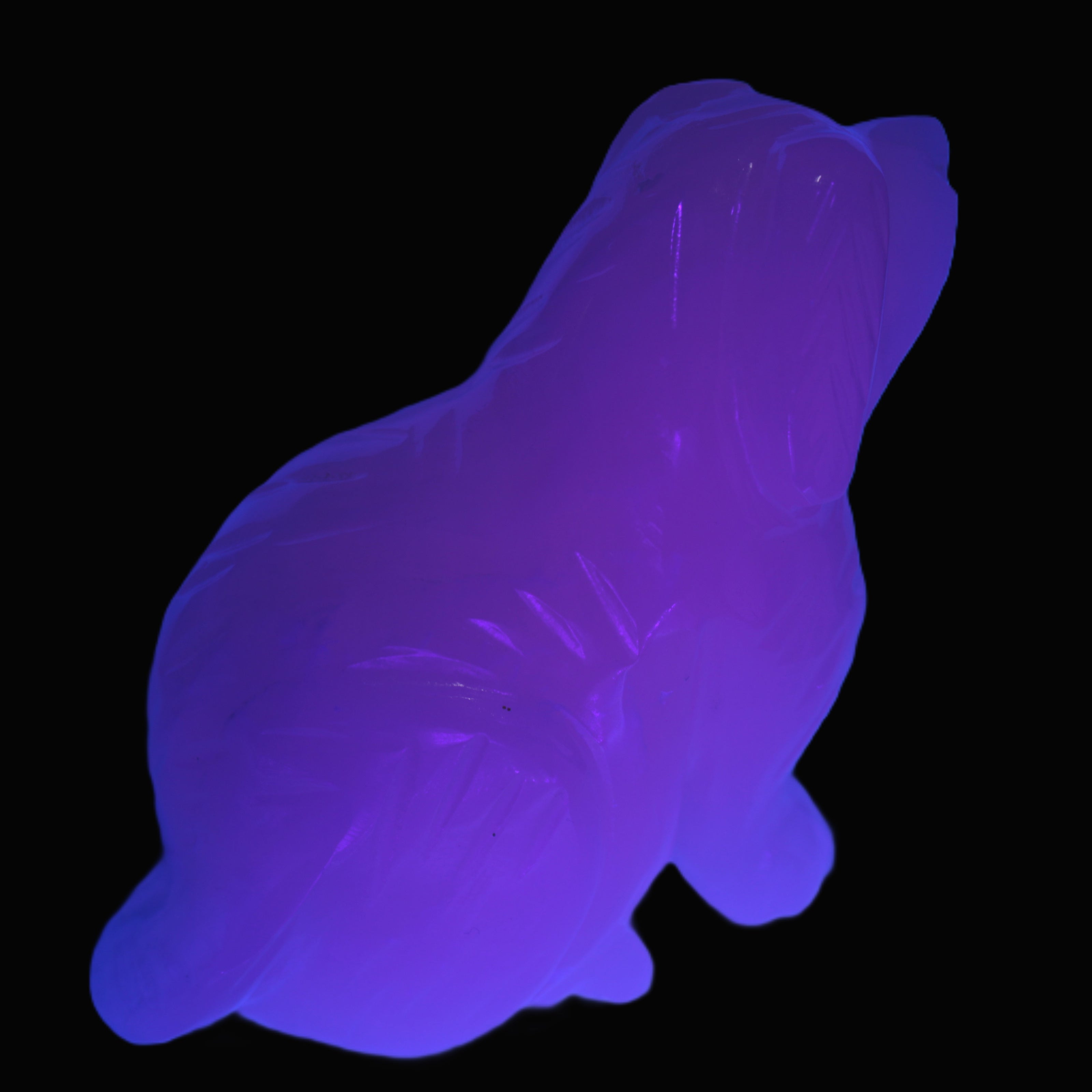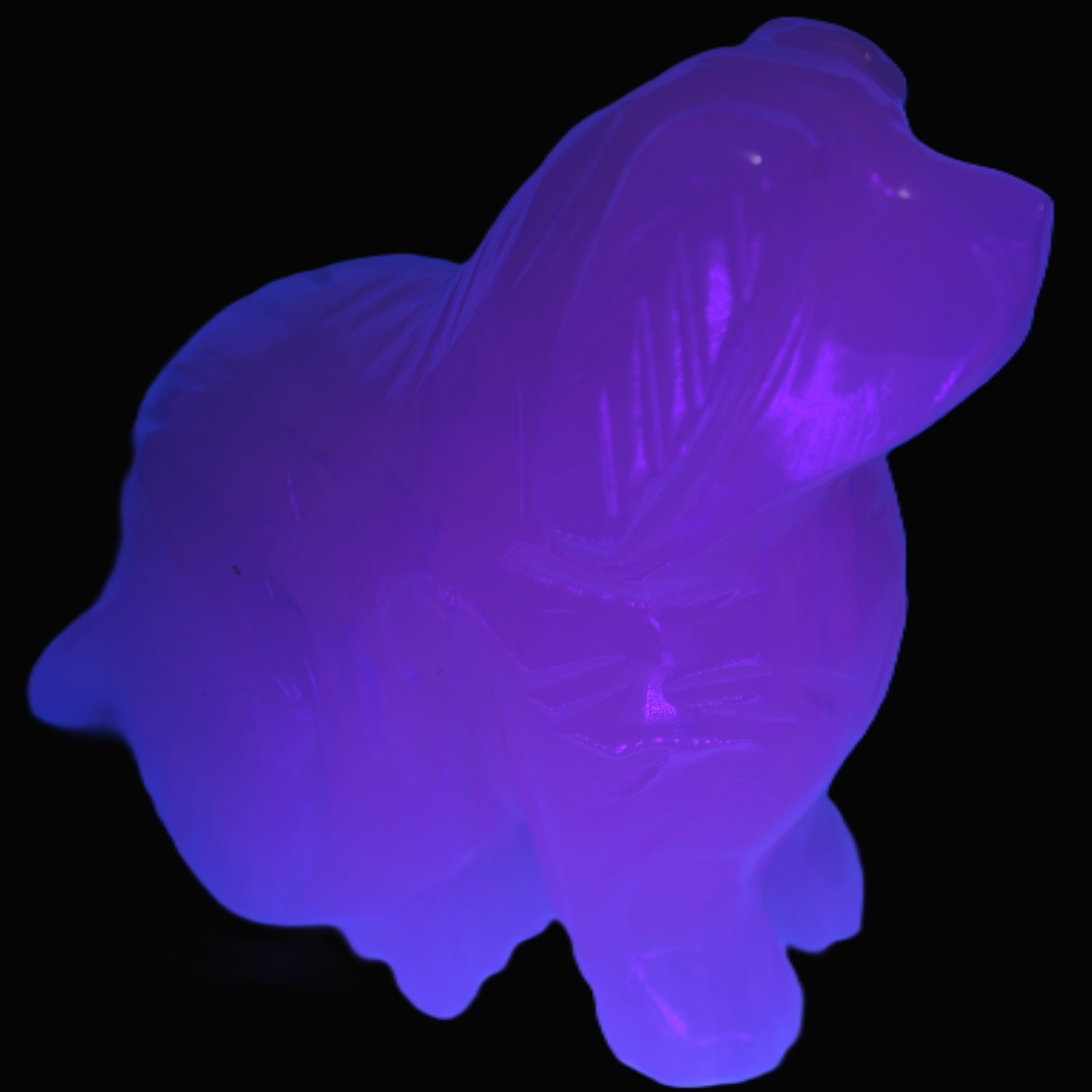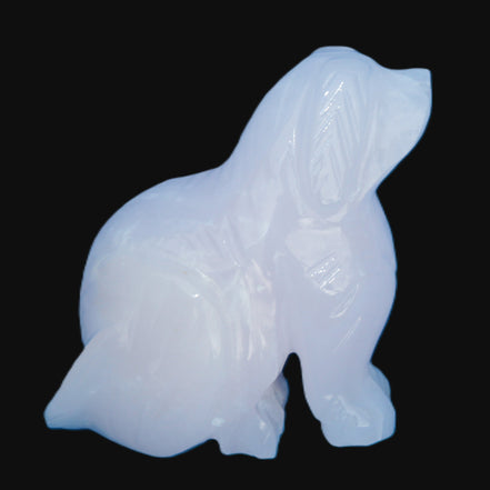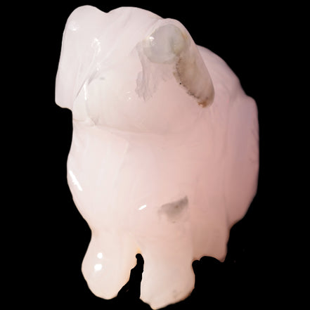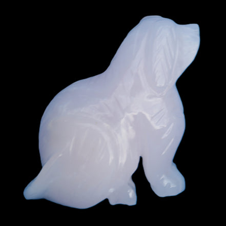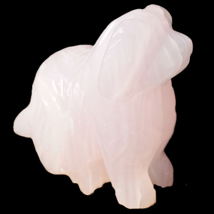 Mangano Calcite hand-carved sitting dog 604g Rocks and Things Store