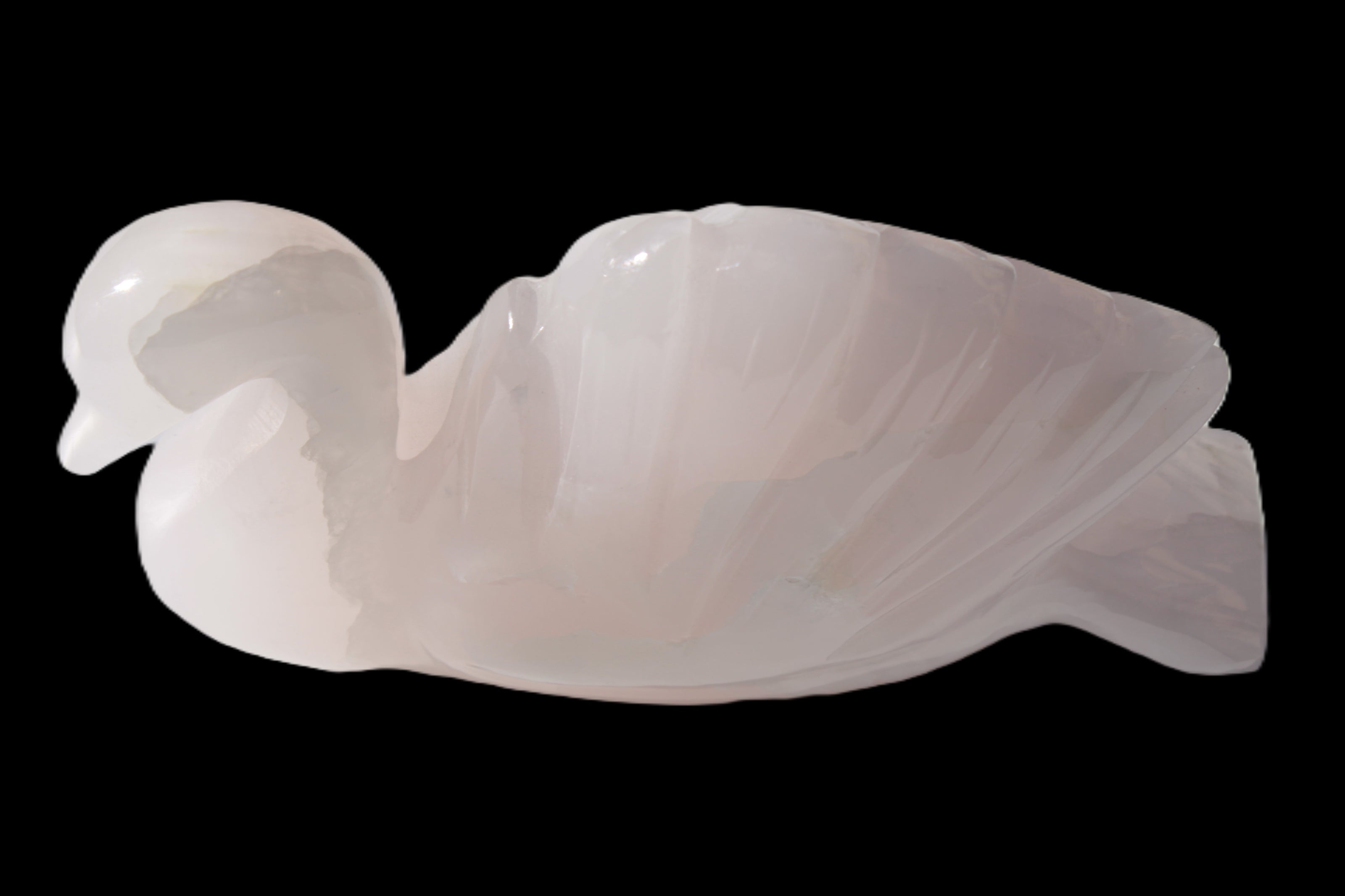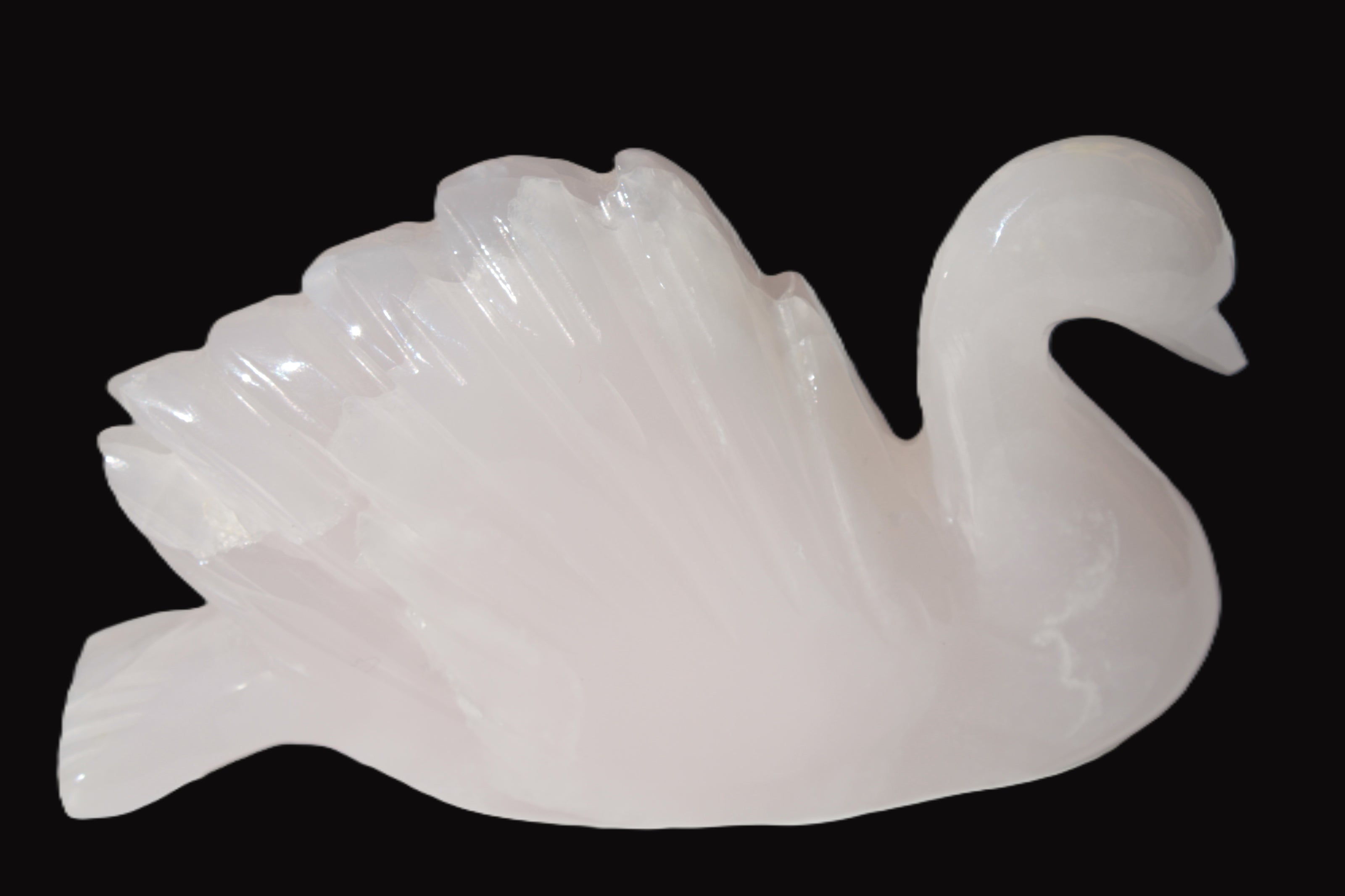Mangano Calcite hand-carved Swan 140*82*32mm 511g Rocks and Things