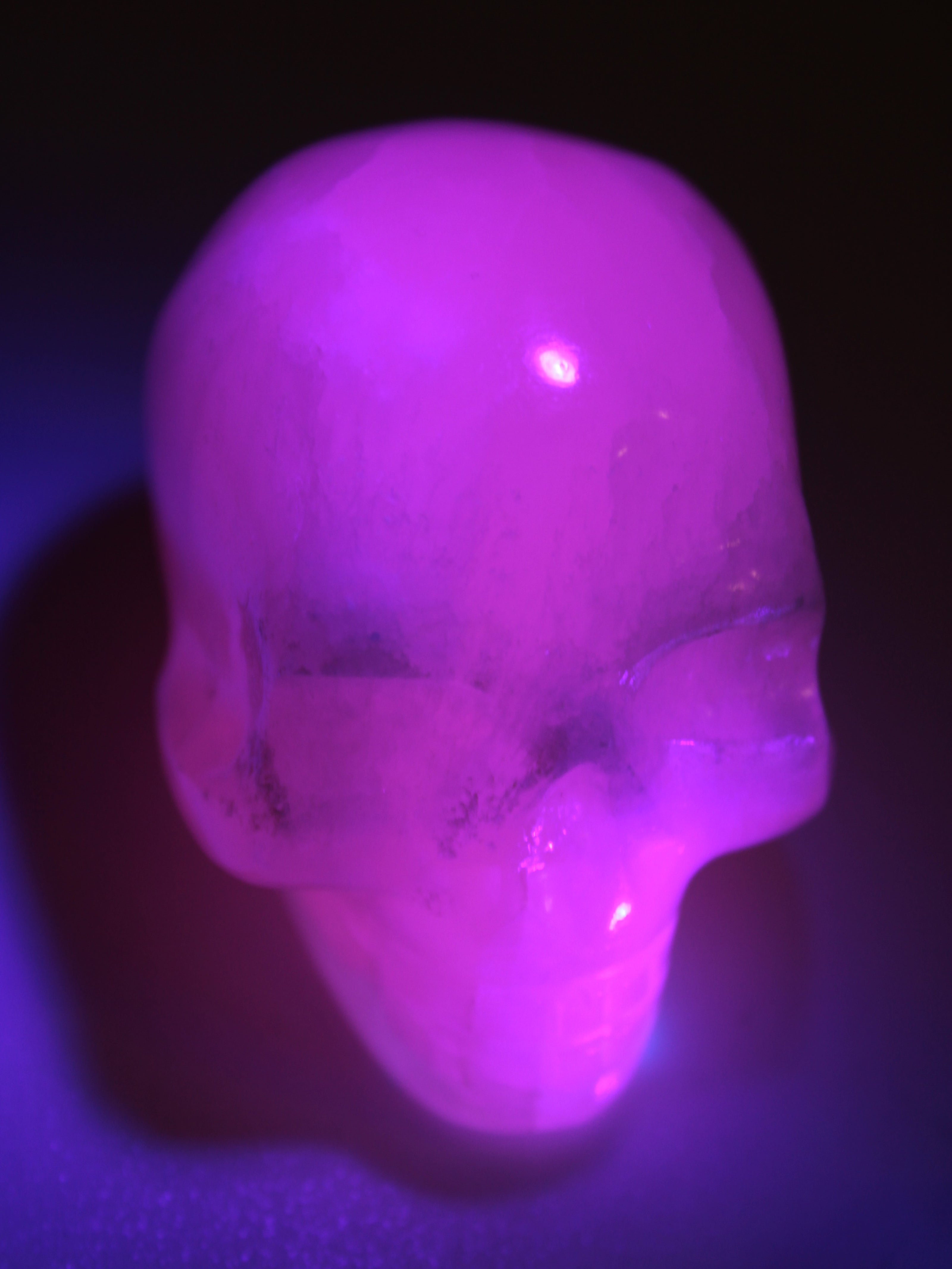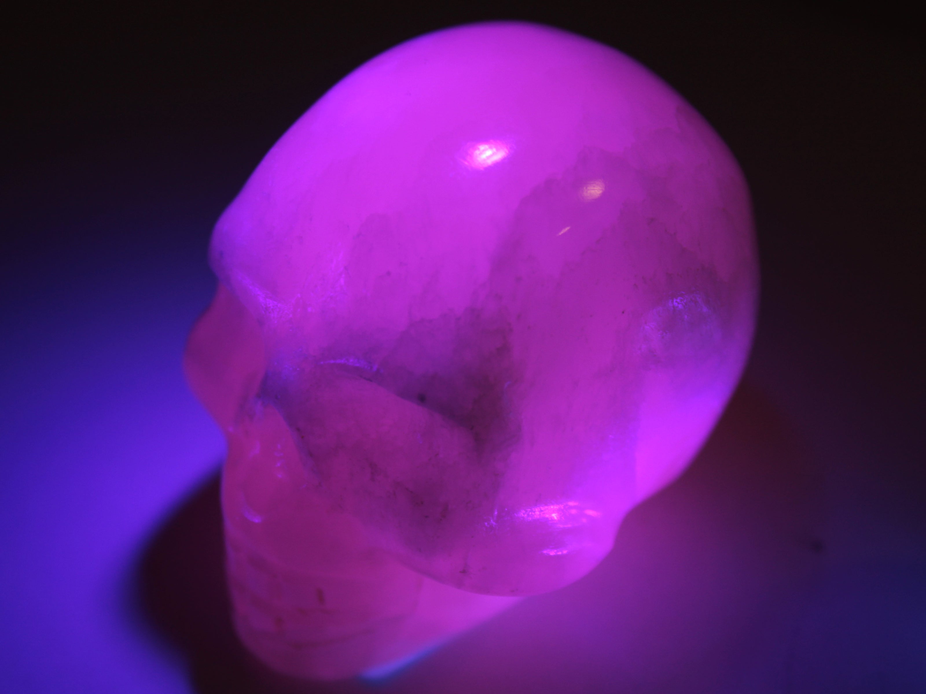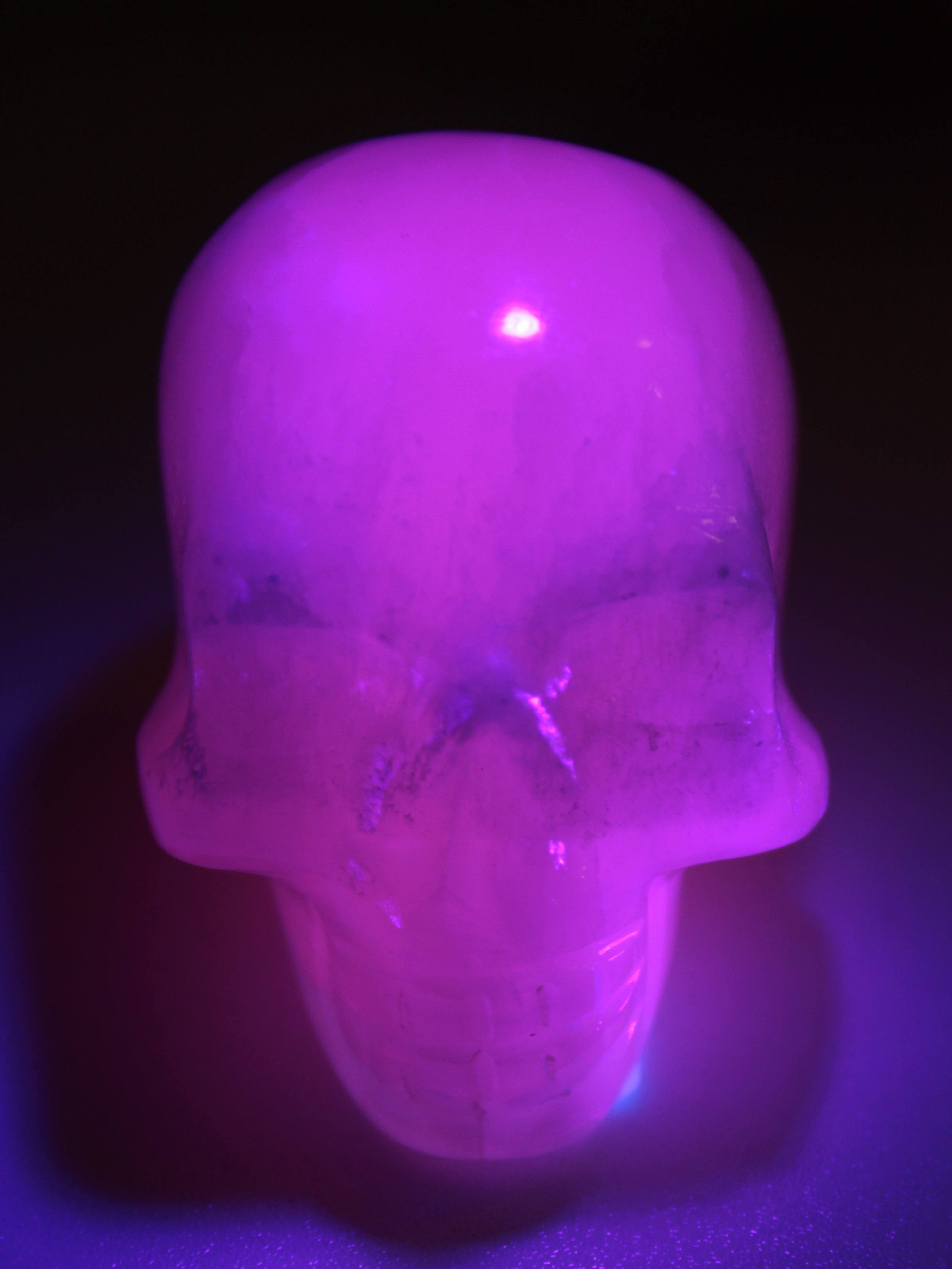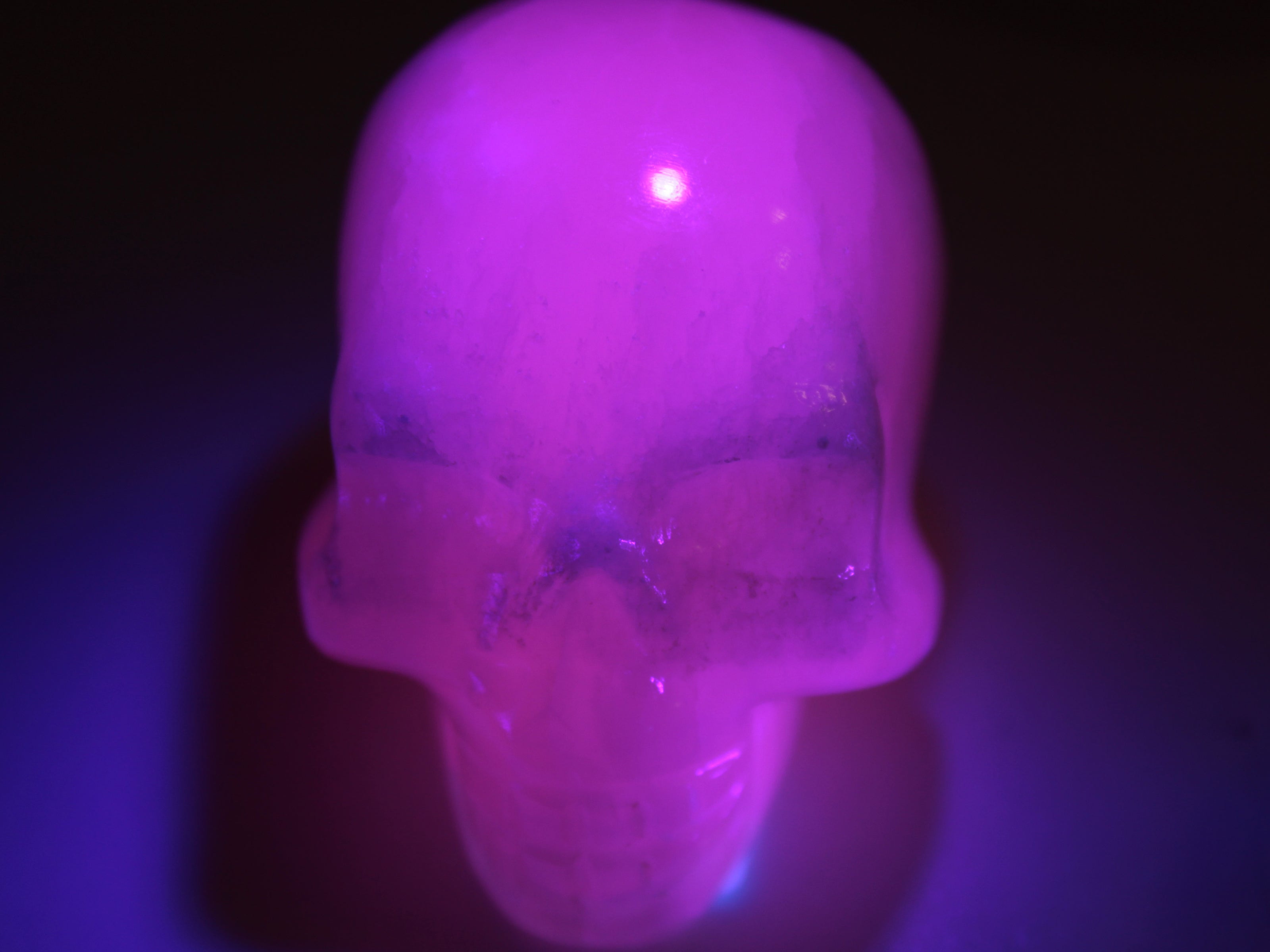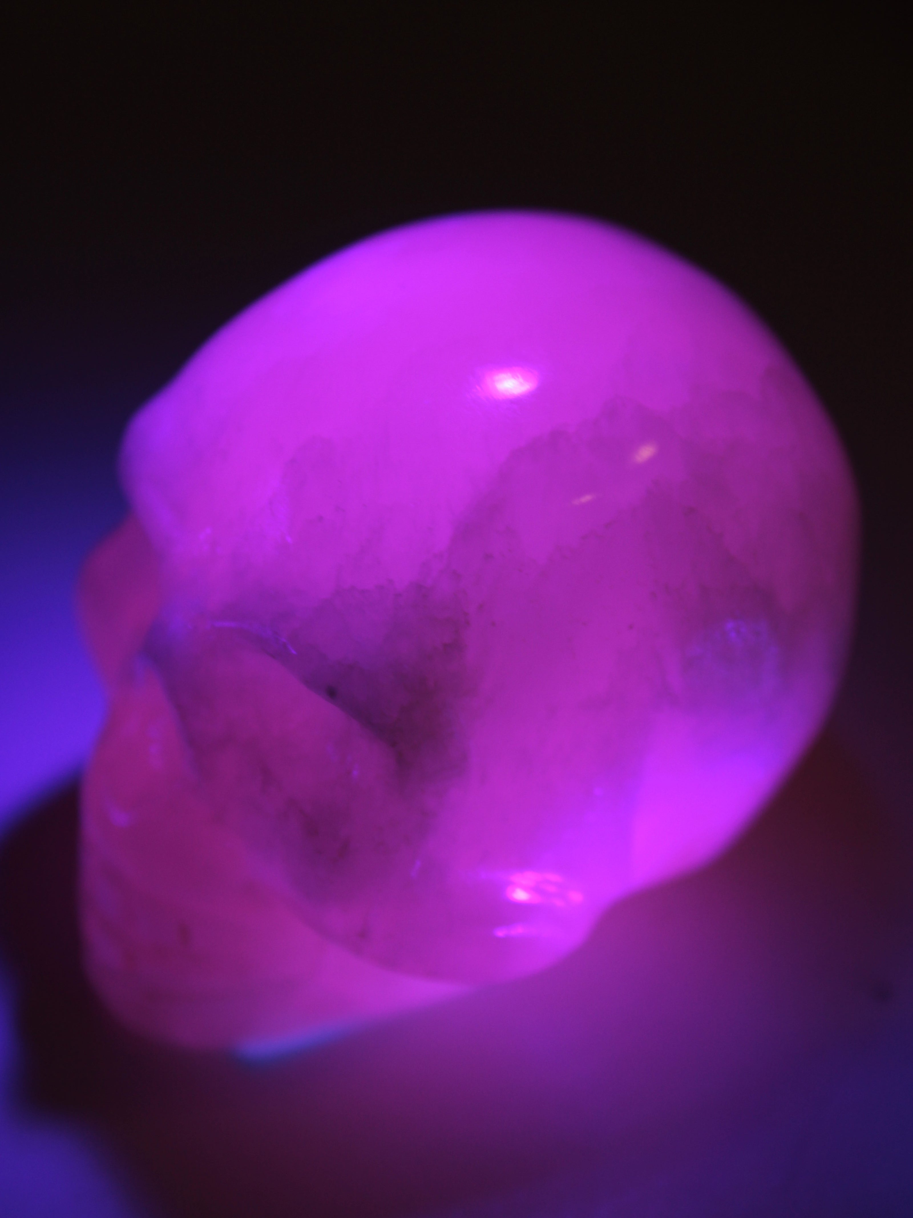 Mangano is a calcium carbonate mineral with a minimum of 30 per cent manganese carbonate present. The calcium and manganese carbonates can be banded. The presence of manganese makes Mangano Calcite react to ultraviolet light, giving it a bright hot-pink glow.