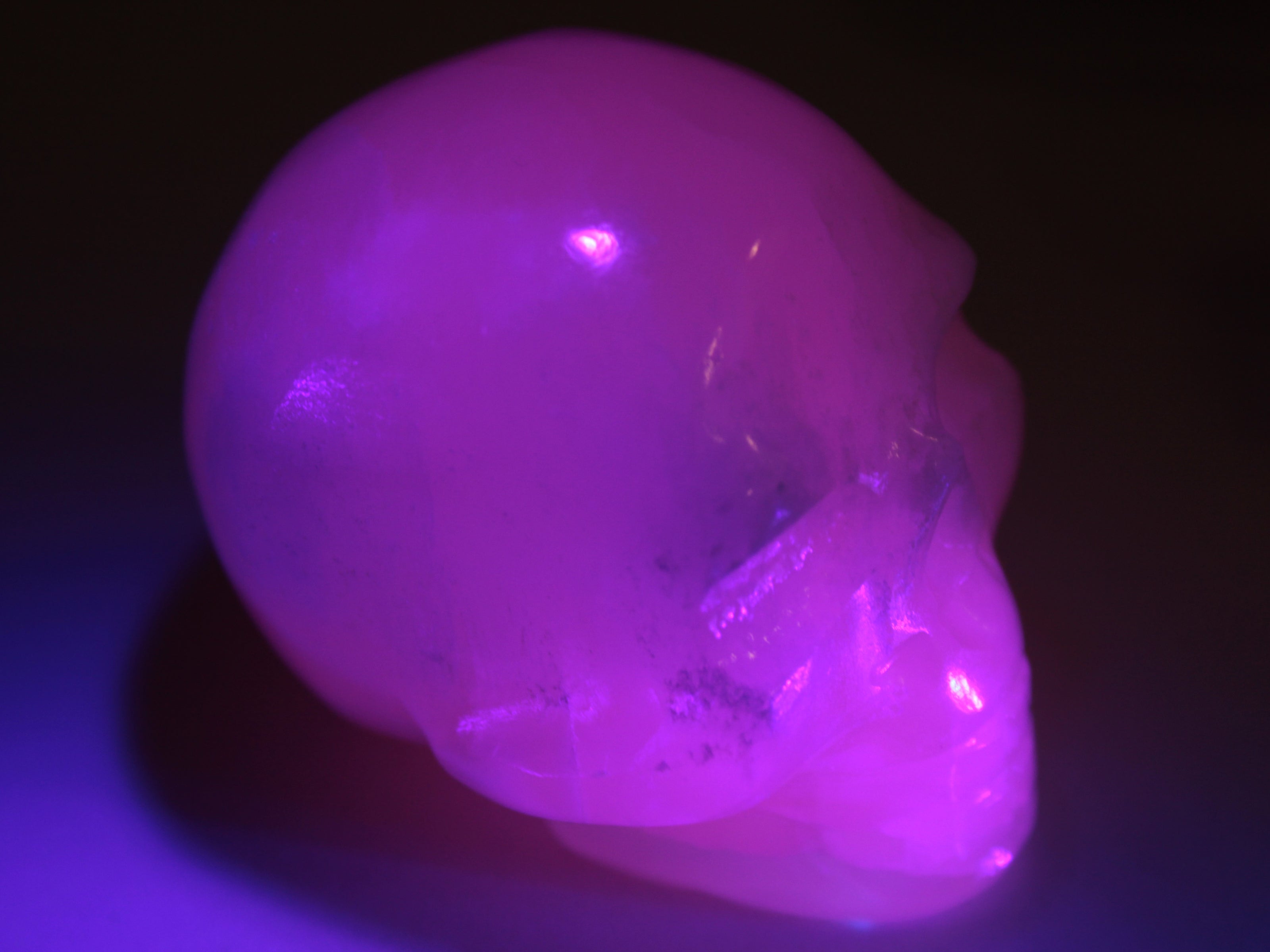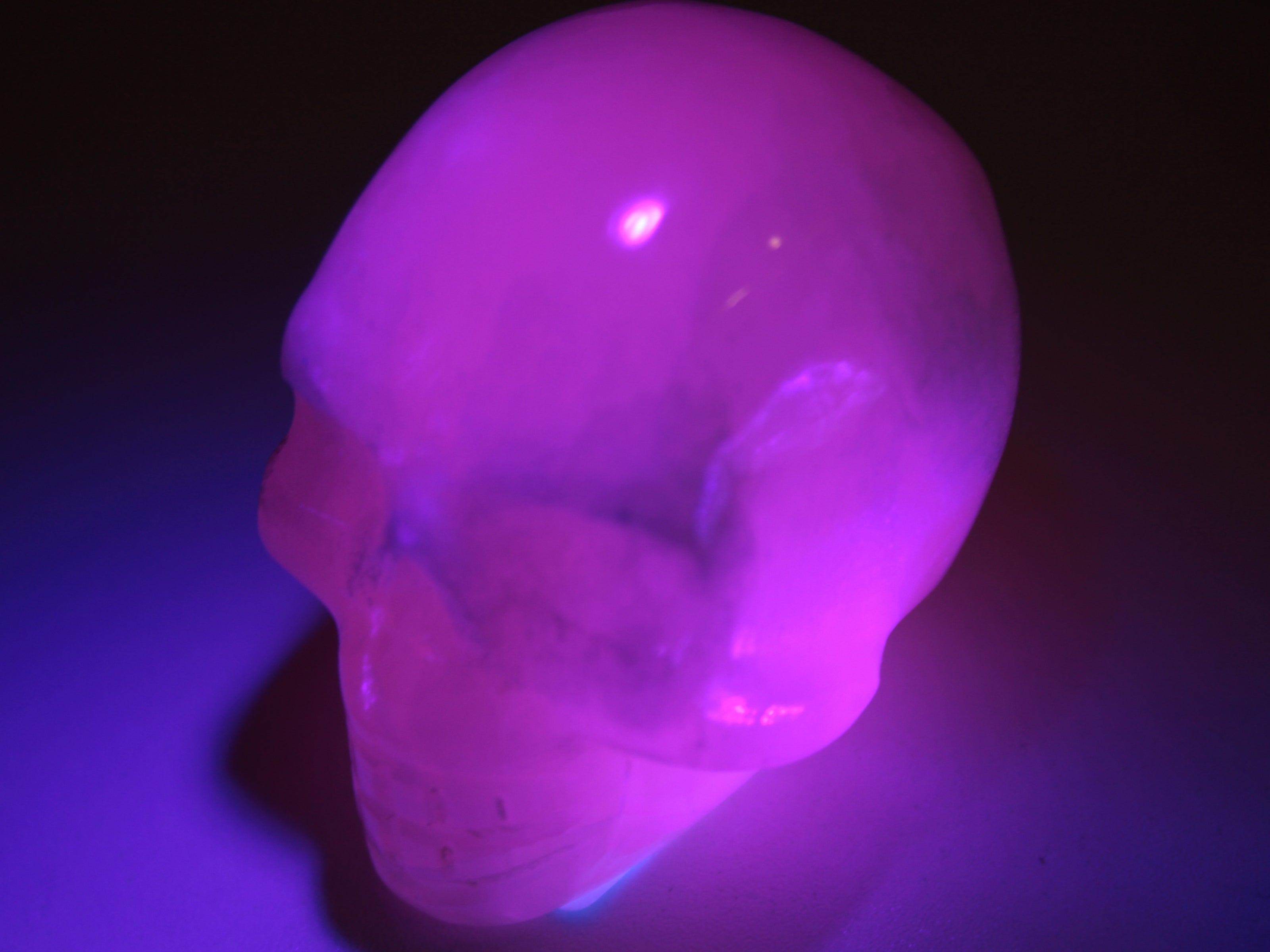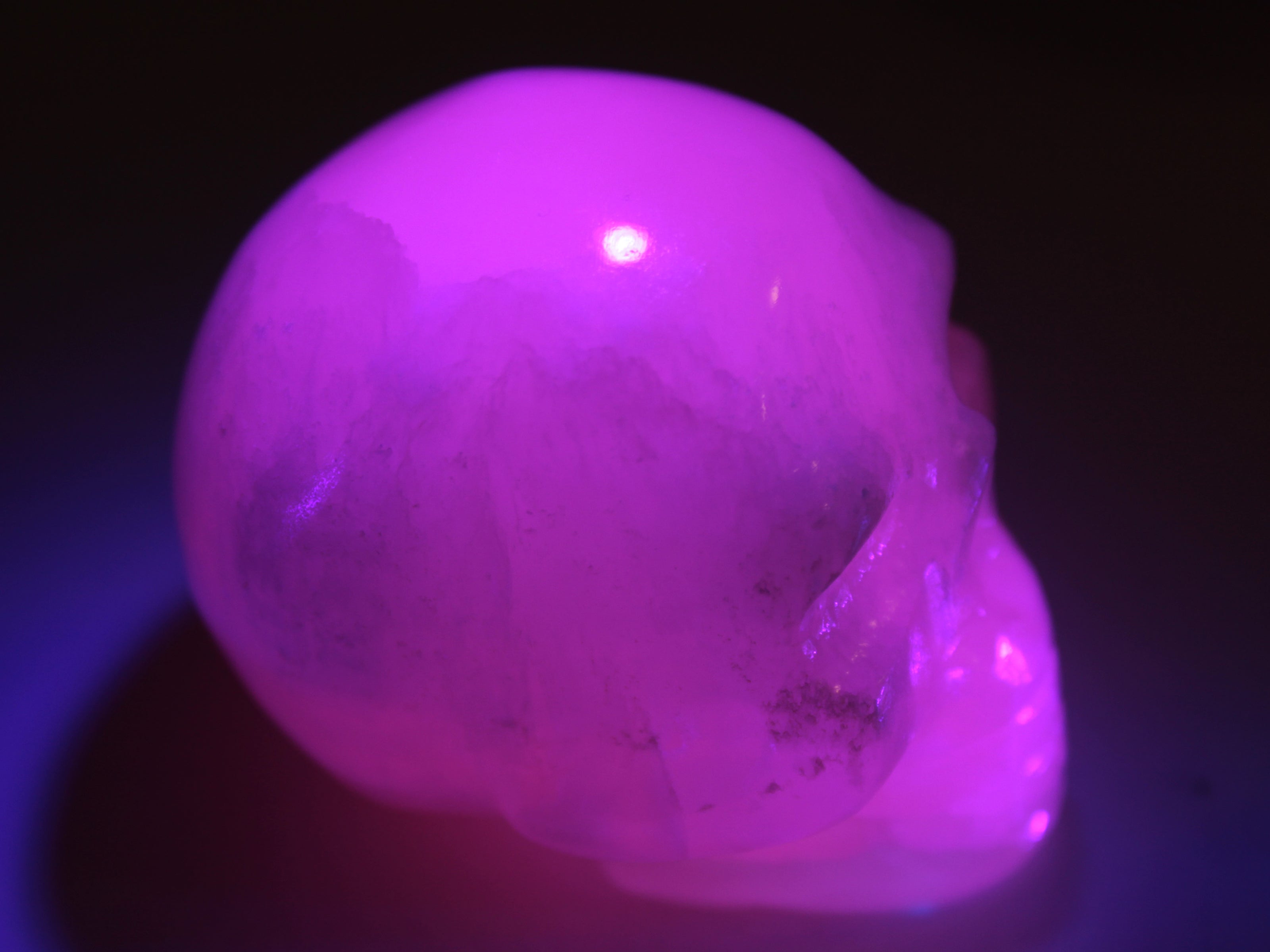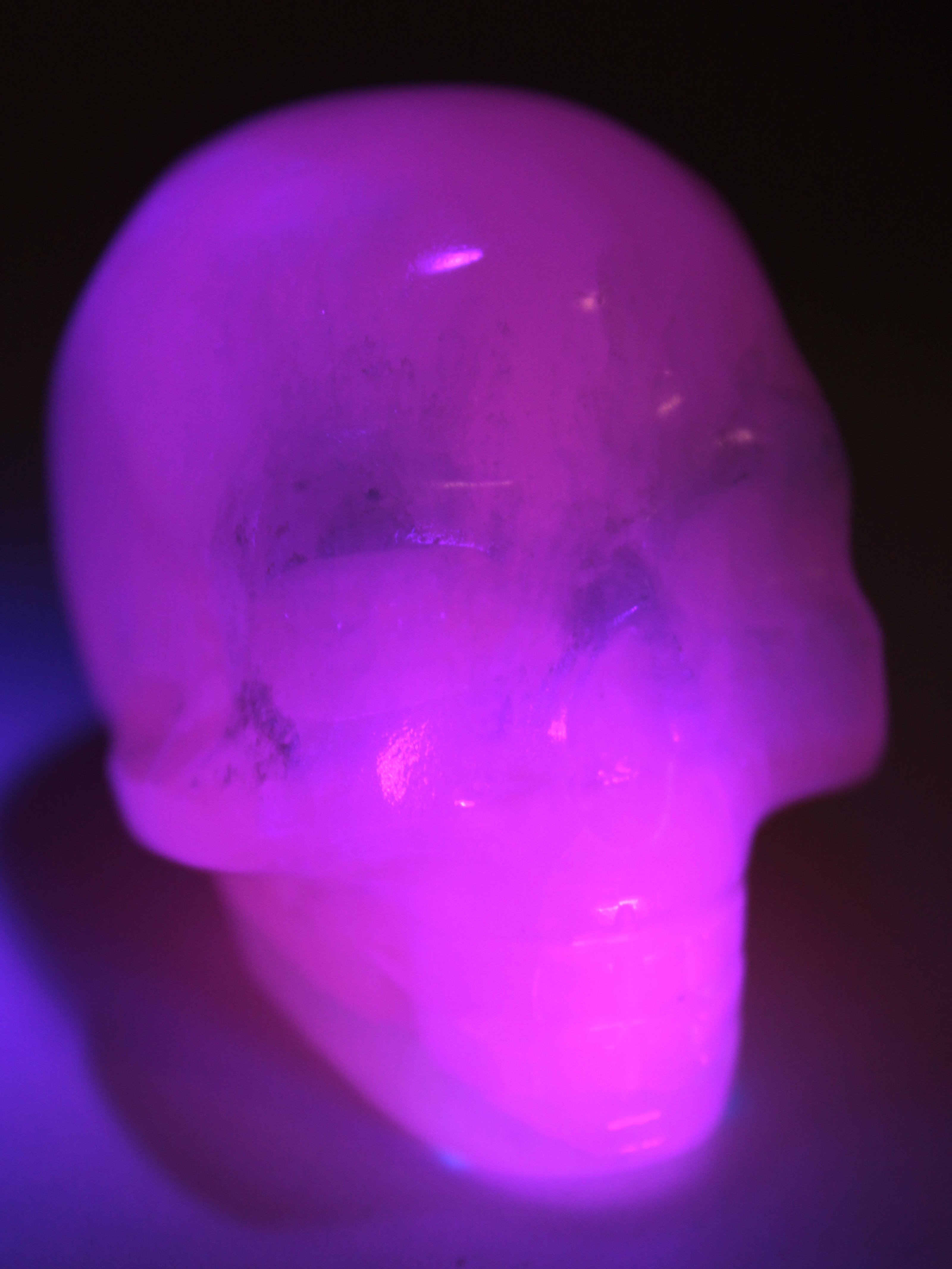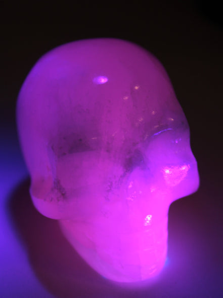 Mangano is a calcium carbonate mineral with a minimum of 30 per cent manganese carbonate present. The calcium and manganese carbonates can be banded. The presence of manganese makes Mangano Calcite react to ultraviolet light, giving it a bright hot-pink glow.