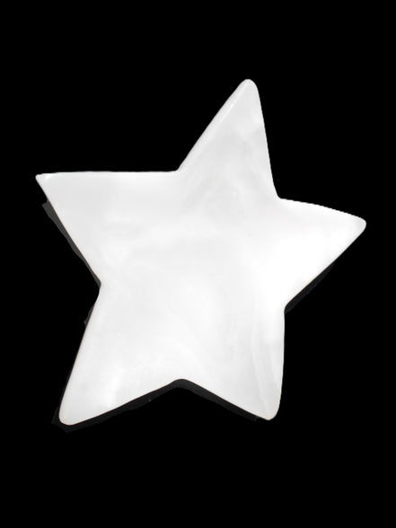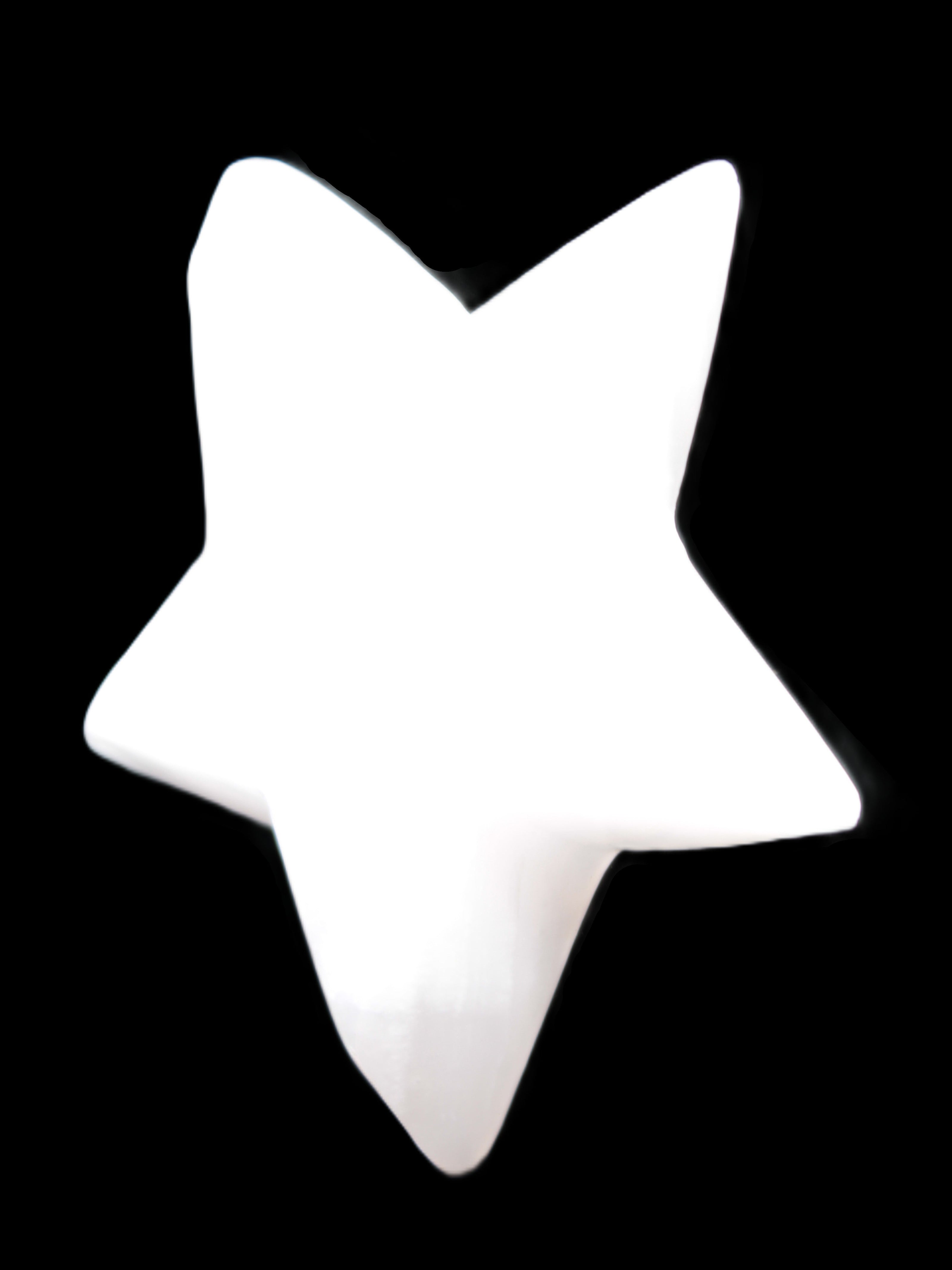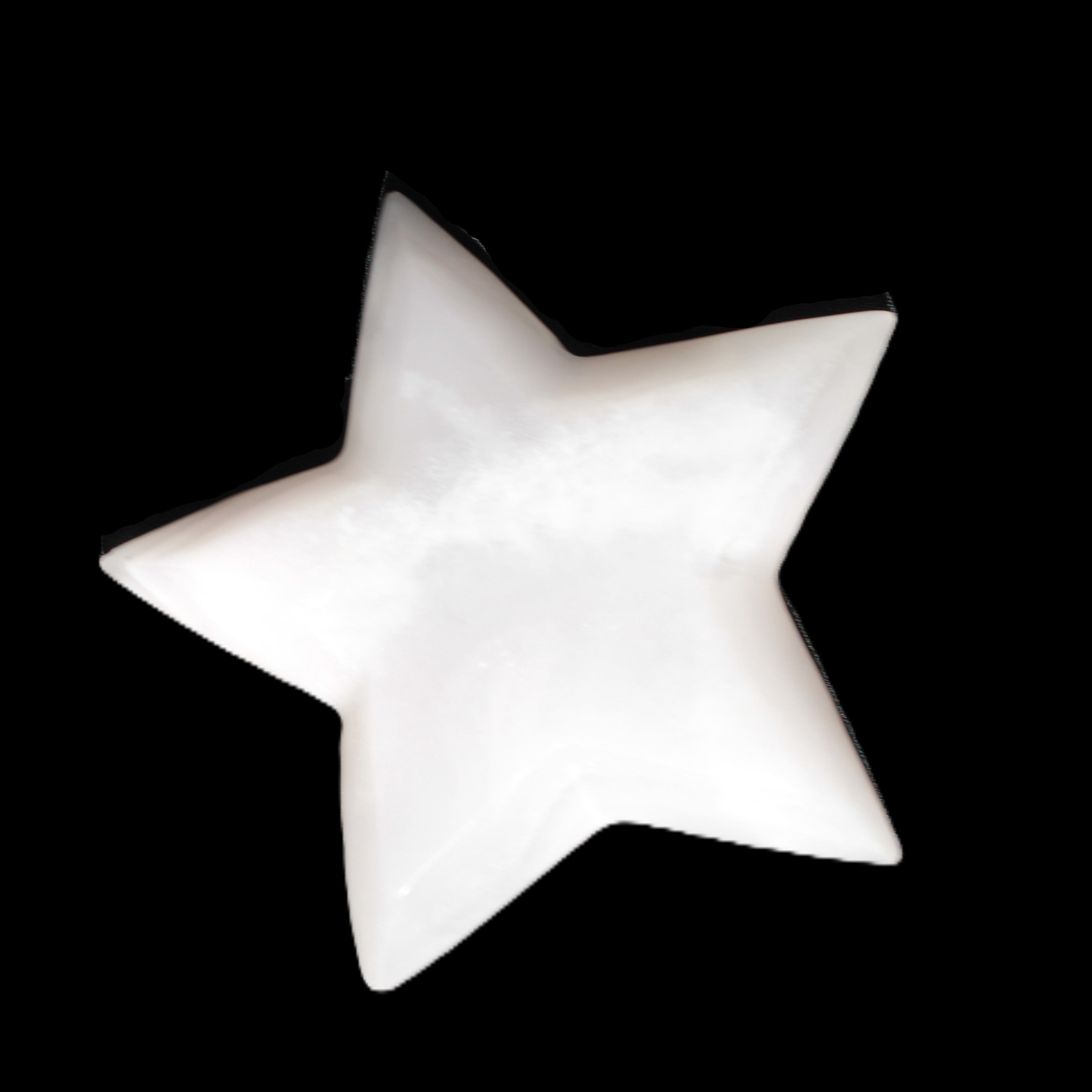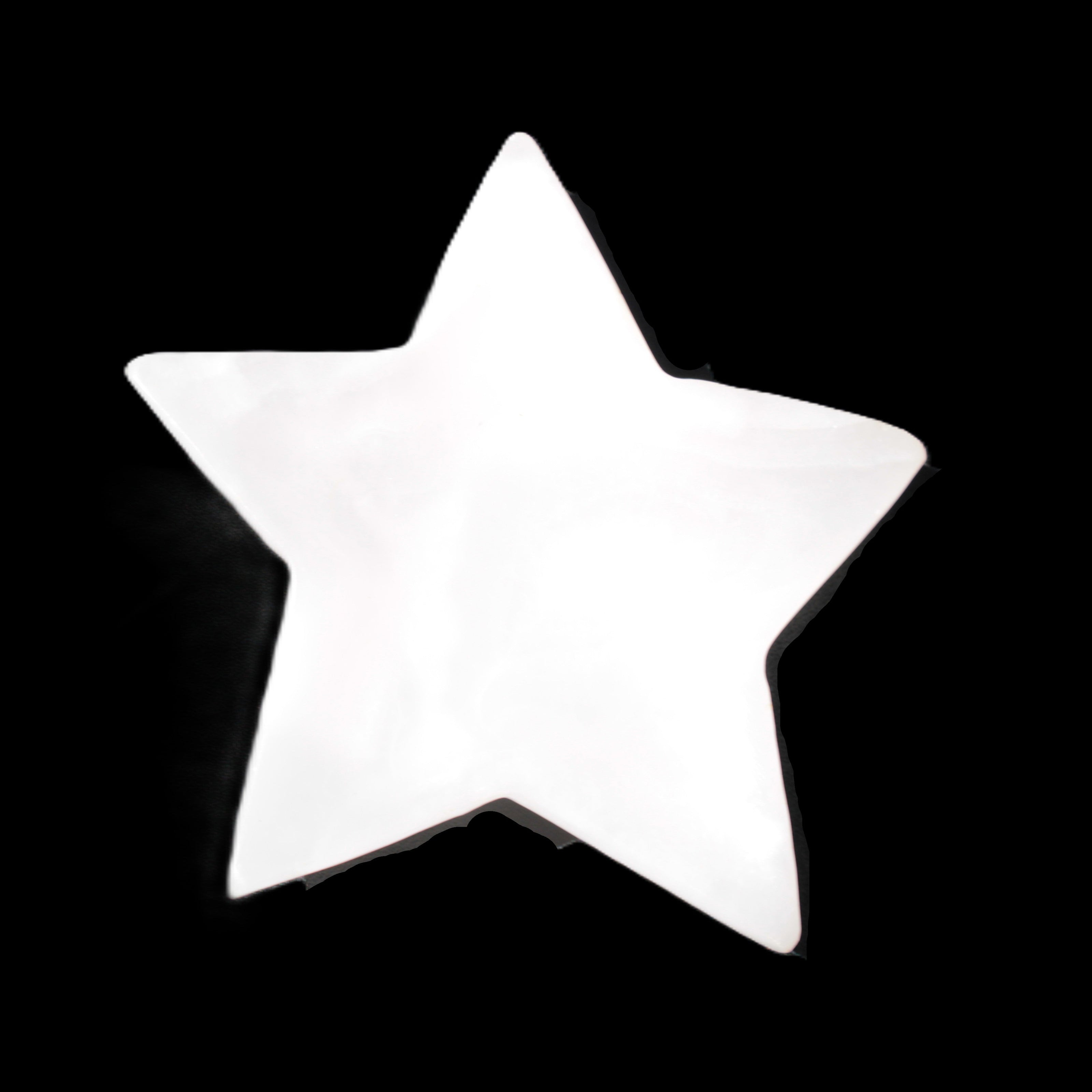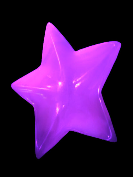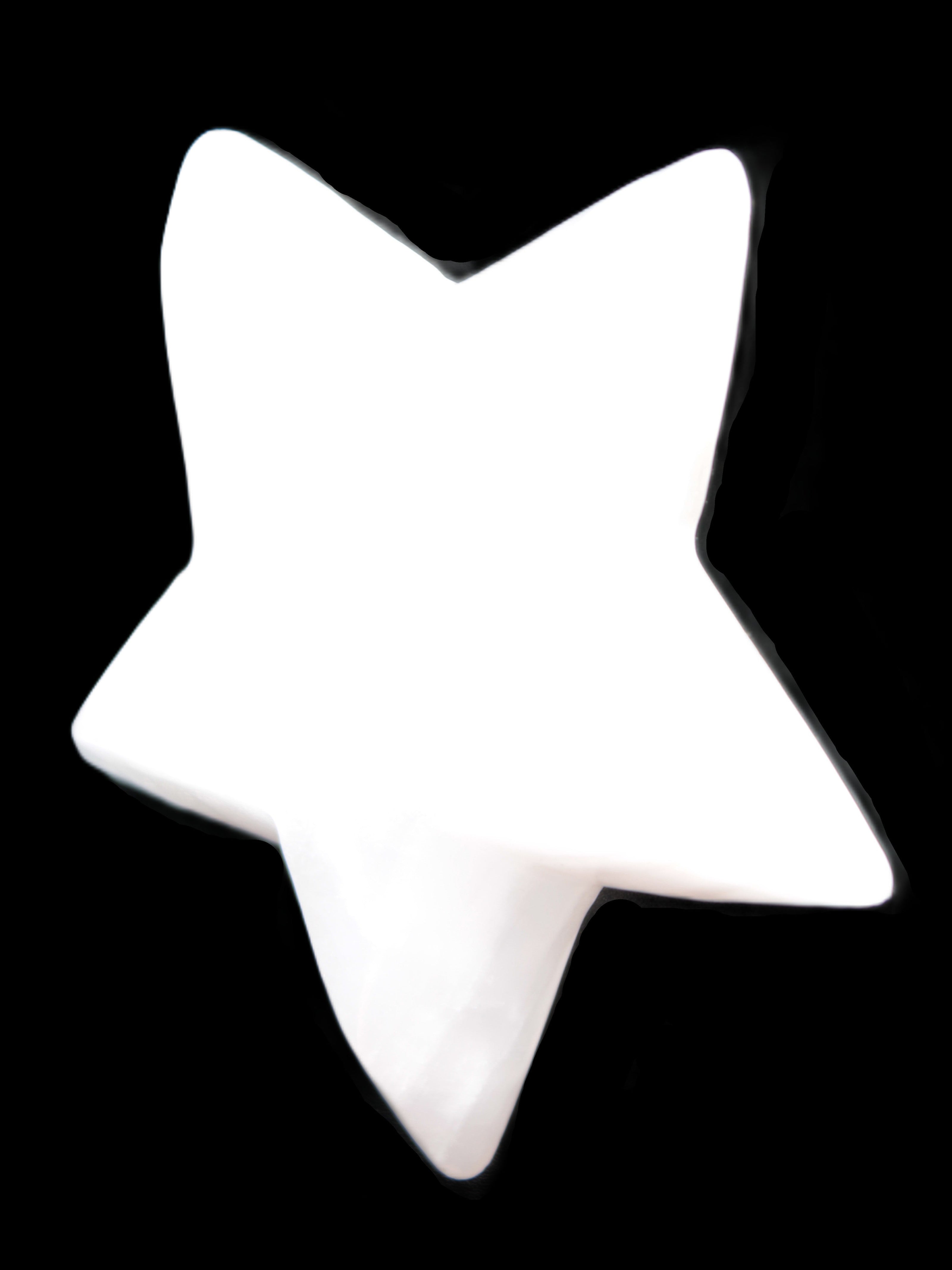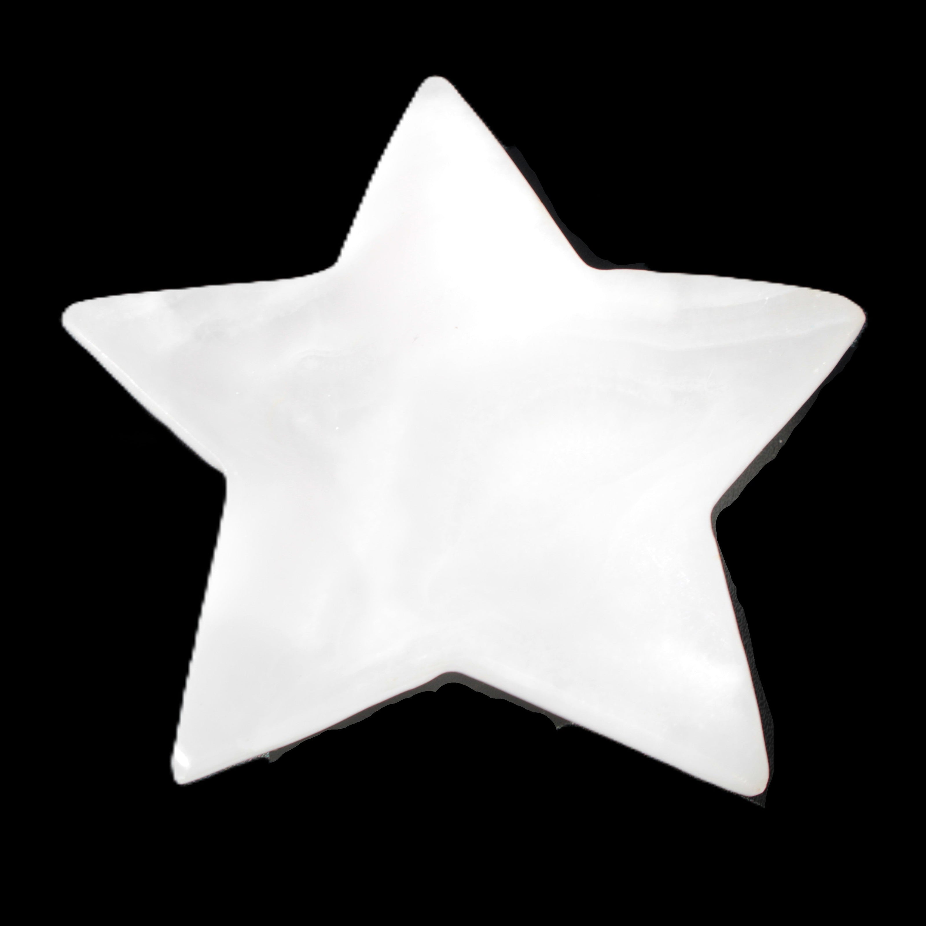 This Mangano Calcite star 108*18mm weighs 162.8g. It is indented, so it can be used as a small dish or stand. Mangano Calcite is a calcium carbonate mineral with a minimum of 30 per cent manganese carbonate present. The calcium and manganese carbonates can be banded. The presence of manganese makes Mangano Calcite react to ultraviolet light, giving it a bright hot-pink glow.