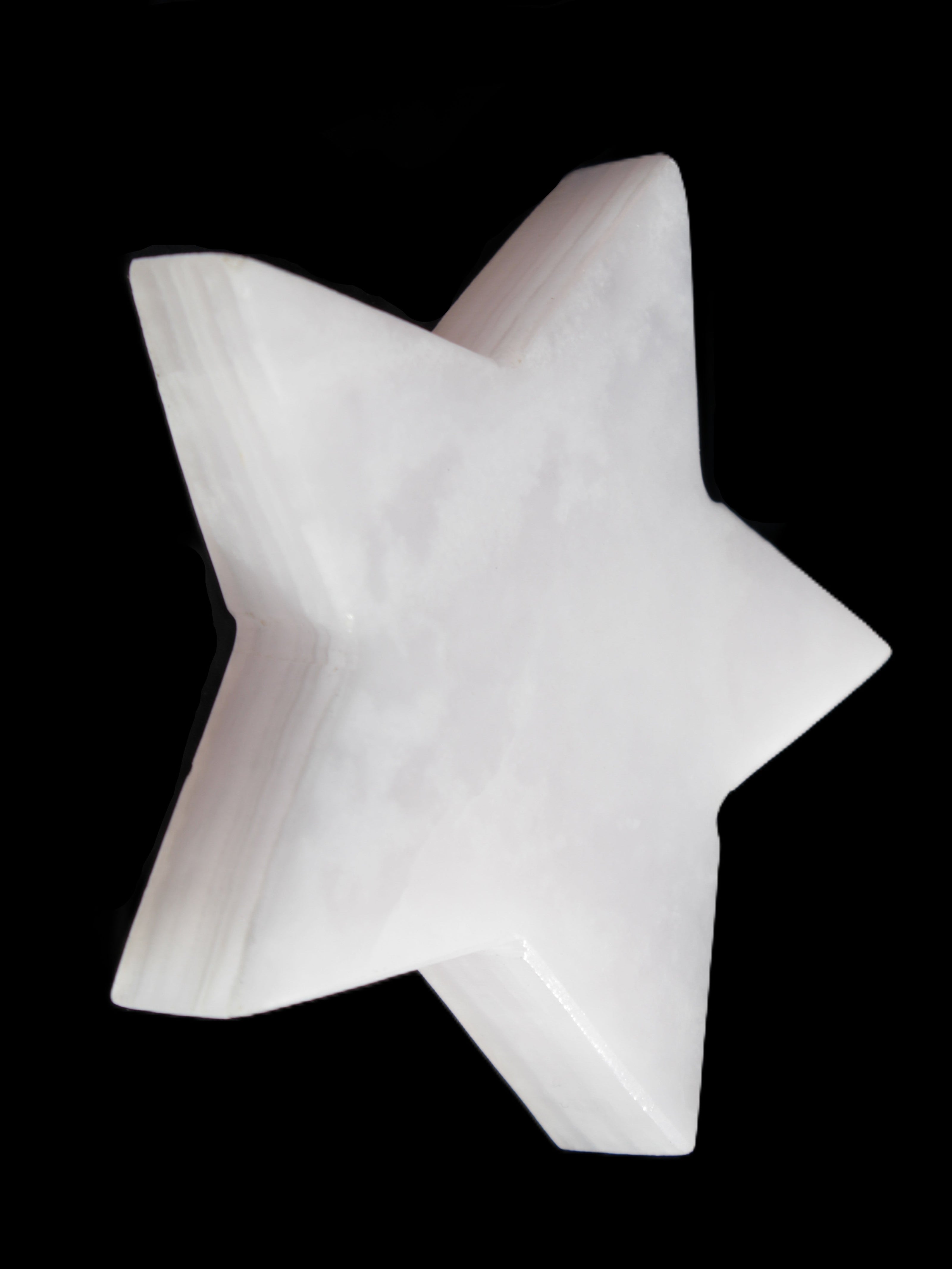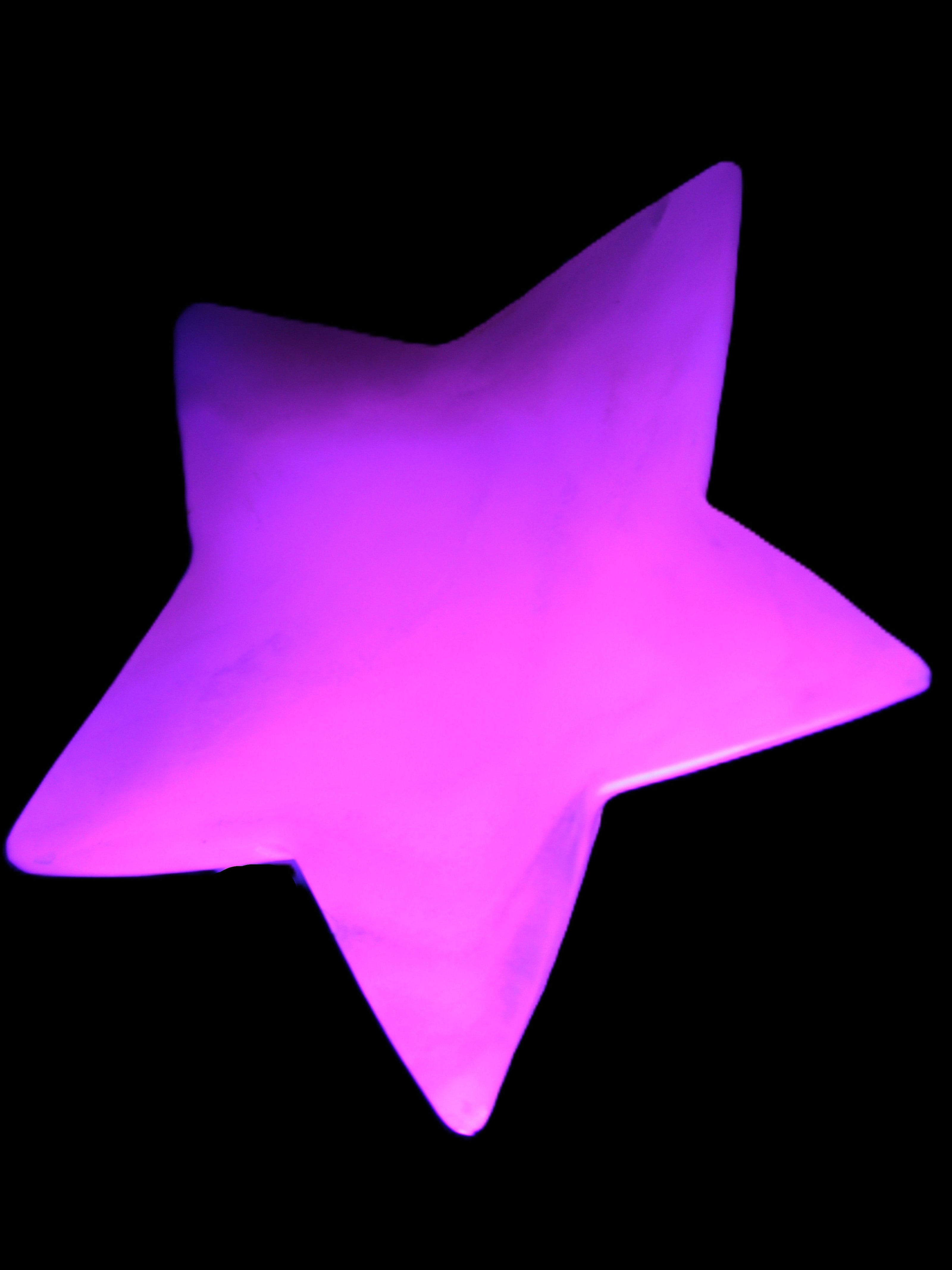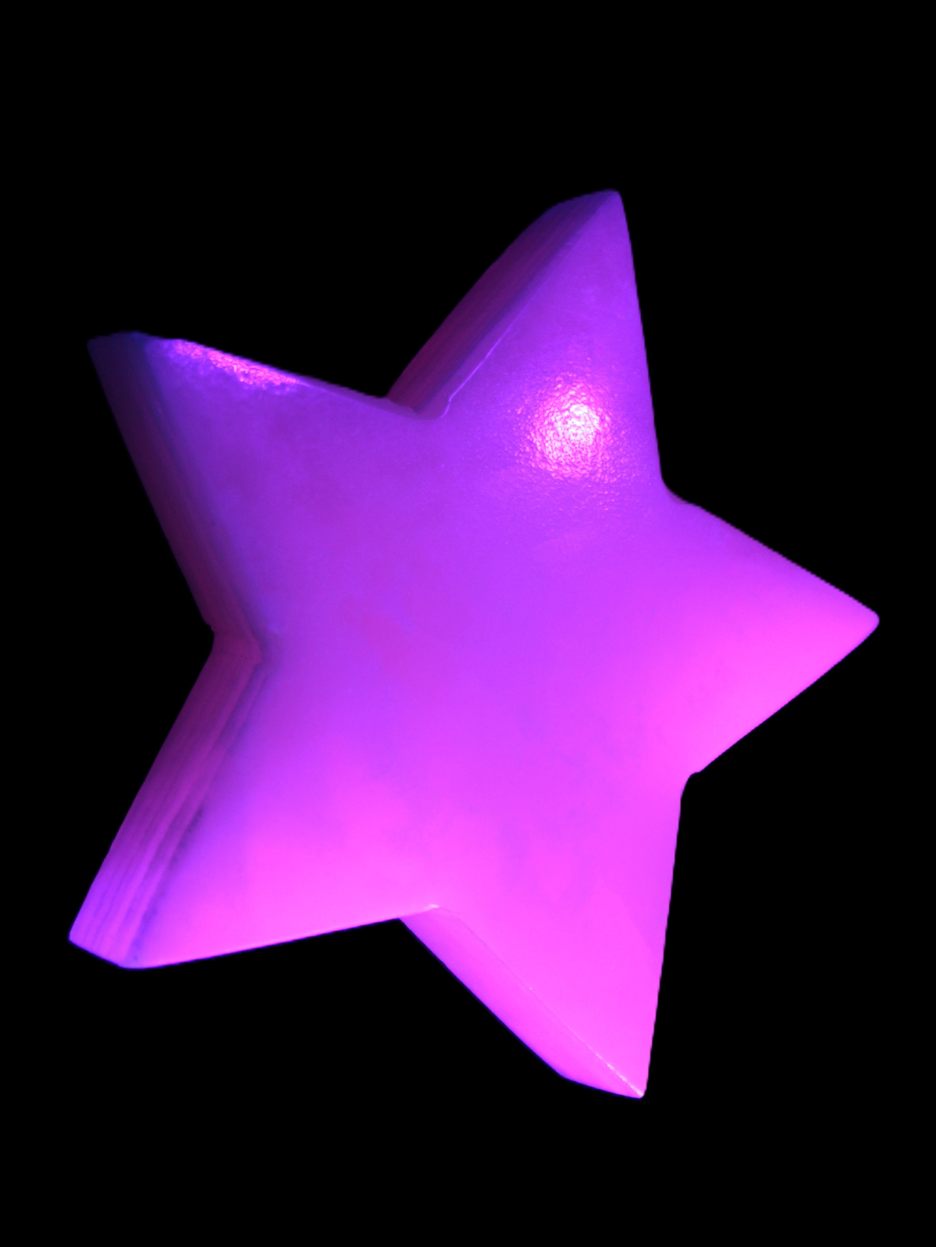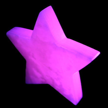 This Mangano Calcite star 110*17m weighs 259.6g. Mangano Calcite can help reveal to you your true self. Mangano Calcite is a calcium carbonate mineral with a minimum of 30 per cent manganese carbonate present. The calcium and manganese carbonates can be banded. The presence of manganese makes Mangano Calcite react to ultraviolet light, giving it a bright hot-pink glow. Mangano Calcite can help bring inner peace, through a process of self-discovery. It helps you find your true self.