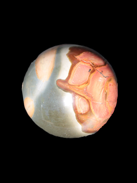 This Marine Jasper sphere is 45mm in diameter and weighs 126g. Jasper is a stone of gentleness, comfort and relaxation. It is a stone of protection, absorbing all types of negative energies. Jasper is the supreme nurturer. Its energies bring a soothing sense of joy. Jasper sustains and supports during times of stress. Jasper unifies all aspects of your life, bringing tranquility and wholeness. Jasper stimulates creativity and imagination, transforming ideas into action. It can help with focus, organisation and the motivation to follow through.