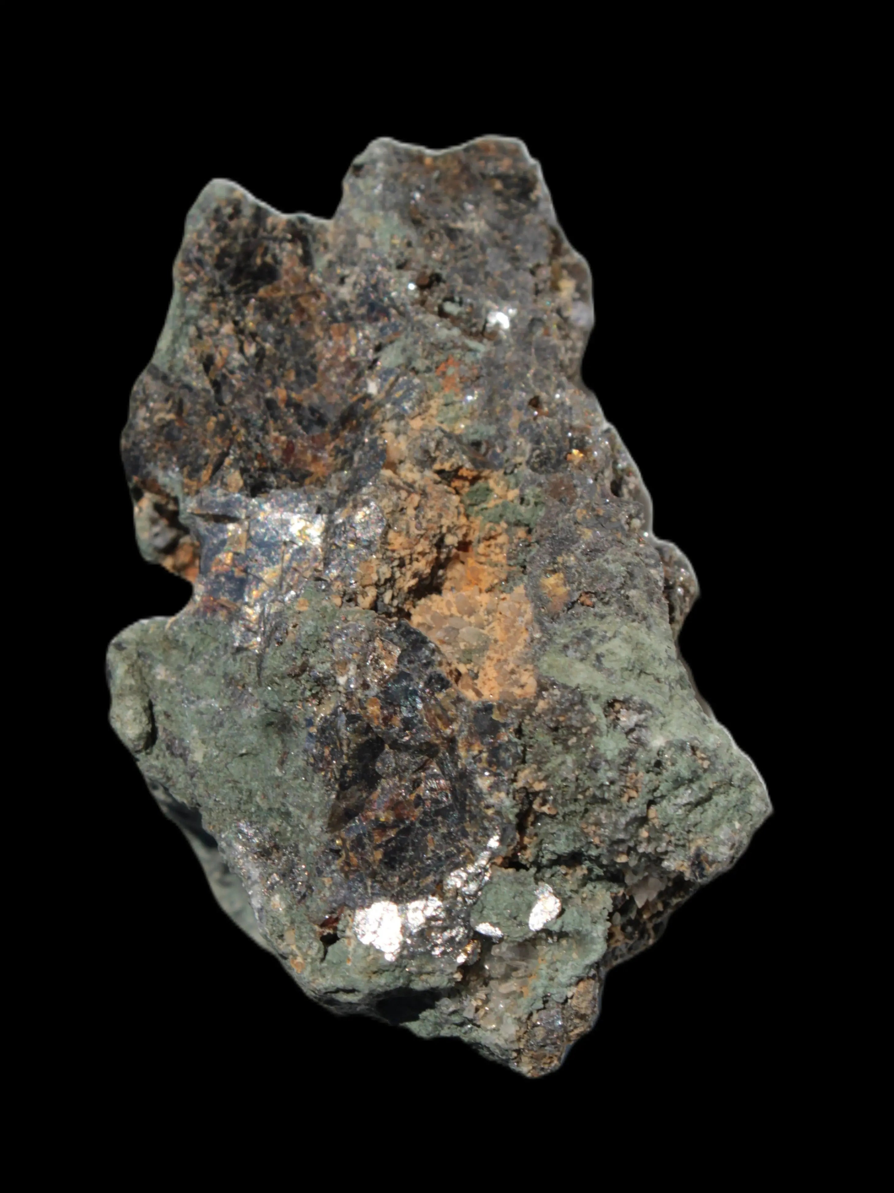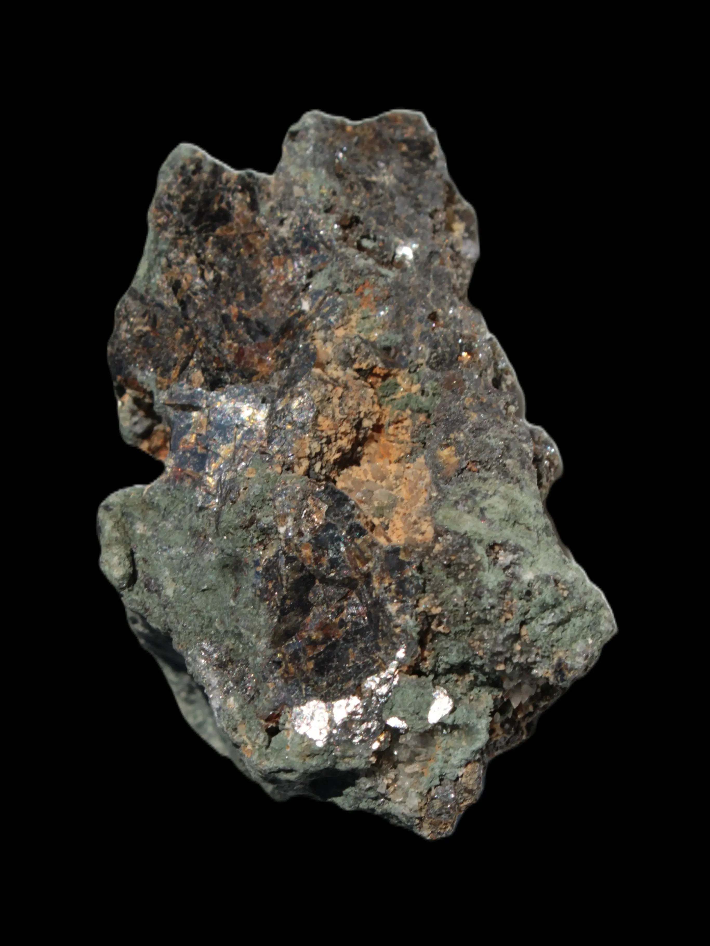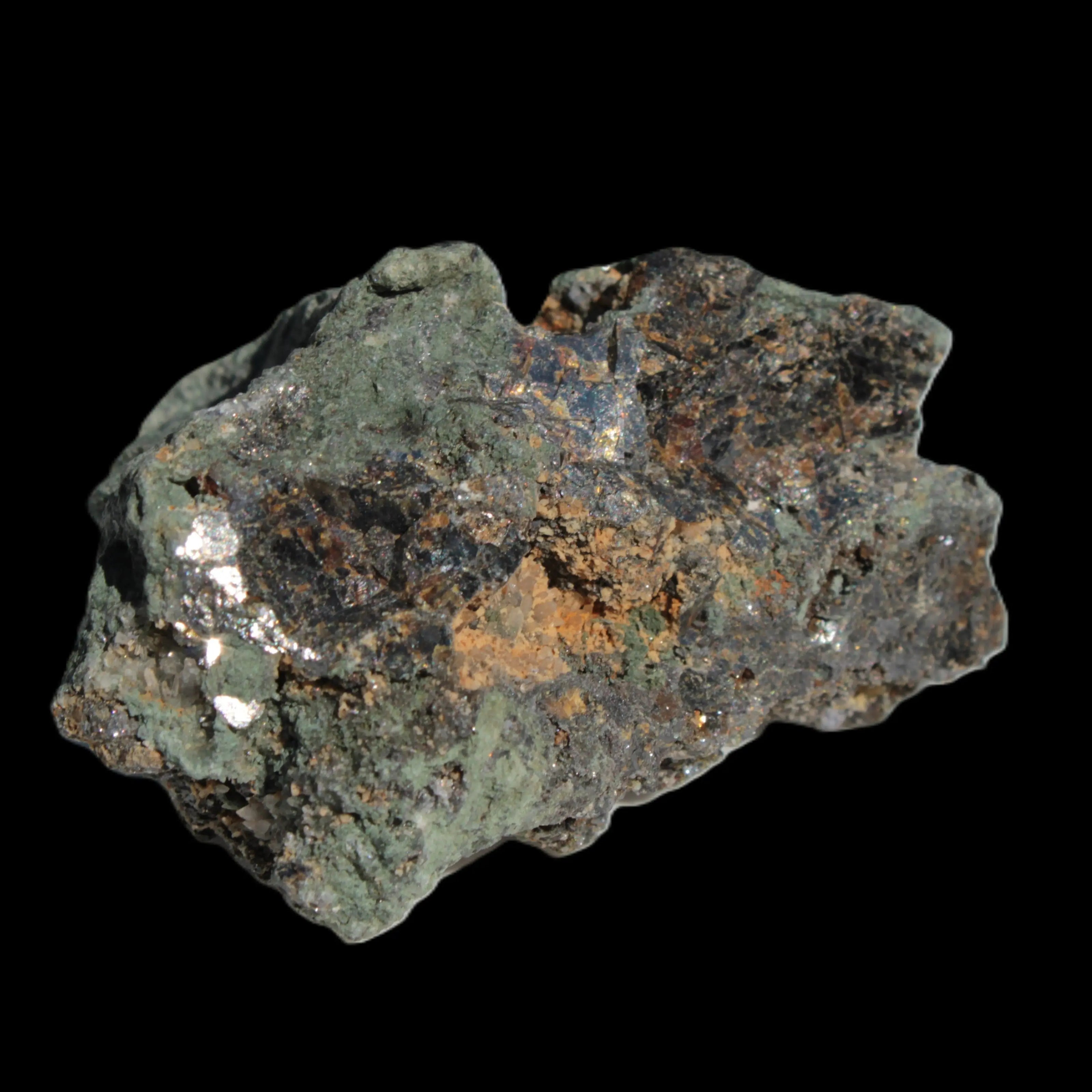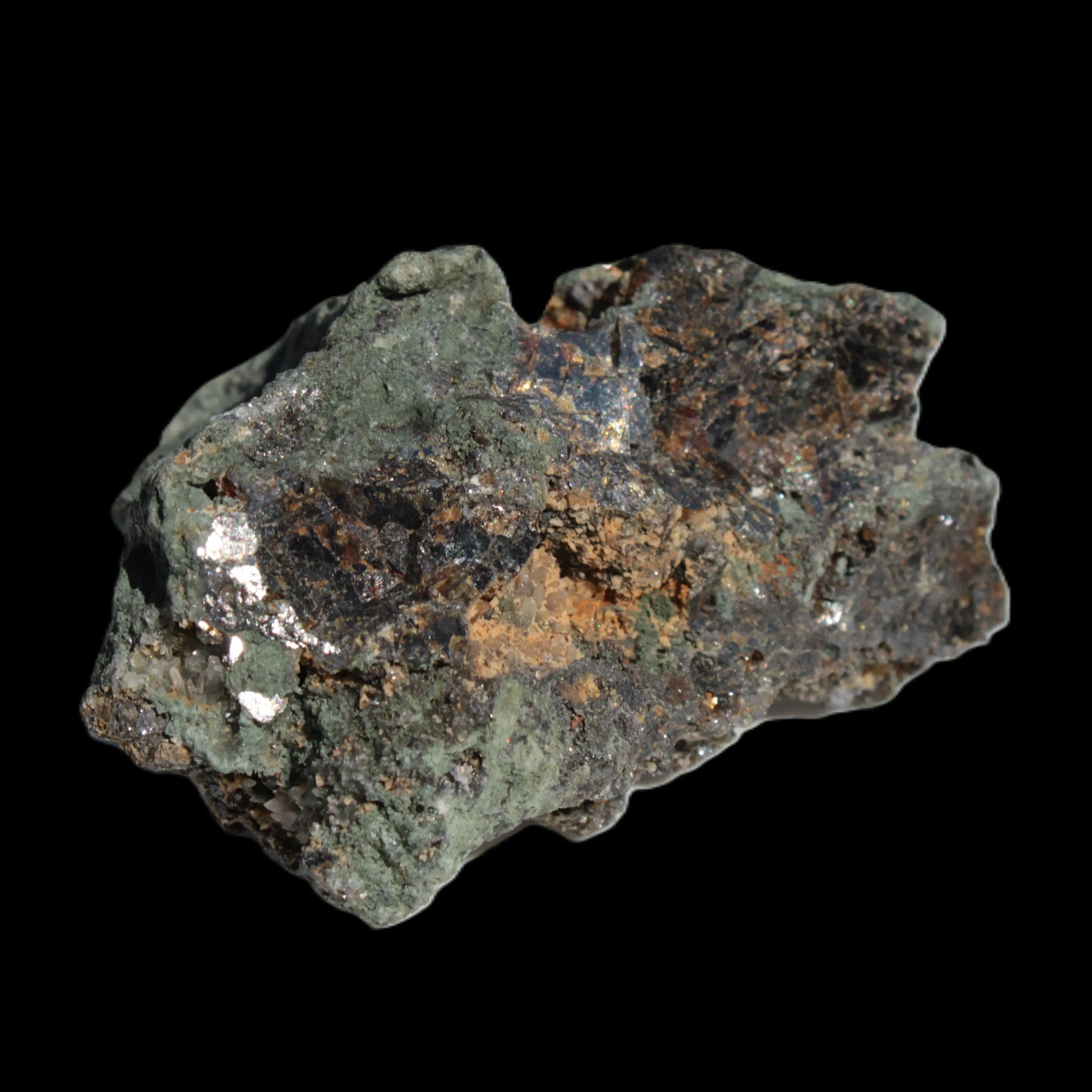 This mineral ore specimen weighs 79g. The specimen probably contains copper, lead and zinc minerals. This is a common ore around the world. These ores also can contain small amounts of Gold, Silver and other elements.