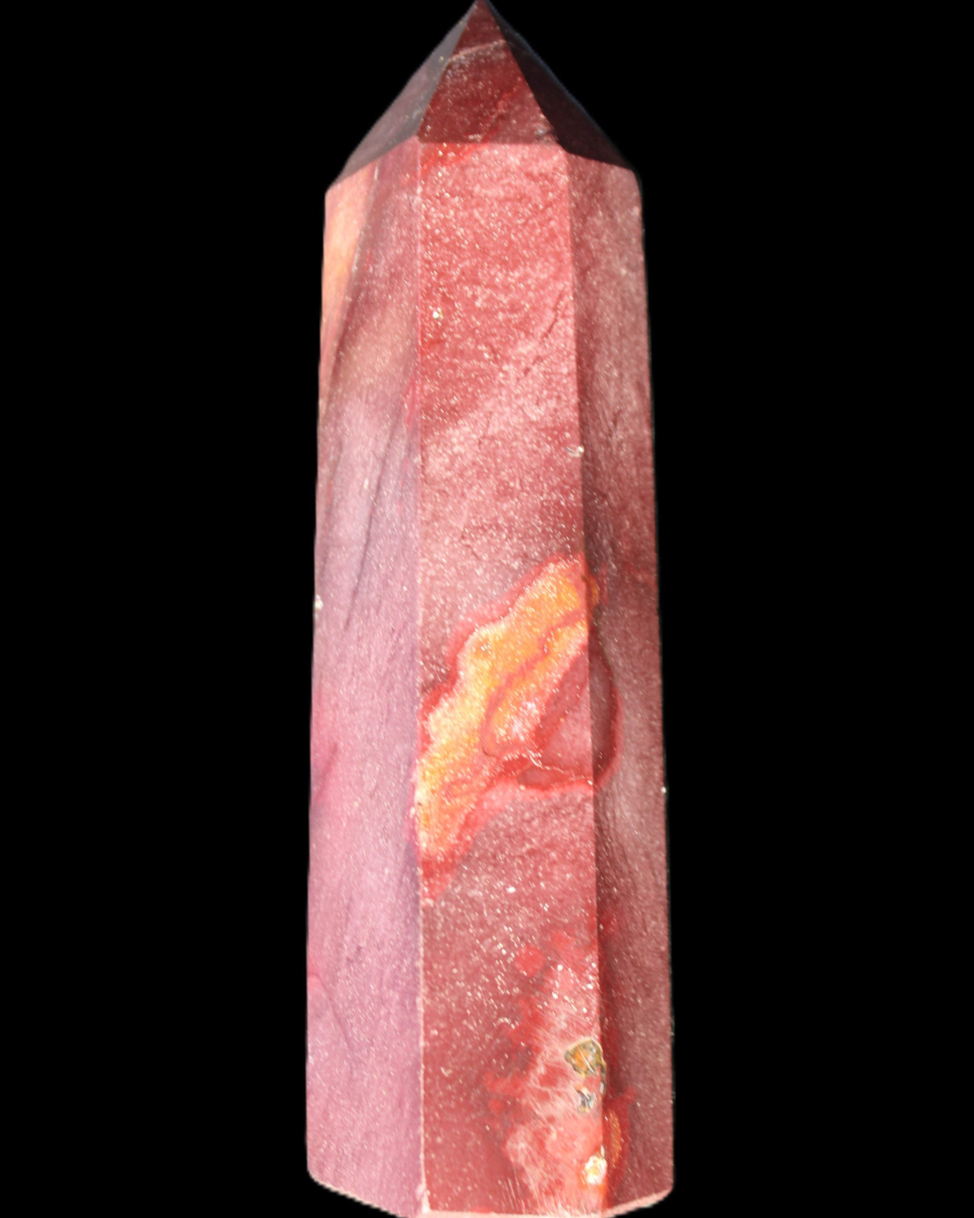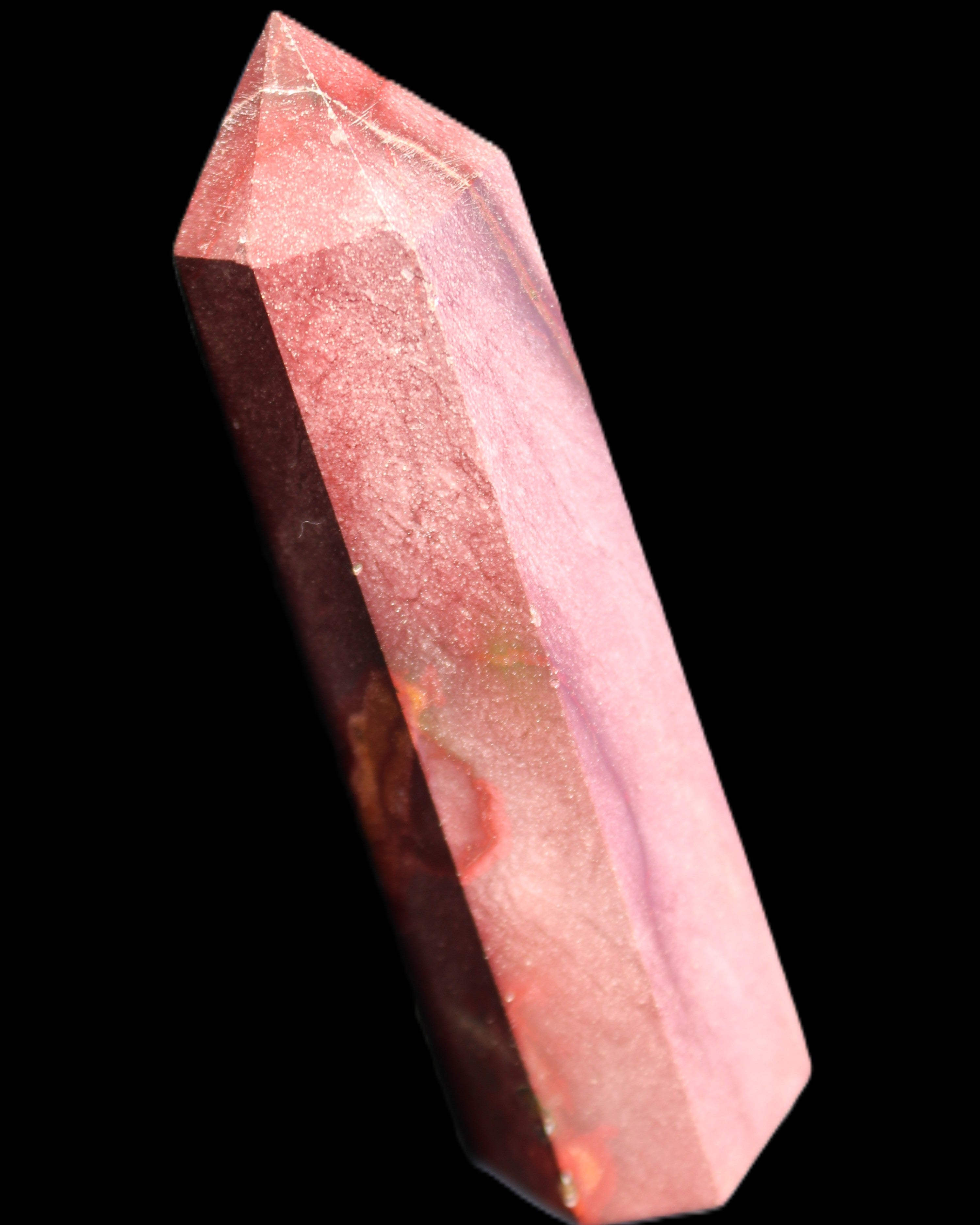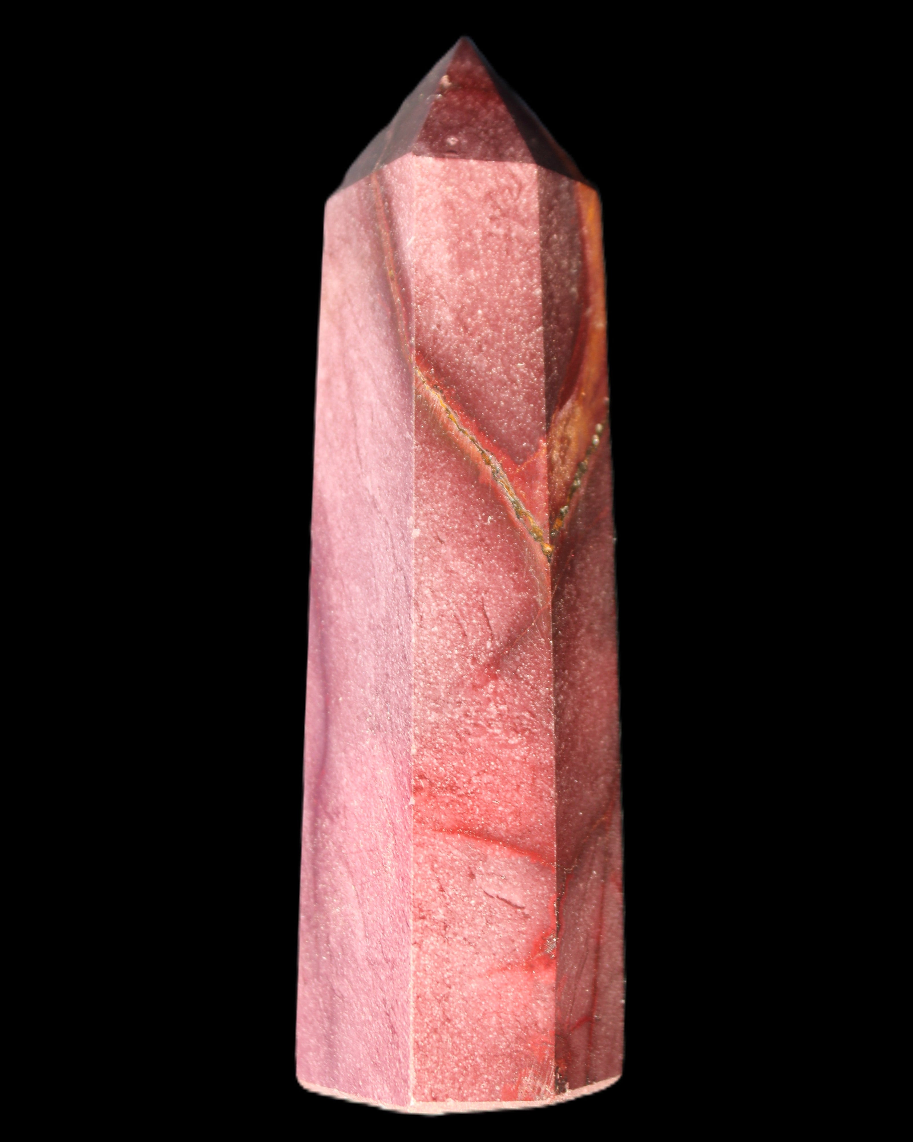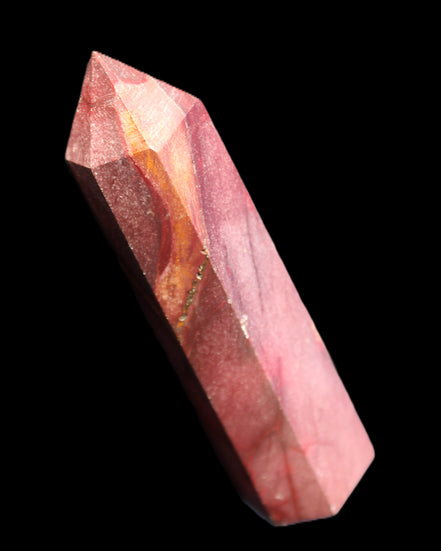 This Mookaite wand 96m weighs 100g. Mookaite has formed under the Mooka Creek which flows through a deposit of fossilised microplankton from the Cretaceous Period which ended 66 million-years ago. The water percolating down in this ancient seabed of tiny fossils has created a stunning rock with bright reds, yellows, purples and other deep colours of nature. Every stone is different with a variable composition of Chert and Chalcedony.