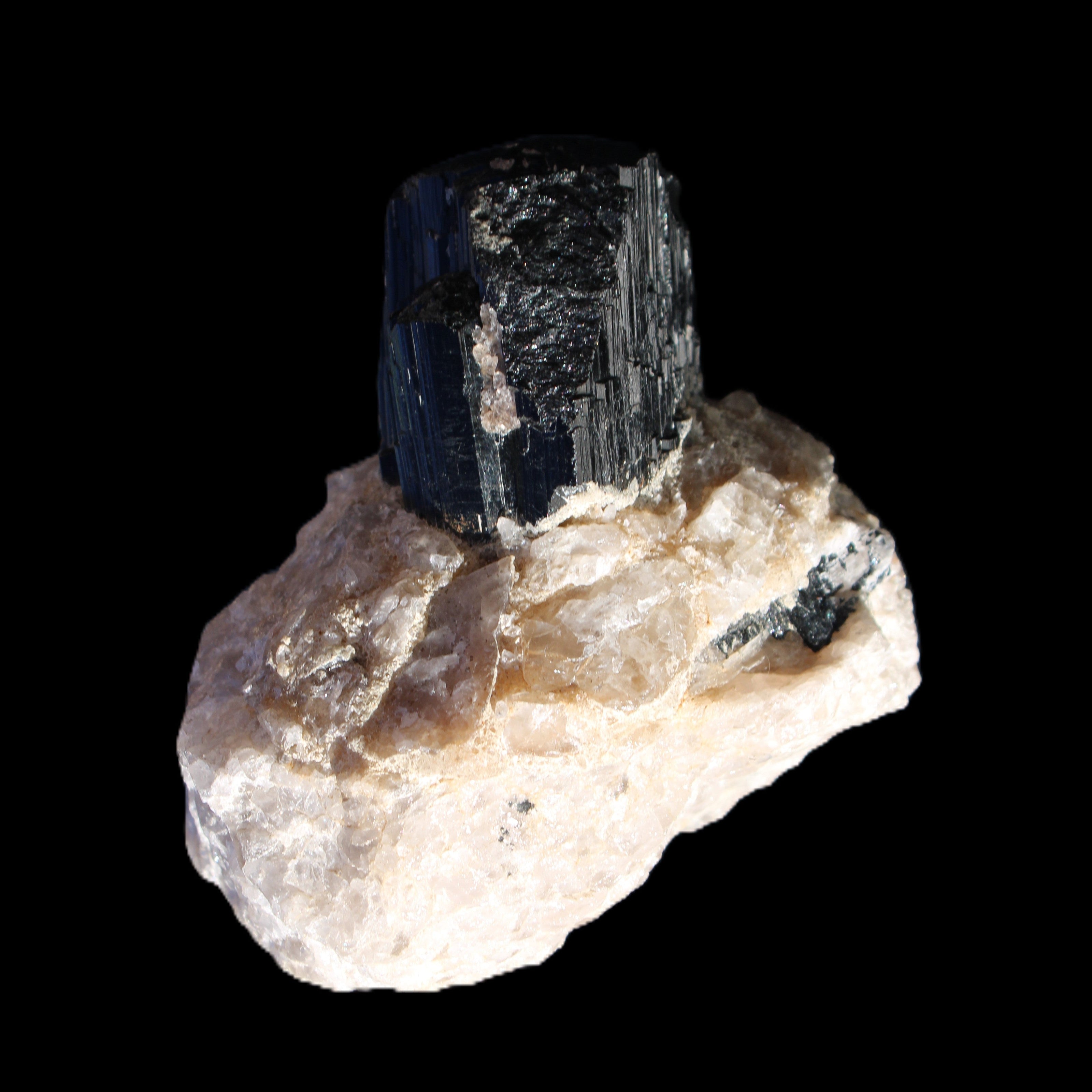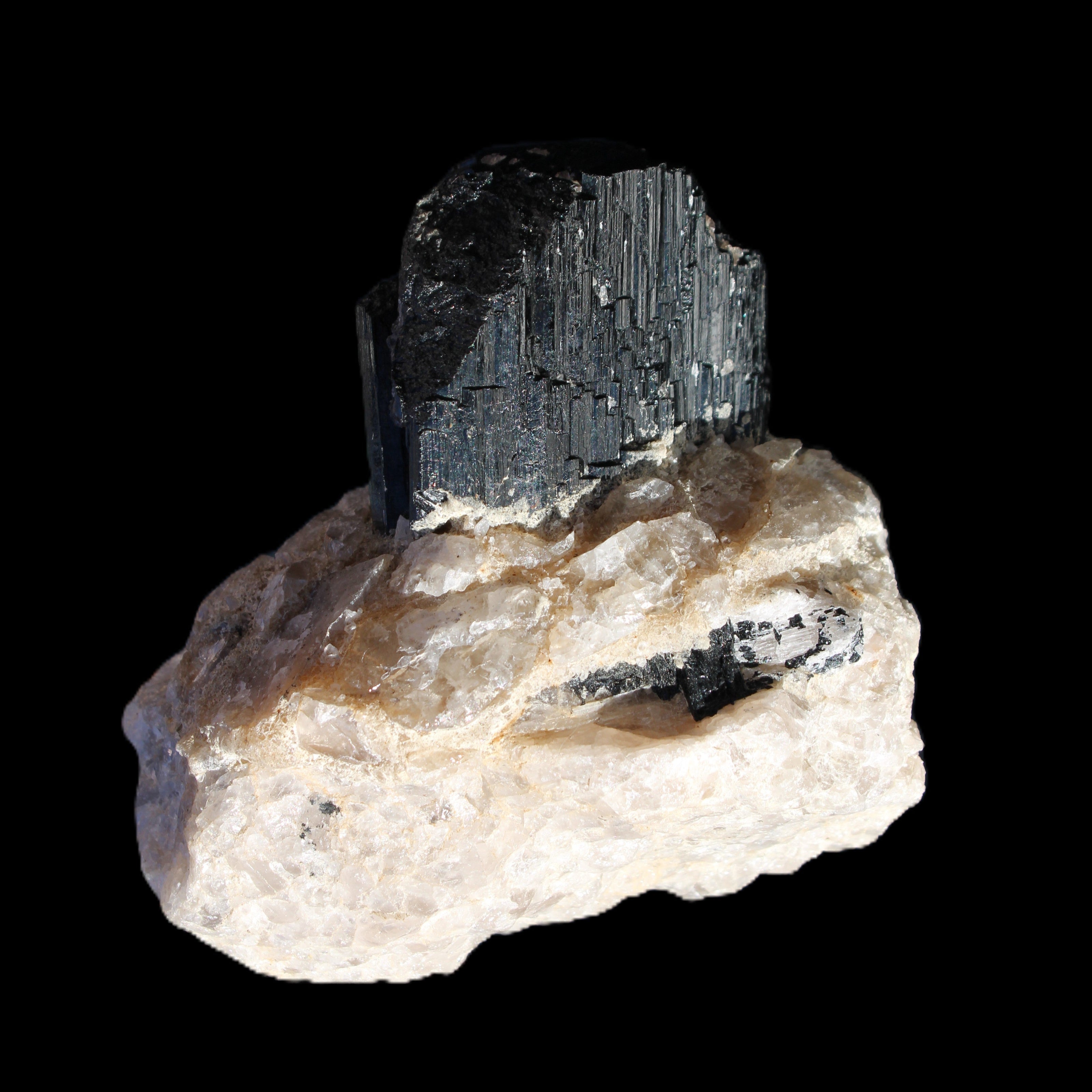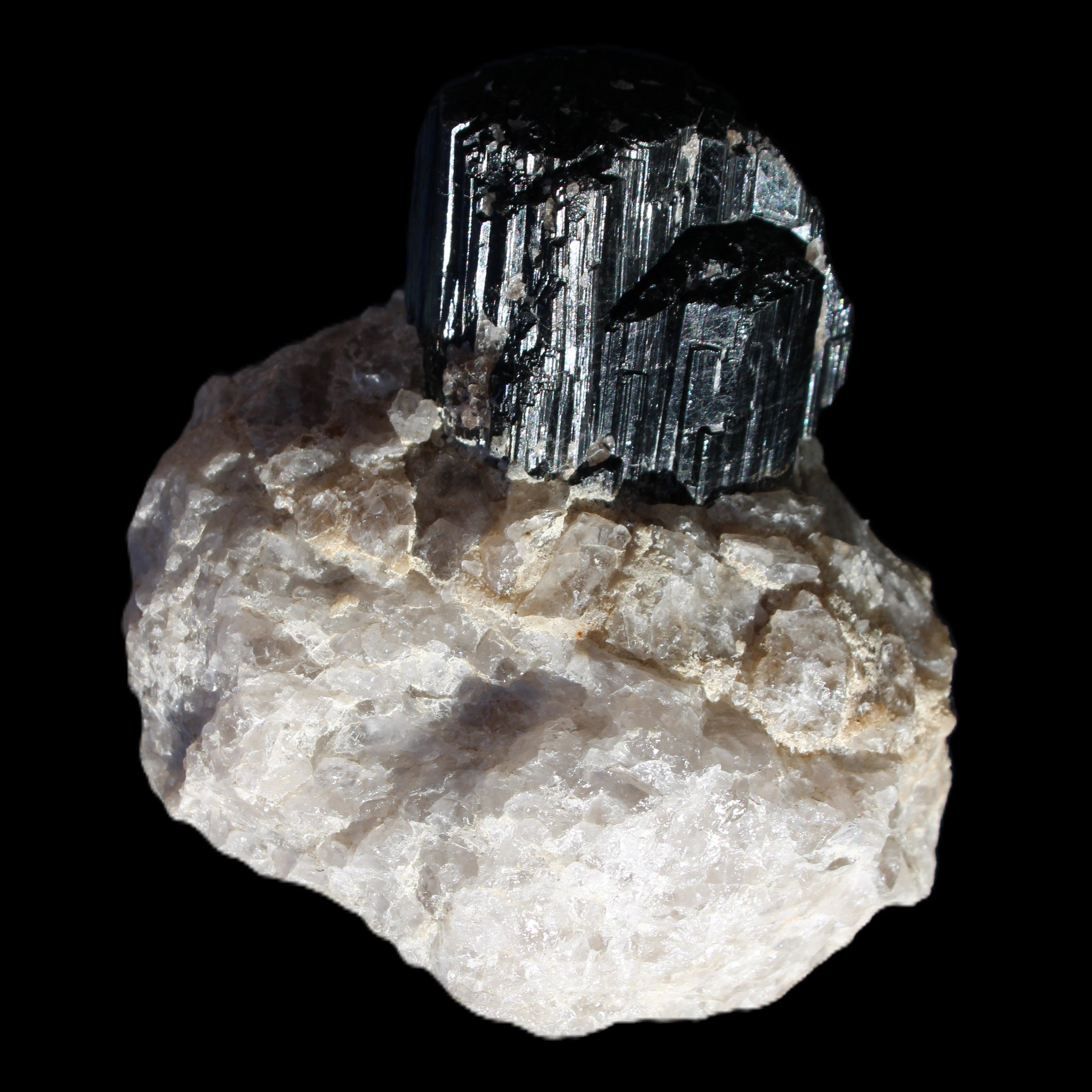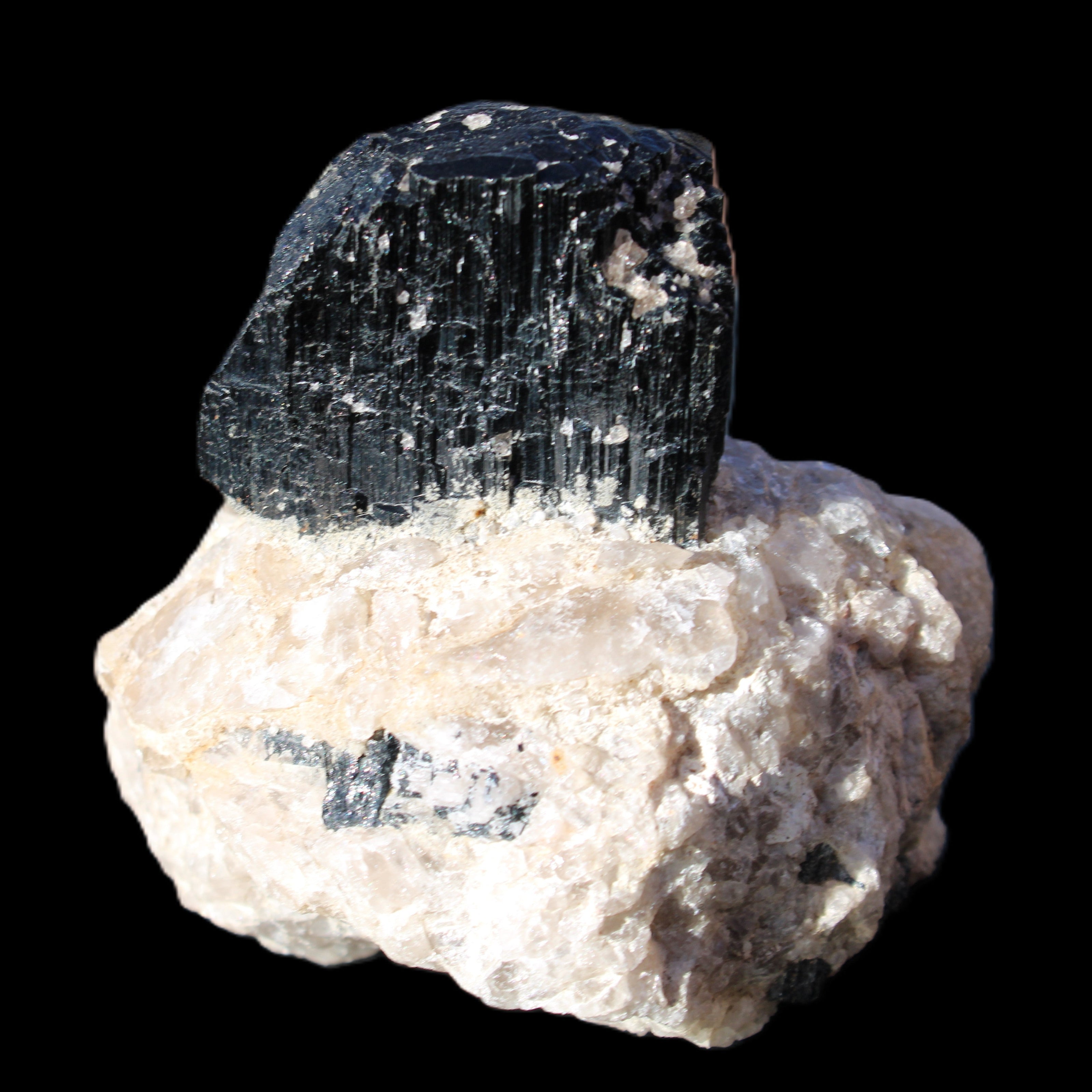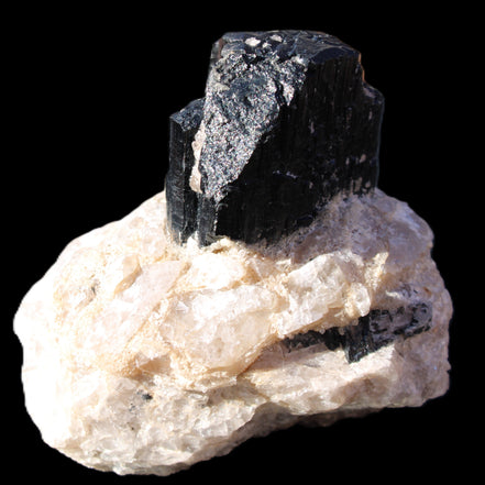 Natural Black Tourmaline crystal in Quartzite 94*90*95mm 839g in sunlight - Rocks and Things Store