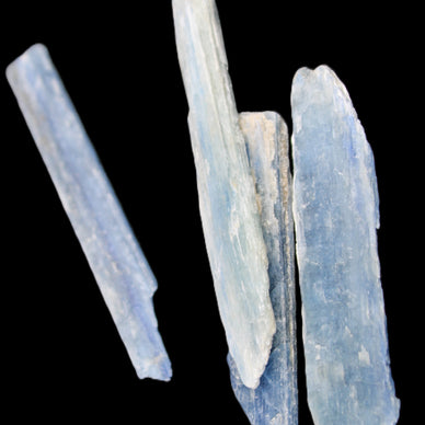 These Natural Blue Kyanite blade crystals selections weigh 20-24g. Kyanite consists of multiple layers of thin flat blades. It has two distinct hardness ratings for its parallel and perpendicular axis. Kyanite is most commonly blue, but it may also be black, grey, green or orange.
