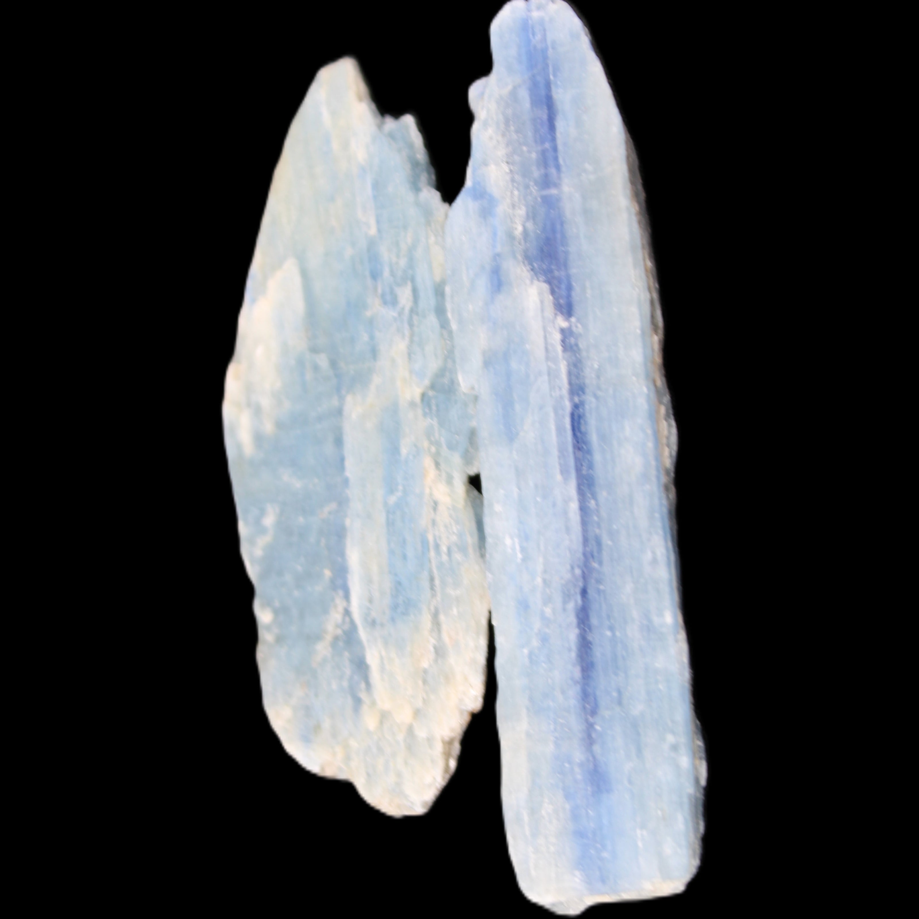 These Natural Blue Kyanite two blade crystals selections weigh 29-31g. Kyanite consists of multiple layers of thin flat blades. It has two distinct hardness ratings for its parallel and perpendicular axis. Kyanite is most commonly blue, but it may also be black, grey, green or orange.