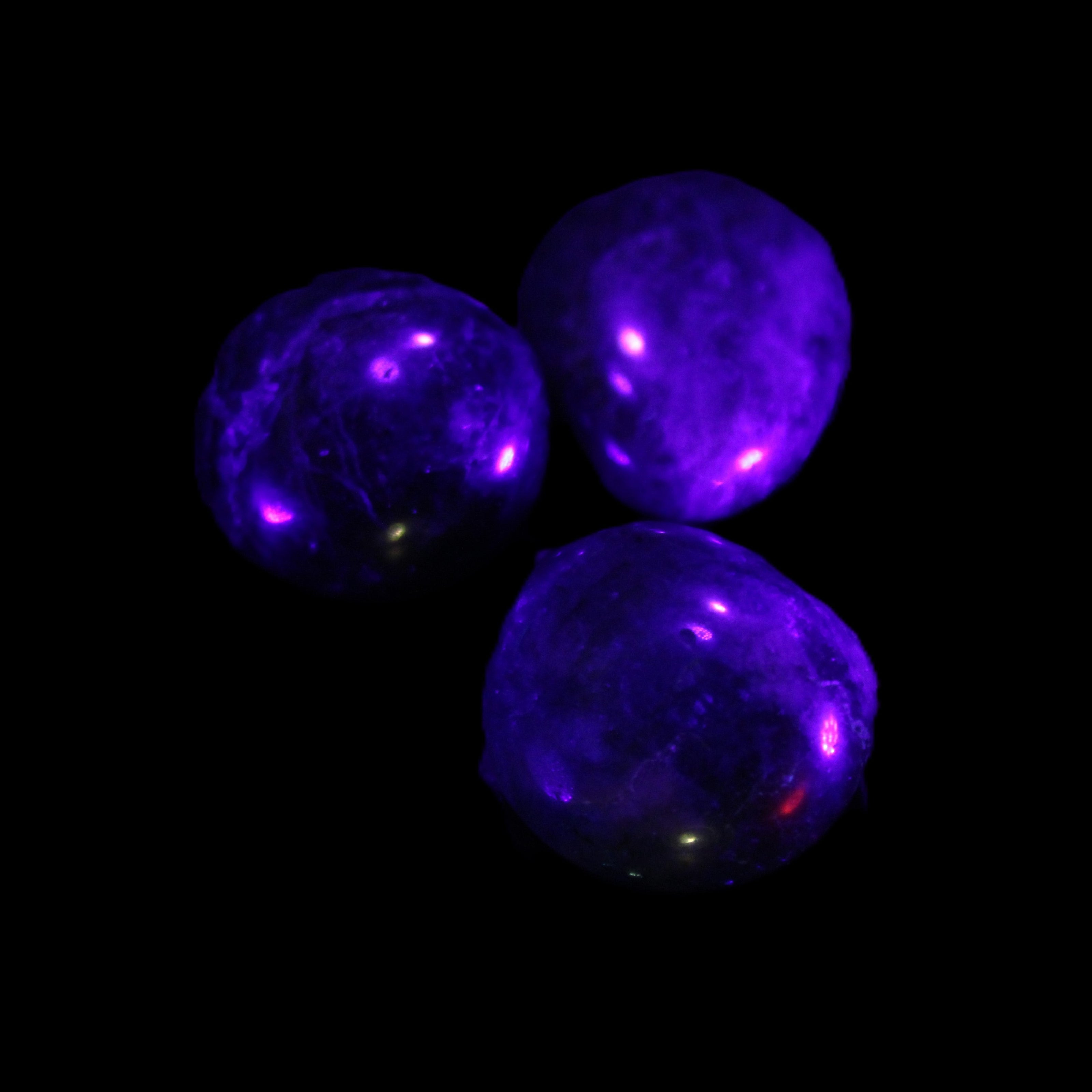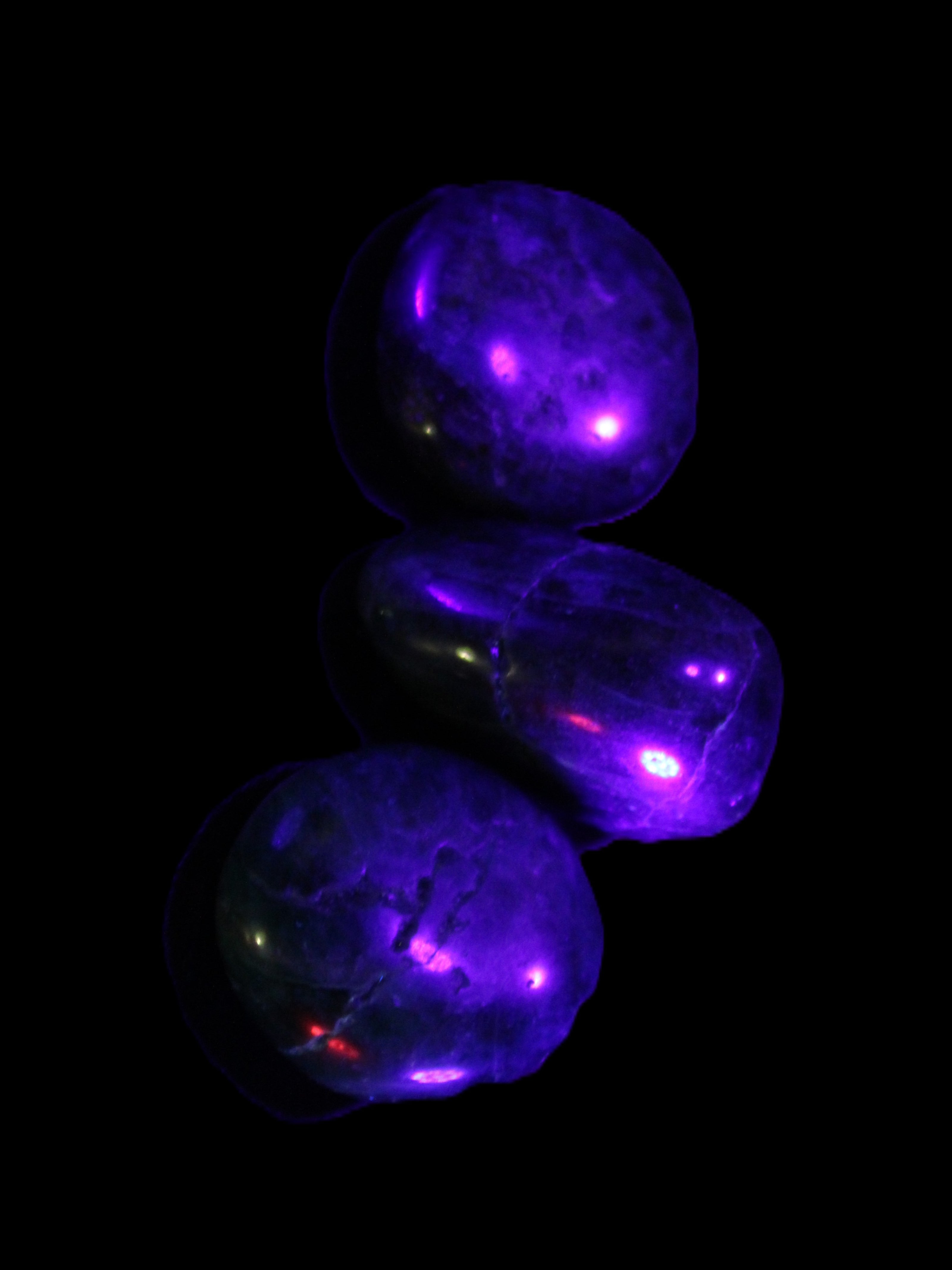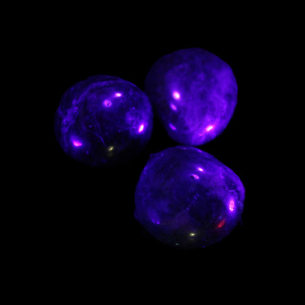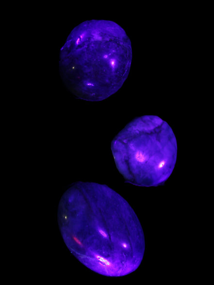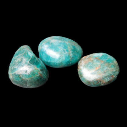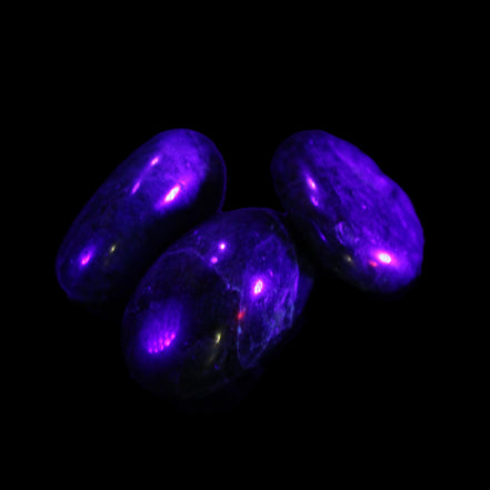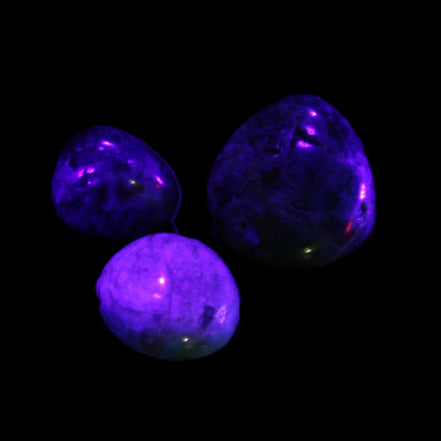 This selection of wonderful Neon Blue Apatite 3 tumbled stones weighs 16-17g. The colour of Neon Apatite from Madagascar has a bright electric blue to blue-green. Apatite is UV reactive.
