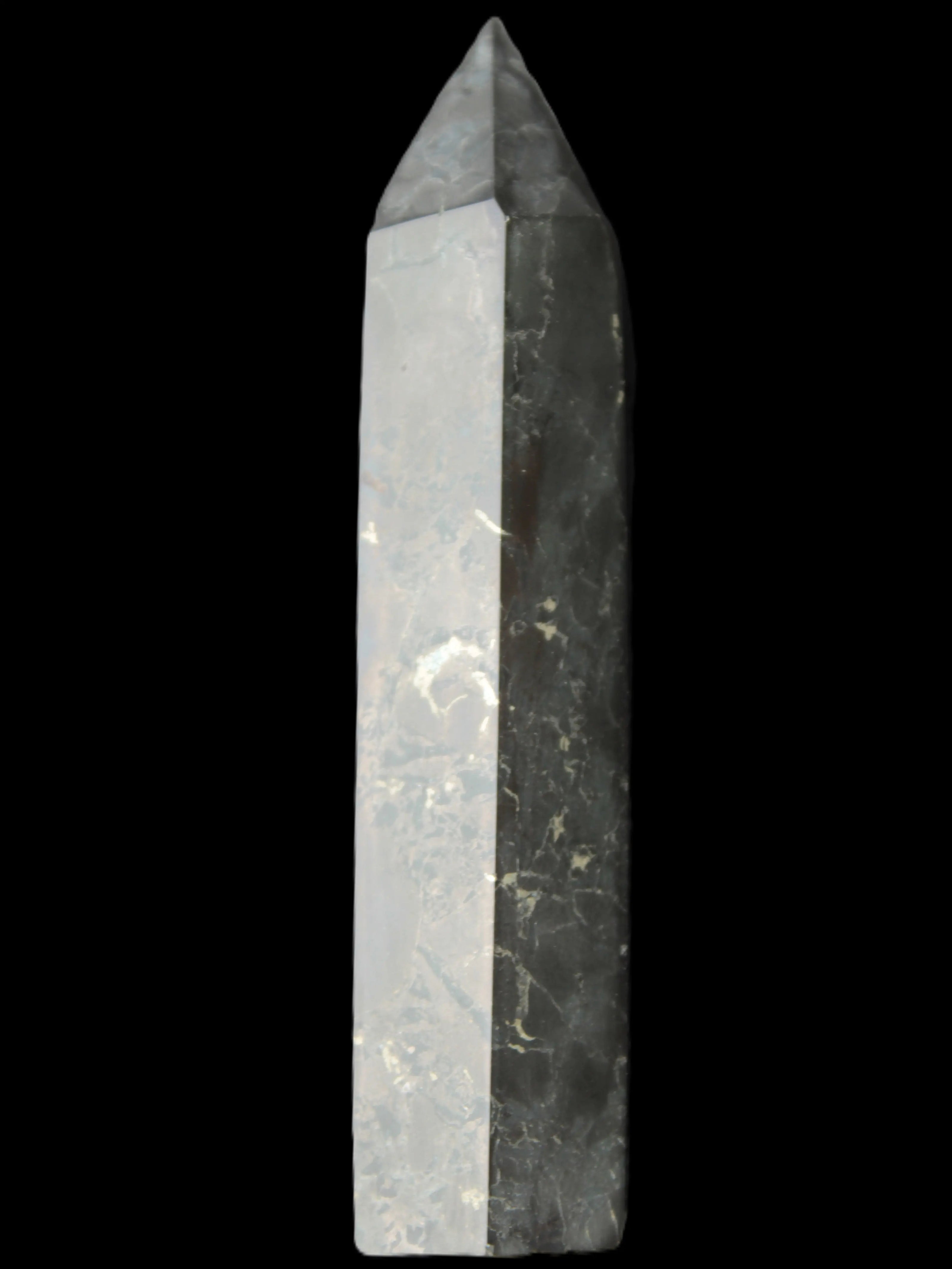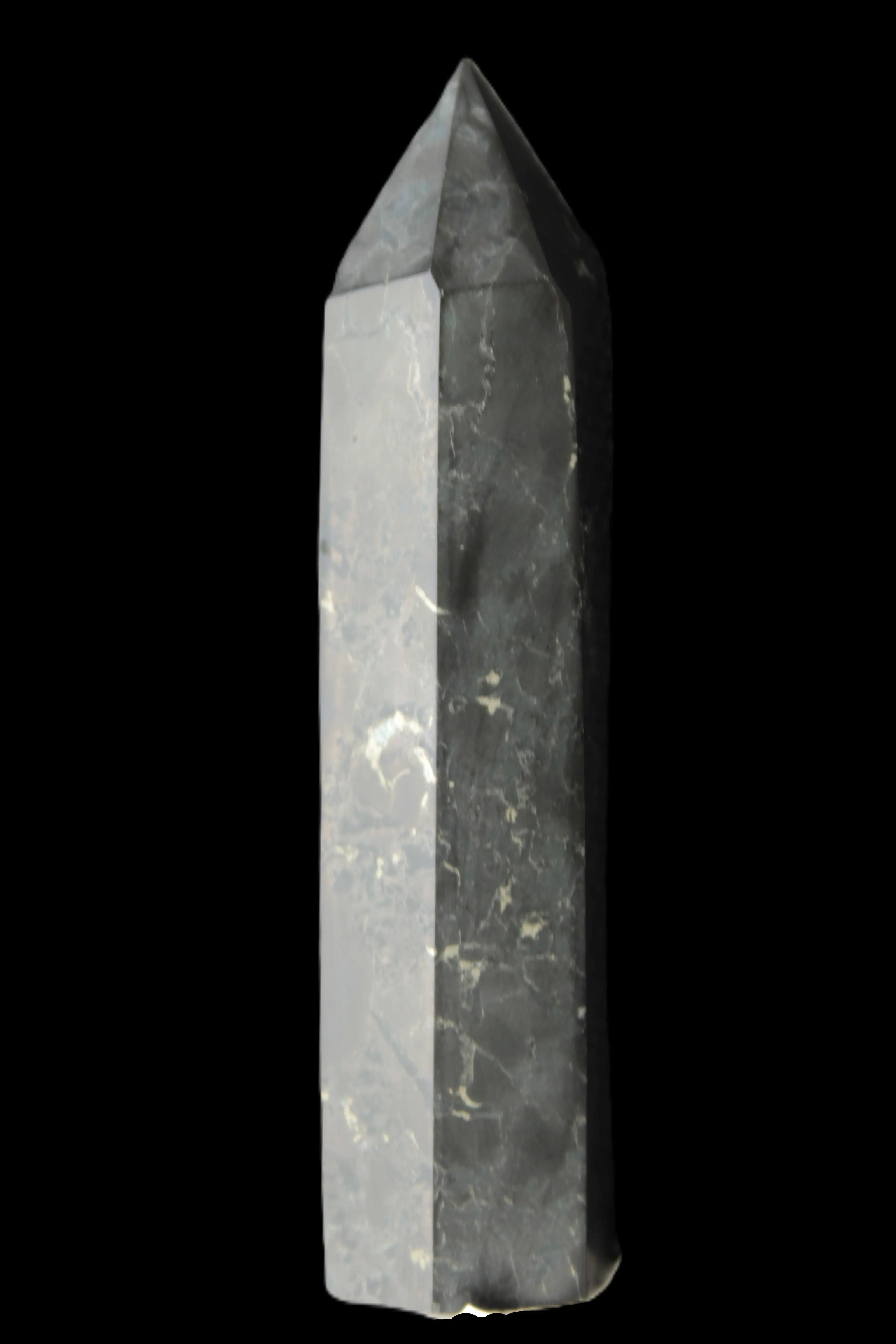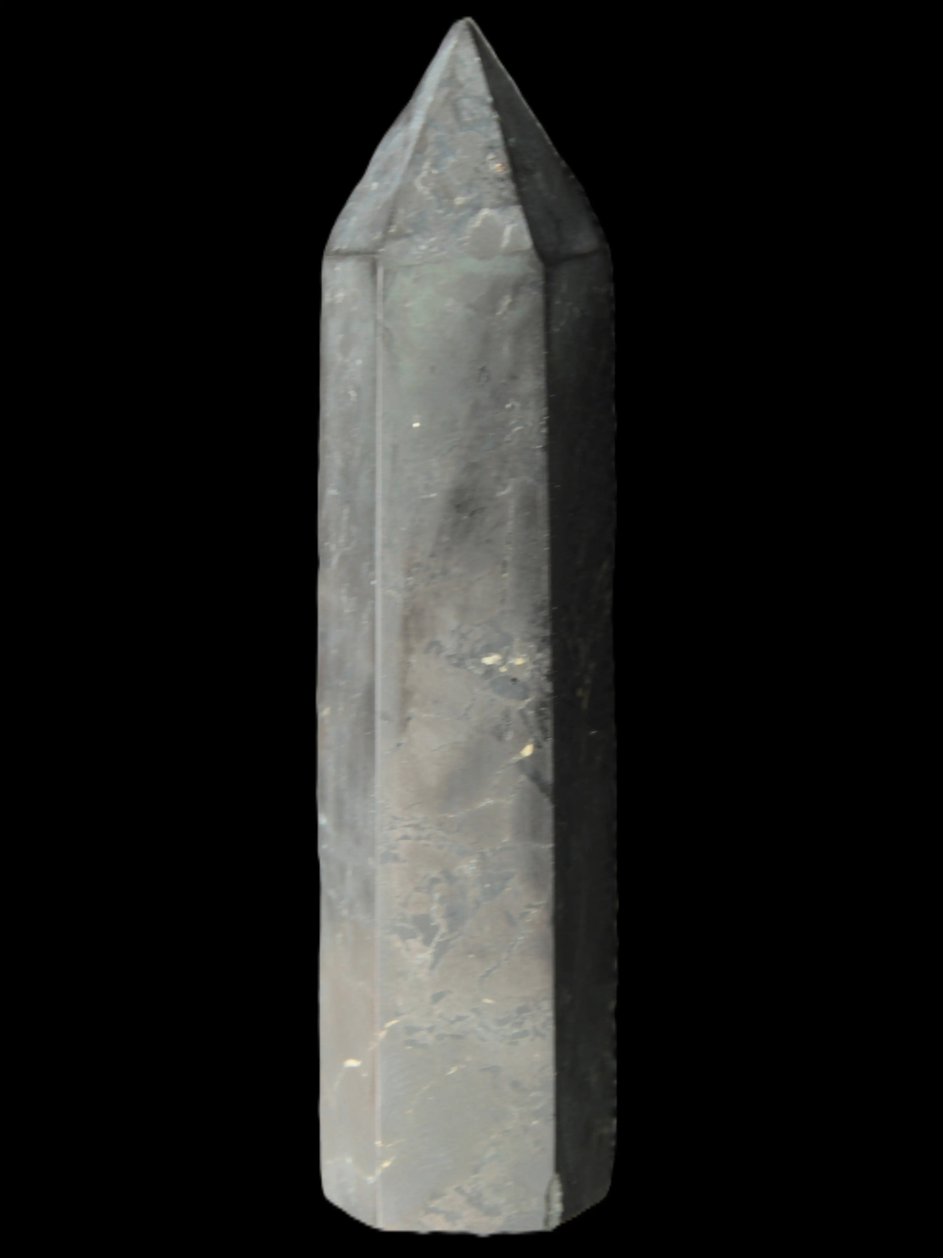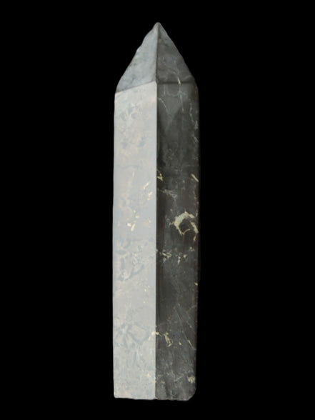 This Noble Shungite wand 64g is a great way to enjoy this stone's remarkable properties. It is perfect for a desk or work station surrounded by negative energies. This hexagonal wand is 90mm tall and 21mm wide at its base.