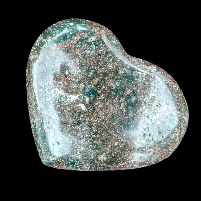 Ocean Jasper heart 176g in sunlight - Rocks and Things Store