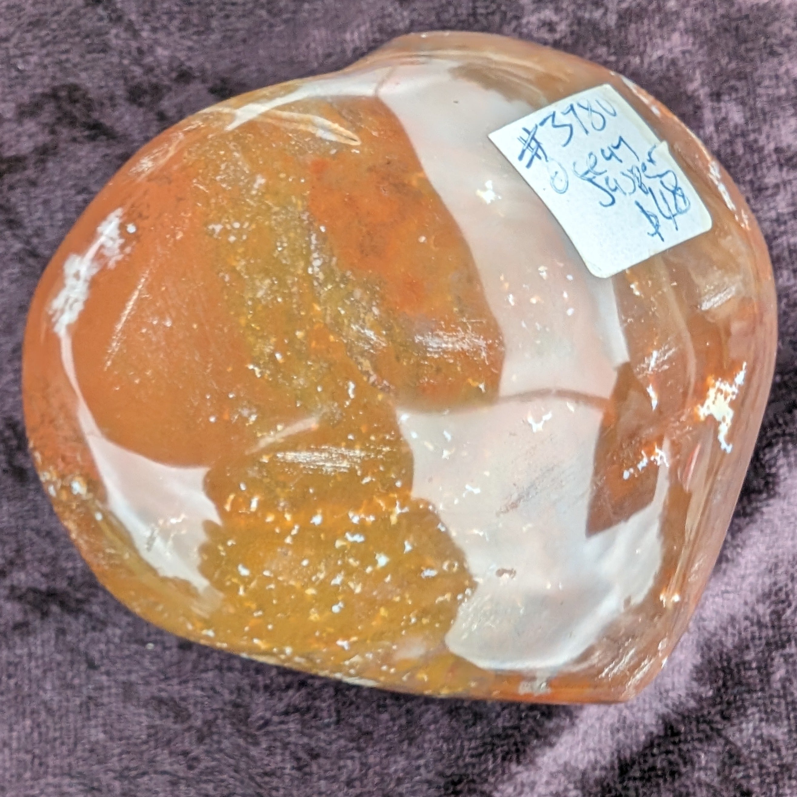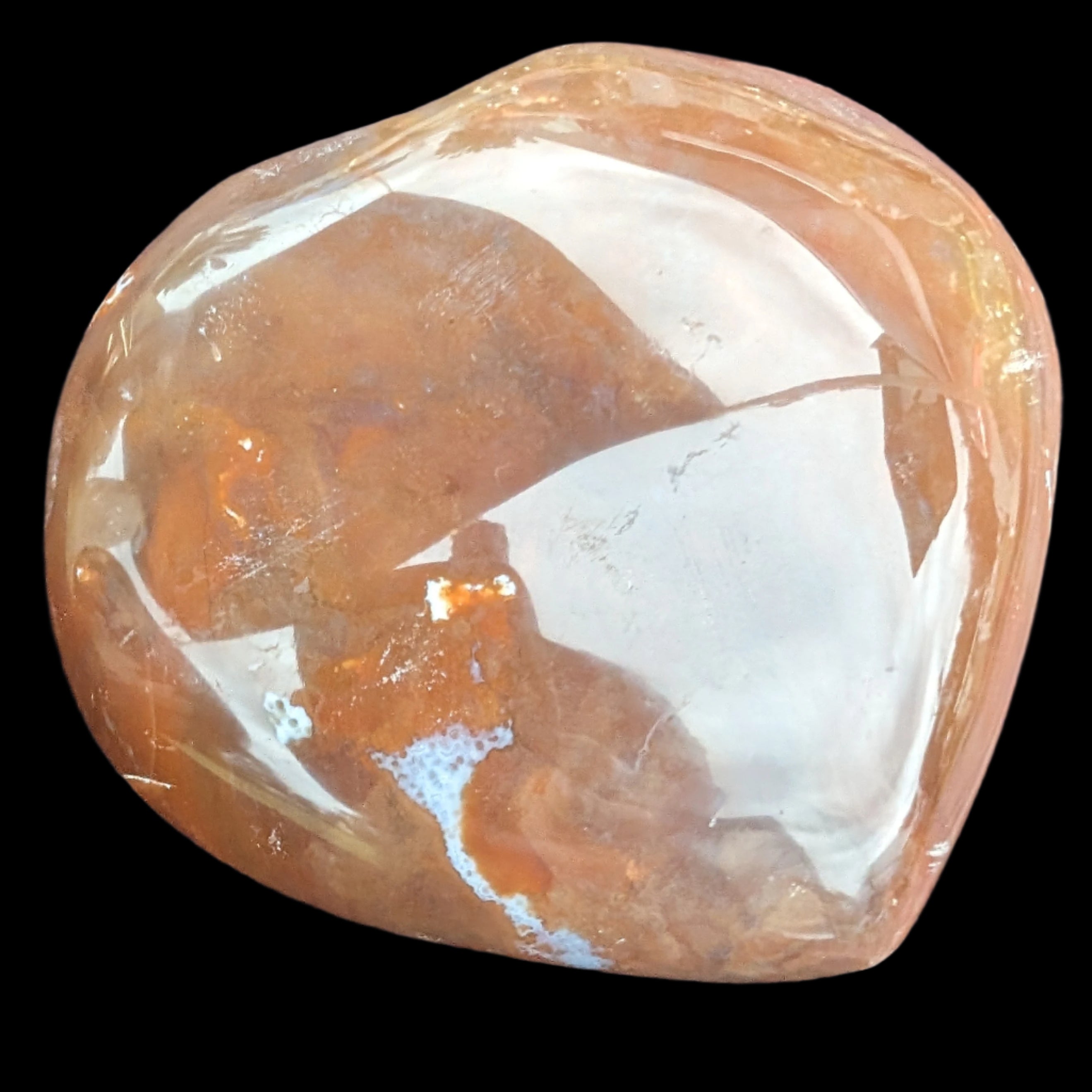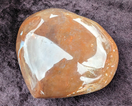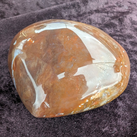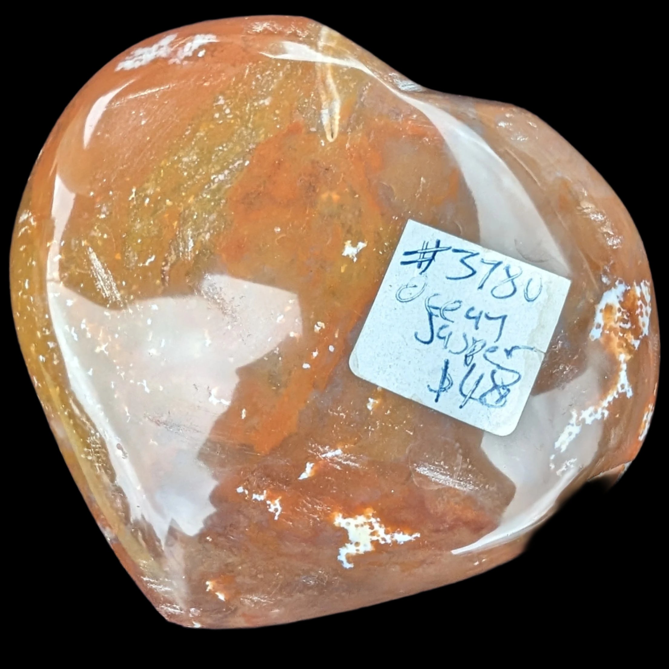 This Ocean Jasper heart weighs 250g. Ocean Jasper contains circular inclusions of quartz or feldspar. These can be seen as a pattern of brown, blue, green, grey, pink, red, yellow or white orbs. Another name for Ocean Jasper is Orbicular Jasper. It is extremely rare, formerly only found at one location on Madagascar’s shoreline at low tide. That major deposit was mined out in 2006. Ocean Jasper is a nurturing, protective stone. It can help encourage patience, release emotional blockages and rid you of pent-up anger. Ocean Jasper is a stone of joy, renewing your enthusiasm for life’s ups and downs.
